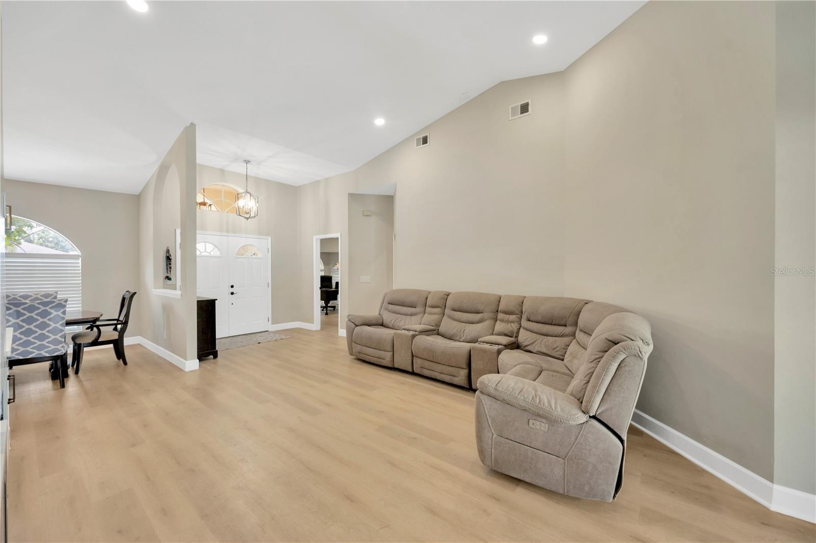 ***THIS PROPERTY IS ALSO FOR RENT*** ~~~SPECIAL INCENTIVE PRICE TO SELL UNTIL JULY 13TH!!! NOW IS YOUR CHANCE!*~~~***HONEY, STOP THE CAR!!! STEP INTO A WORLD OF ELEGANCE, PRIVACY, AND FUNCTIONALITY IN THIS FULLY UPDATED POOL HOME WITH TRANQUIL POND VIEWS AND AN OVERSIZED BACKYARD—Better than New Construction! NO CDD and VERY LOW HOA***. Thoughtfully REMODELED FROM TOP TO BOTTOM, this 4-bedroom, 2-bath Home offers a luxurious mid-century modern palette, soaring cathedral ceilings (up to 13 ft!), and continuous soft luxury vinyl plank flooring—NO carpet, NO transitions. The welcoming front porch features a spa-style fountain and laid-back beach vibe with Adirondack chairs and white marble rocks. Step inside to a spacious OPEN-CONCEPT LAYOUT with a FIREPLACE wrapped in elegant marble-like porcelain tile, built-in shelves, and a custom bar that seamlessly flows into the kitchen—perfect for entertaining or everyday comfort. ALL 4 BEDROOMS ARE GENEROUSLY SIZED—not your average cookie-cutter layout—and thoughtfully arranged in a SPLIT FLOOR PLAN for ultimate privacy. The OVERSIZED OWNER'S RETREAT features PRIVATE LANAI ACCESS via French doors and a spa-inspired ensuite bath with JETTED TUB, walk-in shower, dual vanities, and LED-lit mirrors. The two beautifully updated bathrooms offer pool access, with the second bath pre-plumbed for an optional extended vanity. An additional guest bedroom near the primary suite makes the perfect home office or in-law space. Step into your own private oasis—this resort-style screened lanai is accessible from the living room, owner’s suite, and second bathroom. Soft ambient lighting wraps the patio for serene evenings beside the resurfaced pool, now with a color-changing LED light for magical twilight swims. The expansive backyard offers POND VIEWS FACING WEST—the perfect backdrop for glowing sunsets. A side DOG RUN, accessible from the front, lanai, and backyard, adds functionality without sacrificing charm. *BONUS*: the swans may convey with the house… ;-) RECENT UPGRADES BETWEEN 2023 AND 2025 include: • Newer Roof (2023) • AC (2023) • New Water Heater • FULL HOUSE REPLUMBED • Bathrooms with LED mirrors & defoggers • Kitchen with solid wood cabinetry, Quartz Calacatta counters, and stainless-steel appliances • Built-in bar with wine fridge • Pool resurfaced with new salt system, filter, and pump (2024) • New garage door • Updated laundry room with built-in cabinet and utility sink • Fresh paint inside (2024) & out (2025) • Gorgeous fireplace feature wall • Refreshed landscaping • *UNBEATABLE LOCATION*: Just minutes from Tampa Premium Outlets, The Grove (new Target!), Wiregrass Mall, top-rated hospitals (AdventHealth, BayCare, Orlando Health, Johns Hopkins), I-75 & I-275, schools, shopping, dining, and more. Don’t miss your chance to own this stylish, turnkey gem in one of Pasco’s most desirable areas, and schedule your private showing today! *STARTING JULY 7TH, THIS HOME WILL BE LISTED FOR RENT WITH OPTION TO BUY AFTER 1 YR, Dont miss the opportunity to own it at this incredible Price!