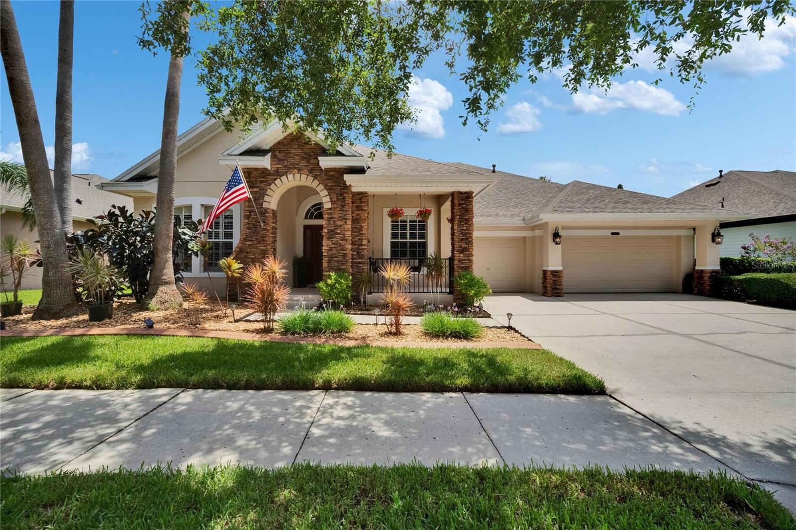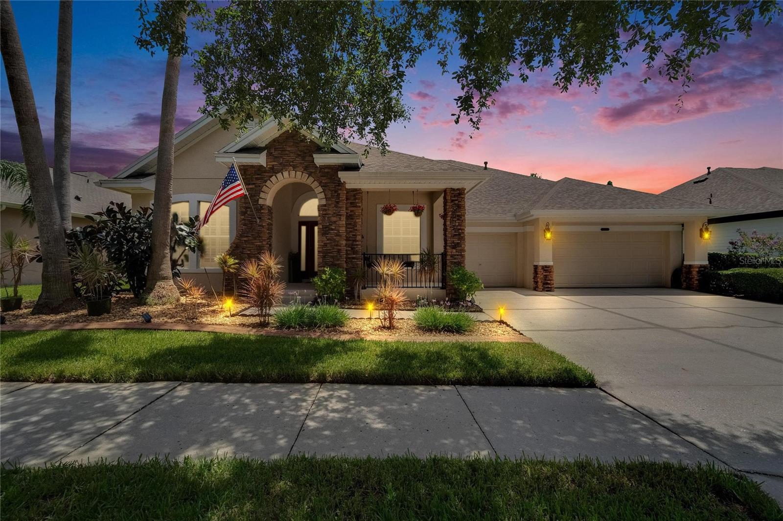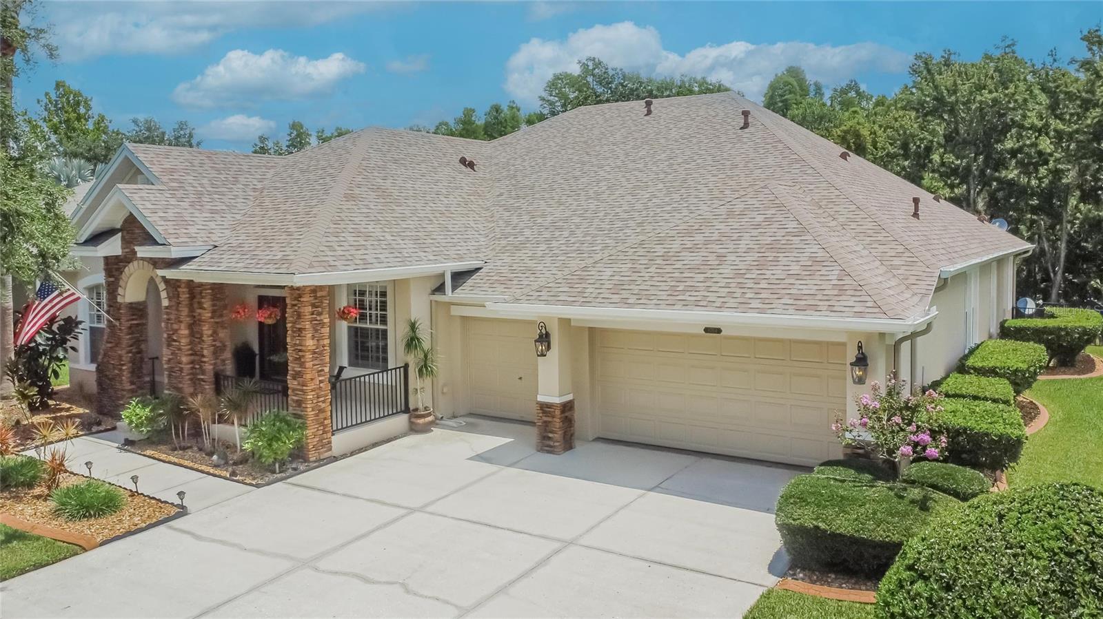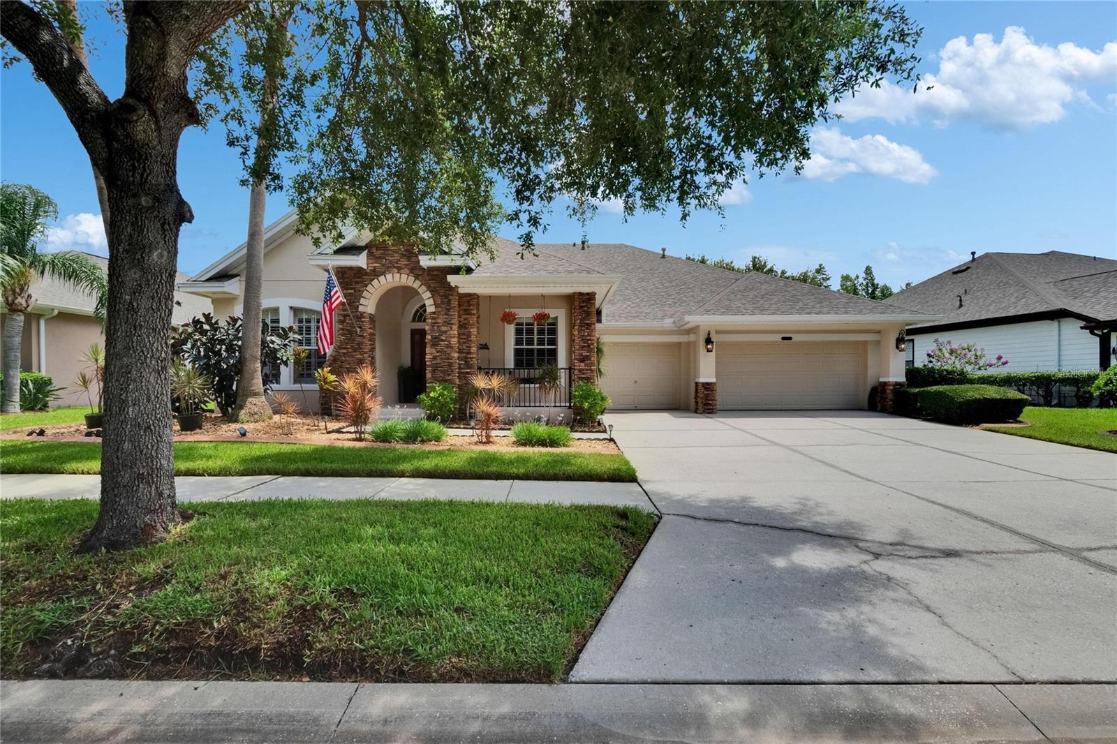 Welcome to a truly exceptional residence in the heart of the vibrant Connerton Village community of Land O’ Lakes. This David Weekley “Majestic” floor plan offers over 3,600 square feet of beautifully crafted living space, where luxury meets everyday comfort in perfect harmony. From the moment you arrive, the home’s striking stone-accented exterior and meticulously maintained landscaping set the tone—but it’s the charming covered front porch, complete with a classic swing, that truly captures the heart. It’s the kind of place where morning coffee turns into meaningful conversations. This great home features 3 bedrooms, 3 full bathrooms, 2 half baths, a formal dining room perfect for holiday dinners, an executive office, a generous family room, a flex room that can be converted into a 4 bedroom , a theater room, a huge bonus room, a kitchenette, a big laundry room and a gourmet kitchen designed to bring everyone together. Every detail of the home reflects pride of ownership and refined finishes, including crown molding, motion-sensor lighting, PLANTATION SHUTTERS throughout first floor, the oversized three-car garage featuring EPOXY FLOOR, AN ELECTRIC VEHICLE CHARGING STATION, ROOF (2022), EXTERIOR PAINT (2022), NEWER HVAC, CULLIGAN WATER SOFTENER SYSTEM UPDATED WITH A NEW TANK (2025) ensure peace of mind. The expansive chef’s kitchen is both beautiful and functional, with granite countertops, stainless steel appliances, GAS range, wood cabinetry, decorative stone accents, under-cabinet lighting, a REVERSE OSMOSIS SYSTEM, an oversized island with breakfast bar, and a walk-in pantry. The elegant owner’s retreat provides a serene escape, complete with a spa-style bath featuring a marble dual vanity, soaking tub, and an enviable custom walk-in closet. Upstairs, the home truly shines with a spacious bonus room and your very own PRIVATE THEATER , complete with projector and surround system. Whether it’s family movie night, hosting friends for the big game, or creating unforgettable sleepovers, this space is perfect for entertainment and memory-making. Outside, unwind on the large screened-in lanai overlooking a tranquil conservation area. A convenient outdoor half bath, and a fenced backyard with room to build a pool make this home as functional as it is beautiful. Residents in Connerton enjoy resort-style amenities, including a clubhouse with a café and a renovated fitness center, an aquatic complex with a splash park, an Olympic lap pool, and slides, as well as tennis courts, playgrounds, dog parks, nature trails, and much more. Don’t miss the opportunity to make this extraordinary home.