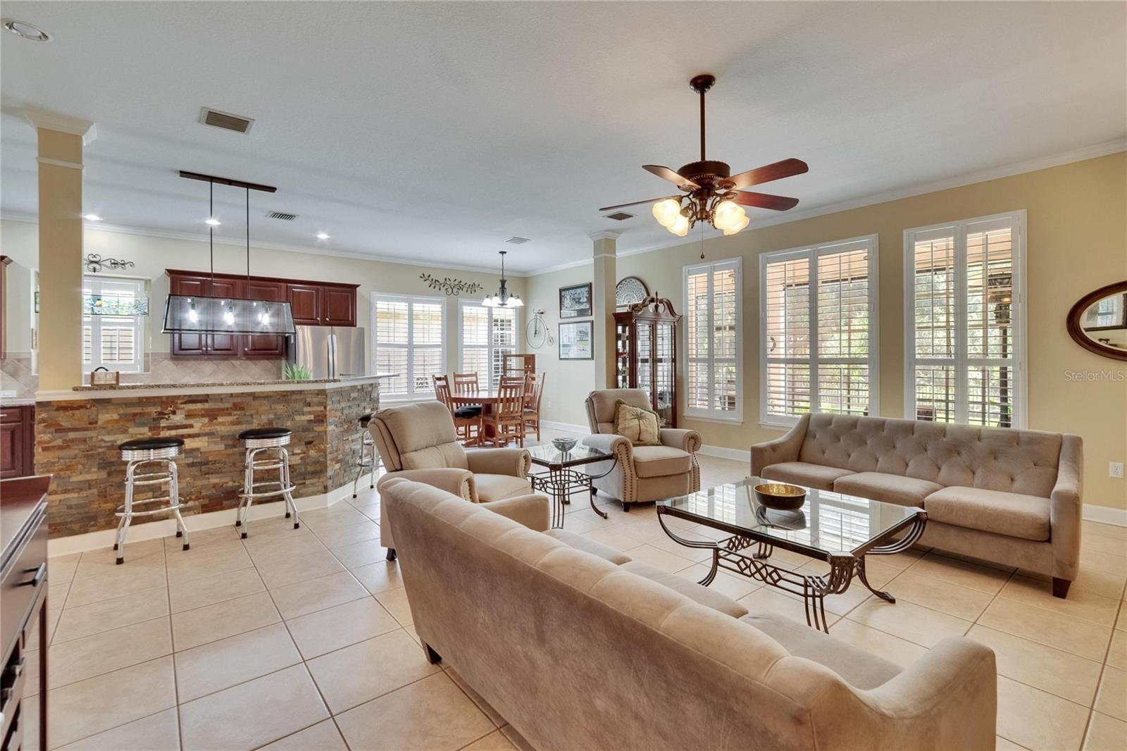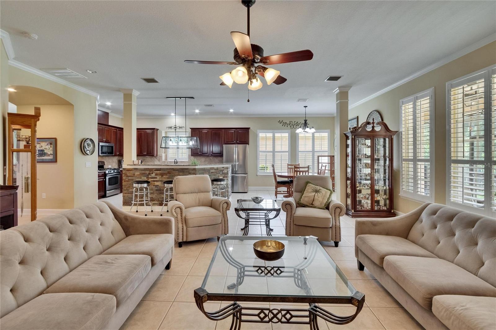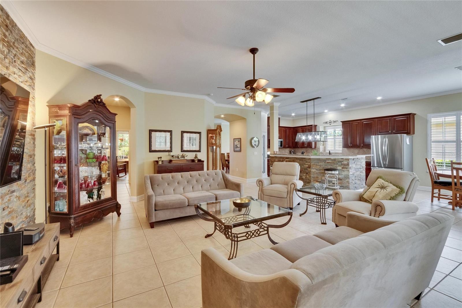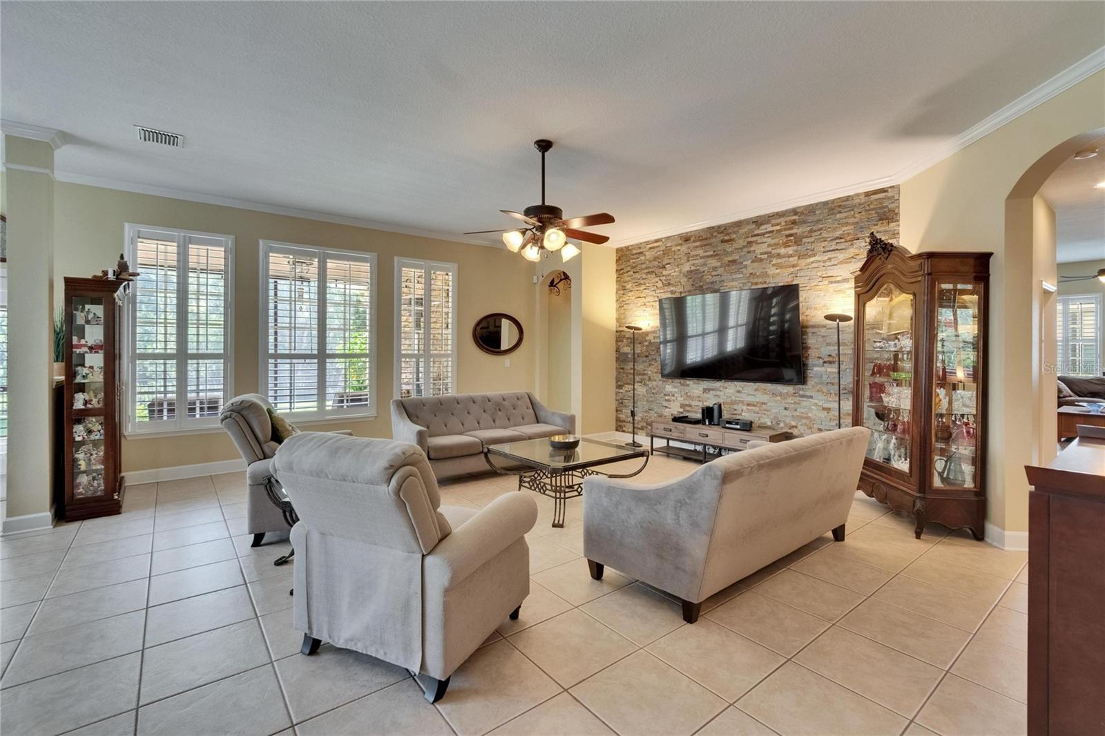 Welcome to a truly exceptional residence in the heart of the vibrant Connerton Village community of Land O’ Lakes. This David Weekley “Majestic” floor plan offers over 3,600 square feet of beautifully crafted living space, where luxury meets everyday comfort in perfect harmony. From the moment you arrive, the home’s striking stone-accented exterior and meticulously maintained landscaping set the tone—but it’s the charming covered front porch, complete with a classic swing, that truly captures the heart. It’s the kind of place where morning coffee turns into meaningful conversations. This great home features 3 bedrooms, 3 full bathrooms, 2 half baths, a formal dining room perfect for holiday dinners, an executive office, a generous family room, a flex room that can be converted into a 4 bedroom , a theater room, a huge bonus room, a kitchenette, a big laundry room and a gourmet kitchen designed to bring everyone together. Every detail of the home reflects pride of ownership and refined finishes, including crown molding, motion-sensor lighting, PLANTATION SHUTTERS throughout first floor, the oversized three-car garage featuring EPOXY FLOOR, AN ELECTRIC VEHICLE CHARGING STATION, ROOF (2022), EXTERIOR PAINT (2022), NEWER HVAC, CULLIGAN WATER SOFTENER SYSTEM UPDATED WITH A NEW TANK (2025) ensure peace of mind. The expansive chef’s kitchen is both beautiful and functional, with granite countertops, stainless steel appliances, GAS range, wood cabinetry, decorative stone accents, under-cabinet lighting, a REVERSE OSMOSIS SYSTEM, an oversized island with breakfast bar, and a walk-in pantry. The elegant owner’s retreat provides a serene escape, complete with a spa-style bath featuring a marble dual vanity, soaking tub, and an enviable custom walk-in closet. Upstairs, the home truly shines with a spacious bonus room and your very own PRIVATE THEATER , complete with projector and surround system. Whether it’s family movie night, hosting friends for the big game, or creating unforgettable sleepovers, this space is perfect for entertainment and memory-making. Outside, unwind on the large screened-in lanai overlooking a tranquil conservation area. A convenient outdoor half bath, and a fenced backyard with room to build a pool make this home as functional as it is beautiful. Residents in Connerton enjoy resort-style amenities, including a clubhouse with a café and a renovated fitness center, an aquatic complex with a splash park, an Olympic lap pool, and slides, as well as tennis courts, playgrounds, dog parks, nature trails, and much more. Don’t miss the opportunity to make this extraordinary home.