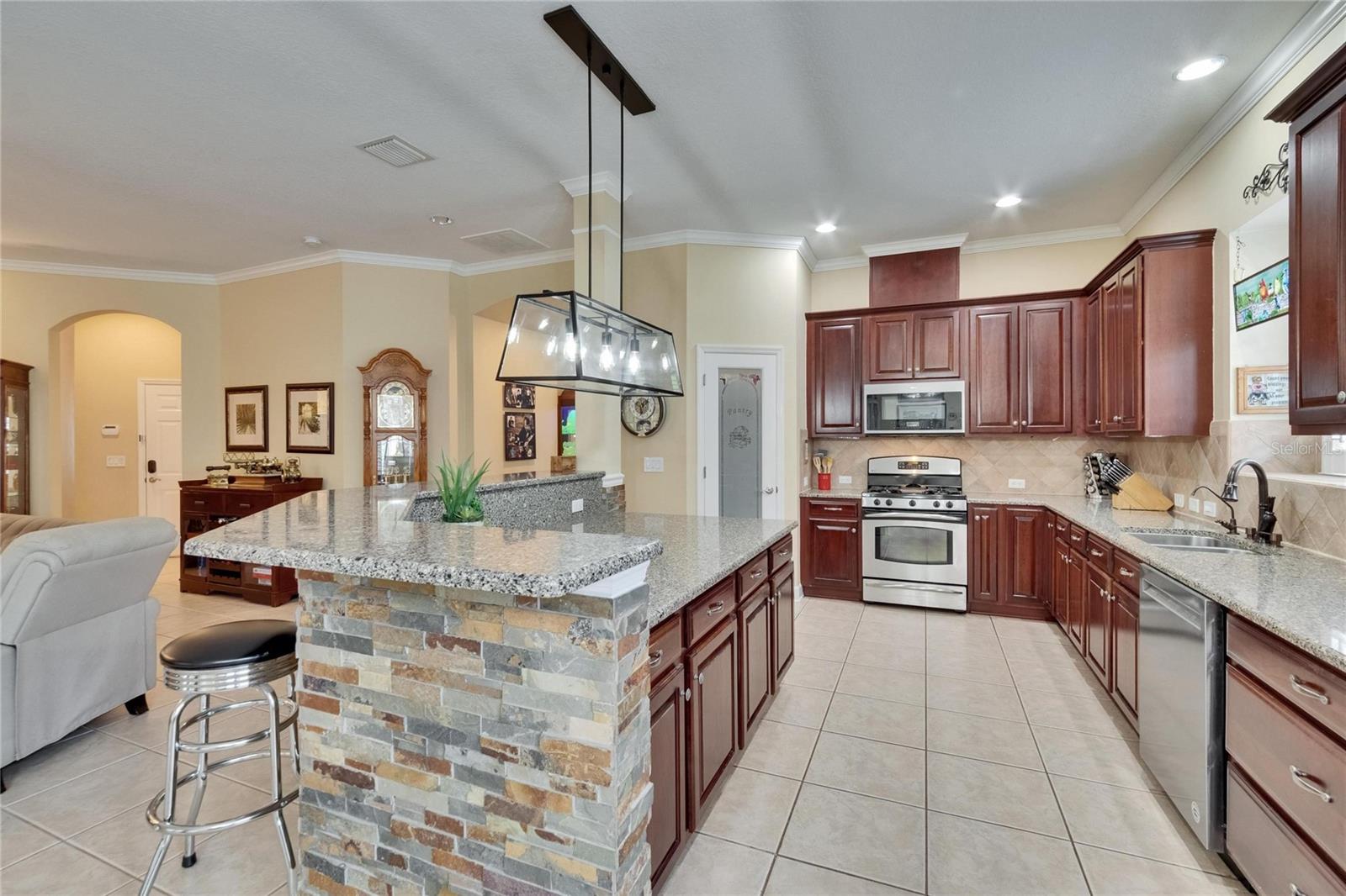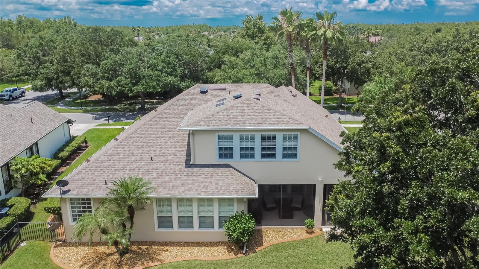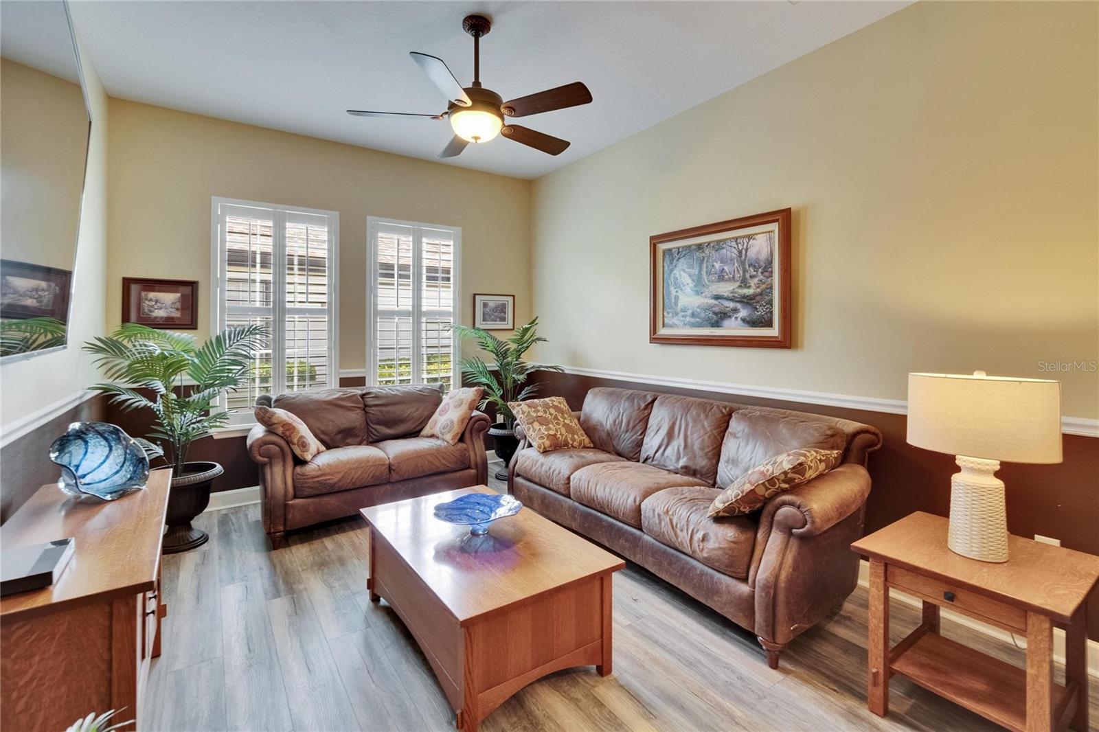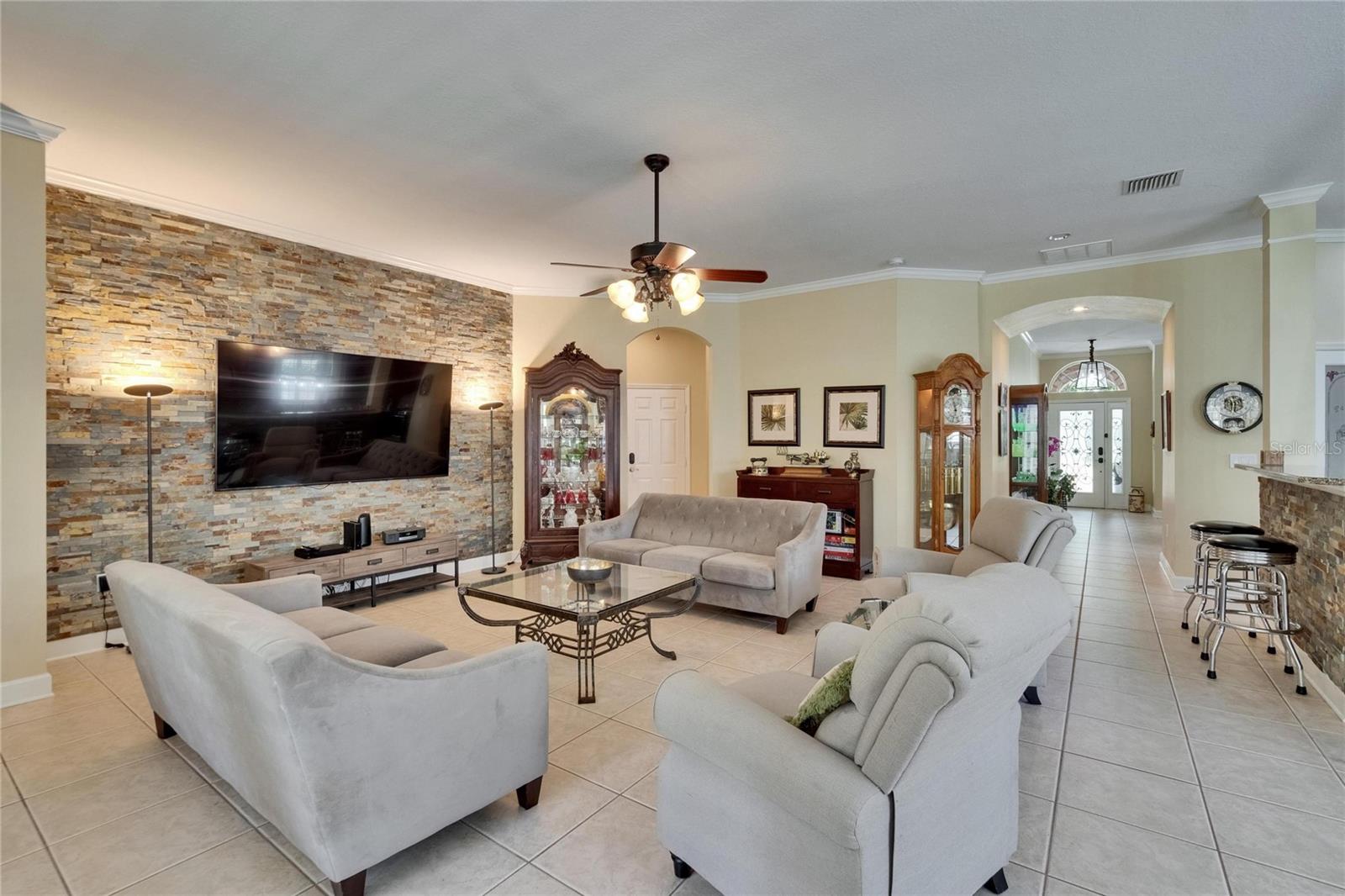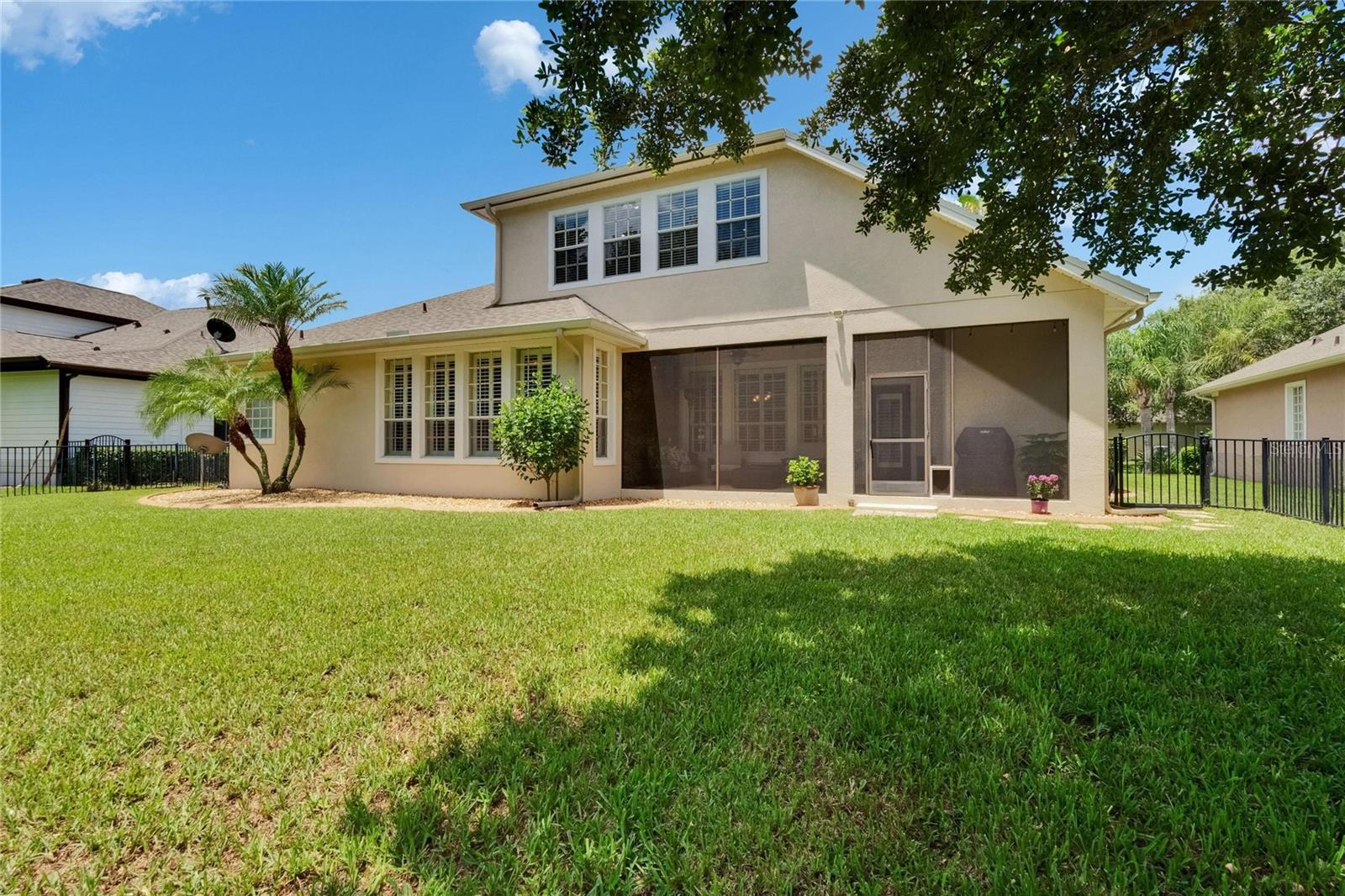 Welcome to a truly exceptional residence in the heart of the vibrant Connerton Village community of Land O’ Lakes. This David Weekley “Majestic” floor plan offers over 3,600 square feet of beautifully crafted living space, where luxury meets everyday comfort in perfect harmony. From the moment you arrive, the home’s striking stone-accented exterior and meticulously maintained landscaping set the tone—but it’s the charming covered front porch, complete with a classic swing, that truly captures the heart. It’s the kind of place where morning coffee turns into meaningful conversations. This great home features 3 bedrooms, 3 full bathrooms, 2 half baths, a formal dining room perfect for holiday dinners, an executive office, a generous family room, a flex room that can be converted into a 4 bedroom , a theater room, a huge bonus room, a kitchenette, a big laundry room and a gourmet kitchen designed to bring everyone together. Every detail of the home reflects pride of ownership and refined finishes, including crown molding, motion-sensor lighting, PLANTATION SHUTTERS throughout first floor, the oversized three-car garage featuring EPOXY FLOOR, AN ELECTRIC VEHICLE CHARGING STATION, ROOF (2022), EXTERIOR PAINT (2022), NEWER HVAC, CULLIGAN WATER SOFTENER SYSTEM UPDATED WITH A NEW TANK (2025) ensure peace of mind. The expansive chef’s kitchen is both beautiful and functional, with granite countertops, stainless steel appliances, GAS range, wood cabinetry, decorative stone accents, under-cabinet lighting, a REVERSE OSMOSIS SYSTEM, an oversized island with breakfast bar, and a walk-in pantry. The elegant owner’s retreat provides a serene escape, complete with a spa-style bath featuring a marble dual vanity, soaking tub, and an enviable custom walk-in closet. Upstairs, the home truly shines with a spacious bonus room and your very own PRIVATE THEATER , complete with projector and surround system. Whether it’s family movie night, hosting friends for the big game, or creating unforgettable sleepovers, this space is perfect for entertainment and memory-making. Outside, unwind on the large screened-in lanai overlooking a tranquil conservation area. A convenient outdoor half bath, and a fenced backyard with room to build a pool make this home as functional as it is beautiful. Residents in Connerton enjoy resort-style amenities, including a clubhouse with a café and a renovated fitness center, an aquatic complex with a splash park, an Olympic lap pool, and slides, as well as tennis courts, playgrounds, dog parks, nature trails, and much more. Don’t miss the opportunity to make this extraordinary home.