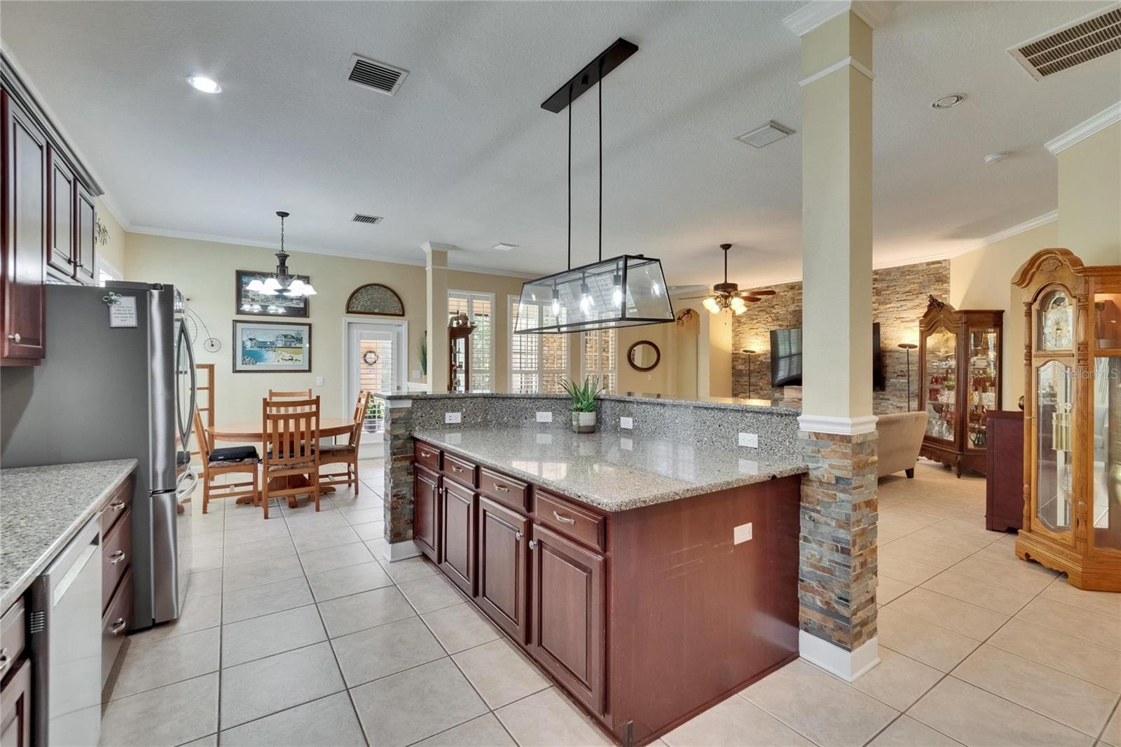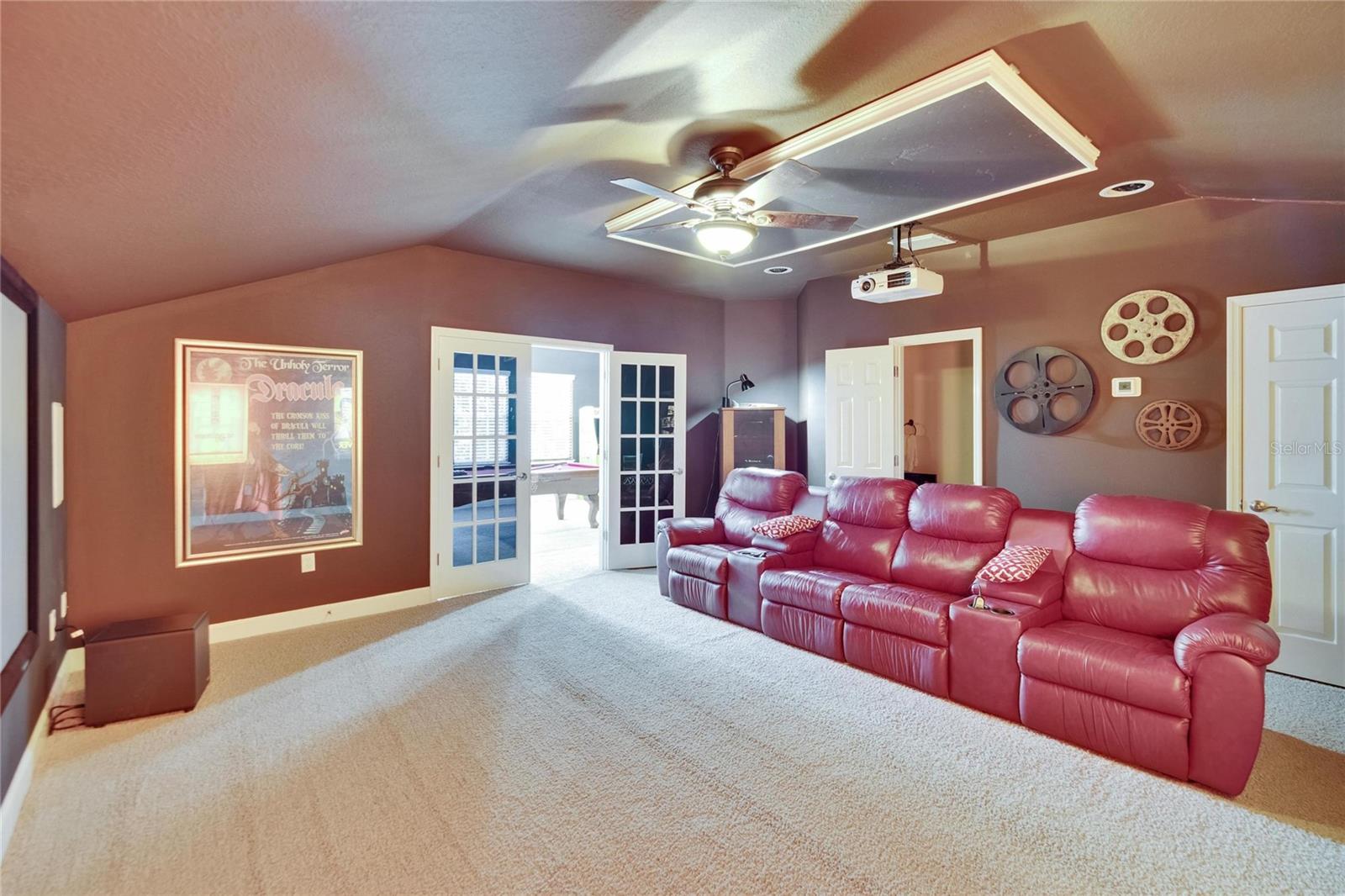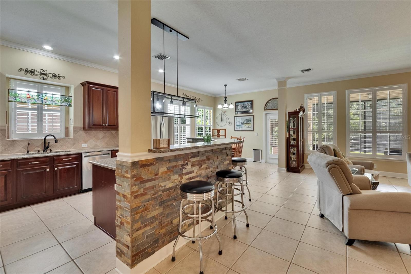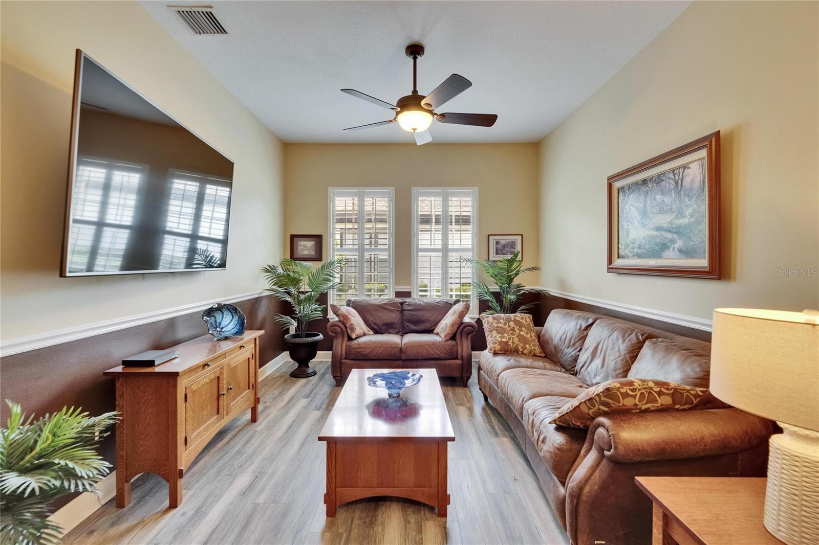 Welcome to a truly exceptional residence in the heart of the vibrant Connerton Village community of Land O’ Lakes. This David Weekley “Majestic” floor plan offers over 3,600 square feet of beautifully crafted living space, where luxury meets everyday comfort in perfect harmony. From the moment you arrive, the home’s striking stone-accented exterior and meticulously maintained landscaping set the tone—but it’s the charming covered front porch, complete with a classic swing, that truly captures the heart. It’s the kind of place where morning coffee turns into meaningful conversations. This great home features 3 bedrooms, 3 full bathrooms, 2 half baths, a formal dining room perfect for holiday dinners, an executive office, a generous family room, a flex room that can be converted into a 4 bedroom , a theater room, a huge bonus room, a kitchenette, a big laundry room and a gourmet kitchen designed to bring everyone together. Every detail of the home reflects pride of ownership and refined finishes, including crown molding, motion-sensor lighting, PLANTATION SHUTTERS throughout first floor, the oversized three-car garage featuring EPOXY FLOOR, AN ELECTRIC VEHICLE CHARGING STATION, ROOF (2022), EXTERIOR PAINT (2022), NEWER HVAC, CULLIGAN WATER SOFTENER SYSTEM UPDATED WITH A NEW TANK (2025) ensure peace of mind. The expansive chef’s kitchen is both beautiful and functional, with granite countertops, stainless steel appliances, GAS range, wood cabinetry, decorative stone accents, under-cabinet lighting, a REVERSE OSMOSIS SYSTEM, an oversized island with breakfast bar, and a walk-in pantry. The elegant owner’s retreat provides a serene escape, complete with a spa-style bath featuring a marble dual vanity, soaking tub, and an enviable custom walk-in closet. Upstairs, the home truly shines with a spacious bonus room and your very own PRIVATE THEATER , complete with projector and surround system. Whether it’s family movie night, hosting friends for the big game, or creating unforgettable sleepovers, this space is perfect for entertainment and memory-making. Outside, unwind on the large screened-in lanai overlooking a tranquil conservation area. A convenient outdoor half bath, and a fenced backyard with room to build a pool make this home as functional as it is beautiful. Residents in Connerton enjoy resort-style amenities, including a clubhouse with a café and a renovated fitness center, an aquatic complex with a splash park, an Olympic lap pool, and slides, as well as tennis courts, playgrounds, dog parks, nature trails, and much more. Don’t miss the opportunity to make this extraordinary home.