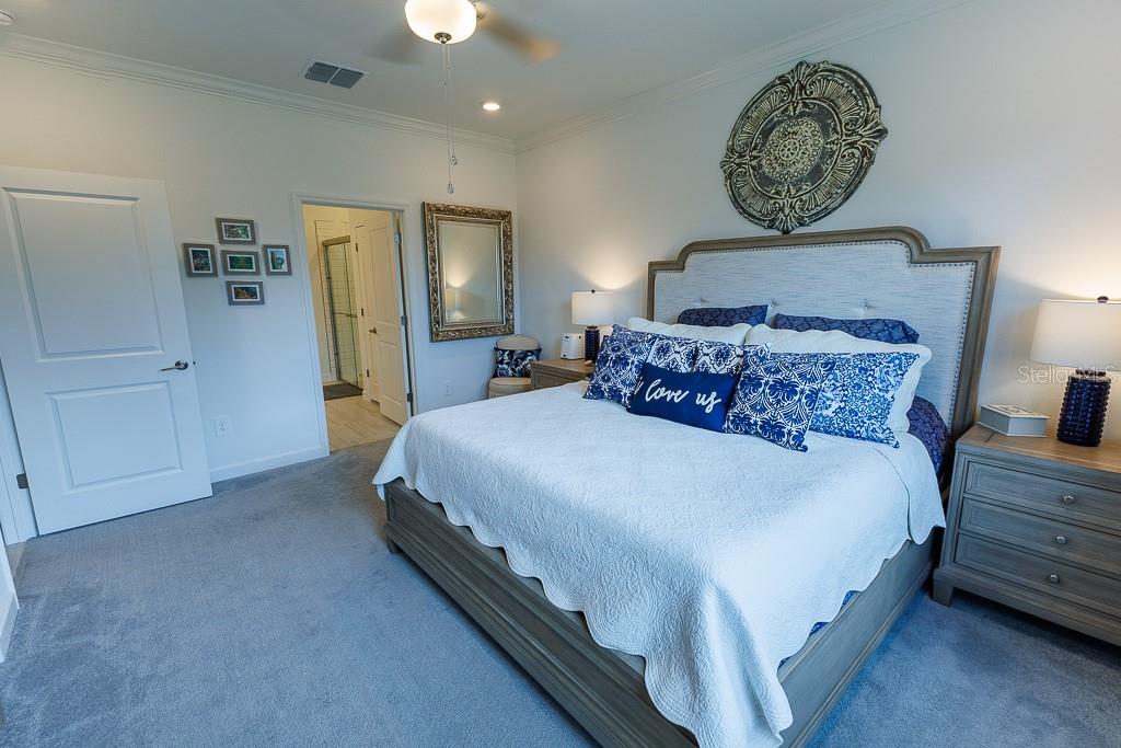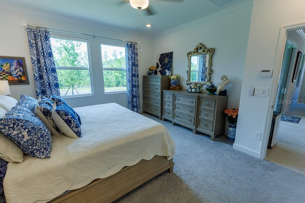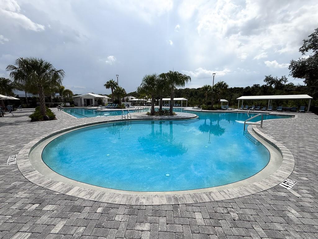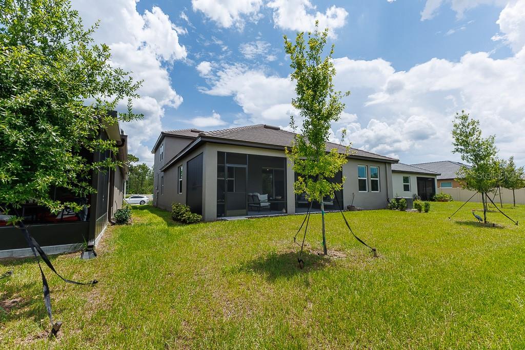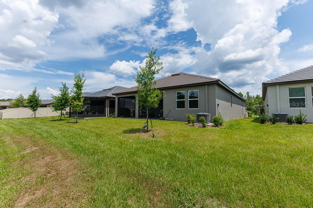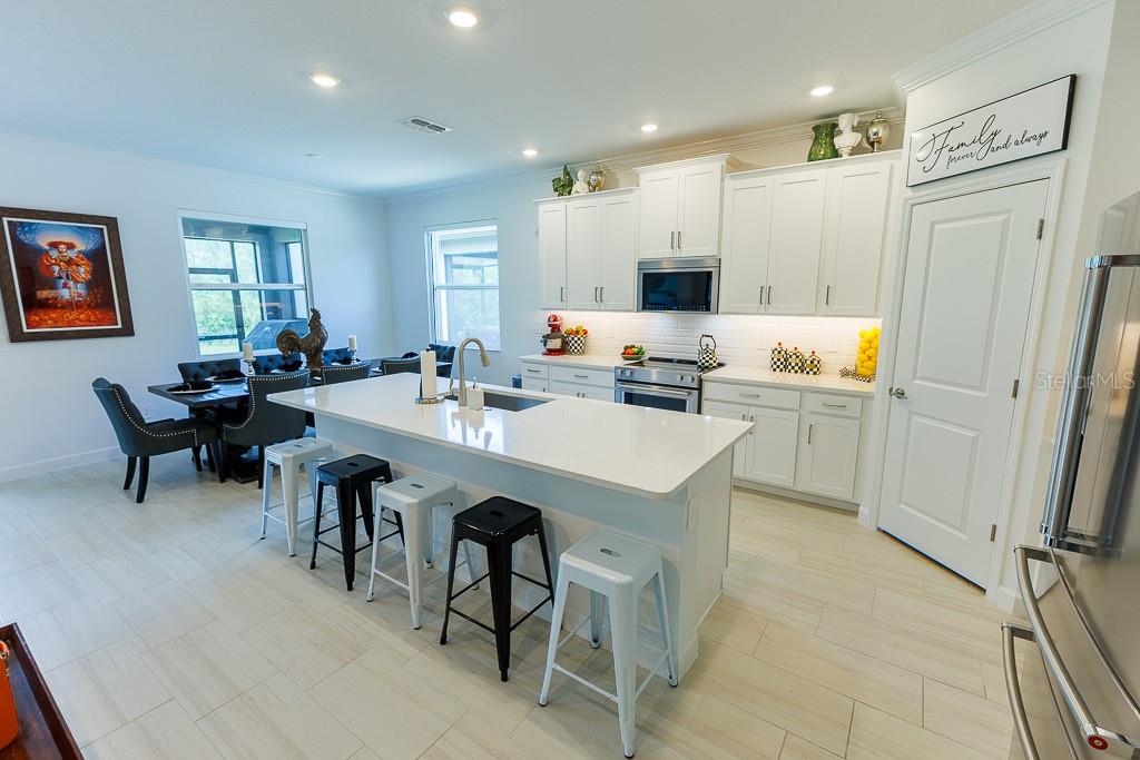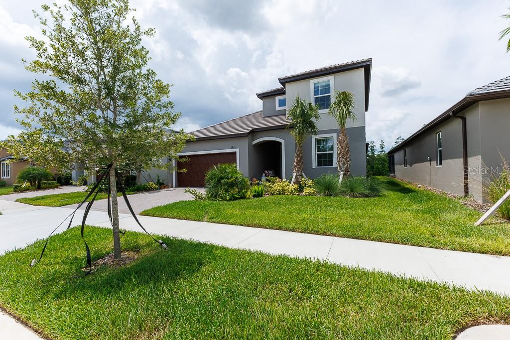 Closer to the Fun in Phase One! Better Than New w/Over $36,000 in Upgrades this home has 2,366 sq. ft. home offering a triple split plan w/3 bedrooms & 3 full bathrooms, bonus rooms on 1st and 2nd floor, and 3-car tandem garage. Over $36,000 in owner upgrades make this home truly better than new! Exterior highlights include no rear neighbors, home backs up to CDD owned wooded land & ponds, paver driveway, wood look garage door, tile roof, designer accents & trim, designer landscaping, covered paver entryway w/can lighting, 19x14 rear screened in patio w/side privacy & fan prewire, fences are allowed. Interior highlights include double pane impact windows, crown molding in the main living areas & owner’s suite, & lots of stone look plank tile! The owner added the following items since building: automated blackout shades in owner’s retreat, family room, & breakfast nook windows; whole house water softener; & alarm system. Newly built Lennar homes no longer include cabinets in the laundry room or crown molding downstairs. Kitchen highlights include island w/sink, lots of storage, & power; closet pantry for added convenience & storage; staggered 42” upper cabinets w/undercabinet lighting; quartz countertops; brushed nickel pulls; can lighting; crown molding; eating area large enough for a grand table so the flex space can be dedicated to another purpose. The owner added the following items since building: kitchen backsplash, BRAND NEW FULL SUITE OF KITCHENAID APPLIANCES! Livingroom highlights include can lighting, crown molding, ceiling fan, & sliders to huge rear patio & great views of the ponds & wooded area. The owner added the following items since building: four Surround sound speakers in ceiling in livingroom: Origin Acoustics Director D65 speakers are fully pivoting 2-way speakers; & additional can lighting. Owner’s retreat highlights include crown molding, can lighting, ceiling fan, & great views of the ponds & wooded area. The owner added the following items since building: additional can lighting. The bathroom highlights include large walk-in closet, quartz countertops w/dual sinks, sitting vanity, & walk in shower w/seating, a niche, brushed nickel pulls, & glass doors. Downstairs layout has foyer, welcome home center/desk, 3 car tandem garage, owner’s Suite, livingroom, bedroom 2, full guest bathroom, interior laundry room, kitchen, dining area in kitchen, office/Den/Dining Area/Flex Room, & 19x14 rear screened in patio w/side privacy & fan prewire. Upstairs layout has bedroom 3, 19x14 loft (flex space), & full bathroom. Community clubhouse highlights include an awe inspiring impact to the appearance of the neighborhood; covered portico drop off area; amazing resort style pool area w/beach style entry area, lap lanes, plenty of deck space & chairs, covered areas to avoid sun exposure; 2 full restaurant/bars – one inside & one overlooking the pool area; billiards room w/television; aerobics/fitness mirrored studio w/various equipment; huge fitness room w/advanced workout equipment; card/gaming room w/library; huge event hall w/stage; business workstations w/computers & a printer; shuffleboard; pickleball; & bocce ball. Additionally, the neighborhood is golf cart friendly & has lots of walking trails & other highlights such as plans for a future lagoon! Fees includes lawn, bushes and tree maintenance, common area maintenance, irrigation, mulch yearly, 2 GB internet, clubhouse/pool maintenance, and exterior home painting!