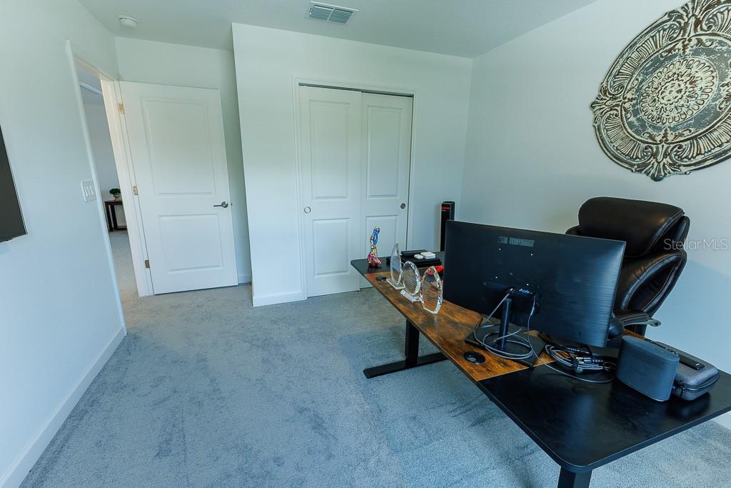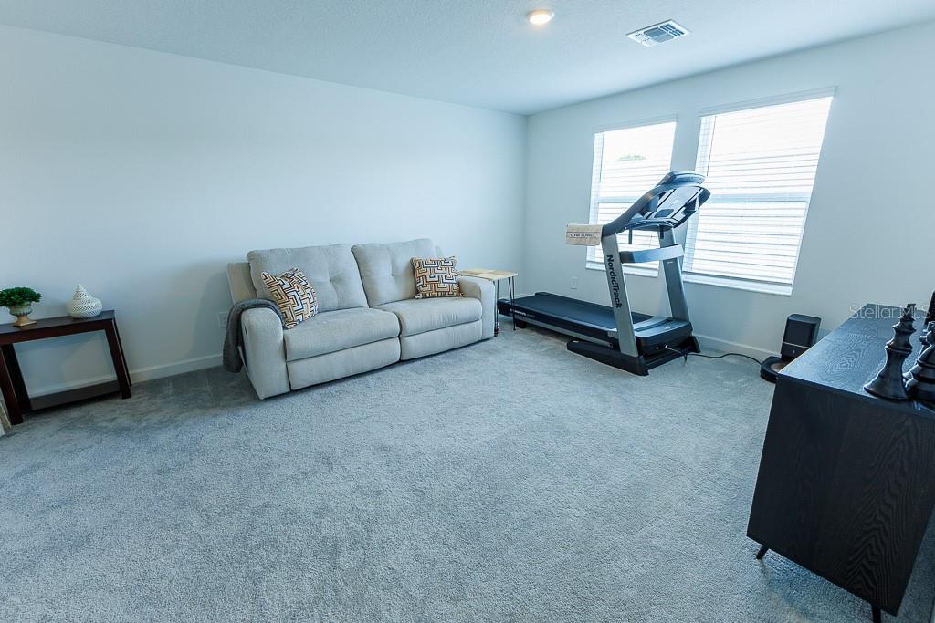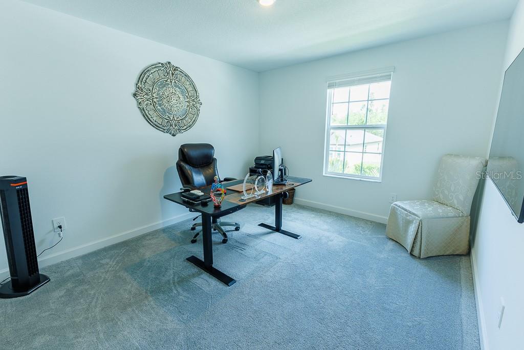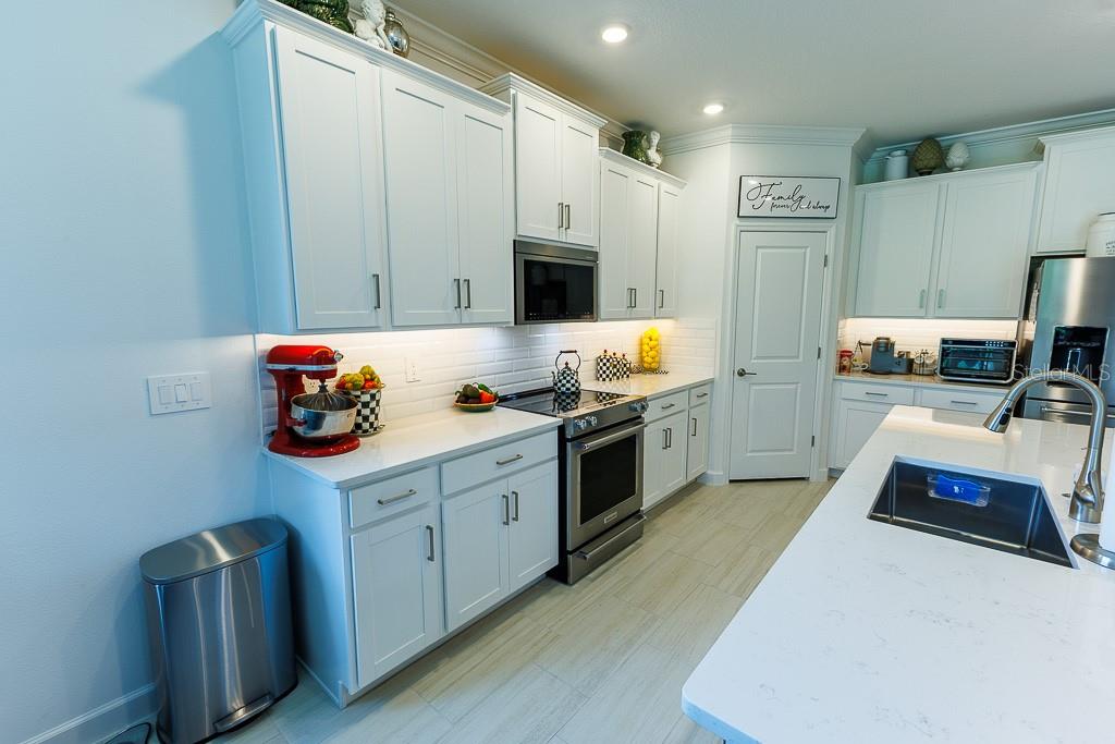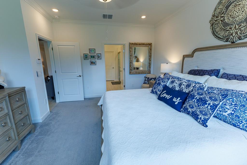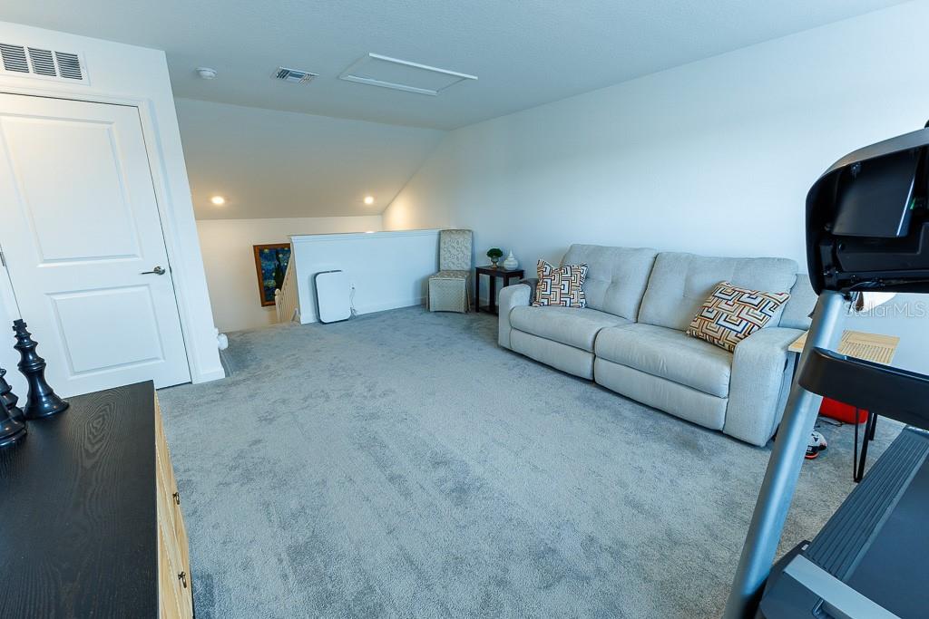 Closer to the Fun in Phase One! Better Than New w/Over $36,000 in Upgrades this home has 2,366 sq. ft. home offering a triple split plan w/3 bedrooms & 3 full bathrooms, bonus rooms on 1st and 2nd floor, and 3-car tandem garage. Over $36,000 in owner upgrades make this home truly better than new! Exterior highlights include no rear neighbors, home backs up to CDD owned wooded land & ponds, paver driveway, wood look garage door, tile roof, designer accents & trim, designer landscaping, covered paver entryway w/can lighting, 19x14 rear screened in patio w/side privacy & fan prewire, fences are allowed. Interior highlights include double pane impact windows, crown molding in the main living areas & owner’s suite, & lots of stone look plank tile! The owner added the following items since building: automated blackout shades in owner’s retreat, family room, & breakfast nook windows; whole house water softener; & alarm system. Newly built Lennar homes no longer include cabinets in the laundry room or crown molding downstairs. Kitchen highlights include island w/sink, lots of storage, & power; closet pantry for added convenience & storage; staggered 42” upper cabinets w/undercabinet lighting; quartz countertops; brushed nickel pulls; can lighting; crown molding; eating area large enough for a grand table so the flex space can be dedicated to another purpose. The owner added the following items since building: kitchen backsplash, BRAND NEW FULL SUITE OF KITCHENAID APPLIANCES! Livingroom highlights include can lighting, crown molding, ceiling fan, & sliders to huge rear patio & great views of the ponds & wooded area. The owner added the following items since building: four Surround sound speakers in ceiling in livingroom: Origin Acoustics Director D65 speakers are fully pivoting 2-way speakers; & additional can lighting. Owner’s retreat highlights include crown molding, can lighting, ceiling fan, & great views of the ponds & wooded area. The owner added the following items since building: additional can lighting. The bathroom highlights include large walk-in closet, quartz countertops w/dual sinks, sitting vanity, & walk in shower w/seating, a niche, brushed nickel pulls, & glass doors. Downstairs layout has foyer, welcome home center/desk, 3 car tandem garage, owner’s Suite, livingroom, bedroom 2, full guest bathroom, interior laundry room, kitchen, dining area in kitchen, office/Den/Dining Area/Flex Room, & 19x14 rear screened in patio w/side privacy & fan prewire. Upstairs layout has bedroom 3, 19x14 loft (flex space), & full bathroom. Community clubhouse highlights include an awe inspiring impact to the appearance of the neighborhood; covered portico drop off area; amazing resort style pool area w/beach style entry area, lap lanes, plenty of deck space & chairs, covered areas to avoid sun exposure; 2 full restaurant/bars – one inside & one overlooking the pool area; billiards room w/television; aerobics/fitness mirrored studio w/various equipment; huge fitness room w/advanced workout equipment; card/gaming room w/library; huge event hall w/stage; business workstations w/computers & a printer; shuffleboard; pickleball; & bocce ball. Additionally, the neighborhood is golf cart friendly & has lots of walking trails & other highlights such as plans for a future lagoon! Fees includes lawn, bushes and tree maintenance, common area maintenance, irrigation, mulch yearly, 2 GB internet, clubhouse/pool maintenance, and exterior home painting!
