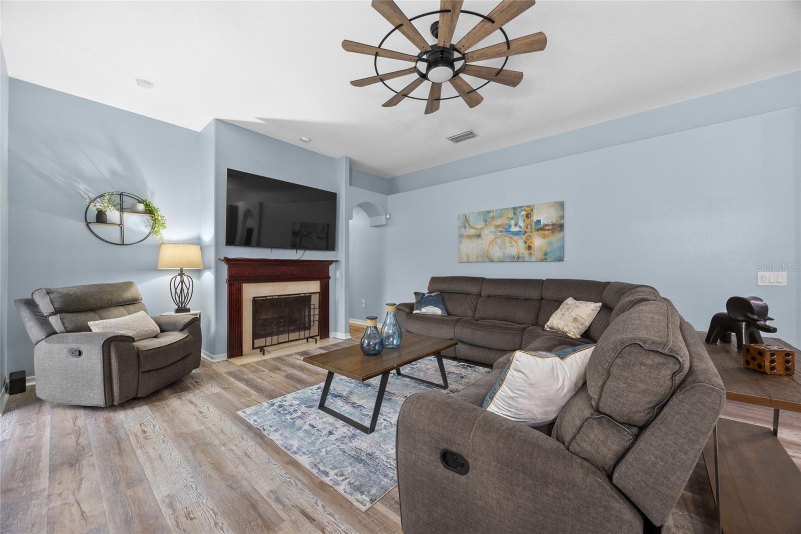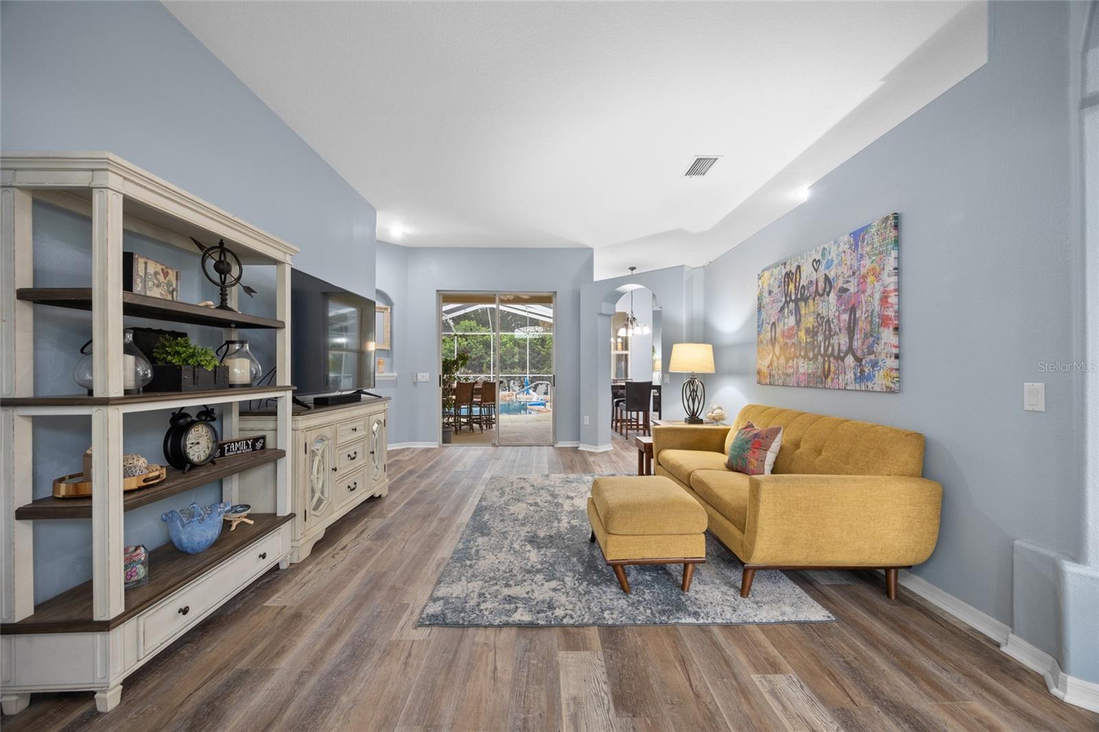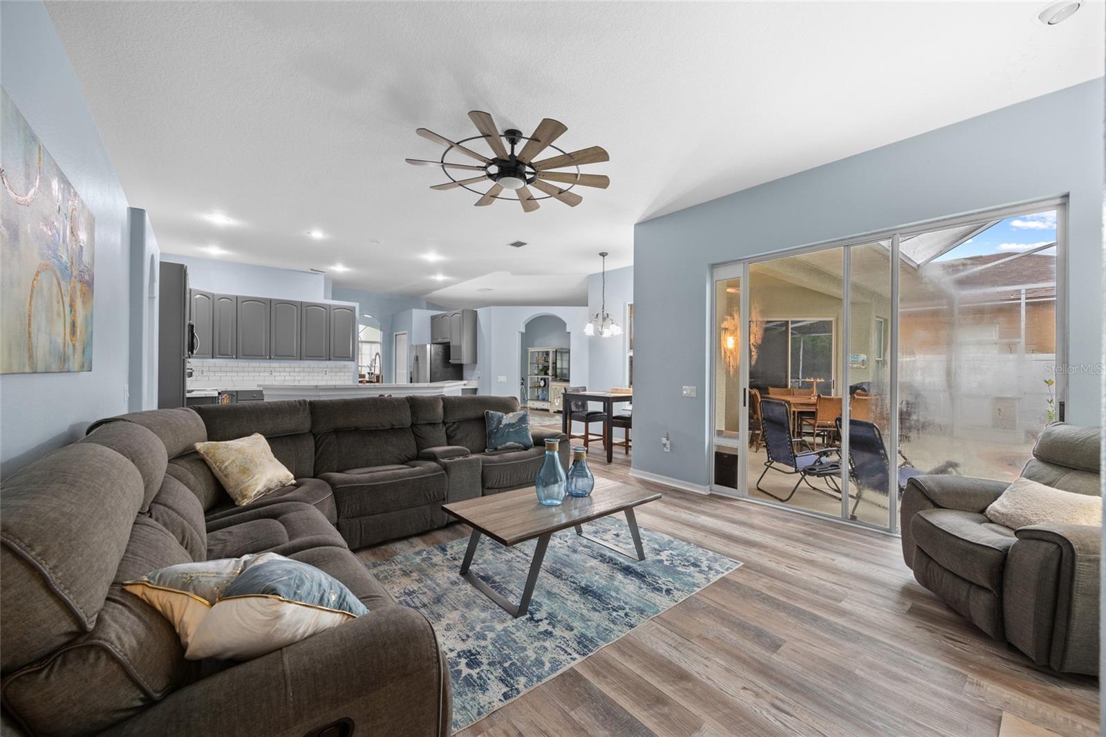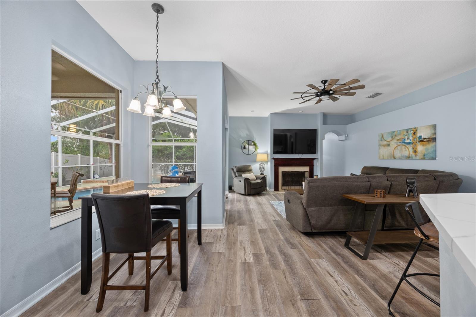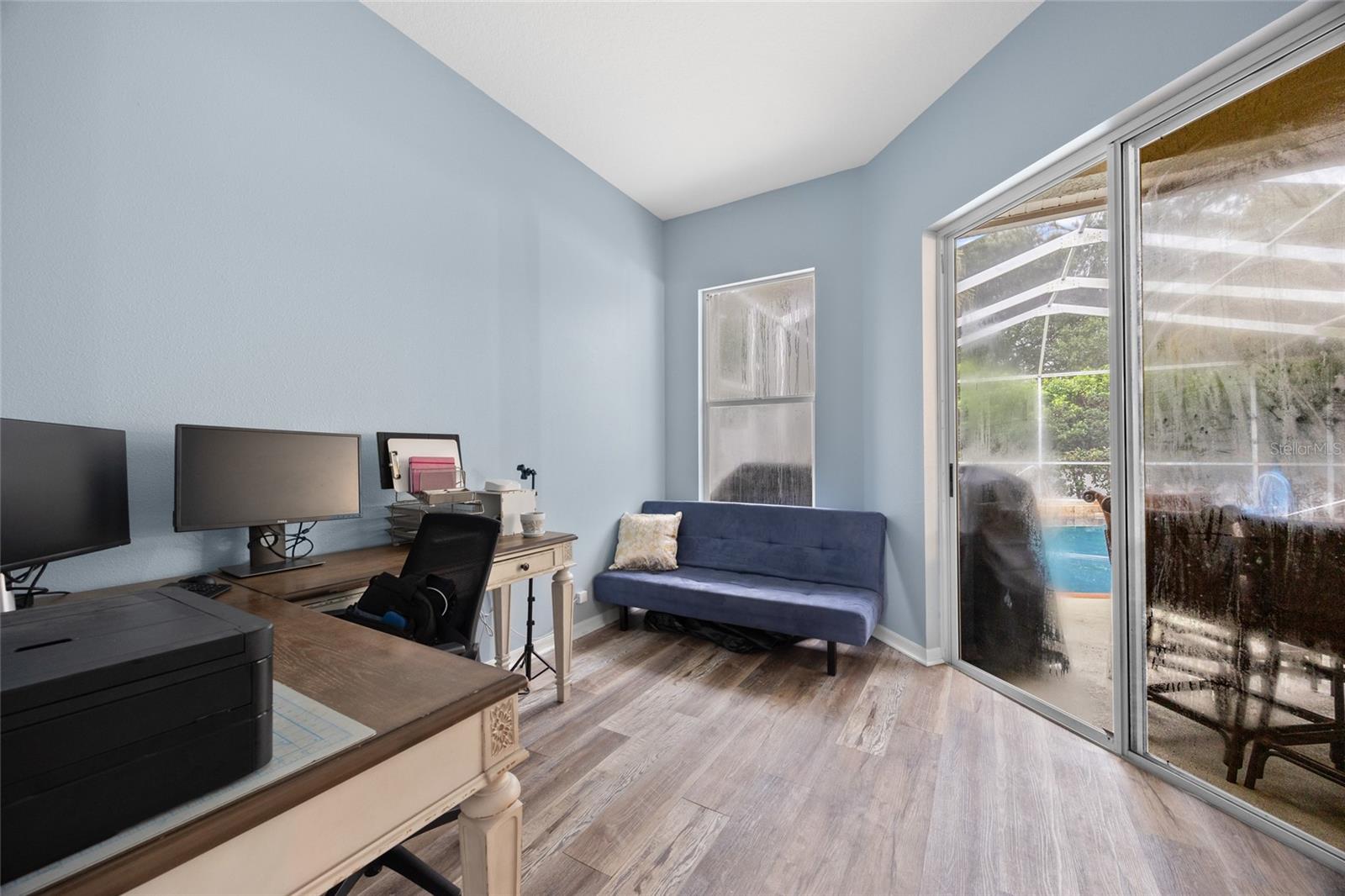 This beautifully maintained 4-bedroom, 3-bathroom pool home offers a desirable split bedroom floor plan, combining privacy and functionality. The spacious layout includes a 2-car garage and a heated pool with an attached Jacuzzi, perfect for relaxing or entertaining. Numerous recent upgrades enhance the home’s value and efficiency, including a new roof (2022), new A/C system (2023), new pool pump (2024), and a newly screened pool enclosure (2023). Inside, the home features vinyl flooring throughout, ZERO carpet, creating a clean, modern aesthetic and easy maintenance. The completely renovated kitchen is a chef’s dream, boasting a farmhouse sink, new garbage disposal, and updated cabinetry and finishes. The master suite is a true retreat, offering an adjoining office/den, dual walk-in closets, and a luxurious en-suite bath with dual vanities, a soaking tub, and a separate shower. A wood-burning fireplace adds warmth and charm to the living area, with the chimney professionally serviced in 2024. Three sliding glass doors lead out to the screened pool area, promoting seamless indoor-outdoor living. A full bathroom with pool access adds to the home’s practical layout. This move-in-ready home is a rare find, combining thoughtful upgrades, tasteful renovations, and the perfect Florida lifestyle. Come see this Stagecoach Village gem before it's too late.