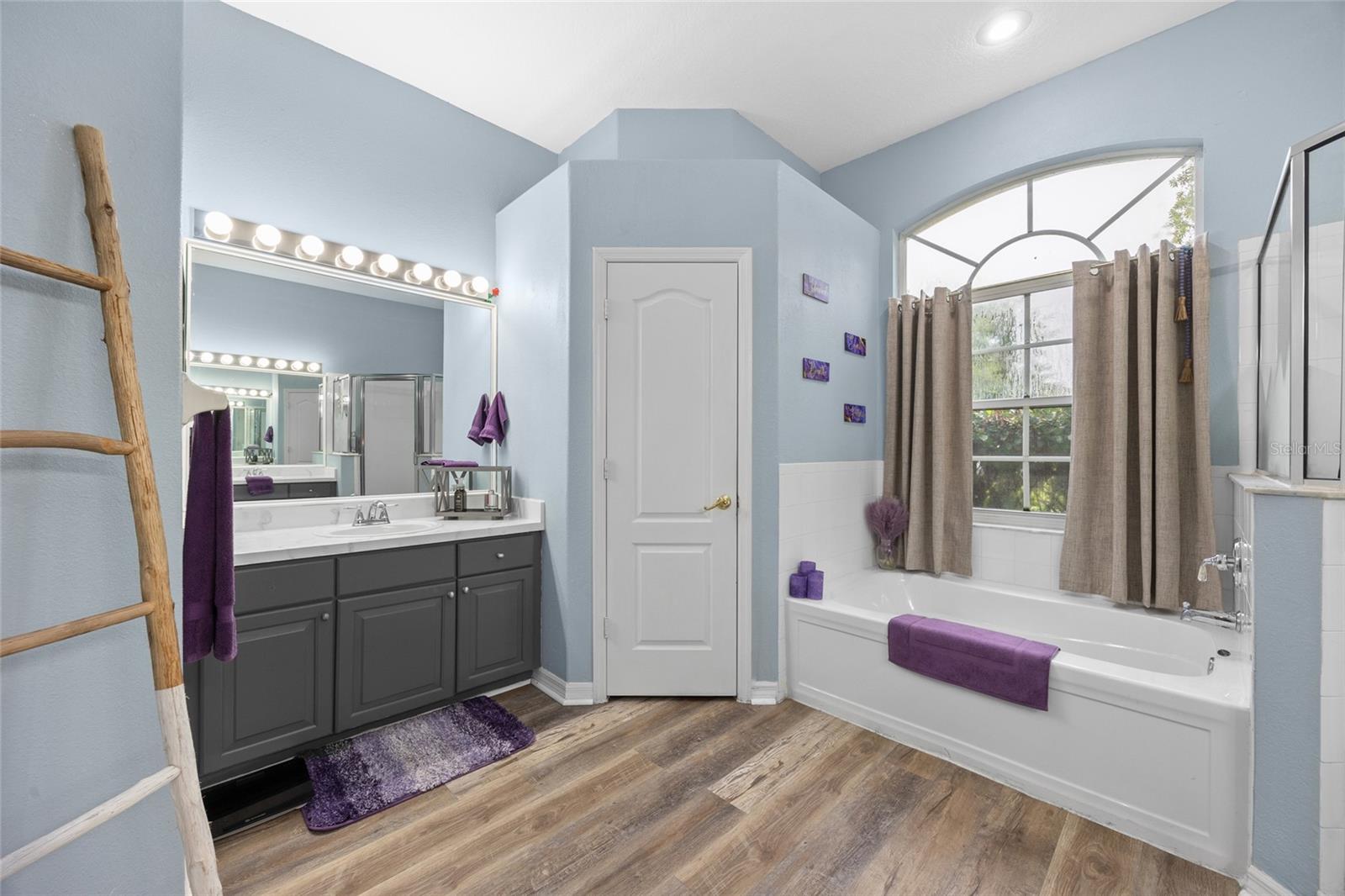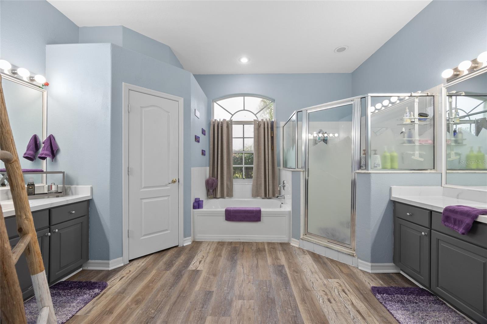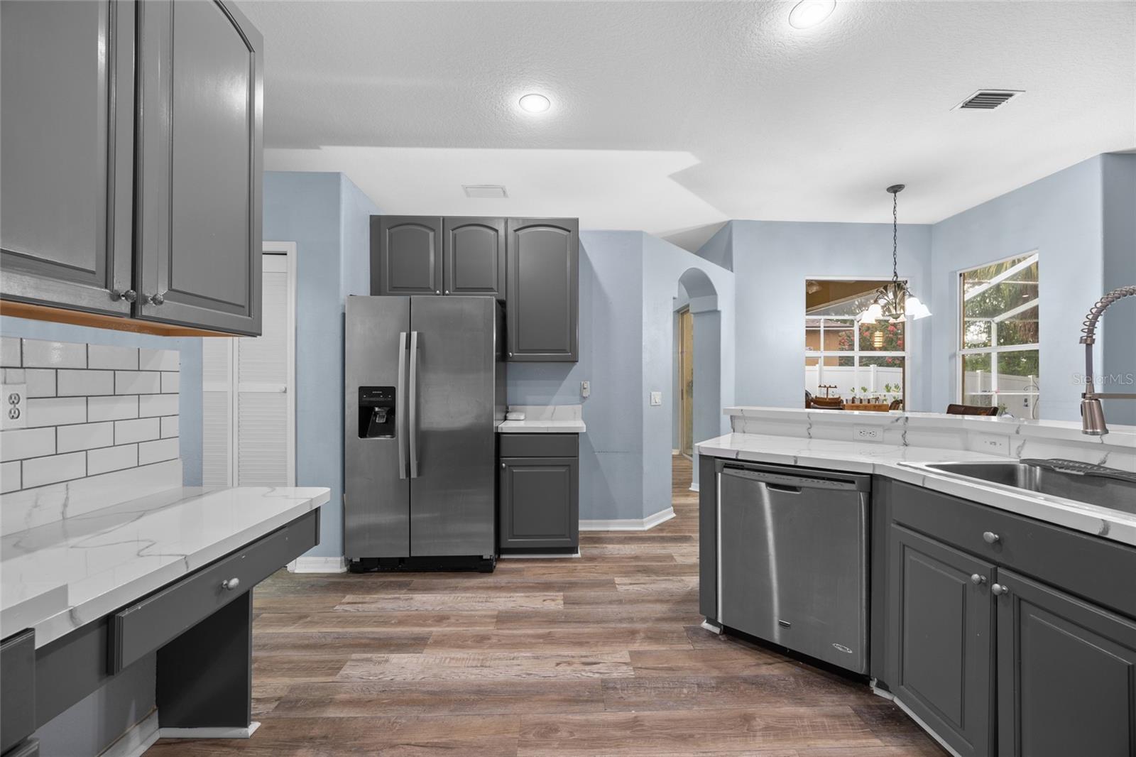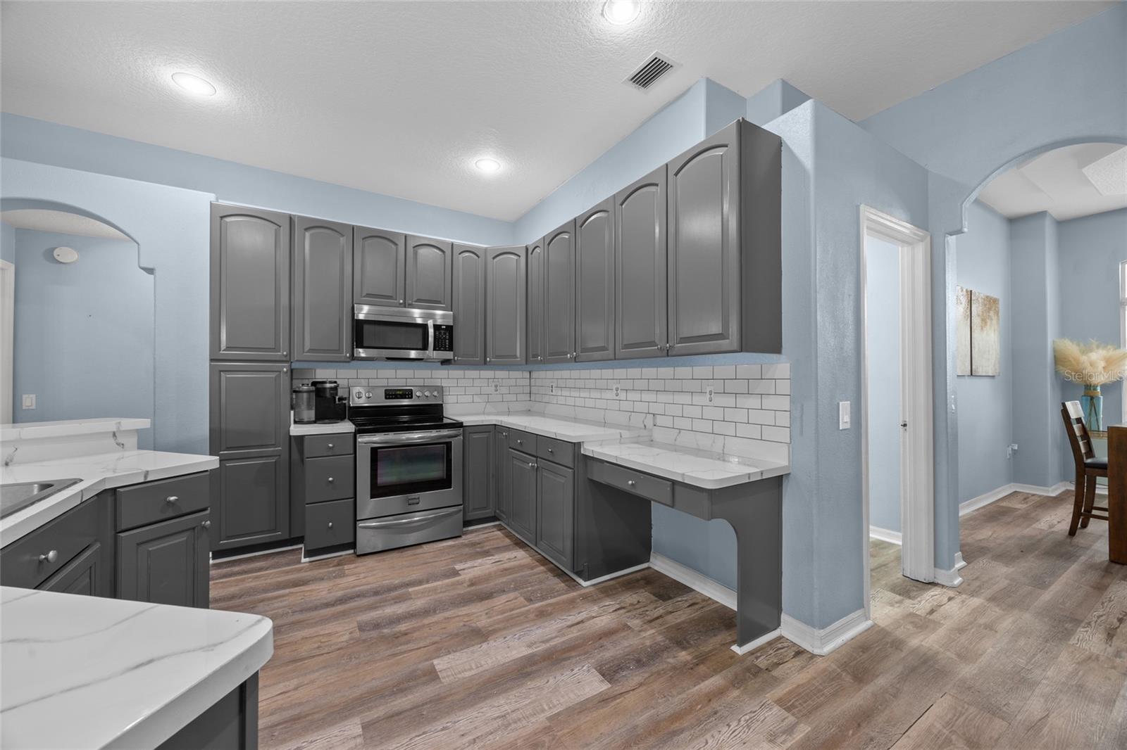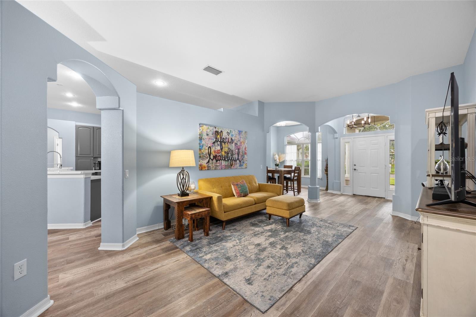 This beautifully maintained 4-bedroom, 3-bathroom pool home offers a desirable split bedroom floor plan, combining privacy and functionality. The spacious layout includes a 2-car garage and a heated pool with an attached Jacuzzi, perfect for relaxing or entertaining. Numerous recent upgrades enhance the home’s value and efficiency, including a new roof (2022), new A/C system (2023), new pool pump (2024), and a newly screened pool enclosure (2023). Inside, the home features vinyl flooring throughout, ZERO carpet, creating a clean, modern aesthetic and easy maintenance. The completely renovated kitchen is a chef’s dream, boasting a farmhouse sink, new garbage disposal, and updated cabinetry and finishes. The master suite is a true retreat, offering an adjoining office/den, dual walk-in closets, and a luxurious en-suite bath with dual vanities, a soaking tub, and a separate shower. A wood-burning fireplace adds warmth and charm to the living area, with the chimney professionally serviced in 2024. Three sliding glass doors lead out to the screened pool area, promoting seamless indoor-outdoor living. A full bathroom with pool access adds to the home’s practical layout. This move-in-ready home is a rare find, combining thoughtful upgrades, tasteful renovations, and the perfect Florida lifestyle. Come see this Stagecoach Village gem before it's too late.