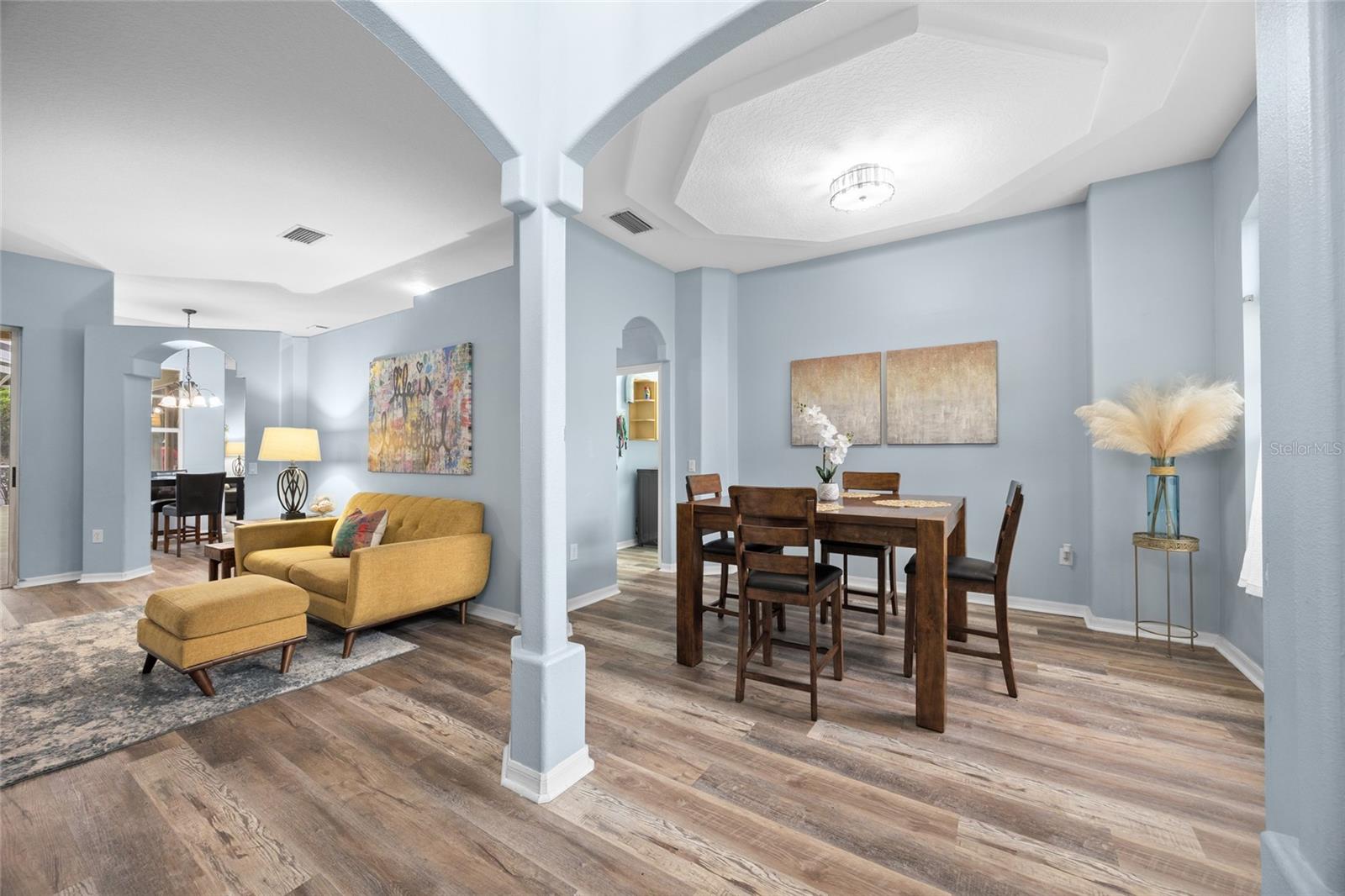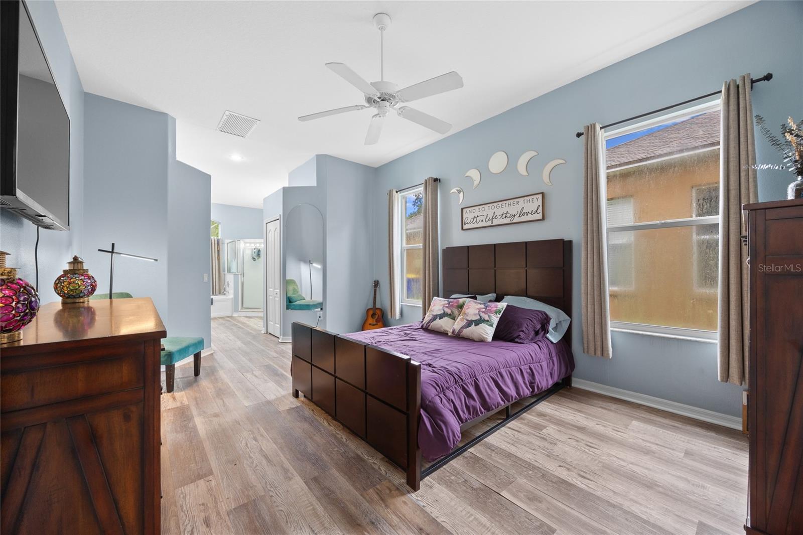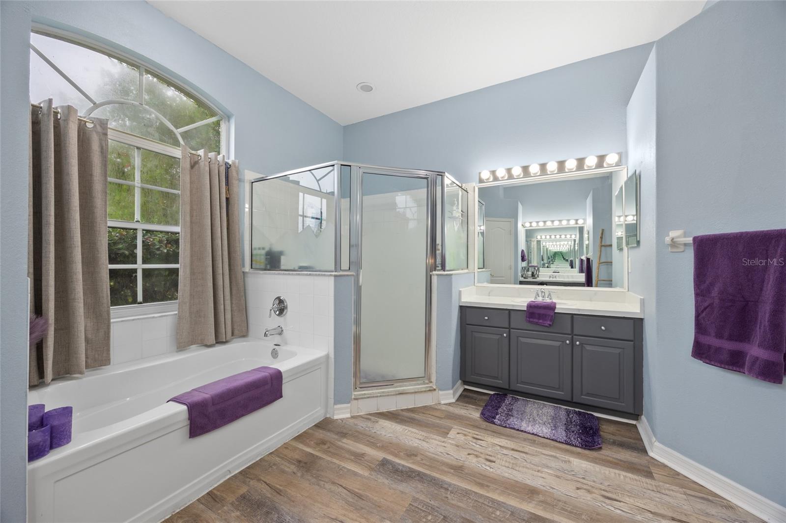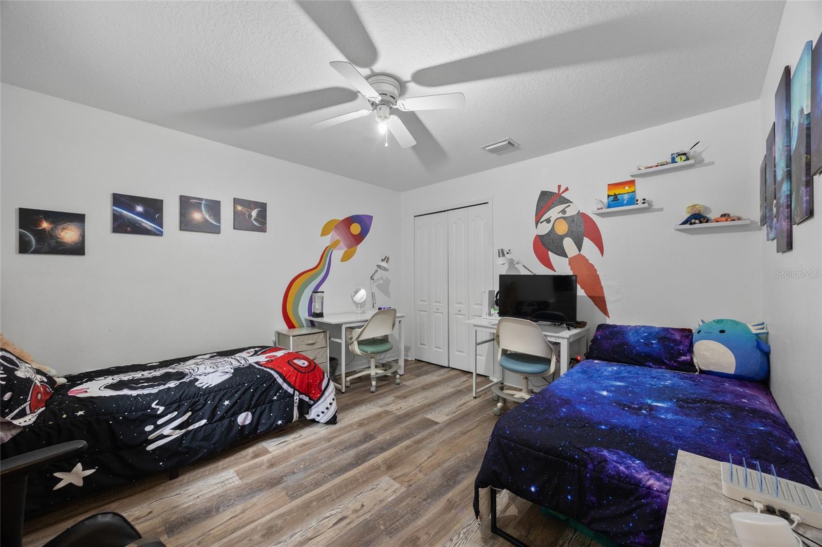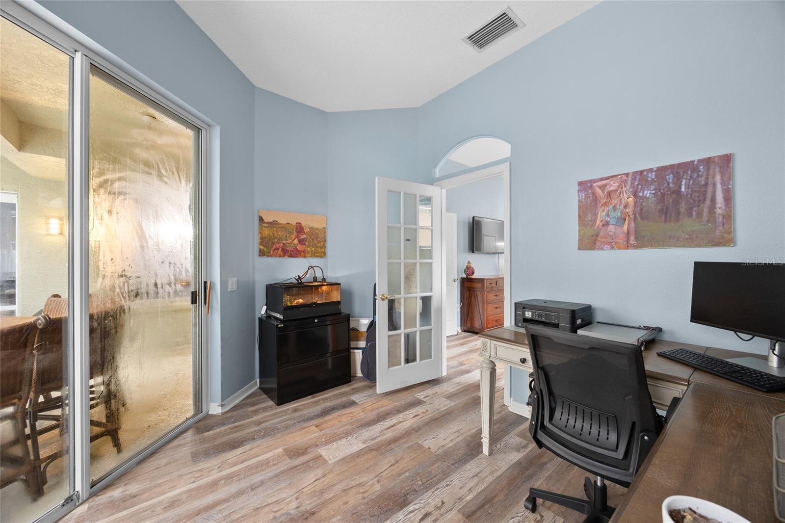This beautifully maintained 4-bedroom, 3-bathroom pool home offers a desirable split bedroom floor plan, combining privacy and functionality. The spacious layout includes a 2-car garage and a heated pool with an attached Jacuzzi, perfect for relaxing or entertaining. Numerous recent upgrades enhance the home’s value and efficiency, including a new roof (2022), new A/C system (2023), new pool pump (2024), and a newly screened pool enclosure (2023). Inside, the home features vinyl flooring throughout, ZERO carpet, creating a clean, modern aesthetic and easy maintenance. The completely renovated kitchen is a chef’s dream, boasting a farmhouse sink, new garbage disposal, and updated cabinetry and finishes. The master suite is a true retreat, offering an adjoining office/den, dual walk-in closets, and a luxurious en-suite bath with dual vanities, a soaking tub, and a separate shower. A wood-burning fireplace adds warmth and charm to the living area, with the chimney professionally serviced in 2024. Three sliding glass doors lead out to the screened pool area, promoting seamless indoor-outdoor living. A full bathroom with pool access adds to the home’s practical layout. This move-in-ready home is a rare find, combining thoughtful upgrades, tasteful renovations, and the perfect Florida lifestyle. Come see this Stagecoach Village gem before it's too late.