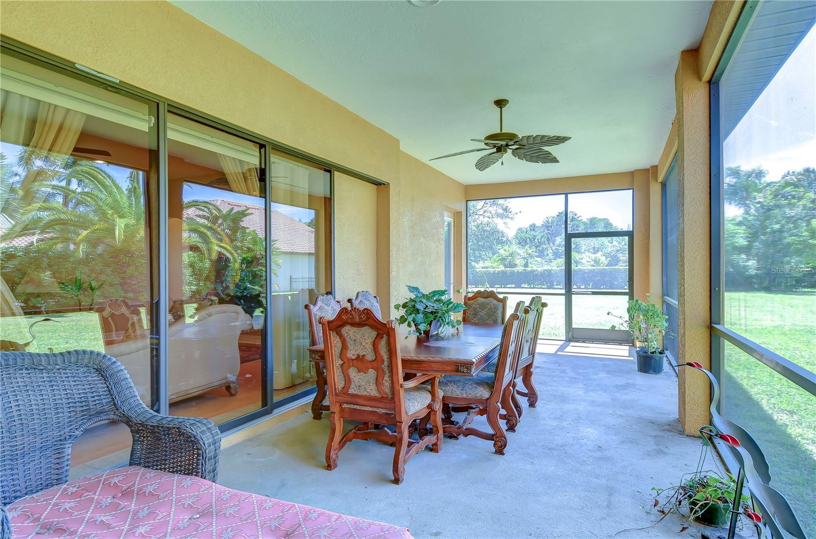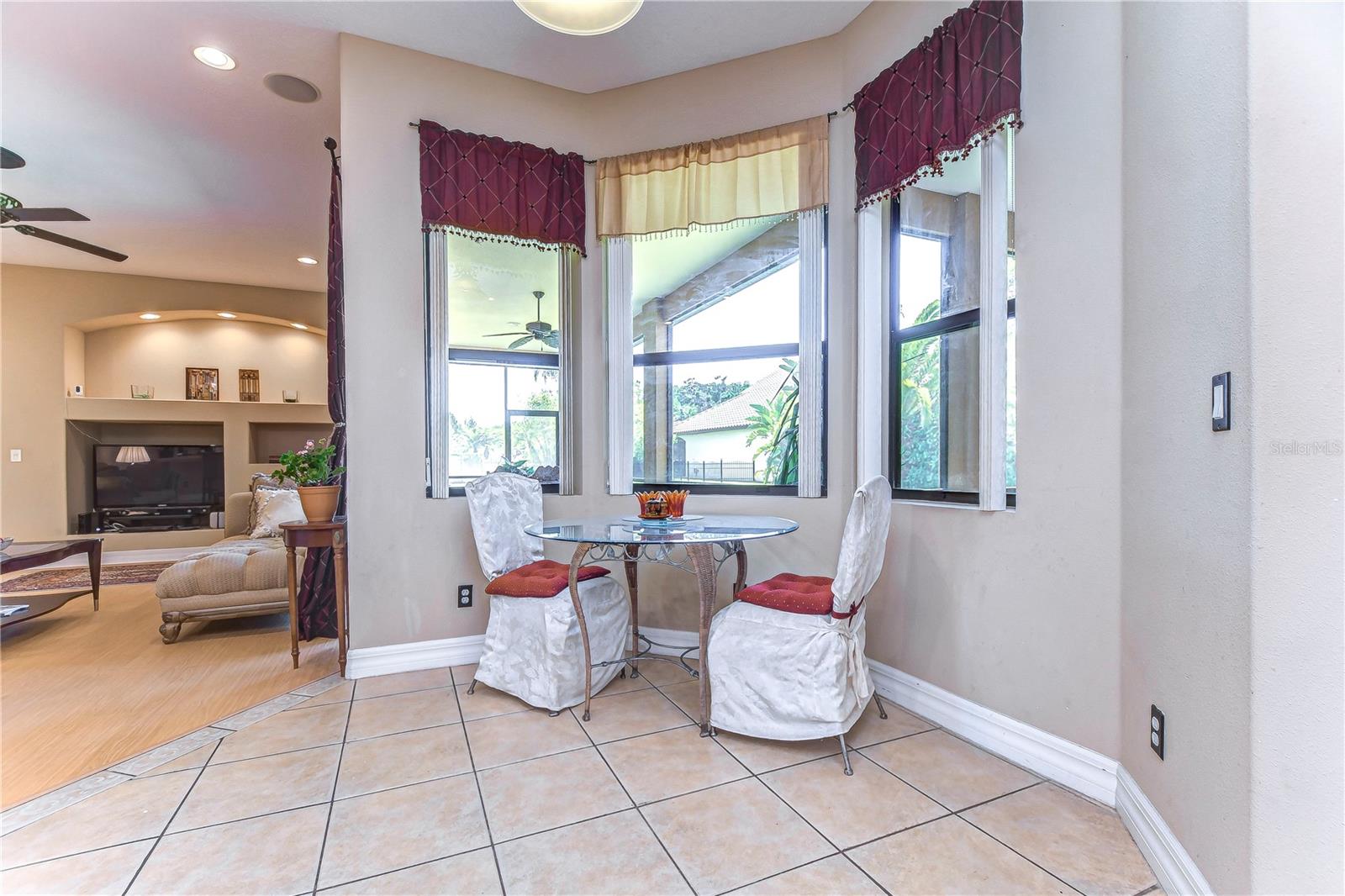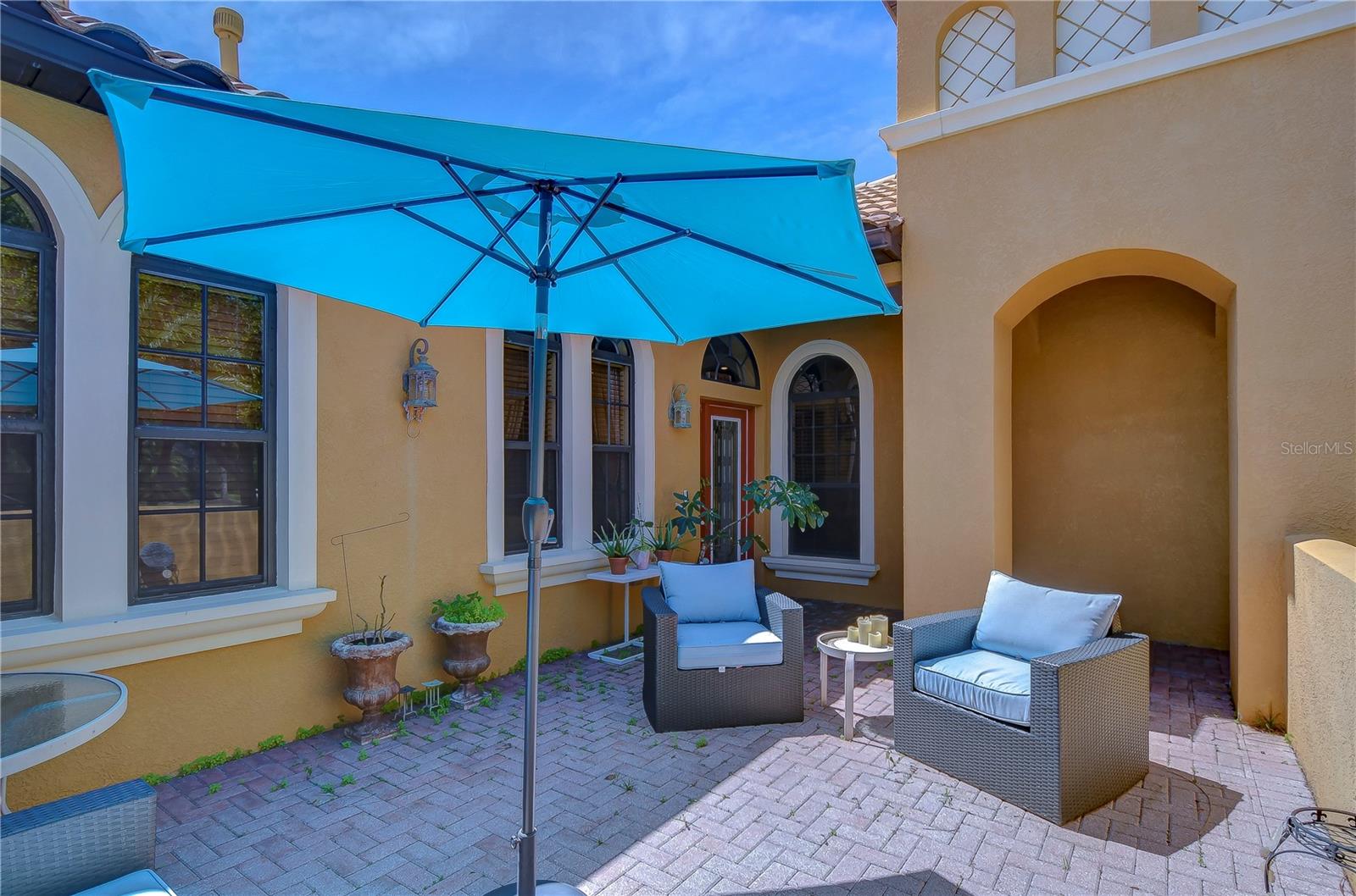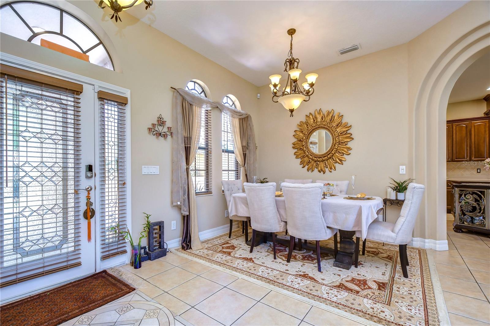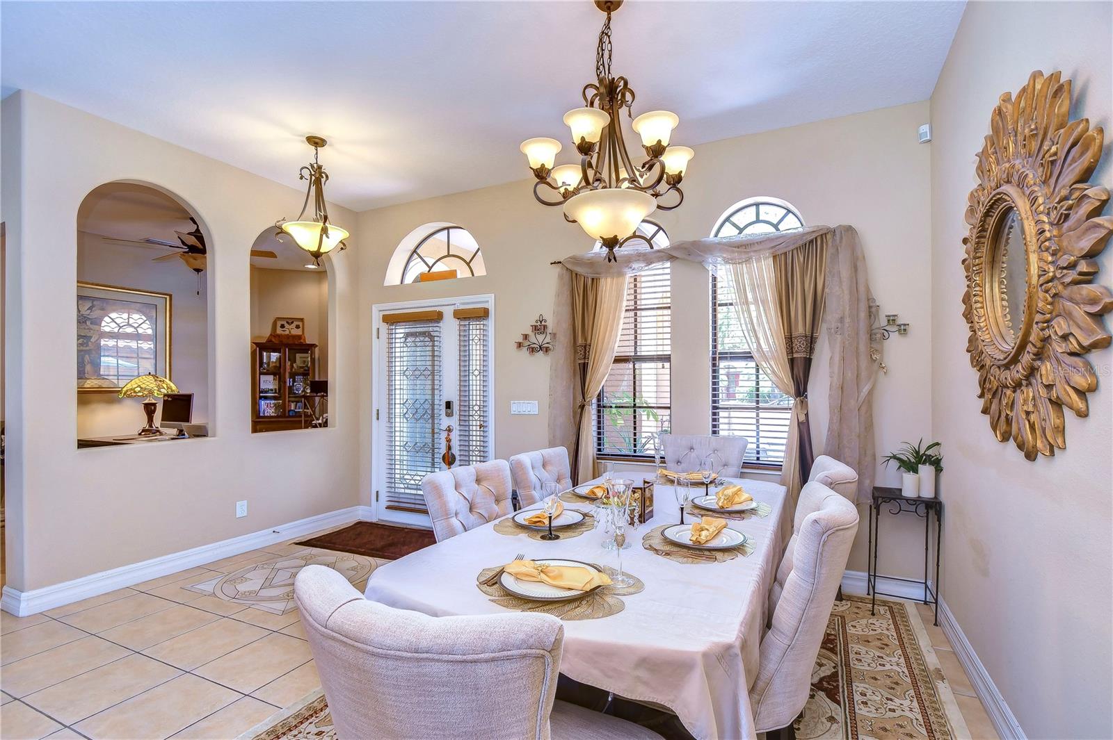 Step into this exquisite Mediterranean-style executive residence, nestled within the prestigious confines of Ballastone, an Oakstead gated community. Situated on an expansive cul-de-sac lot spanning nearly half an acre, this home presents a 3-car side entry garage complemented by an oversized driveway and parking pad. As you approach, graceful palm trees sway gently, framing a meticulously maintained emerald-green lawn. Adding to the grandeur of the exterior is an open brick-paved private patio—a serene spot to enjoy your morning coffee. Passing through archways beneath a barrel tile roof, you're greeted by an inviting entry adorned with a decorative glass front door, accompanied by a side window, and an arched transom window above. NEW A/C March 30, 2022! NEWER Water Heater January 30, 2018! NEW Dishwasher 2025! NEW Carpet in 2 Guest Bedrooms! Inside, architectural features include elegant archways, art niches, rounded corner bead walls, 8-foot doors, and an open-concept floor plan encompassing 2,573 sq ft. To the right of the tiled foyer with a floor medallion, a versatile office/study awaits. The dining room sits to the left of the foyer, while the living room lies straight ahead, boasting triple sliding doors opening onto the lanai. The heart of the home is the gourmet kitchen—a haven for culinary enthusiasts. It showcases richly appointed 42-inch wood raised panel cabinets topped with rope trim and crown molding, Corian counters, tile backsplash, and a center island Quartz topped and has ample cabinet and drawer space. Stainless steel appliances include a smooth cooktop and oven, double-door refrigerator, dishwasher, and microwave, complemented by a counter-height breakfast bar for casual dining. Adjacent to the kitchen, the café dining area features triple windows overlooking the lanai. The family room boasts a built-in media center and triple sliding glass doors leading to the wraparound screened lanai and expansive backyard. The owner's retreat beckons with an inviting alcove entrance, sliding glass doors opening onto the lanai, and double closets leading to the ensuite bath. The bath comprises a double vanity, tiled shower with coordinating Listello pattern, a deep soaking jetted tub, a walk-in closet, and a private water closet. Additional generously sized bedrooms are arranged in a 3-way split, offering ample closet space. Oakstead provides outstanding amenities, events, and activities for family entertainment, including a Clubhouse, fitness center, event spaces suitable for special occasions, a 165,000-gallon saltwater pool complete with a waterslide, sundeck, shaded areas, 3 tennis courts, volleyball and basketball courts, ball field, and covered playground. With easy access to major highways including the Suncoast Expressway, dining, sports, and entertainment options, The Shops at Wiregrass, and Tampa Premium Outlets, this home offers an unparalleled lifestyle. Don’t miss out—schedule your appointment today! Bedroom Closet Type: Built In Closet (Primary Bedroom).