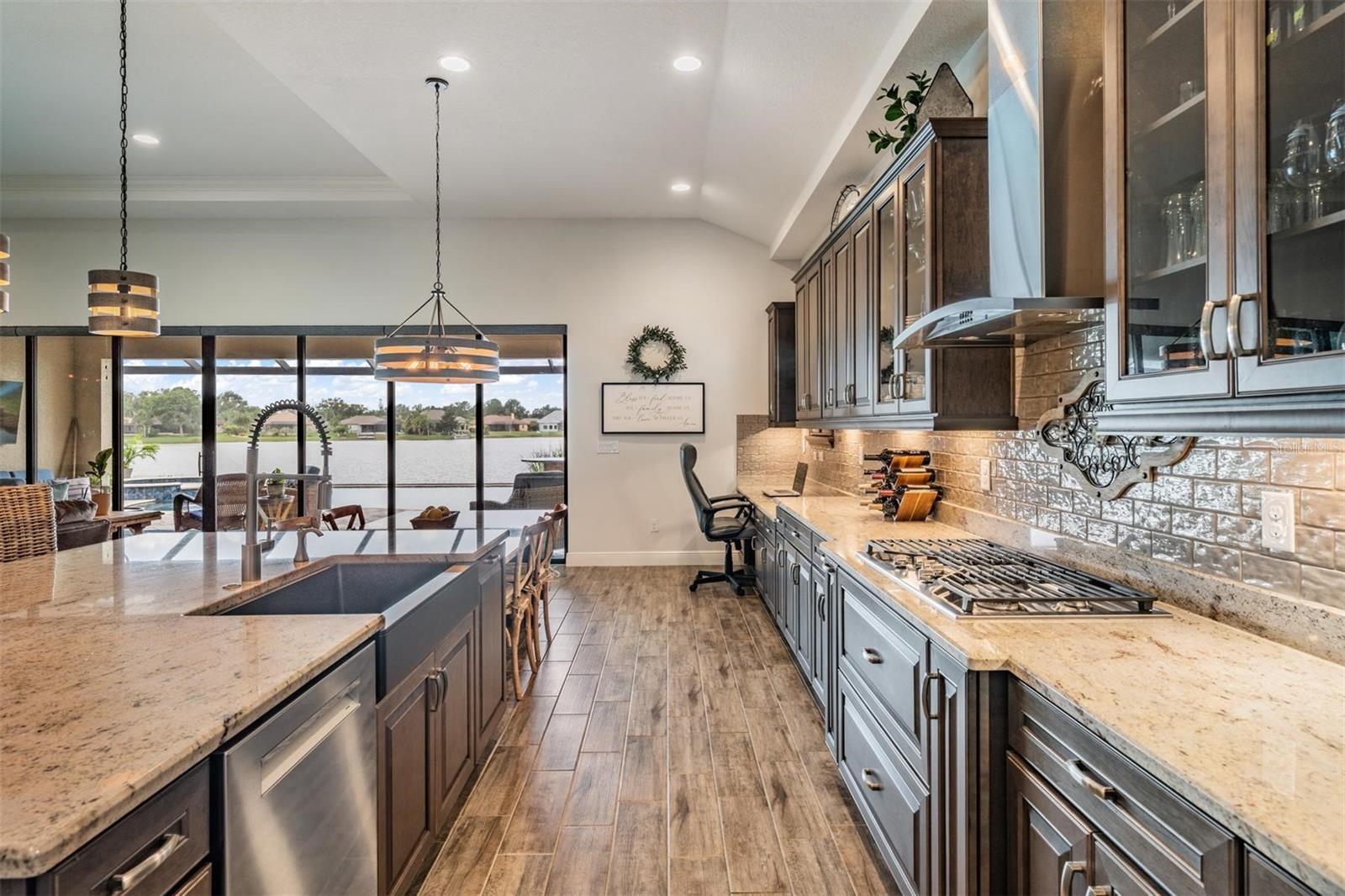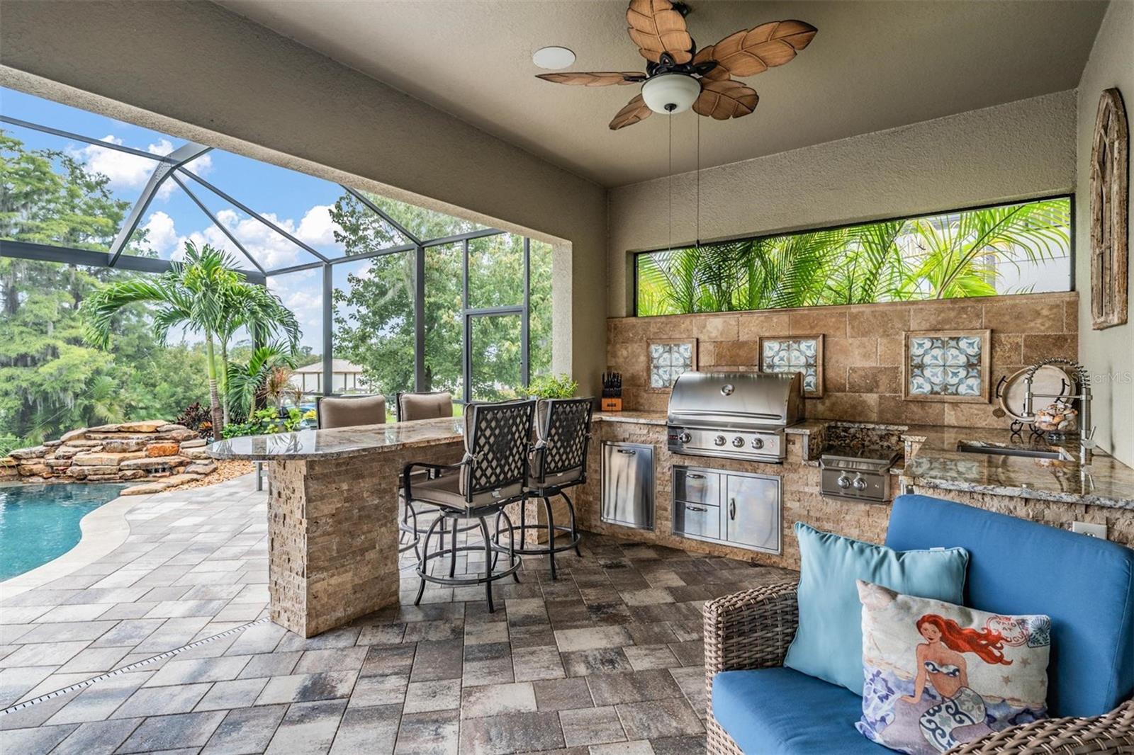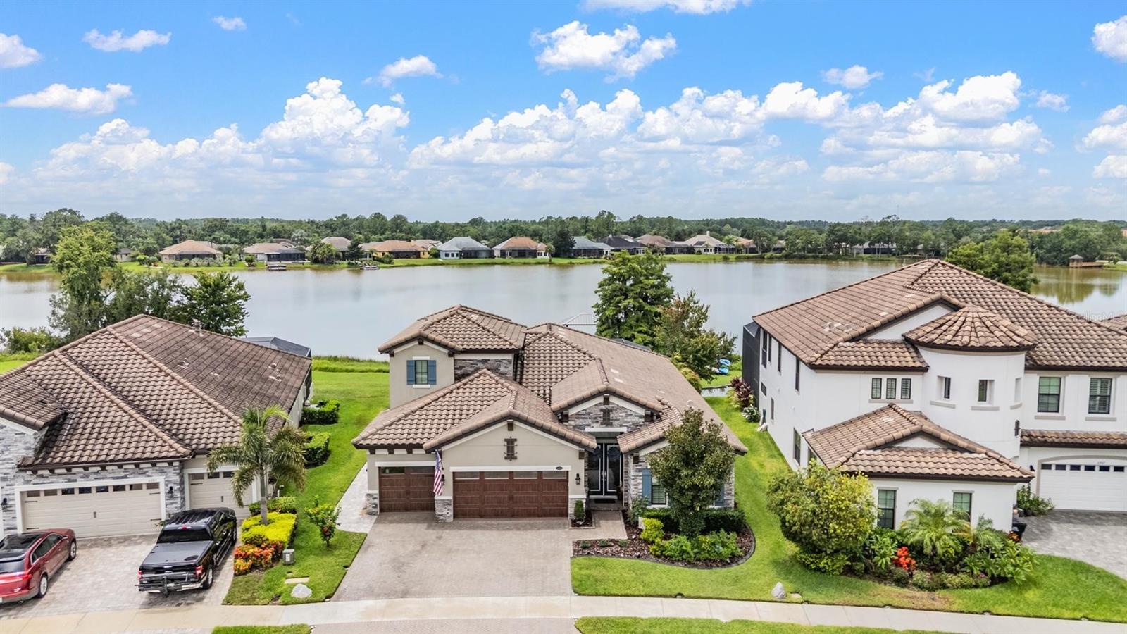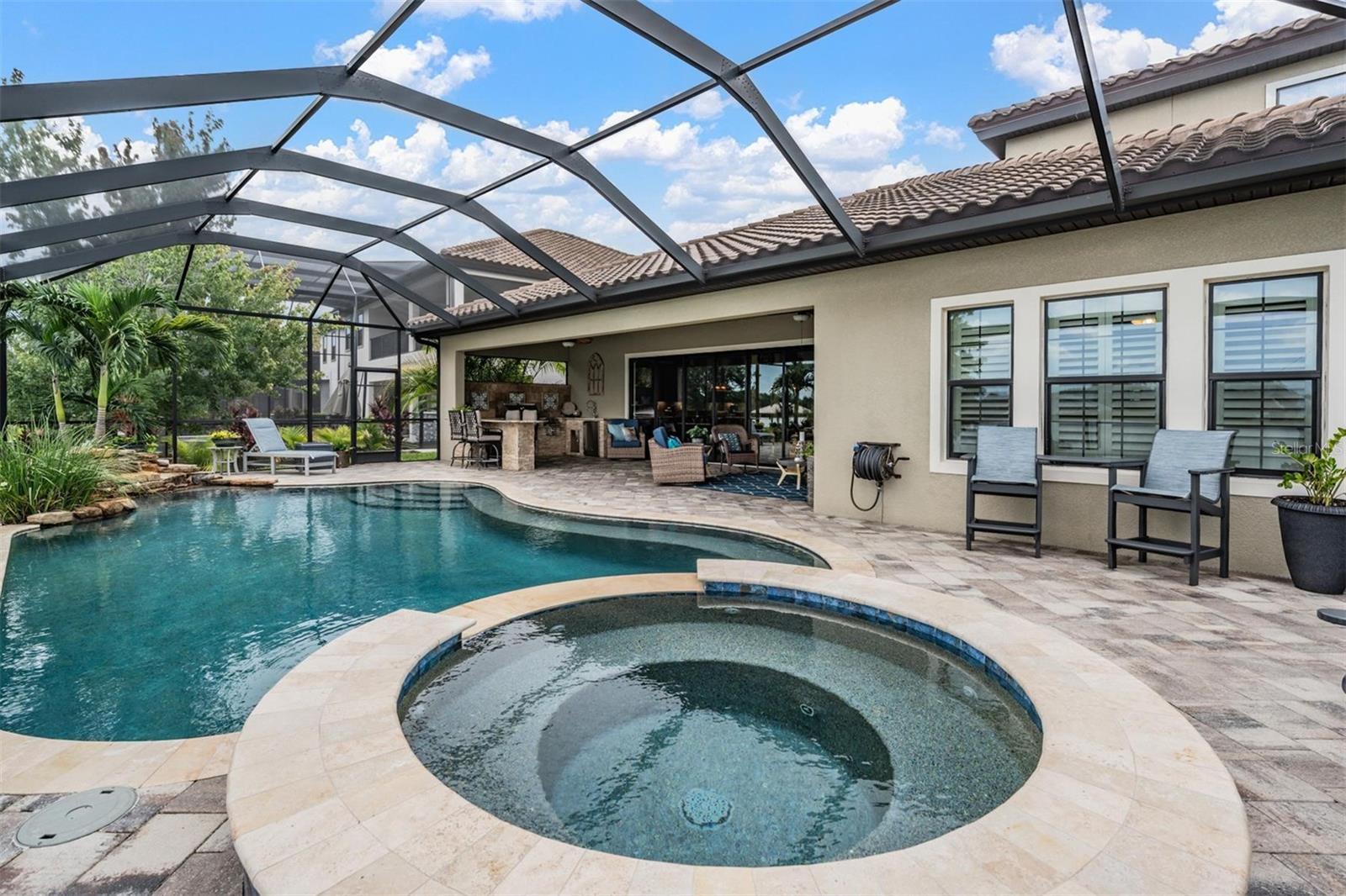 Experience Unmatched Lakefront Luxury in Pristine Lake Preserve! Welcome to this exceptional LAKE FRONT 4-bedroom, 4-bathroom POOL home with a private office and bonus room, located in the exclusive gated community of Pristine Lake Preserve in Land O’ Lakes. Built by WestBay Homes, this over 3,000 sq ft residence is thoughtfully designed to elevate your lifestyle—combining elegant interior spaces, luxurious outdoor living, and direct access to the tranquil waters of Curve Lake. From the moment you arrive, the pavered driveway and sidewalk, mature landscaping, and serene lake views set the tone for what awaits inside. Step through the grand entry into a light-filled, open-concept living space with wood-look plank tile flooring, soaring trey ceilings, and custom finishes throughout. The chef’s kitchen is both beautiful and functional, featuring granite countertops, tile backsplash, top of the line stainless steel appliances, gas range, a large center island and eating space, a built in desk to get your meal planning complete for the week and generous storage. Plantation shutters offer both privacy and style throughout the home. The primary suite is a serene retreat overlooking the pool and lake, complete with a custom walk-in closet system, separate vanities and a make up desk make getting ready for your day a breeze, a rain shower head, and a spacious walk-in shower. Off the main hallway double doors lead to the private office, ideal for working from home with quiet focus. Bedroom 2 is located at the front of the home and features a built-in closet, plantation shutters, and a full bathroom just outside the room—perfect for guests. Bedroom 3 sits in the mid-section of the home, also with a built-in closet and a full bathroom nearby. Upstairs, you'll find Bedroom 4 along with a generous bonus room and full bathroom—ideal for a media space, playroom, or private guest retreat. The 3-car garage includes custom built-in shelving, offering exceptional storage and organization. Step outside and embrace true Florida lakefront living. The backyard is an entertainer’s dream with a natural gas-heated saltwater pool and spa, a custom natural stone waterfall, and a panoramic sunbeam screen enclosure offering unobstructed views of the water. The fully equipped outdoor kitchen features granite countertops, Blaze commercial-grade grill, power burner, refrigerator, and stainless steel drawers. Enjoy evenings by the custom firepit or walk along over 150 feet of TREX decking, seamlessly connecting the lanai to your covered dock with electricity. The deep-water dock is perfect for boating, paddleboarding, fishing, or simply relaxing lakeside with a sunset view. This one-of-a-kind home offers the perfect blend of luxury, functionality, and lifestyle in one of Land O’ Lakes’ most exclusive gated lakefront communities. IT'S NOT JUST A HOME...BUT A LIFESTYLE! **BUYER TO RECEIVE $5,000 LENDER CREDIT - ASK AGENT FOR DETAILS