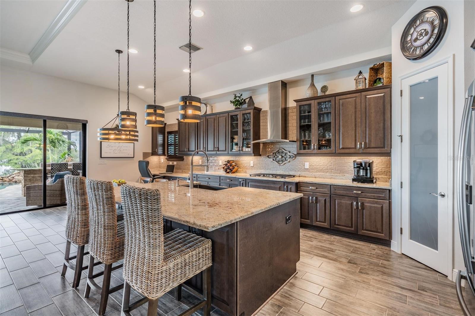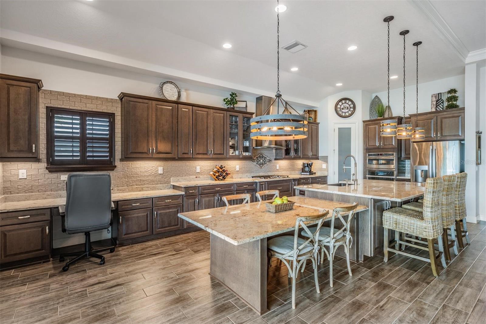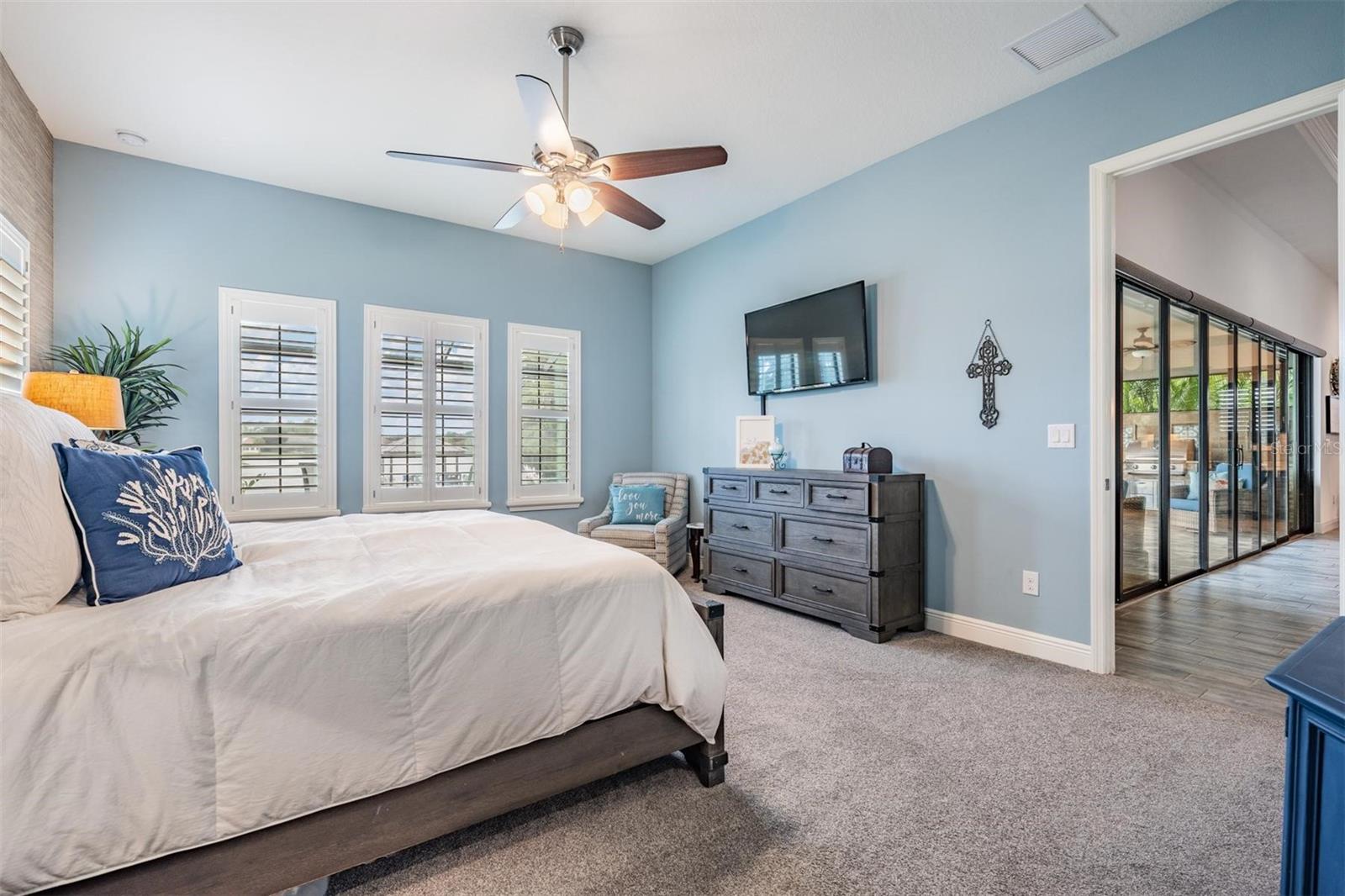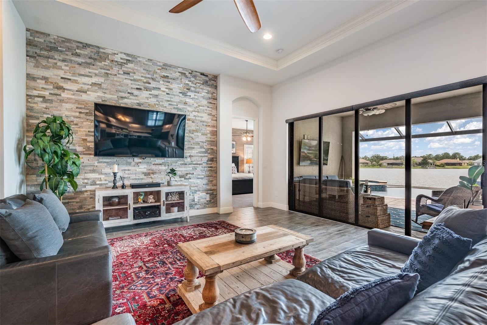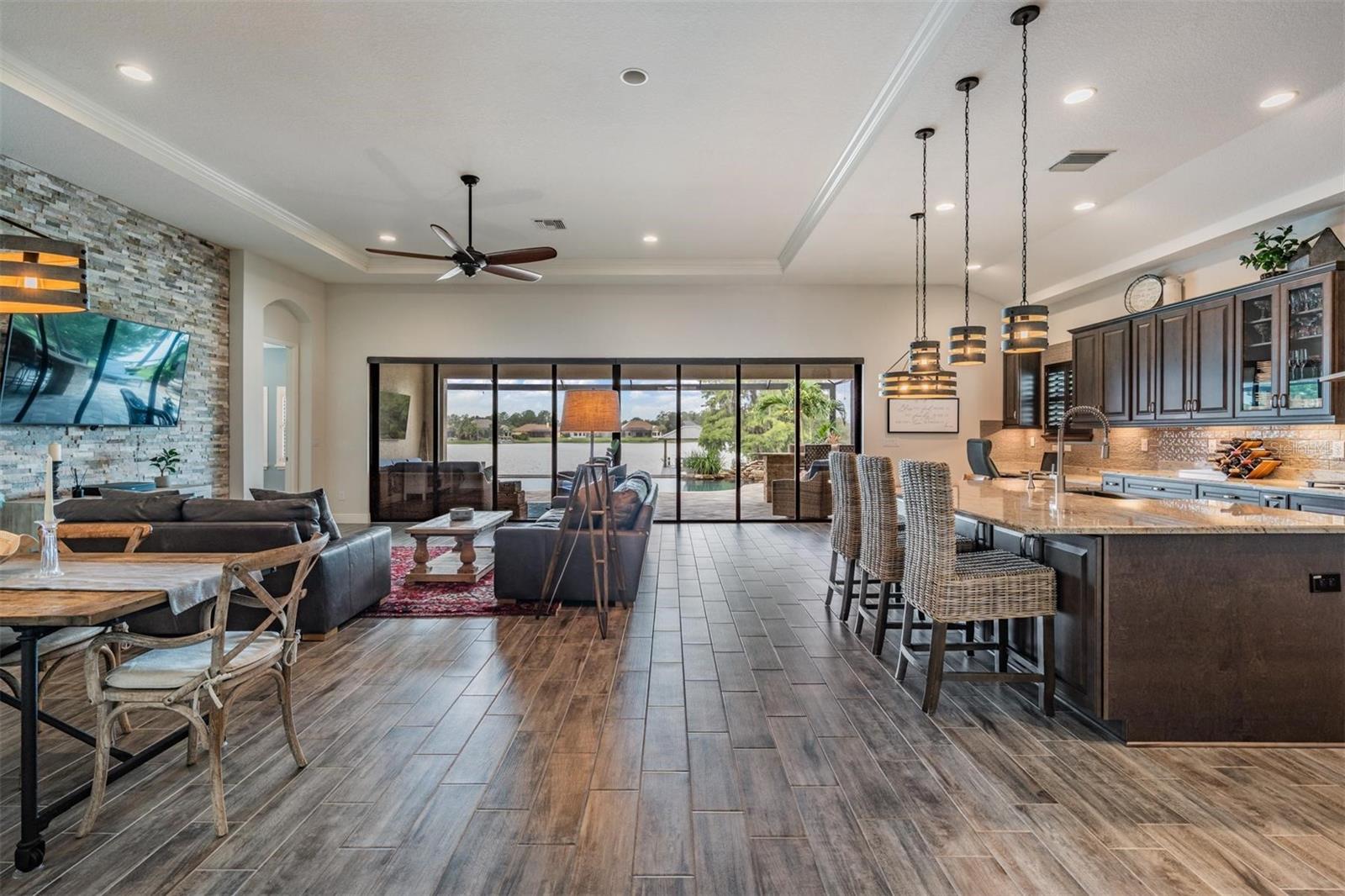 Experience Unmatched Lakefront Luxury in Pristine Lake Preserve! Welcome to this exceptional LAKE FRONT 4-bedroom, 4-bathroom POOL home with a private office and bonus room, located in the exclusive gated community of Pristine Lake Preserve in Land O’ Lakes. Built by WestBay Homes, this over 3,000 sq ft residence is thoughtfully designed to elevate your lifestyle—combining elegant interior spaces, luxurious outdoor living, and direct access to the tranquil waters of Curve Lake. From the moment you arrive, the pavered driveway and sidewalk, mature landscaping, and serene lake views set the tone for what awaits inside. Step through the grand entry into a light-filled, open-concept living space with wood-look plank tile flooring, soaring trey ceilings, and custom finishes throughout. The chef’s kitchen is both beautiful and functional, featuring granite countertops, tile backsplash, top of the line stainless steel appliances, gas range, a large center island and eating space, a built in desk to get your meal planning complete for the week and generous storage. Plantation shutters offer both privacy and style throughout the home. The primary suite is a serene retreat overlooking the pool and lake, complete with a custom walk-in closet system, separate vanities and a make up desk make getting ready for your day a breeze, a rain shower head, and a spacious walk-in shower. Off the main hallway double doors lead to the private office, ideal for working from home with quiet focus. Bedroom 2 is located at the front of the home and features a built-in closet, plantation shutters, and a full bathroom just outside the room—perfect for guests. Bedroom 3 sits in the mid-section of the home, also with a built-in closet and a full bathroom nearby. Upstairs, you'll find Bedroom 4 along with a generous bonus room and full bathroom—ideal for a media space, playroom, or private guest retreat. The 3-car garage includes custom built-in shelving, offering exceptional storage and organization. Step outside and embrace true Florida lakefront living. The backyard is an entertainer’s dream with a natural gas-heated saltwater pool and spa, a custom natural stone waterfall, and a panoramic sunbeam screen enclosure offering unobstructed views of the water. The fully equipped outdoor kitchen features granite countertops, Blaze commercial-grade grill, power burner, refrigerator, and stainless steel drawers. Enjoy evenings by the custom firepit or walk along over 150 feet of TREX decking, seamlessly connecting the lanai to your covered dock with electricity. The deep-water dock is perfect for boating, paddleboarding, fishing, or simply relaxing lakeside with a sunset view. This one-of-a-kind home offers the perfect blend of luxury, functionality, and lifestyle in one of Land O’ Lakes’ most exclusive gated lakefront communities. IT'S NOT JUST A HOME...BUT A LIFESTYLE! **BUYER TO RECEIVE $5,000 LENDER CREDIT - ASK AGENT FOR DETAILS