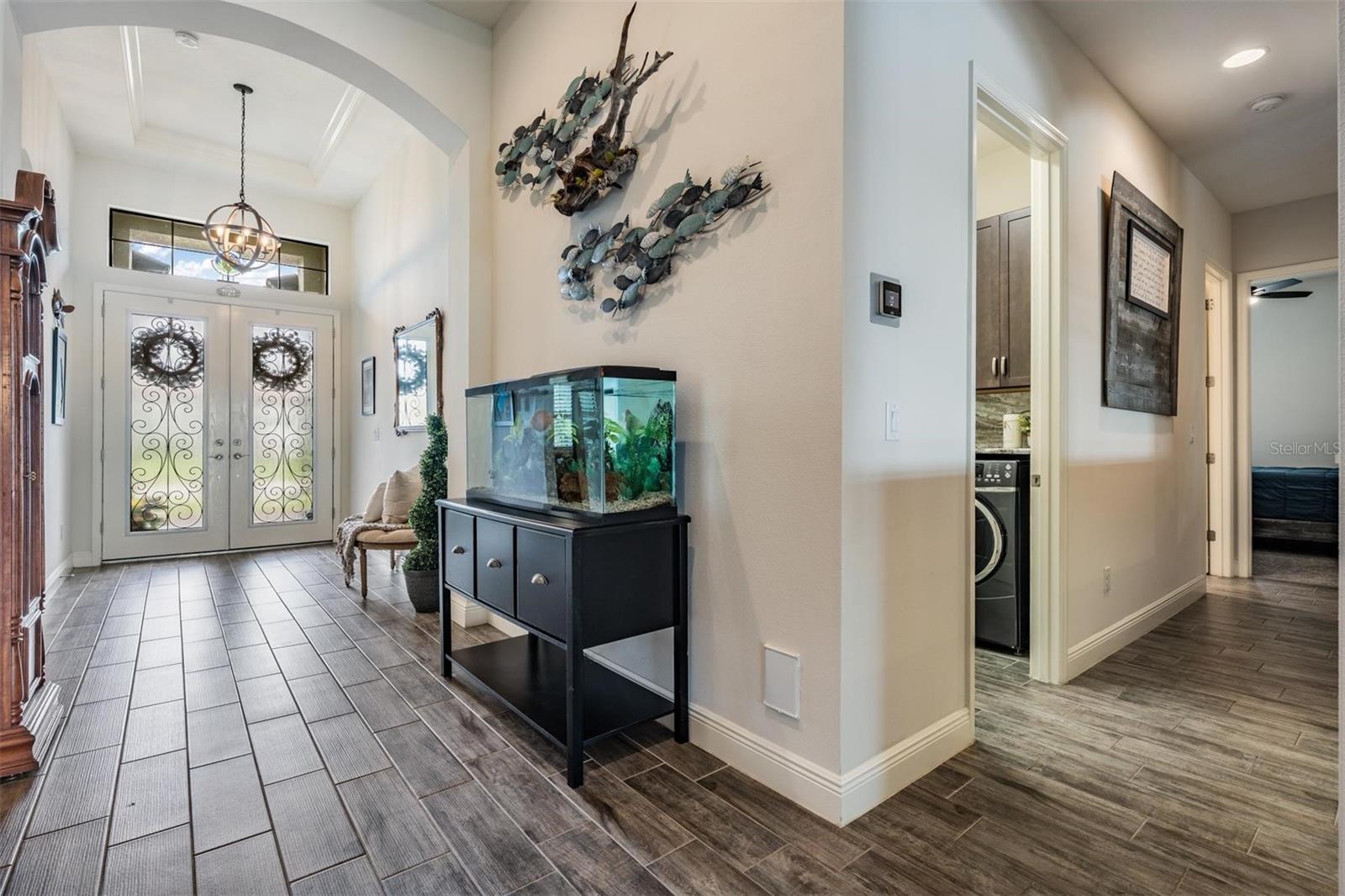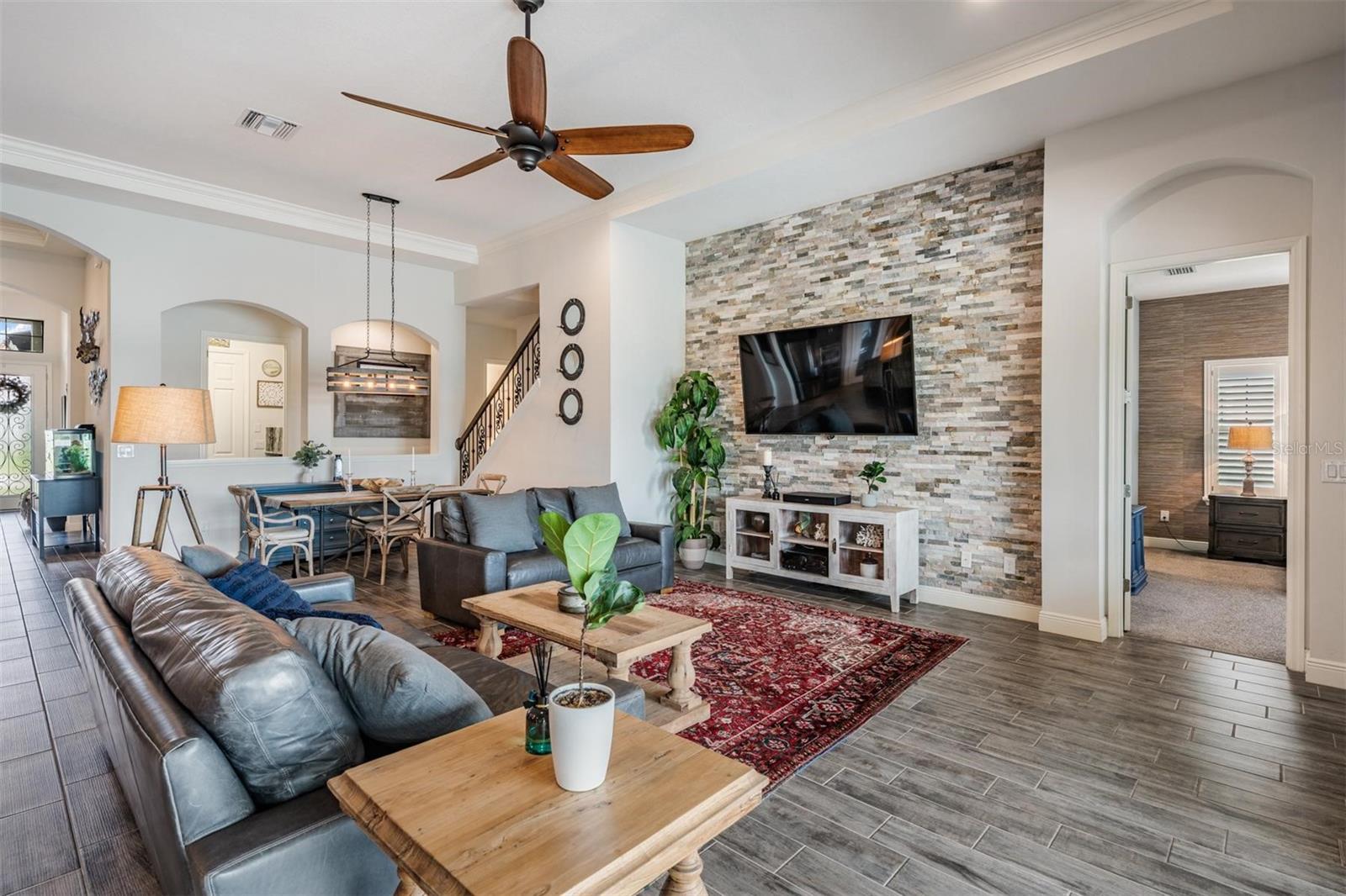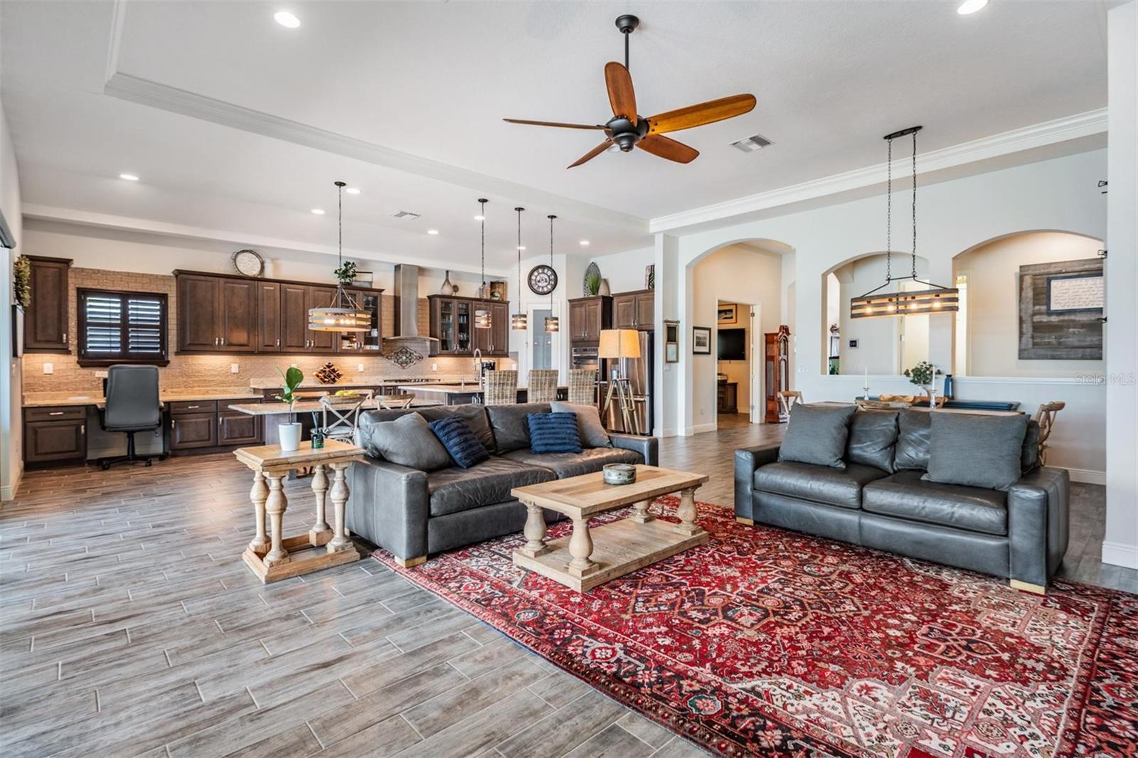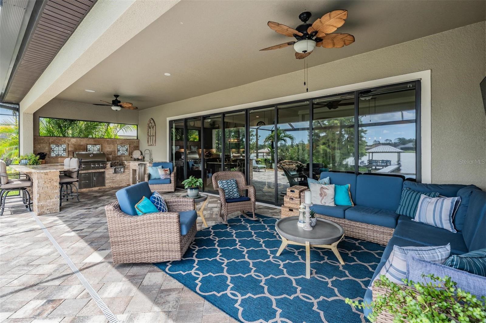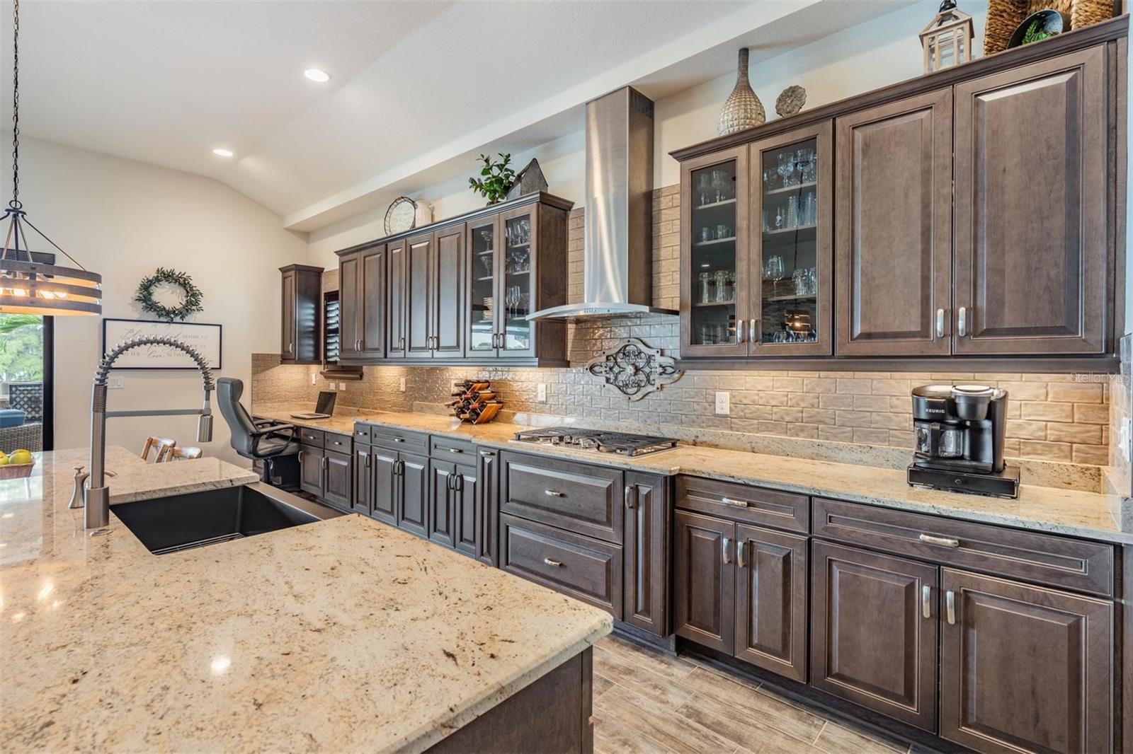 Experience Unmatched Lakefront Luxury in Pristine Lake Preserve! Welcome to this exceptional LAKE FRONT 4-bedroom, 4-bathroom POOL home with a private office and bonus room, located in the exclusive gated community of Pristine Lake Preserve in Land O’ Lakes. Built by WestBay Homes, this over 3,000 sq ft residence is thoughtfully designed to elevate your lifestyle—combining elegant interior spaces, luxurious outdoor living, and direct access to the tranquil waters of Curve Lake. From the moment you arrive, the pavered driveway and sidewalk, mature landscaping, and serene lake views set the tone for what awaits inside. Step through the grand entry into a light-filled, open-concept living space with wood-look plank tile flooring, soaring trey ceilings, and custom finishes throughout. The chef’s kitchen is both beautiful and functional, featuring granite countertops, tile backsplash, top of the line stainless steel appliances, gas range, a large center island and eating space, a built in desk to get your meal planning complete for the week and generous storage. Plantation shutters offer both privacy and style throughout the home. The primary suite is a serene retreat overlooking the pool and lake, complete with a custom walk-in closet system, separate vanities and a make up desk make getting ready for your day a breeze, a rain shower head, and a spacious walk-in shower. Off the main hallway double doors lead to the private office, ideal for working from home with quiet focus. Bedroom 2 is located at the front of the home and features a built-in closet, plantation shutters, and a full bathroom just outside the room—perfect for guests. Bedroom 3 sits in the mid-section of the home, also with a built-in closet and a full bathroom nearby. Upstairs, you'll find Bedroom 4 along with a generous bonus room and full bathroom—ideal for a media space, playroom, or private guest retreat. The 3-car garage includes custom built-in shelving, offering exceptional storage and organization. Step outside and embrace true Florida lakefront living. The backyard is an entertainer’s dream with a natural gas-heated saltwater pool and spa, a custom natural stone waterfall, and a panoramic sunbeam screen enclosure offering unobstructed views of the water. The fully equipped outdoor kitchen features granite countertops, Blaze commercial-grade grill, power burner, refrigerator, and stainless steel drawers. Enjoy evenings by the custom firepit or walk along over 150 feet of TREX decking, seamlessly connecting the lanai to your covered dock with electricity. The deep-water dock is perfect for boating, paddleboarding, fishing, or simply relaxing lakeside with a sunset view. This one-of-a-kind home offers the perfect blend of luxury, functionality, and lifestyle in one of Land O’ Lakes’ most exclusive gated lakefront communities. IT'S NOT JUST A HOME...BUT A LIFESTYLE! **BUYER TO RECEIVE $5,000 LENDER CREDIT - ASK AGENT FOR DETAILS