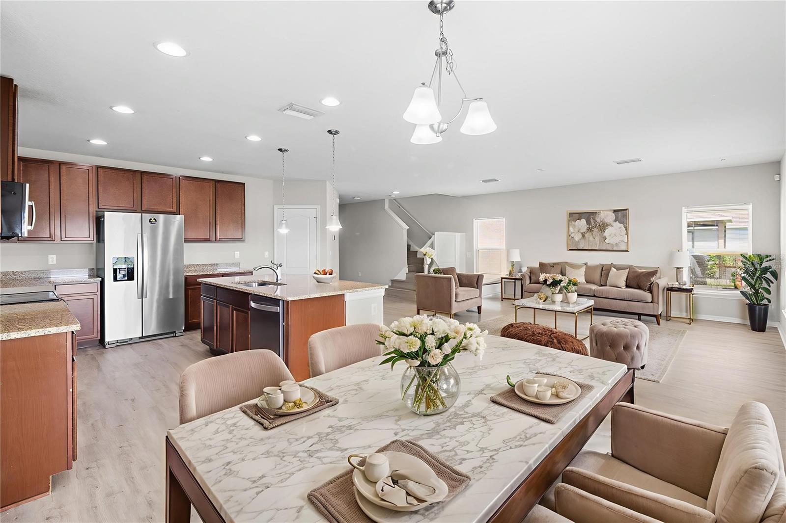 One or more photo(s) has been virtually staged. Welcome to Your Next Home in Hawks Landing! This beautifully updated, move-in-ready residence offers 4 bedrooms, 2.5 bathrooms, a private office, a spacious loft, and a 2-car garage, perfectly blending comfort, style, and everyday functionality. The main level features a bright, open-concept design where the kitchen, dining, and living areas flow effortlessly—ideal for both entertaining and daily living. A private office and convenient half bath make working from home or hosting guests a breeze. Enjoy peaceful water views from the kitchen, living room, and covered lanai, creating a relaxing backdrop for morning coffee or evening gatherings. Upstairs, retreat to the spacious owner’s suite featuring his-and-hers closets, dual vanities, and a walk-in shower. Three additional bedrooms, a full bath, and a versatile loft provide ample space for family, guests, or a media and play area. Recent upgrades include brand-new luxury vinyl flooring throughout and fresh interior paint, giving the home a clean, modern feel and true move-in readiness. Residents of Cypress Preserve / Hawks Landing enjoy resort-style amenities, including a community pool, playground, dog park, and scenic walking trails. Ideally located near shopping, dining, top-rated schools, and major highways, this home offers the perfect balance of tranquil living and everyday convenience. Schedule your private tour today—this water-view home won’t last long!