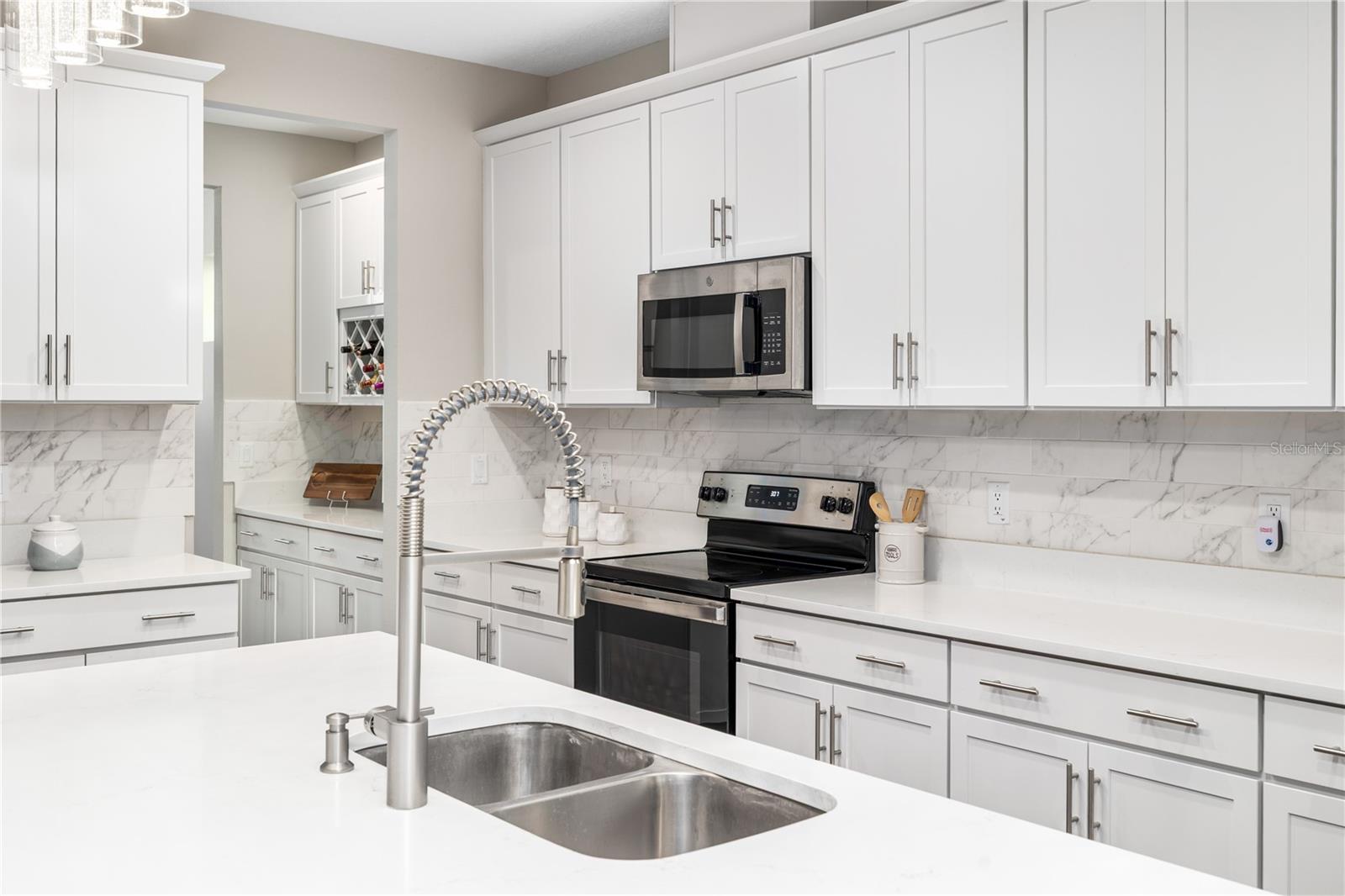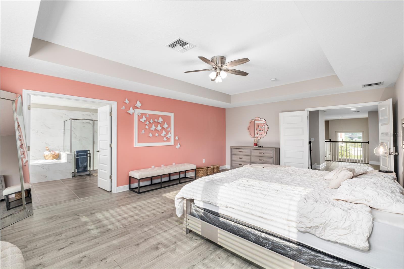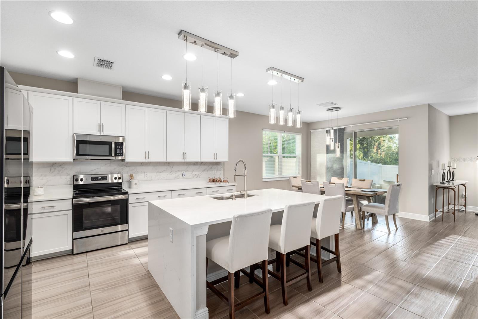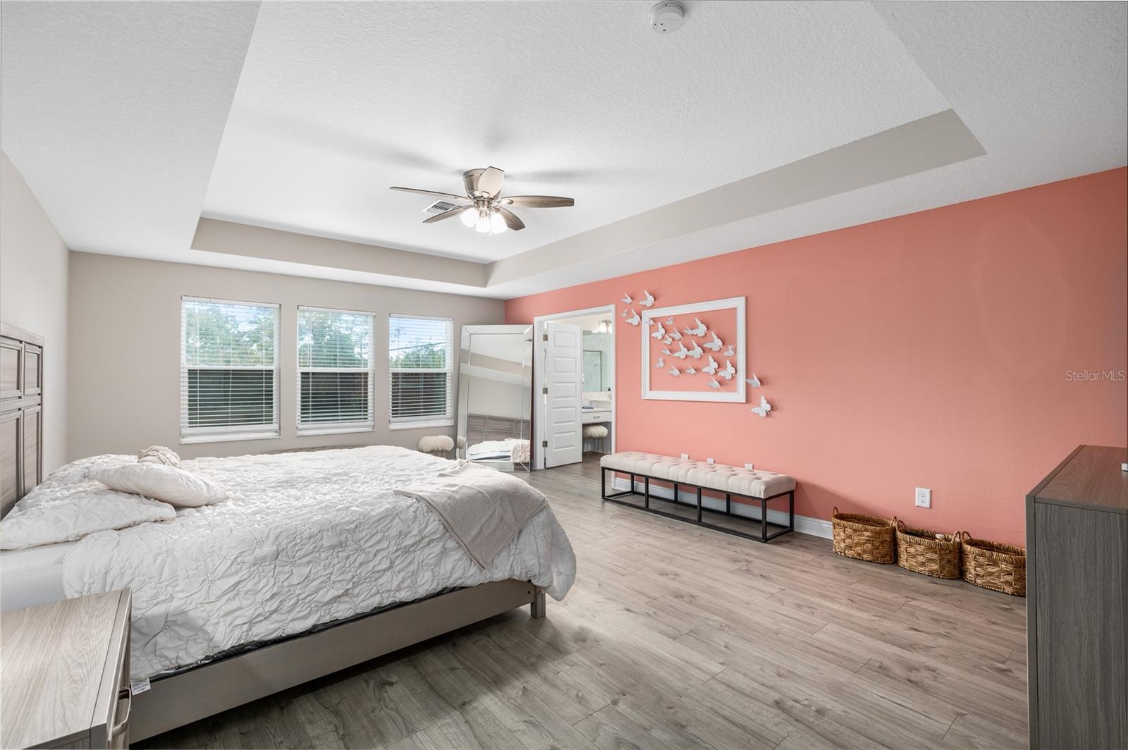 One or more photo(s) has been virtually staged. Step into this like-new CORNER LOT craftsman masterpiece home, BUILT in 2022 by M/I Homes is nestled in the sought-after community of Ehrens Mill! Offering 5 bedrooms, 3 full baths, a spacious 3-car garage, and 3,316 sqft. of living space, this home blends elegance, functionality, and comfort. With LOW HOA fees and NO CDDs, it’s the perfect place to truly call home. The home sits on a CORNER LOT with no neighbors to your right side facing the house, for extra privacy. From the moment you enter the grand foyer with its soaring 20-foot ceilings, you’ll feel the warmth and sophistication of this thoughtfully designed residence. A flexible formal dining room (or office) sets the tone for versatility, while the gourmet kitchen impresses with MODERN QUARTZ waterfall countertops, marble subway backsplash, stainless steel appliances, and a built-in coffee/wine bar. The OPEN-FLOOR PLAN layout features porcelain wood-look tile throughout, complemented by custom LED light fixtures, accent walls, tray ceilings, arched hallways, and a paid-off water softener. A guest bedroom and full bath on the first floor for convenience, while upstairs you’ll find four additional bedrooms, a huge bonus loft perfect for family gatherings or your own private movie lounge, and a luxurious owner’s suite with French doors, tray ceiling, spa-like bathroom, double vanities, quartz counters, garden jacuzzi tub, and oversized walk-in shower. Ideally located near top-rated schools, shopping, dining, and just 30 minutes to Downtown Tampa and 35 minutes to the airport, this home offers both a premier lifestyle and a sound investment. Schedule your private tour today—this one won’t last!