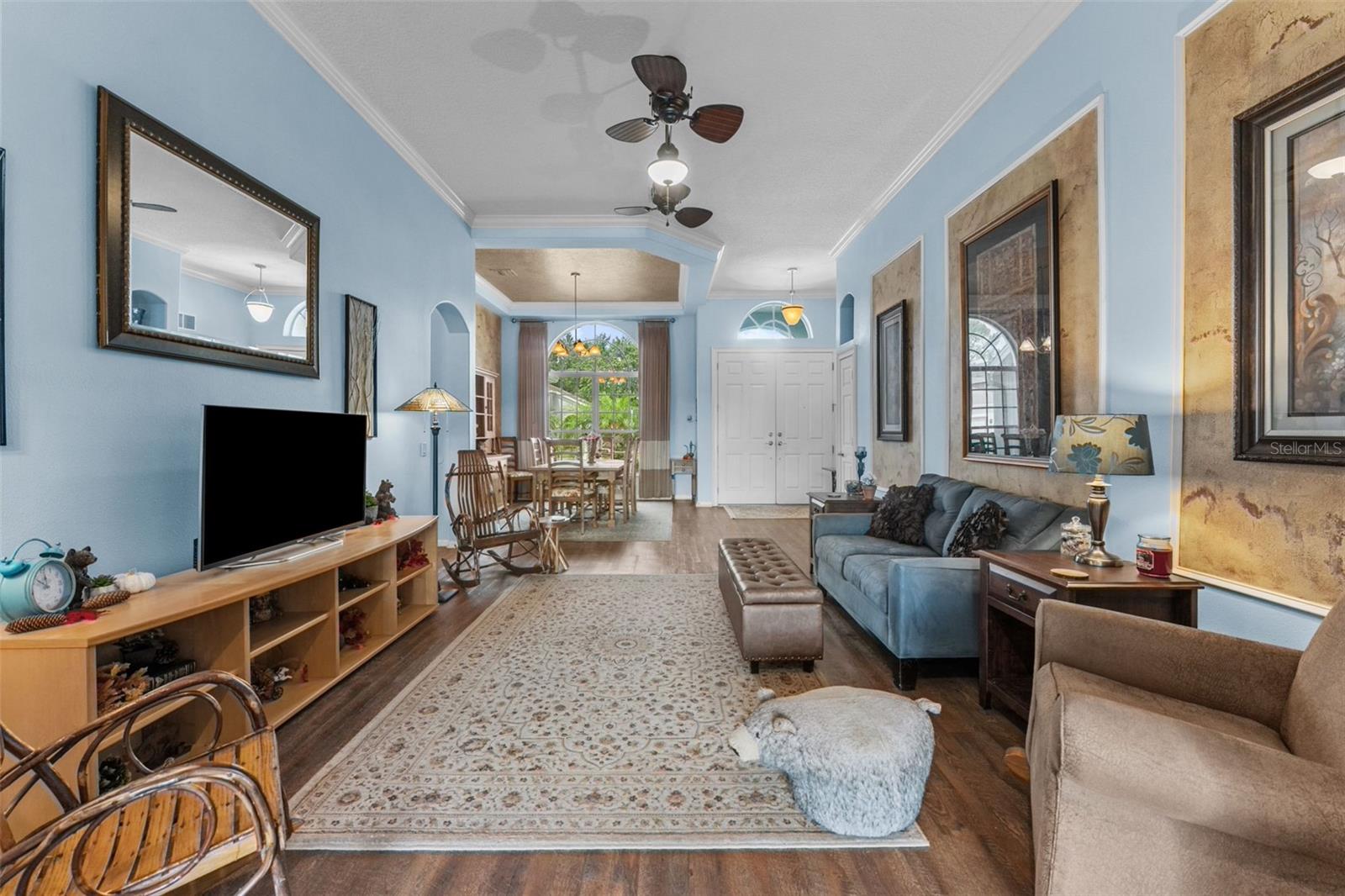 Wilderness Lake Preserve...Welcome to an exceptional opportunity to own a beautiful 5-bedroom home offering both pond frontage and a private pool. This rare combination of features makes this property perfect for families, entertaining guests and enjoying tranquil views in a serene natural setting. This amazing home has it all… 3139 sqft, 5 bedrooms, 4 baths, OFFICE, LOFT, 3 car garage, infinity view, salt system HEATED POOL, screened lanai with covered area, WATERFRONT, landscaped yard and gorgeous views. The master suite is located on the first floor along with 3 other bedrooms and the office while the upstairs is perfect as an in-law suite with its own loft/living room, private bedroom and bath. The kitchen features a breakfast nook with views of the pond and pool, a breakfast bar, an island, and an open layout that connects to the family room. The formal living room, formal dining area, kitchen and family room all offer excellent views of the pool, pond and conservation area. Split bedroom floor plan with 3 secondary bedrooms, 2 full baths and a student study area with a built-in desk located separately from the master suite all on the first floor. The master suite has sliders to the lanai, views of the water, master bath with dual sinks, garden tub, large walk-in shower and a walk-in closet. The private office has French doors and a beautiful built-in desk. The screened pool, added in 2019, features an oversized brick paver deck ideal for entertaining. Additional features: ROOF 2024, exterior paint 2025, electric pool heater 2025, water softener 2019, water heater 2025, new gutters 2024, salt cell for pool 2025, downstairs AC 2022, irrigation system, overlooks preserve with lots of wildlife, crown molding, custom trim work, pool bath, LVP luxury vinyl plank flooring, sliders in the formal living room and family room, all appliances included, laundry room with deep sink and a central vacuum system. Entertaining made easy with multiple surround sound speakers in the family room, master bedroom and outside pool deck area. Outstanding Wilderness Lake Preserve is a highly sought after community in Land O Lakes that offers top notch amenities including the Wilderness Lodge, a lakefront recreation center featuring an Olympic size pool, lap pool, beautiful lake with dock for fishing and kayaking, nature trails, kid splash pad, three story treehouse playground, tennis courts, basketball, fitness center, movie theatre, gardens, gathering area with fire pit, a nature room and a game room. Residents have complimentary access to a Jon boat and kayaks for use on the lake. Great location near excellent schools, shopping, restaurants, entertainment and recreation. Wilderness Lake spans 630 acres with nearly half dedicated to conservation areas. The community is centered around a 38-acre spring fed lake providing a serene environment for residents. This property contains the best of indoor and outdoor living. Wake up to the gentle sounds of nature on the pond, enjoy the deer sightings, host memorable pool parties or simply unwind in the spacious interiors.