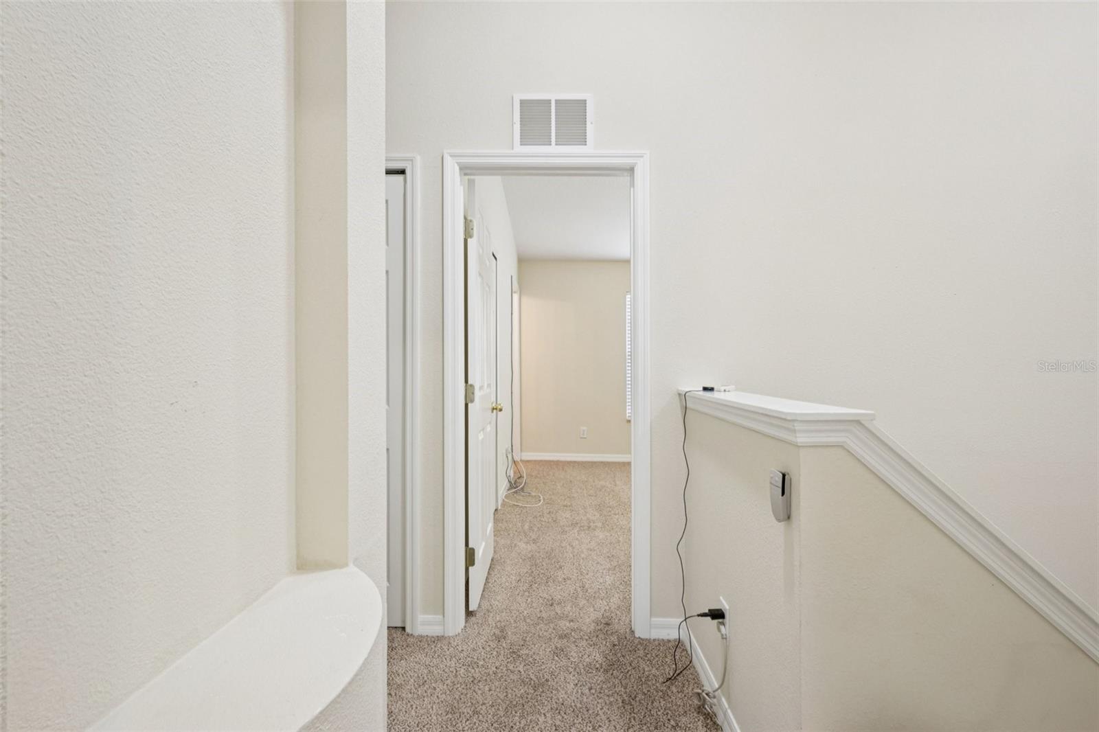 One or more photo(s) has been virtually staged. Well-kept 3-bedroom, 3-bath townhouse in Santa Fe at Stagecoach Village. The open layout features a spacious living area, dining space, and a functional kitchen with plenty of storage. A first-floor bedroom and full bath provide flexibility for guests or a home office. Upstairs you’ll find a large primary suite with walk-in closet, an additional bedroom and bath, plus laundry for convenience. Enjoy a screened patio and access to the community pool. Conveniently located near I-75, shops, and restaurants in Wesley Chapel.
