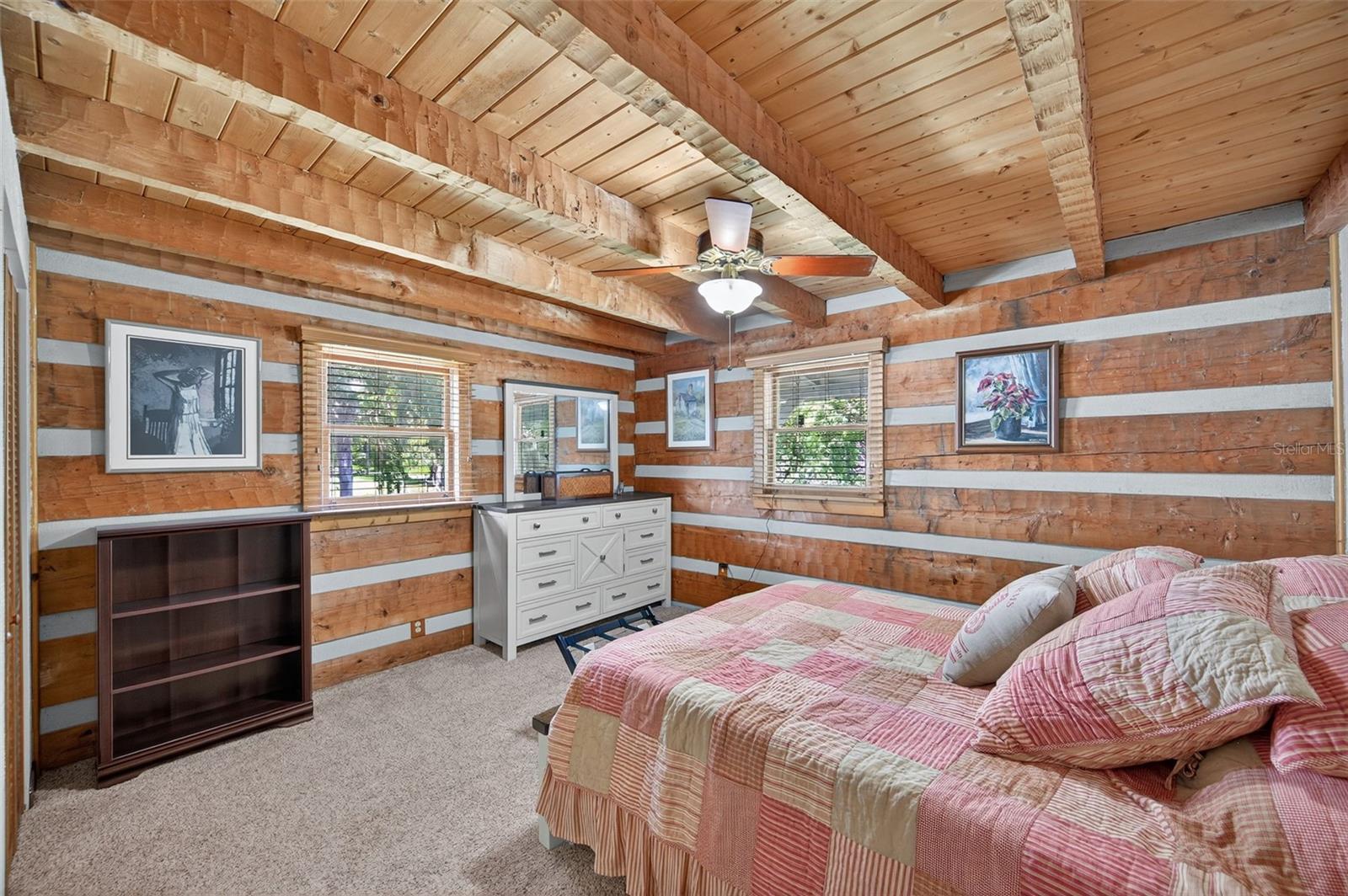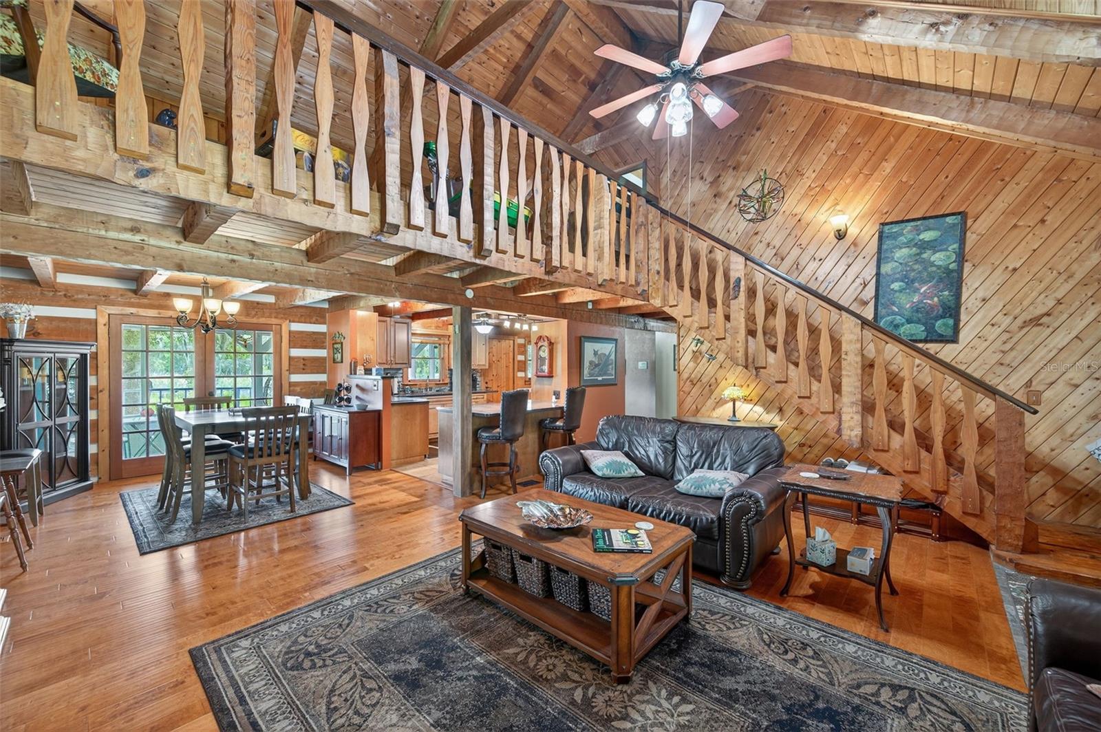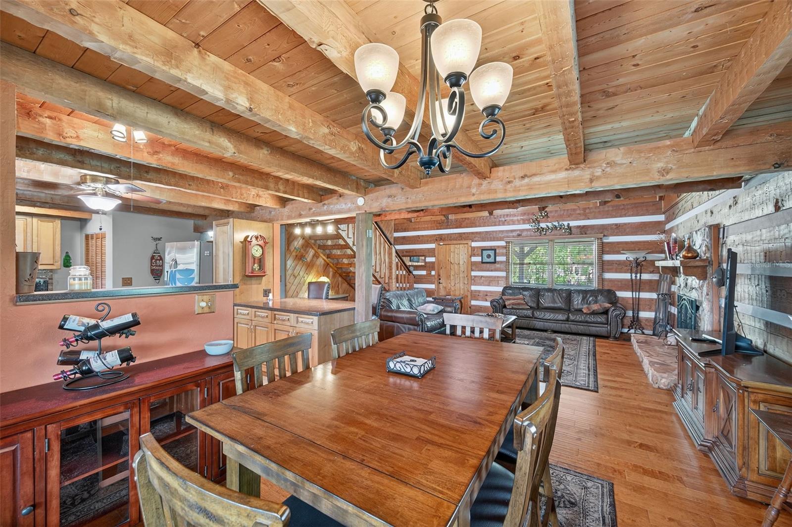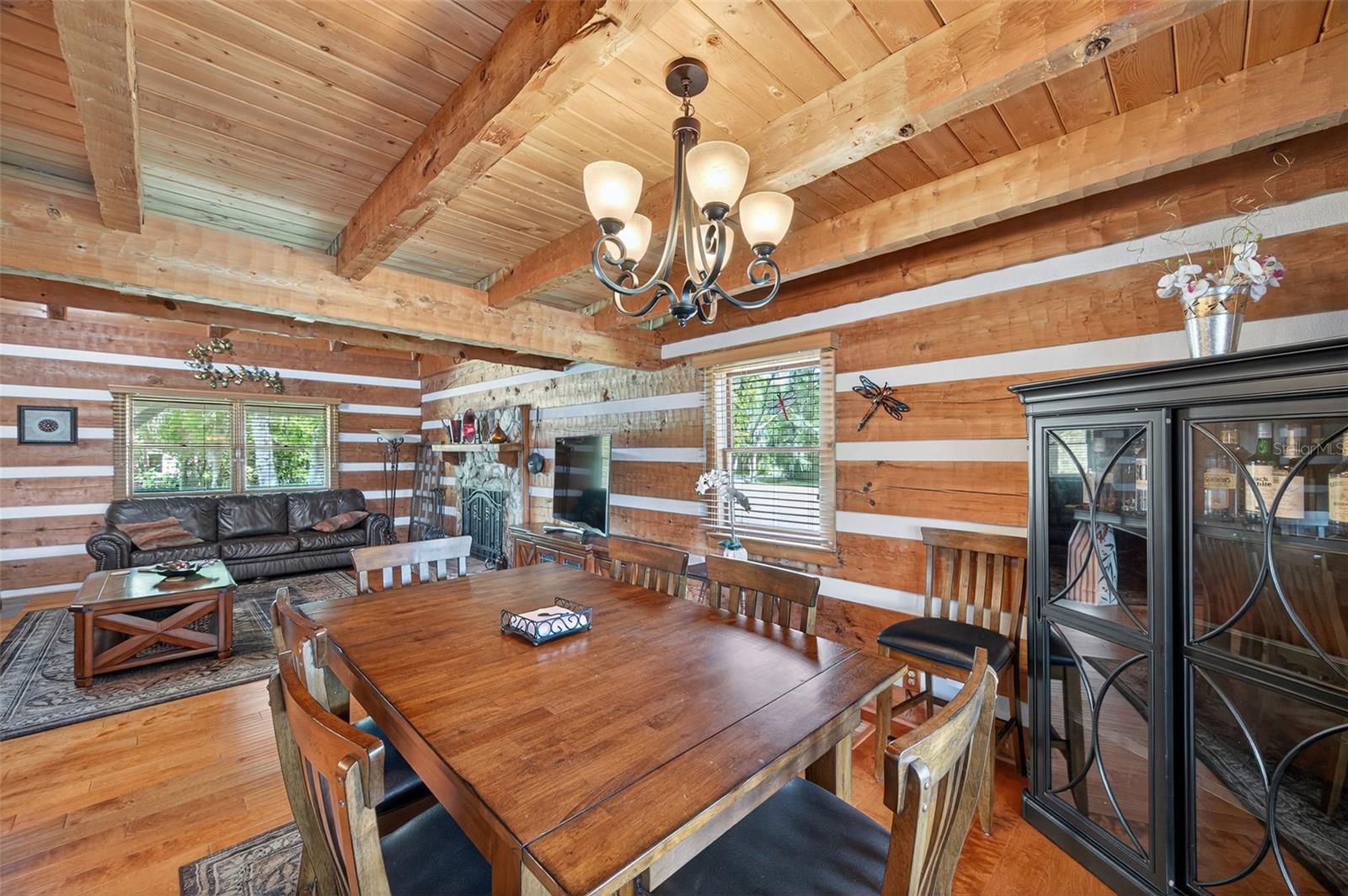 Custom Built 2,100 sq. ft. hickory log cabin that feels like your in the Grand Tetons ! Welcome home to this unique lakefront 2 acres fenced MOL. You are greeted by the open living and dining area that includes a working large stone fireplace, vaulted ceilings with custom post and beam construction. Wood floors, a large custom kitchen with newer stainless high end appliances, and granite countertops, through french doors to the huge rear screened porch leading directly out to the lake. Downstairs includes a 2 nice size bedrooms with tons of closet space and a large full size custom bathroom. The magnificent staircase leads to a open loft area that over looks the living room below. A Large master bedroom including a en suite with high ceilings and exposed beams. Tons of storage throughout the the house. You will enjoy the serninty of the peaceful country suroundings while sitting in the oversized deck and porch areas. Also included is a stand alone 2 car garage / shop area, and a stand alone shed. Please note that the A/C and roof, including drainfields are less than 5 years old, as well as the stainless steel well pump. Custom window treatments and all furnshings stay. Less than a 10 minute drive to all major shopping. This is amust see !!