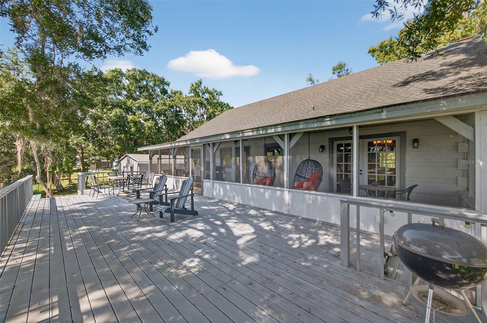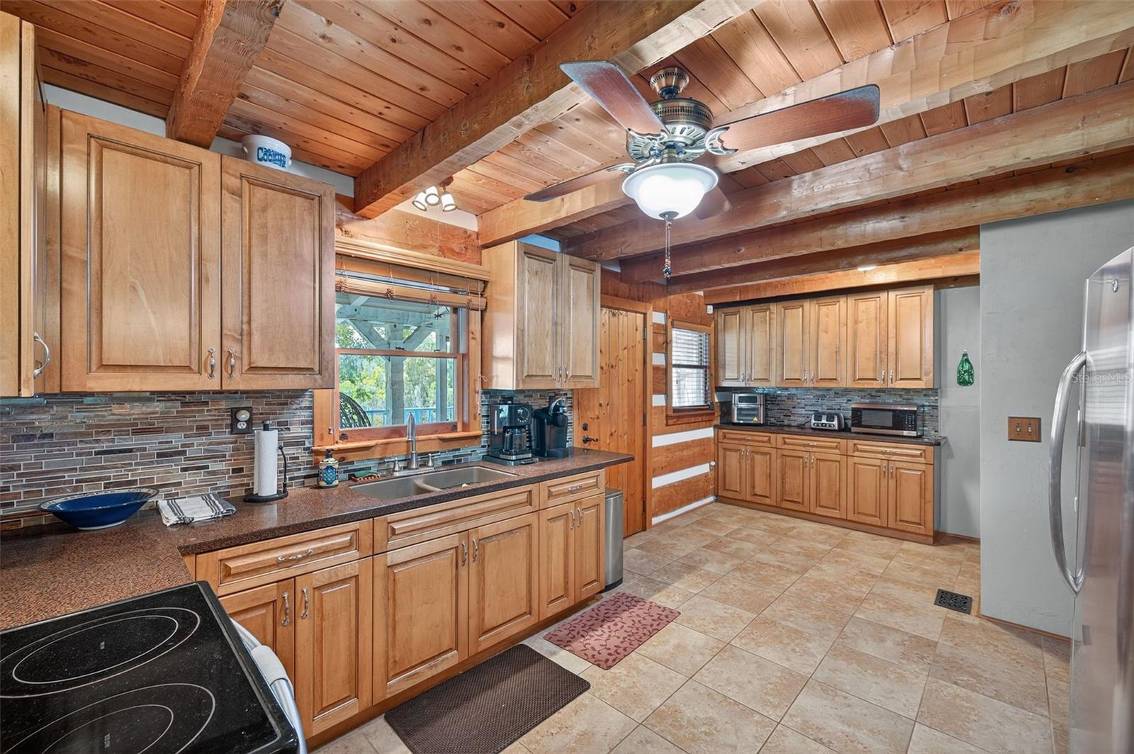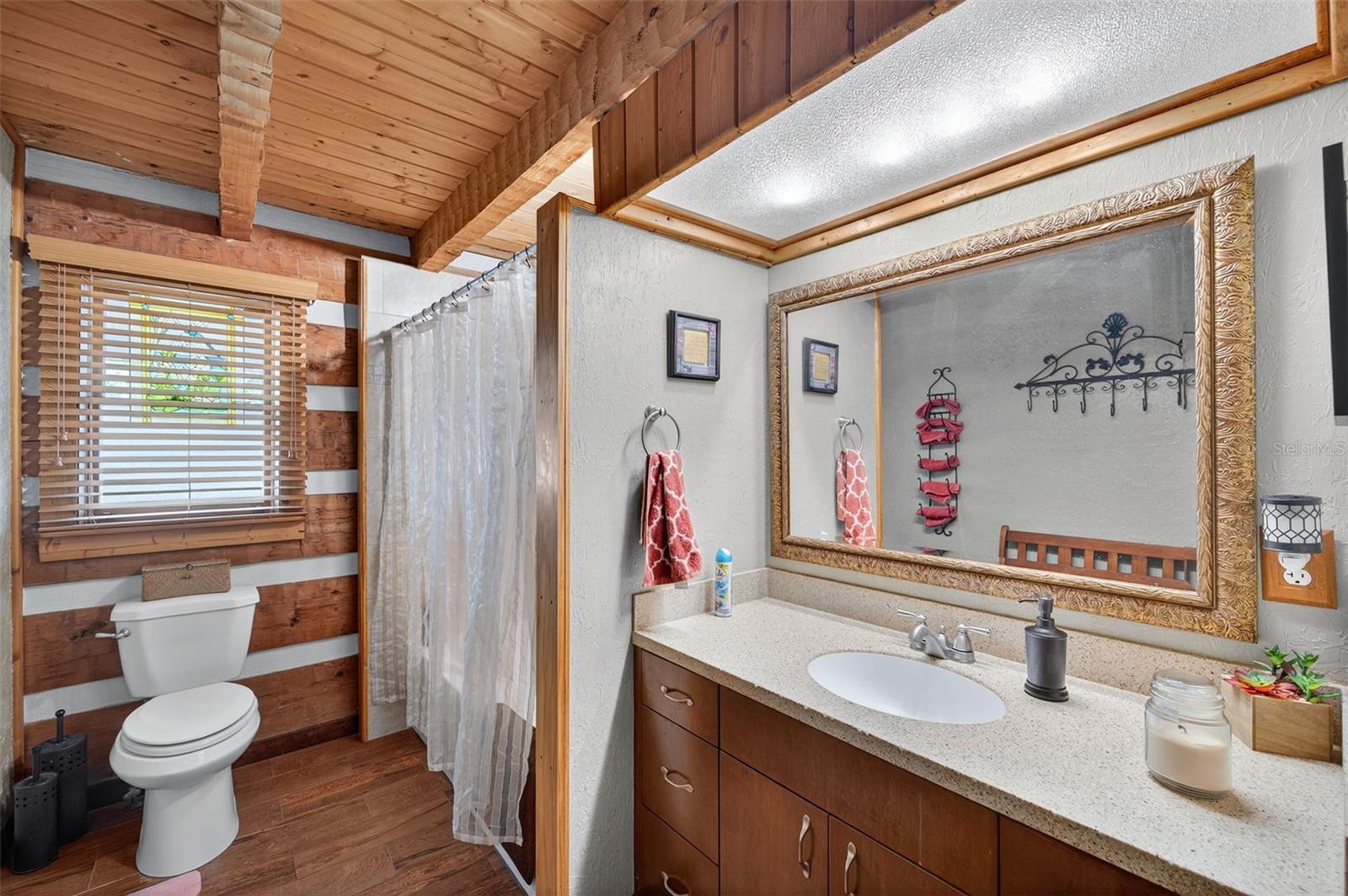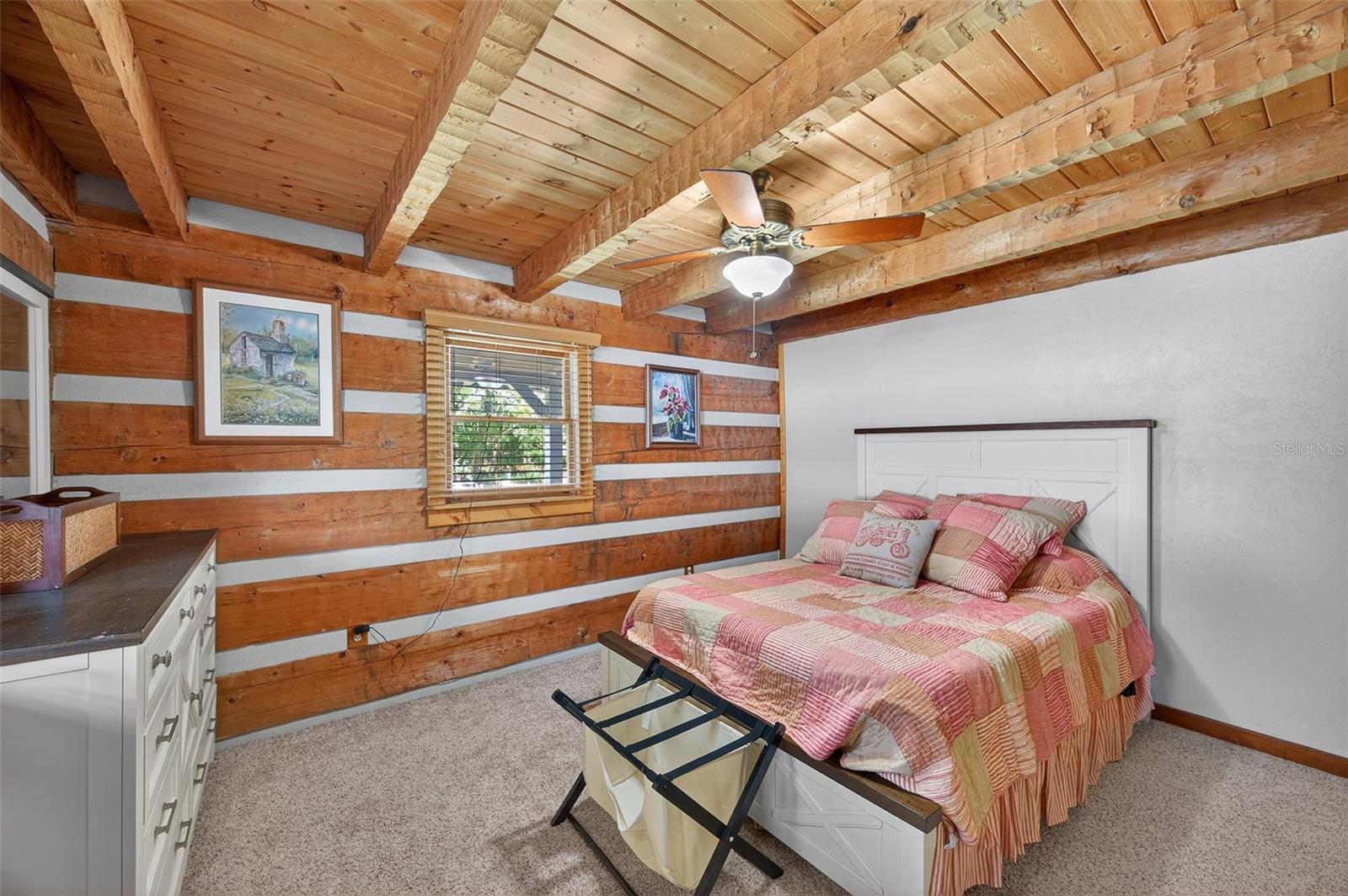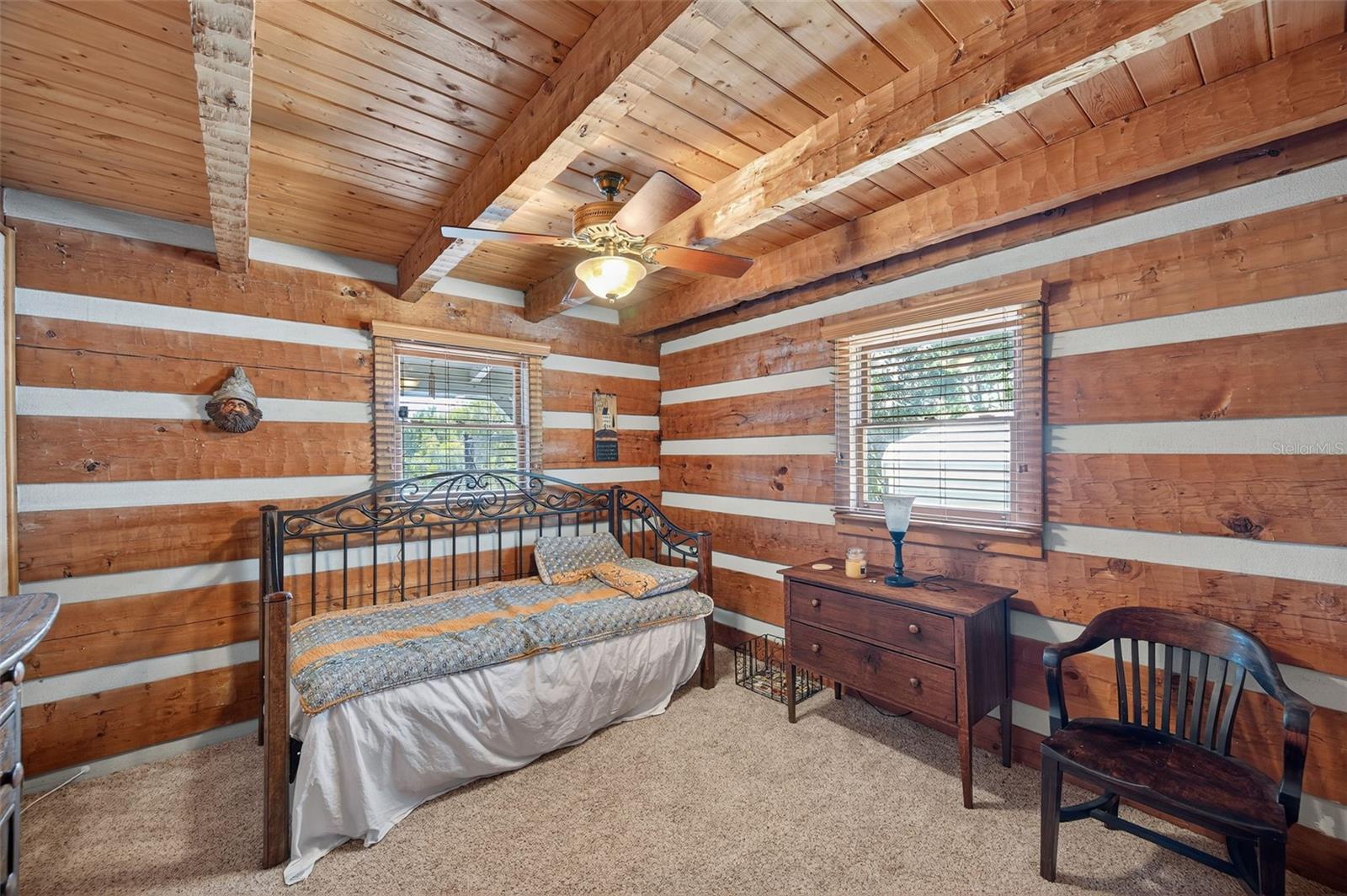 Custom Built 2,100 sq. ft. hickory log cabin that feels like your in the Grand Tetons ! Welcome home to this unique lakefront 2 acres fenced MOL. You are greeted by the open living and dining area that includes a working large stone fireplace, vaulted ceilings with custom post and beam construction. Wood floors, a large custom kitchen with newer stainless high end appliances, and granite countertops, through french doors to the huge rear screened porch leading directly out to the lake. Downstairs includes a 2 nice size bedrooms with tons of closet space and a large full size custom bathroom. The magnificent staircase leads to a open loft area that over looks the living room below. A Large master bedroom including a en suite with high ceilings and exposed beams. Tons of storage throughout the the house. You will enjoy the serninty of the peaceful country suroundings while sitting in the oversized deck and porch areas. Also included is a stand alone 2 car garage / shop area, and a stand alone shed. Please note that the A/C and roof, including drainfields are less than 5 years old, as well as the stainless steel well pump. Custom window treatments and all furnshings stay. Less than a 10 minute drive to all major shopping. This is amust see !!