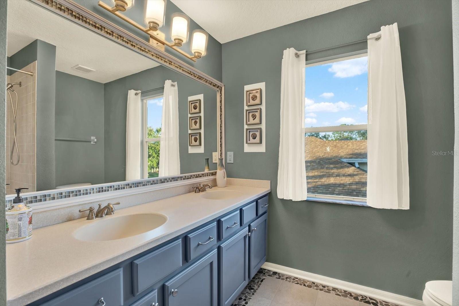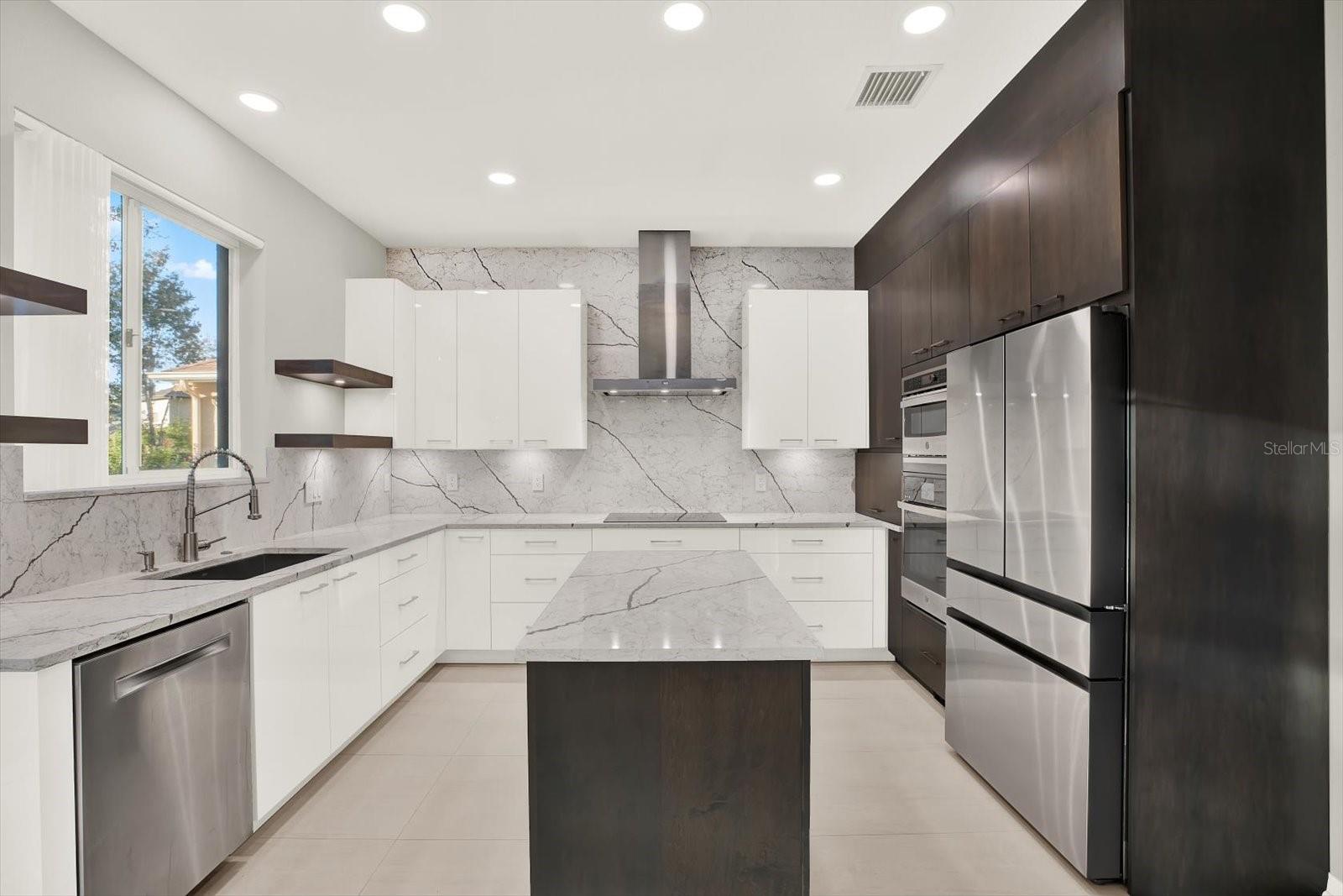 One or more photo(s) has been virtually staged. Absolutely Stunning 5 Bed / 3 Bath, 3426 Square Foot "Wilderness Lake Preserve" LAKE ACCESS Dream Home on a lush .30-acre conservation lot featuring: Movie Theater Room, Screened Lanai, New Roof, New AC, 3 Car Garage, 6 car Driveway, and 2 balconies and nearby Community POOL, Spa, Gym and Resort Style Amenities! Picturesque curb appeal with beautiful landscaping and covered front porch. Enter the grand foyer showcasing a dazzling chandelier, soaring ceiling and coat closet. An elegant banister staircase spirals upward. Engineered wood plank flooring perfectly complements the sophisticated and luxurious interior. Triple sliders hide completely when opened leading to the enormous covered and screened in lanai and back patio. The freshly remodeled kitchen shines with the highest level of modern two-toned cabinetry and stainless-steel appliances: Induction cooktop and hood vent, quartz countertops, and a matching backsplash, 2024 Samsung refrigerator, GE Profile wall oven, Bosch dishwasher and a built-in bar with a wine cooler, center island, walk in pantry and extra cabinet features such as extra deep drawers, under cabinet lighting, special pull-outs and appliance garage. A guest bedroom, lovely laundry room and a bathroom that can double as a pool bath are situated behind the family room. The upstairs is simply amazing and features: A luxurious primary suite with a sprawling bedchamber that opens to a large balcony and panoramic views, a huge ensuite complete with garden tub, walk-in shower, dual vanities, water closet and double California Style Closets including glass panel jewelry display cases. Another bedroom with balcony access, plus 2 more bedrooms, Romeo and Juliet Balcony access and a step-down sunken movie theater room equipped with a 135” screen and Epson 3D projector, or use the room for any other purpose. Huge backyard with wildlife preserve behind, built-in wall vacuum system, tankless reverse osmosis system, water softener, Ring doorbell, keyless entry, automatic irrigation and a cozy yet modern electric fireplace! Super LOW HOA only $256 a year. The combination of CDD and HOA cost is the best value around in terms of amenities included compared to overall cost. The Wilderness Lodge Amenities are extensive: Including: A lakeside Lodge-Styled four-building recreation complex offering fishing and boating docks, free loaner kayaks and canoes, lagoon and heated lap pools, gym overlooking peek-a-boo views of the lake and including a whole line of Peloton Bikes, Saunas, outdoor spa, barbeques around the pool, movie theater, party rooms, nature center, business center, sports courts include tennis, pickleball, basketball and sand volleyball. Treehouse style playground, many parks and planned events. The Combination of CDD and HOA fees are only about $340 per month. The main entrance has a gated guardhouse called "Ranger Station" but the gates are always open and high-resolution video cameras instead of guards. The Wilderness Lodge is staffed and open 7 days a week. Land O’Lakes has great schools including many public charter and magnet schools such as Countryside Montessori, Sanders STEAM, Angeline High-Tech, Classical Prep, and Land O’Lakes High School offers International Baccalaureate, AP, and Dual Enrollment programs. Quick drive to major shopping and about a 35-minute commute to Tampa. Only a minute from Publix and The Groves Golf. The front of WLP has many restaurants, cafes and businesses.