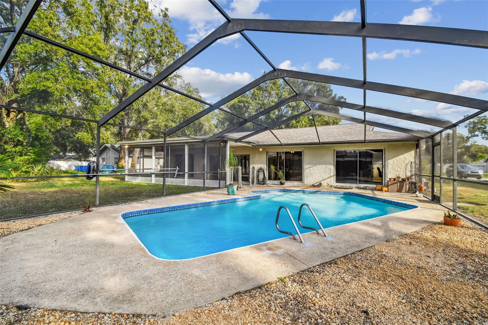 POOL HOME WITH LAKE ACCESS...This 3 bedroom 2 bath home is ready for you to move in and just enjoy the carefree lifestyle. The pool was just resurfaced and rescreened this year. The roof was replaced in 2023, air conditioner Sept. 2023, leaf gutters 2023 and pool pump 2019. The lanai is 12x30 with new tile just installed. All the room you could ask for with a formal living and dining room and separate family room and eat-in kitchen. Located on a cul-de-sac in a quiet neighborhood. And best of all you have access to 3 ski size lakes with parks and boat ramps, horse stables based on availability and tennis courts. Enjoy the country feel while cruising around in your golf cart or just going for a quiet walk. Close to county library and recreation facility and Shops of Wiregrass and the Outlet Mall. It doesn't get any better than this. And if you are a first responder, school board employee or medical personnel ask about the Gratitude Mortgage with 1% down and no PMI.