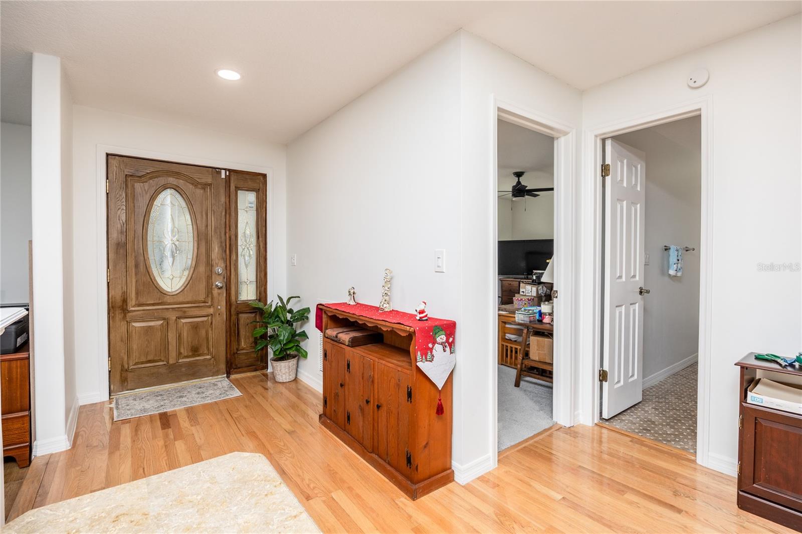 Welcome to 22481 Southshore Drive, a rare waterfront retreat in the highly sought-after Lake Padgett Estates of Land O' Lakes, Florida. Situated on an oversized .38-acre lot at the opening of a canal leading directly to East Lake, this 4-bedroom, 2-bath home with just under 2,100 square feet offers the ultimate Florida lifestyle in a private ski-lake community. Roof was installed in 2023, 2022 A/C, 2022 windows, and 2023 septic tank and freshly painted interior and exterior. Enjoy direct access to East Lake, a 100+ acre private ski lake featuring a slalom ski course, along with exclusive use of a gated waterfront park complete with basketball courts, pavilions, and a playground. Lake Padgett Estates is also famous for its golf-cart-friendly streets and access to multiple private ski lakes, including Lake Padgett, a 180-acre lake with waterfront restaurants and bars you can pull up to by boat and Lake Saxon, an 83 acre private ski lake. The backyard is an entertainer's dream, highlighted by an enormous 10-foot-deep swimming pool with a rock waterfall, all under a screened enclosure. An oversized 800-square-foot covered back porch with an attached bar creates the perfect space for hosting, while the expansive backyard is ideal for sunset fire pits and evening boat rides. A fully fenced side yard provides added safety for children and pets, and extra paved parking allows you to store boats, trailers, or an RV right on your own property. Inside, the home features real hardwood flooring throughout the main living areas. The spacious kitchen offers hardwood cabinetry and granite countertops, with a quartz backsplash making it both functional and inviting. The interior has been freshly painted, and the primary bathroom has been completely remodeled with modern 2025 finishes, showcasing large contemporary tile, a stunning standalone soaking tub, and a glass-enclosed walk-in shower reminiscent of a luxury five-star hotel. Pool maintenance is included, adding even more value and convenience. This is a rare opportunity to own a true waterfront home in one of the most desirable communities, where boating, skiing, wakeboarding, tubing, sunsets, and golf-cart living are part of everyday life. 5 minutes to Publix. 5 minutes to TGH Urgent Care & 15 minutes to I-75.