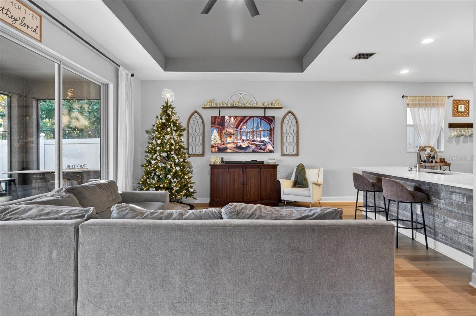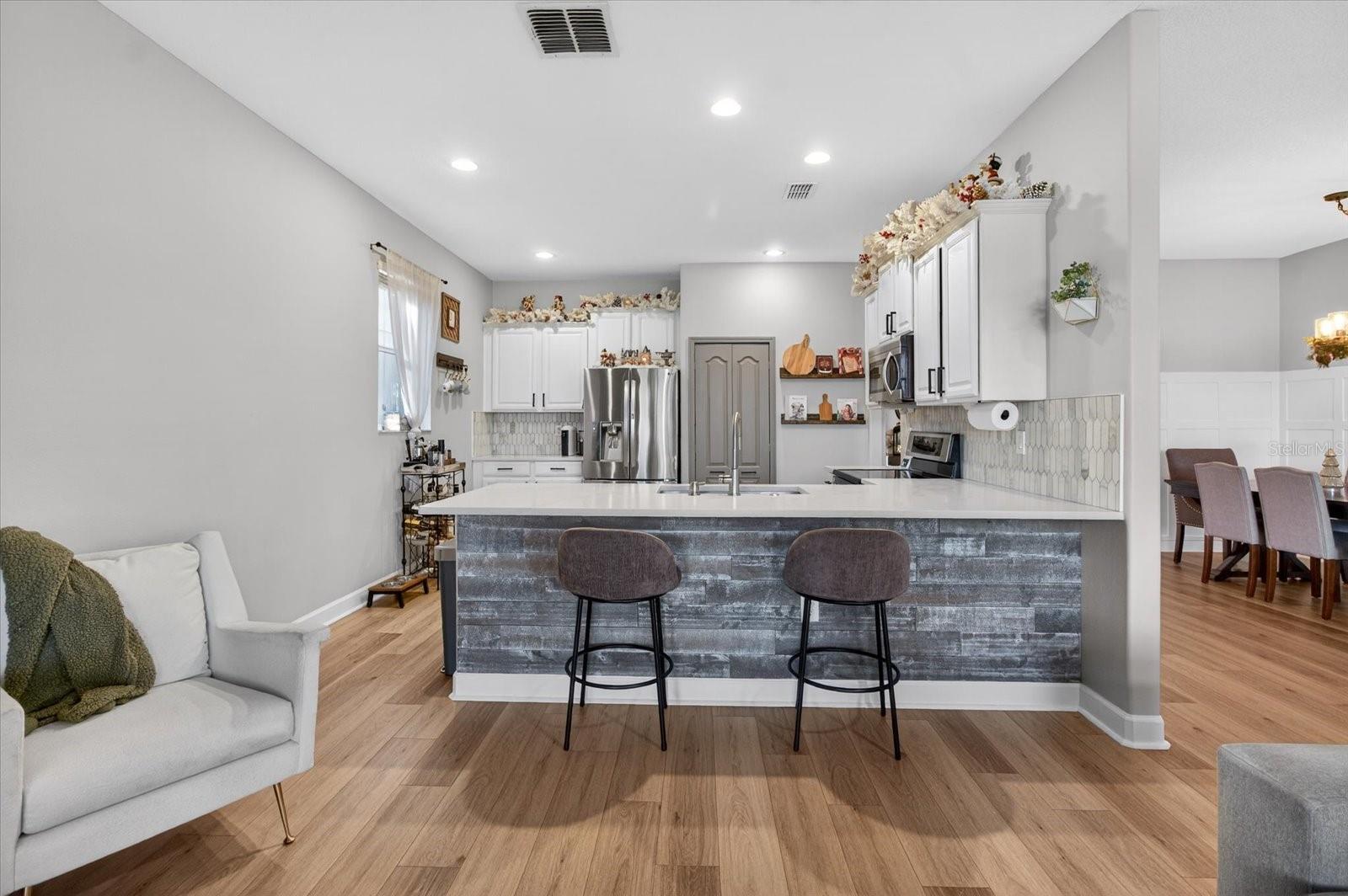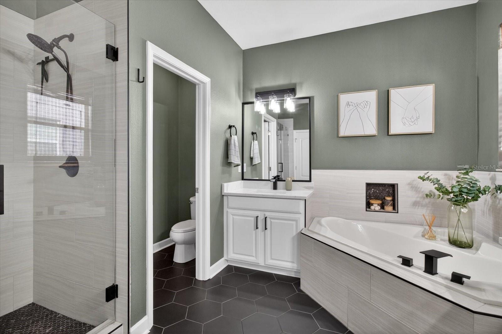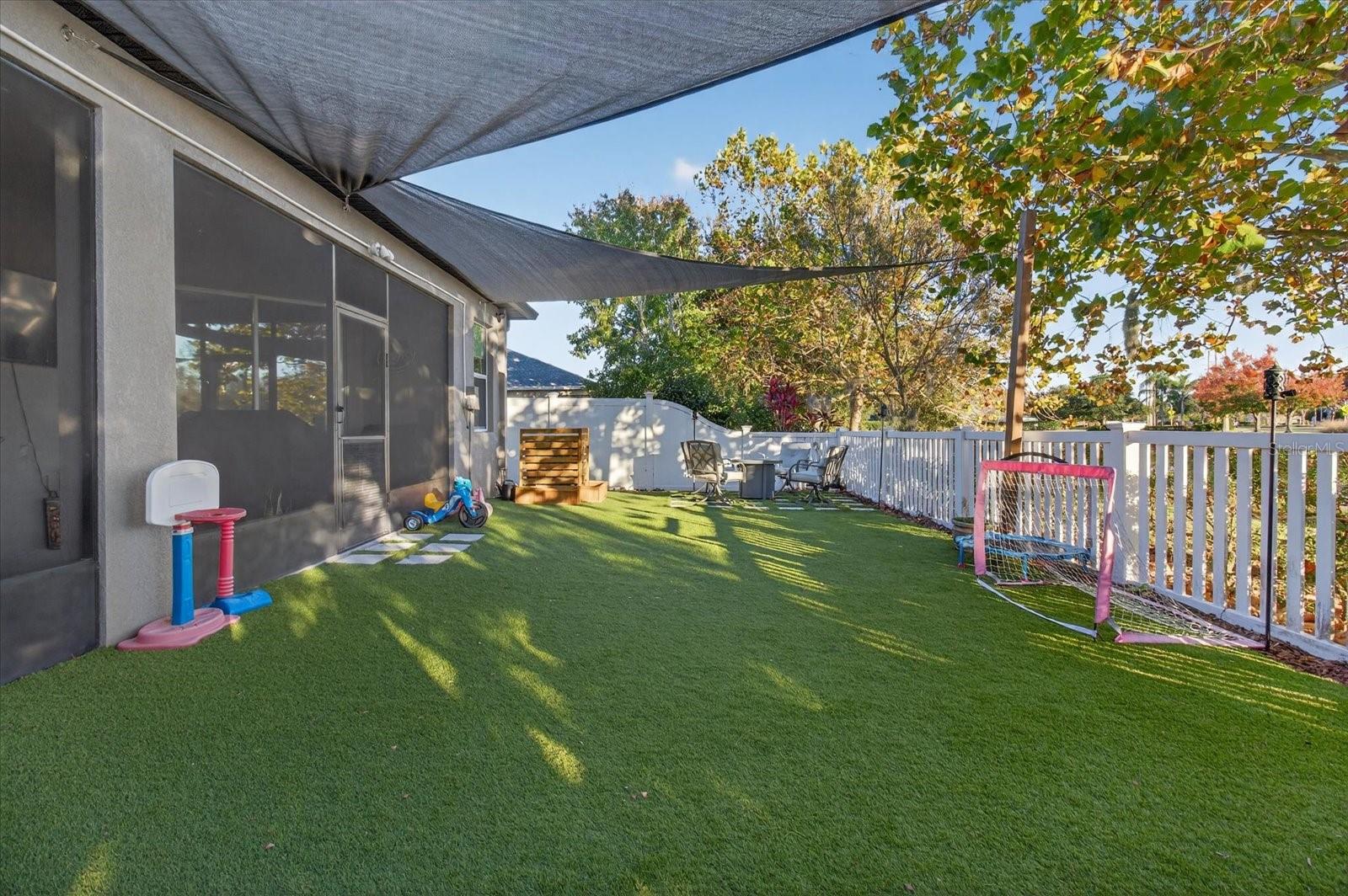 SELLER'S MOTIVATED! This beautifully upgraded, move-in-ready home located within the sought-after Concord Station community is perfect for modern family living, offering comfort, style, and thoughtful functionality throughout. Curb appeal shines with refreshed front landscaping, exterior paint completed a few years ago, and a new roof installed this year (2025) for added peace of mind. Luxury Vinyl flooring throughout (2023), painted cabinetry in every room, and updated light fixtures and ceiling fans. Fully updated kitchen featuring upgraded countertops, a stylish backsplash with under-cabinet electrical for a clean, uninterrupted look, and a new single-bowl sink with modern faucet. All bathrooms have been refreshed with new faucets, and the primary suite offers a relaxing retreat with updated tile and a glass shower door. Accent walls in the dining room, primary bedroom, and a secondary bedroom to wrap it all together to bring in that "home" feeling you are looking for. Additional storage with an enhanced attic including LED lighting and extensive plank flooring, plus a garage equipped with built-in 2x4 storage and a hanging wire rack—ideal for keeping everything organized. Water softener (2024). Low-maintenance backyard and featuring a full sized screened in back patio with additional sunshades, making it a great space for play, relaxation, and outdoor entertaining with a view of the pond as well.