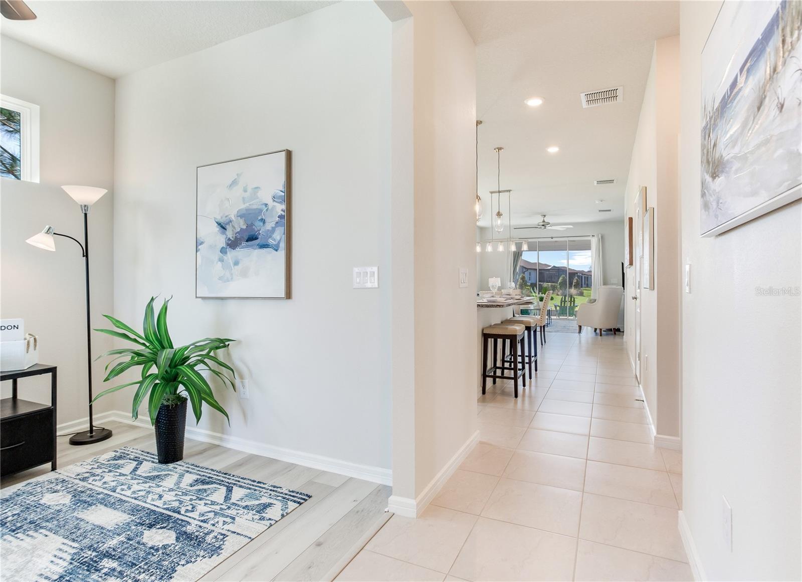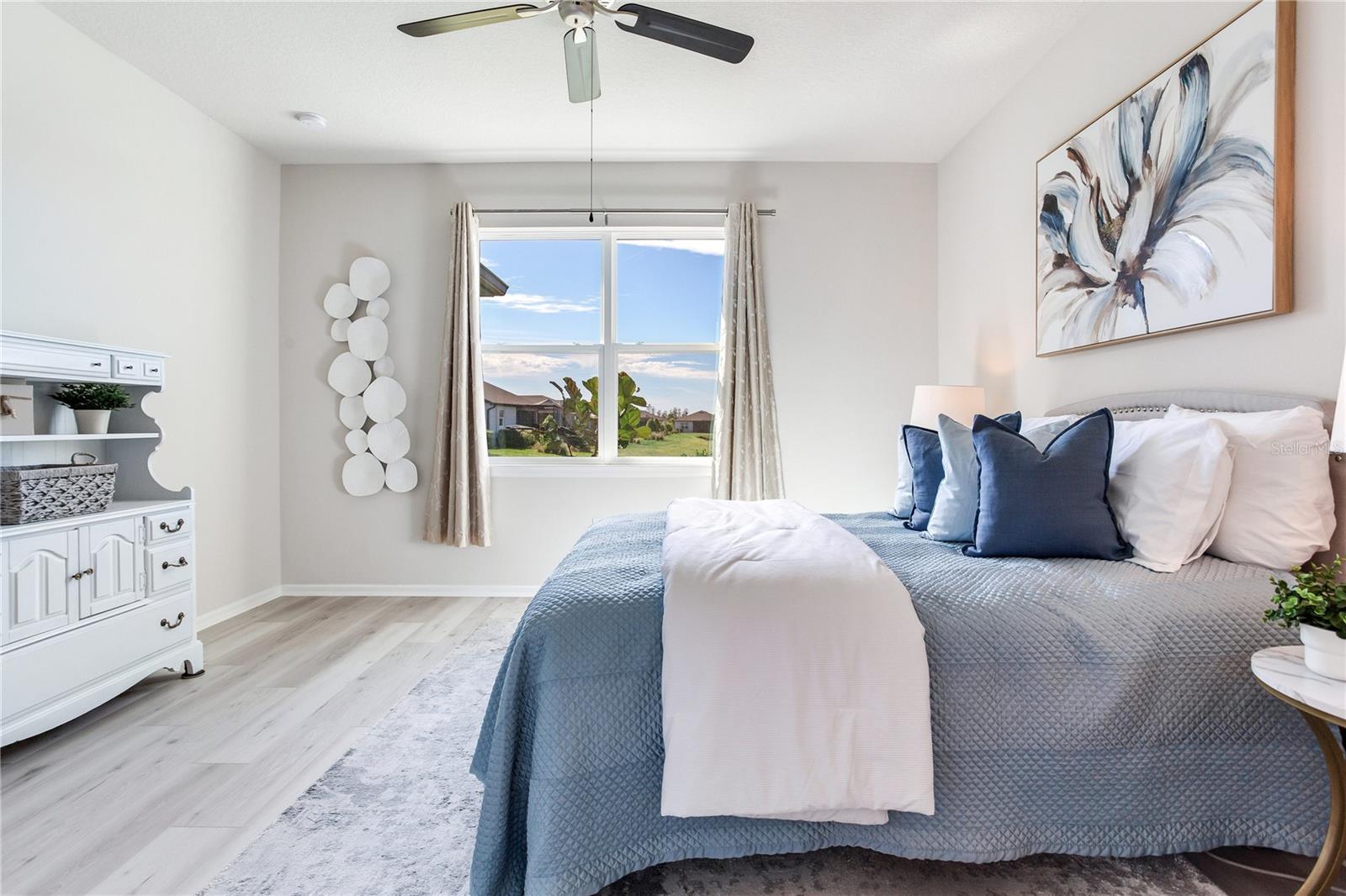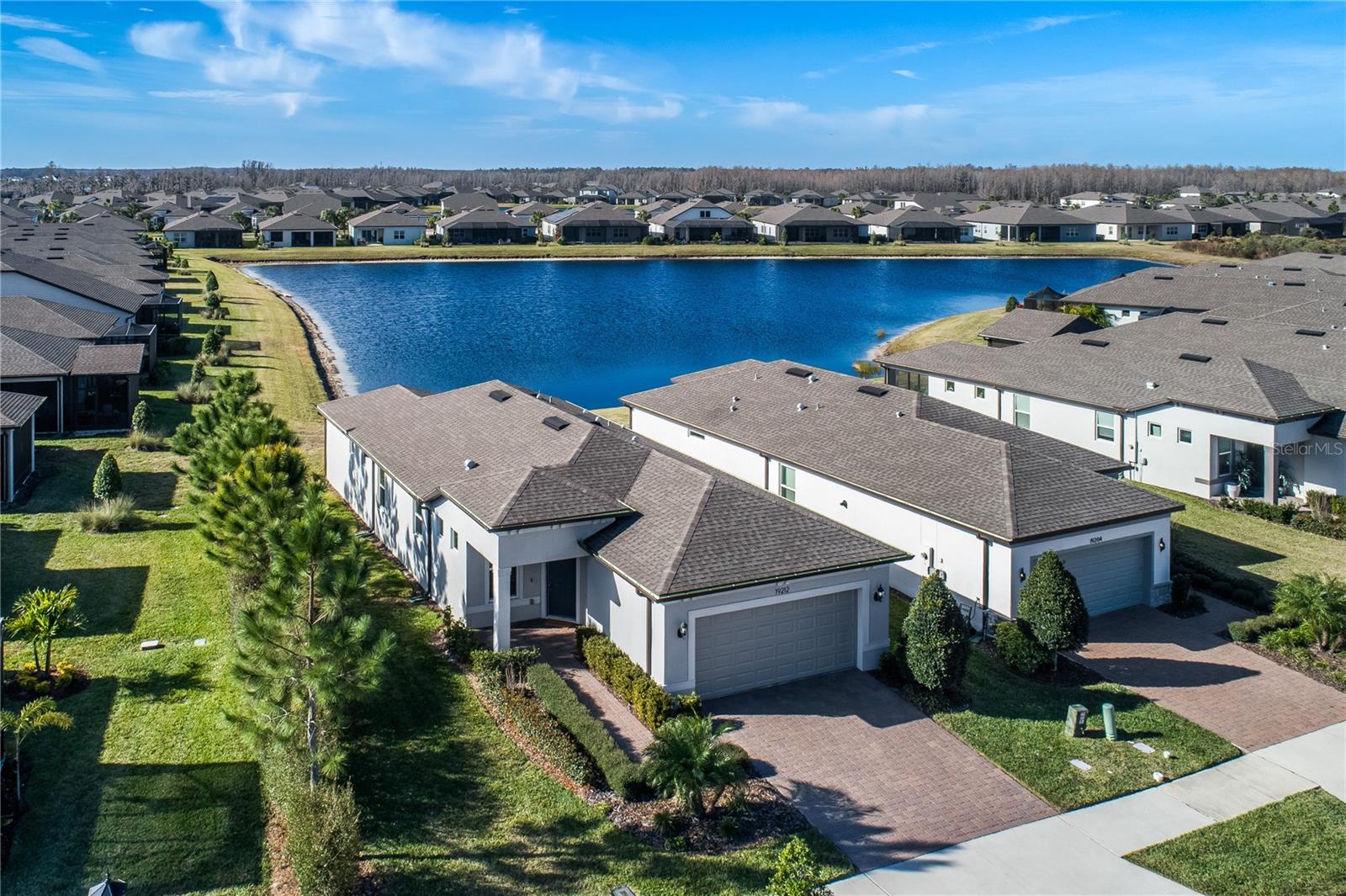LUXURY RESORT LIFESTYLE living at its finest!!! This NEWER 2022 Pulte residence which PERFECTLY encapsulates the WOW-FACTOR is located in the HIGHLY desirable Award-Winning MAINTENANCE FREE 55+ neighborhood of Del Webb BEXLEY! The Del Webb reputation of a renowned active lifestyle is exemplified in Bexley starting with the 19,000 sqft Meridian Clubhouse, exclusive to Del Webb residents, full spectrum of social activities and abundance of amenities alongside a full-time lifestyle director! This BRIGHT & AIRY highly appointed MODEL-like home features 2 Bedrooms + 2 Full Bathrooms + Flex/Office Space + 2 Car Garage spanning 1,400 sqft and is situated on a PREMIER lot with Magnificent POND views – A Must See!!! Explore the truly remarkable elements that elevate this home including over $22,000 in enriching Structural & Designer Builder Options + $13,600 in After-Build Upgrades!!! A RARE find at this price point with spectacular NEW upgrades, including NEW Luxury AquaShield Wide-Plank High Performance Waterproof Flooring in Office & Bedrooms (2025!) + NEW Lanai Sunbrella Marine Canvas Outdoor Curtains – comes with 10-year Fade Free Warranty (2026!). The exterior features a welcoming brick paved driveway, delightful front porch & beautiful architectural detail on the exterior of the home. This immaculate home combines SUPERIOR craftsmanship & SMART, ENERGY-EFFICIENT design elements for the modern-day lifestyle! This DESIRABLE floorplan offers a SPACIOUS Great Room Design featuring a Gathering Room with Triple Sliders that provide uninterrupted views of the lanai & serene outdoors + GRAND Kitchen with Oversized Island + Expansive Café Dining Room with Modern Lighting & Spectacular Pond Views! The well-appointed GOURMET kitchen features an OVERSIZED ISLAND with Ample Bar Stool Seating + GAS Range with Hood + Fashionable 42” Shaker Cabinetry & Pullout Drawers decorated with Classic Crowned Molding + Spectacular Granite Countertops & Decorative Ceramic Backsplash + Stainless-Steel Appliances – a CHEF’S DELIGHT!! Working from home or simply need extra space to relax? This beautifully designed residence offers a Flex Space that can easily be utilized as an Office, Sitting Room, Workout Room, or Multi-Purpose Room for today’s lifestyle! The CHARMING private screened lanai with NEW Privacy/Sunshade Curtains allows for use anytime – day or night – and is PERFECT for entertaining! Brilliant Additional Finishes Include: Innovative PICTURE FRAME Lanai Screen + Elegant Soft Close Cabinets + Tankless Water Heater + Hurricane Shutters + Outdoor Lania Kitchen Wall + Plumbing for Outdoor Kitchen + Rain Gutters + so much more!!! Del Webb World-class amenities include the Meridian Clubhouse featuring Pools (Resistance & Lap Pool) & Hot Tub, Bocce, Tennis & Pickleball Courts, Community Garden, Dog Park, Fitness Center, Movement/Yoga Studio, Arts & Crafts Room, Meeting Rooms, Outdoor Pavilion & Kitchen, Café/Bistro with Wine & Beer Bar & so much more! Located near the entrance to Bexley is the “Hub at Bexley” – which has everything from restaurants to shops to entertainment! LOCATION, LOCATION, LOCATION! Bexley Del Webb is conveniently located on SR 54 near the Veterans Expressway with easy access to Tampa International Airport, Major Interstates (to Orlando, Downtown Tampa & St Pete), Malls (including International Mall), Fine Dining & Award-Winning Beaches! Golf Cart Friendly! NO flood insurance required. Washer & Dryer stay! Enjoy a RESORT LIFESTYLE EVERYDAY!!