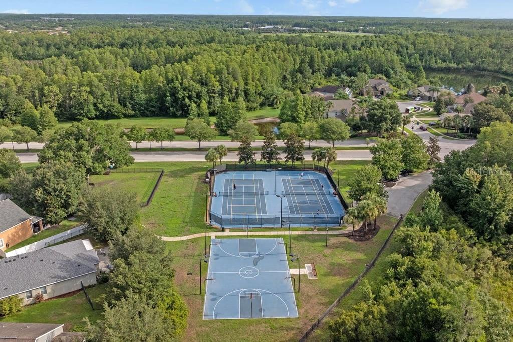 NEW PRICE, combined with modern Mediterranean Style luxury with 1000 sq. ft. of outdoor Florida Living space with Pool/Spa and Enclosure. This stunning home located in the highly sought-after Lakeshore Ranch gated community. Built in 2016, this home offers 6 bedrooms, 4 bathrooms, and spans 4,828 square feet of living space. Upon entering, a private den/study to the left greets you before leading to the kitchen and living room. Living area features sliding doors that open completely blending the indoor living with the outdoor screened-in, heated SALT WATER pool complete with a paved patio and outdoor living space. The gourmet chef's kitchen combines style with functionality, featuring granite countertops, updated appliances, built-in oven and microwave, 5-burner gas stovetop / range with stone backsplash, oversized island seating 5 with sink, custom solid wood cabinetry, walk-in butler's pantry complete with wine cooler refrigerator and coffee bar. Living and dining room feature custom chandeliers and recessed lighting. First floor has a bonus media room that may be used as a home theater, game room, or in-law suite. Second floor master suite features an ensuite bathroom with split dual sinks, vanity space, private toilet, separate tub and tiled shower, and massive master walk-in closet. Remaining upstairs bedrooms feature plenty of space, Jack & Jill bathroom with closet storage. Home technology includes a security system and in wall pest control system. Lakeshore Ranch has 24/7 manned security with gated system. multiple community pools, fitness center, clubhouse, playground, basketball courts, tennis / pickleball courts; making it one of the most sought after locations in Land O Lakes, Florida.