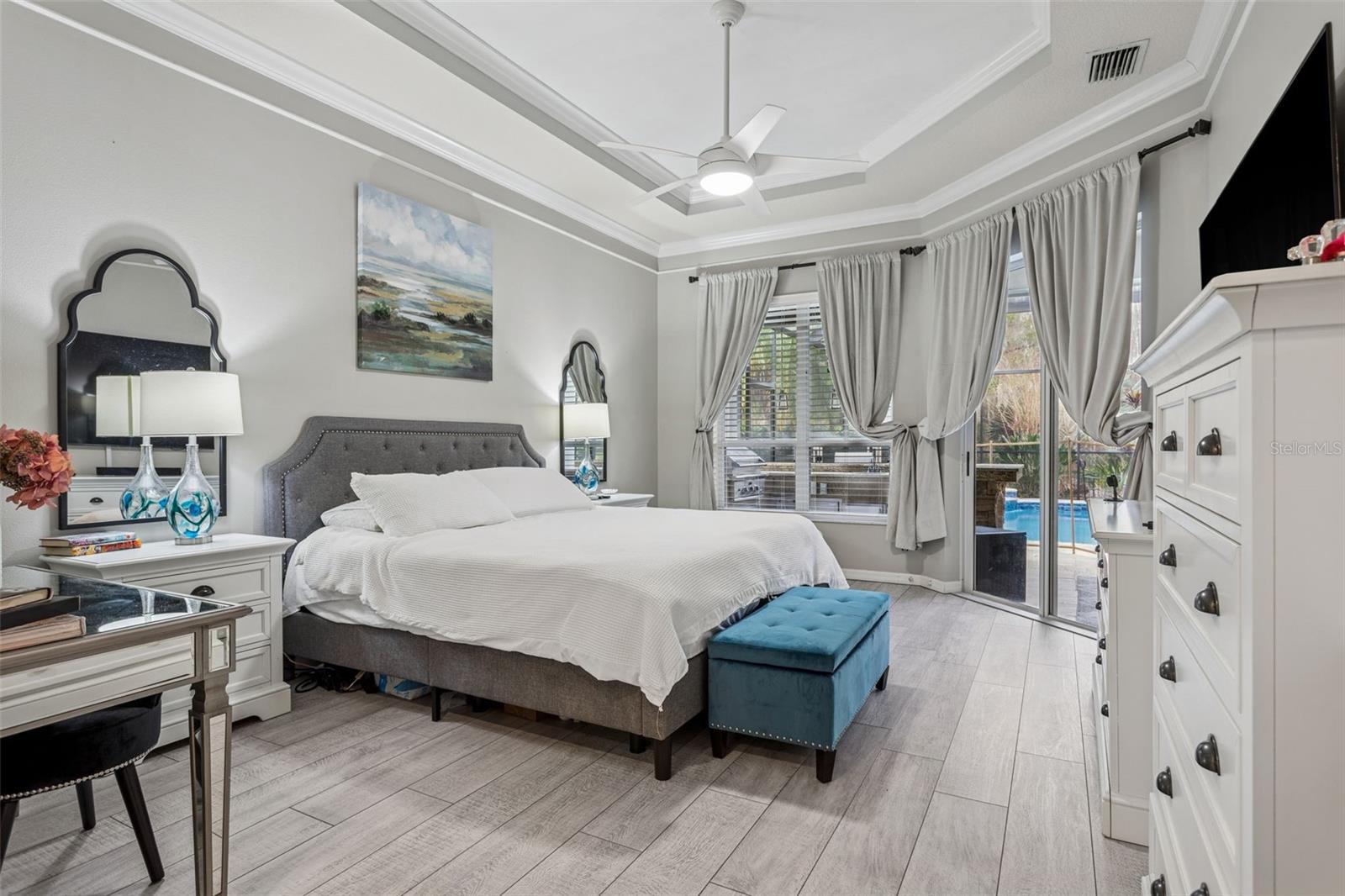 Come see your next luxury home in the coveted Pasco Sunset Lakes gated community before it's gone! This community is one of the most desirable in Pasco County conveniently located just off State Road 41 and State Road 54. This 0.38 acre lot features lush landscaping abutting a private conservation area behind the home. With first view of the home, you can tell how much care has been given by the owners including multiple updates from when it was built by renowned Arthur Rutenburg. The grand entrance opens to a secondary living room large enough for it's current use as a billiards room. You will notice immediately the beautiful ceramic tile flooring that has been run through out the living areas of the home recently. A private office with custom wood cabinetry and desk are a perfect fit for those who work remotely. As you enter the family/kitchen shared open plan, you'll notice the custom light fixtures shining brightly through out the home. The fully updated kitchen with island, also includes a wine bar, gas lined burners, pot filling faucet, and many more custom features that the sellers did not hold back on. Every room features tall ceilings with ambient natural light from the builders attention to including open air feeling and window access points with the owners added plantation shutters and remote control blinds. The media room is conveniently located to the back of the home for privacy depending on your future use along with a guest suite that has also been updated. The two guest bedrooms are also separated to the east of the home sharing another updated bathroom. This home truly has a split plan with open living concepts ideal for all home owners. The primary bedroom with heightened ceilings is plentiful in space for a king bed with french doors and custom closets looking out to the patio pool area. The primary bathroom has went through a complete remodel, with a beautiful soaking tub and separate walk in shower. The double vanities feature custom cabinetry and quartz countertops. Upon entering the patio area you are greeted with a custom outdoor kitchen and bar that has been tastefully done. The screened patio is very spacious with two separate sitting areas for use. The pool and spa have been beautifully maintained and resurfaced, and highlight the outdoor use of this home. The backyard is fenced in and spacious for those to entertain and enjoy. The three car garage has custom built cabinetry and fresh epoxy coated floors for added touch. One of the additional highlights of this home is the conservation area abutting it for true private living. Pasco Sunset Lakes is a golf cart–friendly gated community known for its pristine lakes, private boat ramp with 42-acre ski-lake access, playground and gated access. The location is conveniently located between SR589 Veterans Expressway and I275 for access to downtown Tampa and Tampa International Airport. Updates to this home include the following: Kitchen (2024), Bathrooms (2024), Flooring (2024), Tankless Water Heater (2023), Roof (2024), AC (2016 & 2017), Pool Resurfacing (2021). Come see your next home before it's gone!