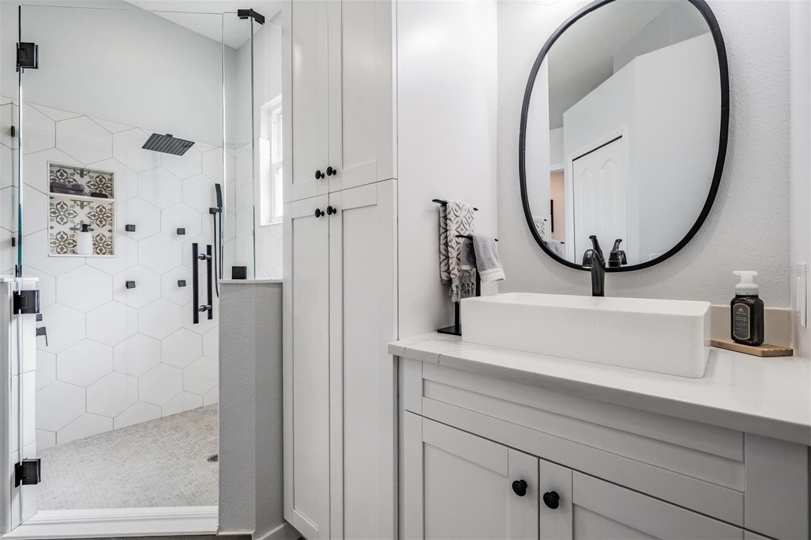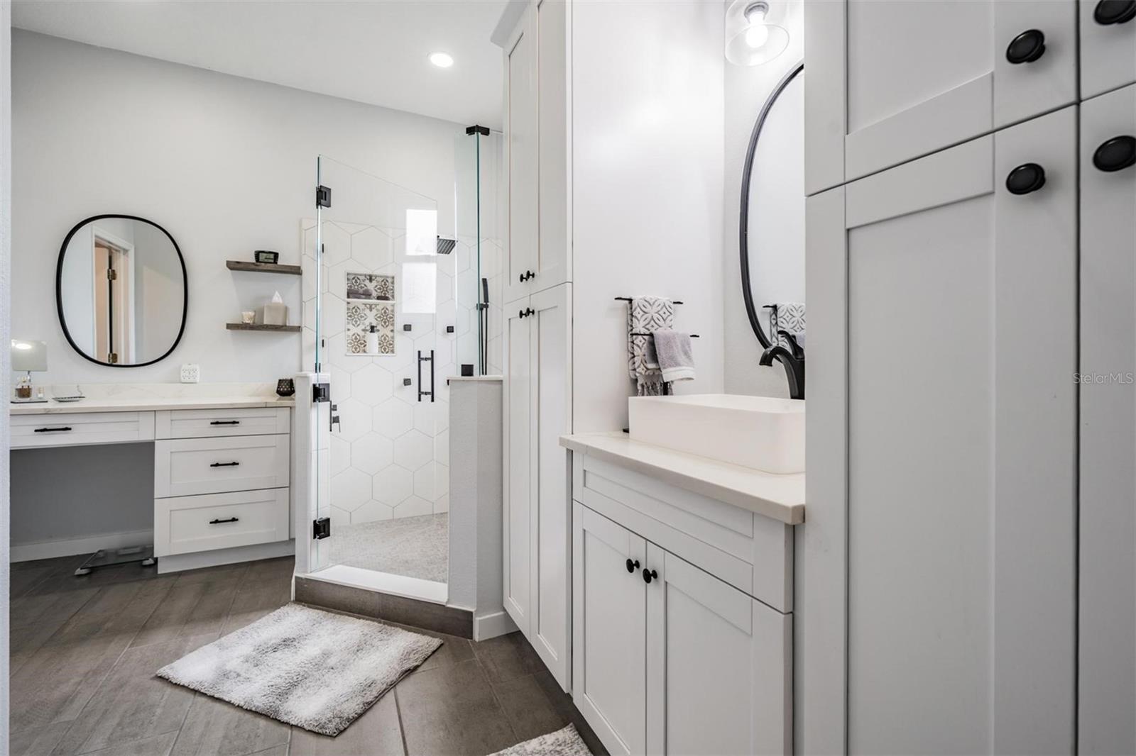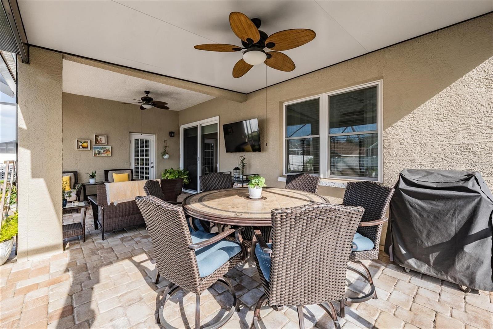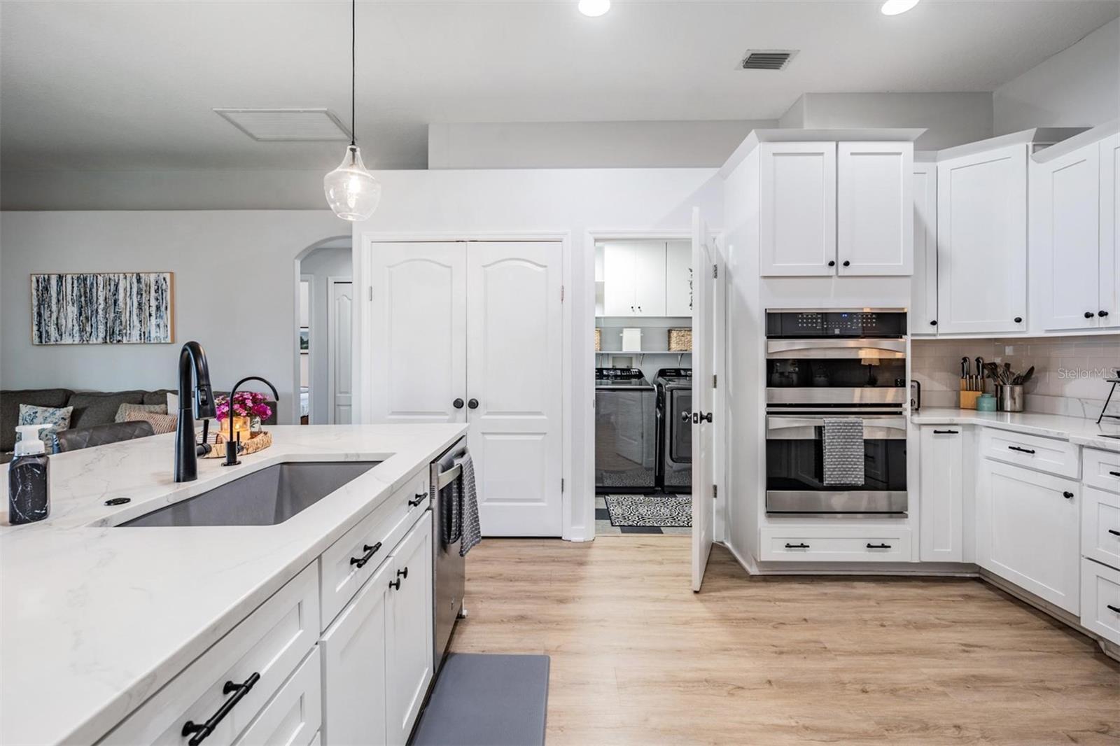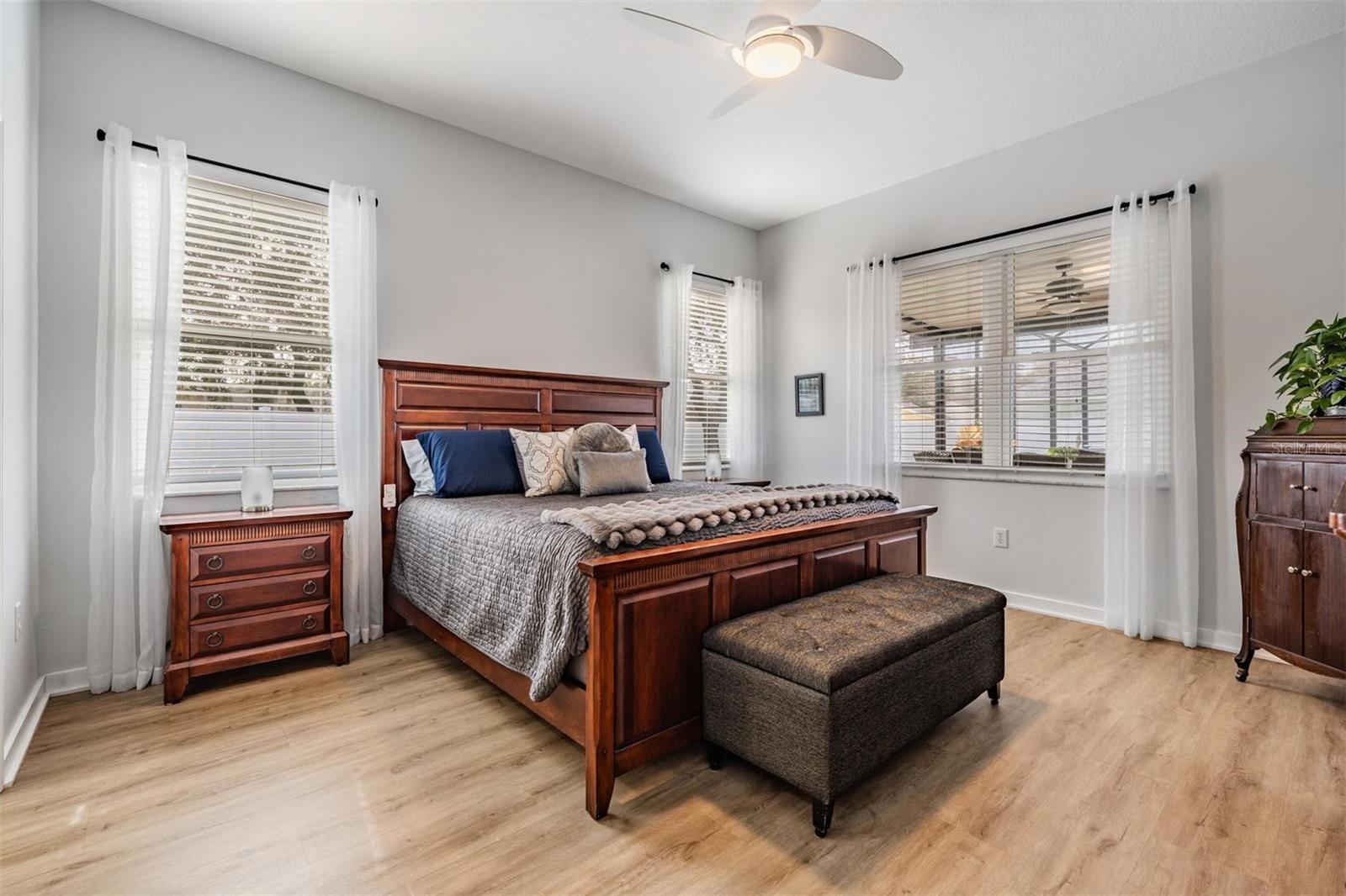 Come check out this charming, meticulously renovated home located in Stagecoach, designed to impress even the pickiest buyer. Situated at the end of a quiet neighbor friendly, cul-de-sac on nearly one-third of an acre, this stunning pool home offers privacy, space, and style. As you step through the front door, you’re welcomed by continuous LVP flooring throughout and a versatile layout featuring a formal living room on one side and a formal dining room on the other both of which could easily be converted into additional rooms if desired. The kitchen was updated in 2021 and showcases white shaker cabinets, stainless steel appliances, and quartz countertops. The upgraded pantry includes custom built-ins and drawers, making organization effortless. The family room continues the cohesive design with built-in cabinetry that perfectly matches the kitchen for a seamless, high-end aesthetic. The primary suite is a true retreat, featuring a spacious bathroom with a dedicated makeup area, a rain-head shower with massaging jets, and ample storage. The walk-in closet is outfitted with custom built-ins. With a desirable split floor plan, the opposite side of the home offers three additional bedrooms and an updated bathroom that also serves as a convenient pool bath. Step outside to your own summertime oasis. The oversized heated saltwater pool features a sun shelf and spa, ideal for both relaxing and entertaining. The lanai includes an insulated seating area to help keep you cool during warm summer days, and as the sun sets, an automated sunscreen can be deployed for added comfort. The expansive backyard offers plenty of space for pets, outdoor activities, or gardening. To top it all off, the location can’t be beat, close to major shopping, interstate access, restaurants, and more. This exceptional home truly has it all and is the perfect fit for comfortable Florida living.