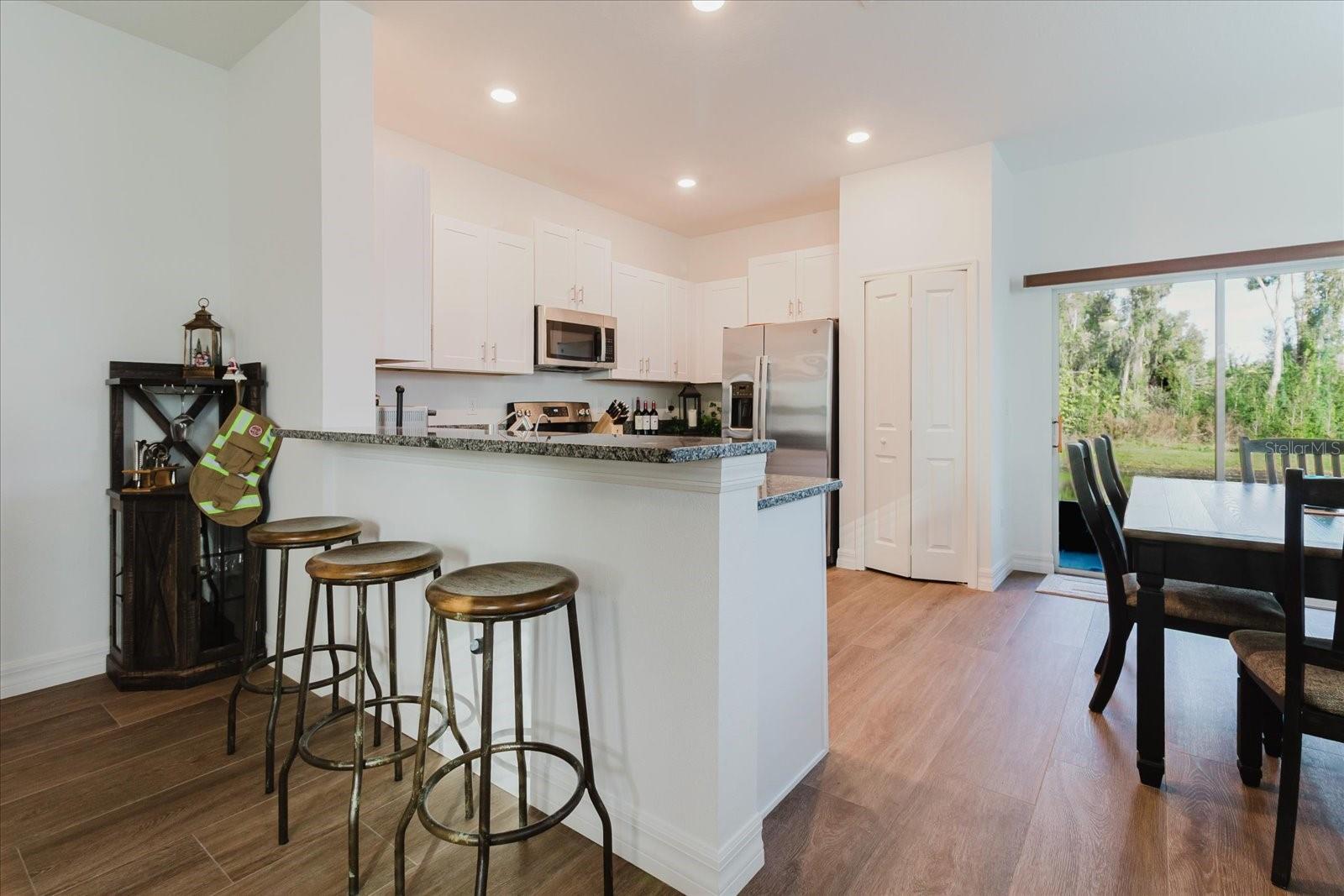 Come check out this 2023 built 2 bed, 2.5 bath townhome in a beautiful new community. With a well kept community pool and a fishing dock on Lake Thomas, this will be a place you can call home for years to come. The townhome has stone counter tops in the kitchen and bathrooms as well as stainless steel kitchen appliances. The porcelain tile floors complete the modern look of the main living area along with a matching dining room table and tv set that are included with the purchase. Upstairs you will find both bedrooms, each one featuring a walk in closet and bathroom. The master has dual sinks while the other has a bath tub. Gorgeous views of nature can be seen all around this community which is located in the heart of the growing Land 'O' Lakes area. Excellent school zone offering "A" graded schools with gifted programs offered at all ages. Additional features include Washer/dryer room upstairs as well as a screened in porch and a view of the pond from the master bedroom. Please don't hesitate to call the listing agent if you are interested in viewing this home.