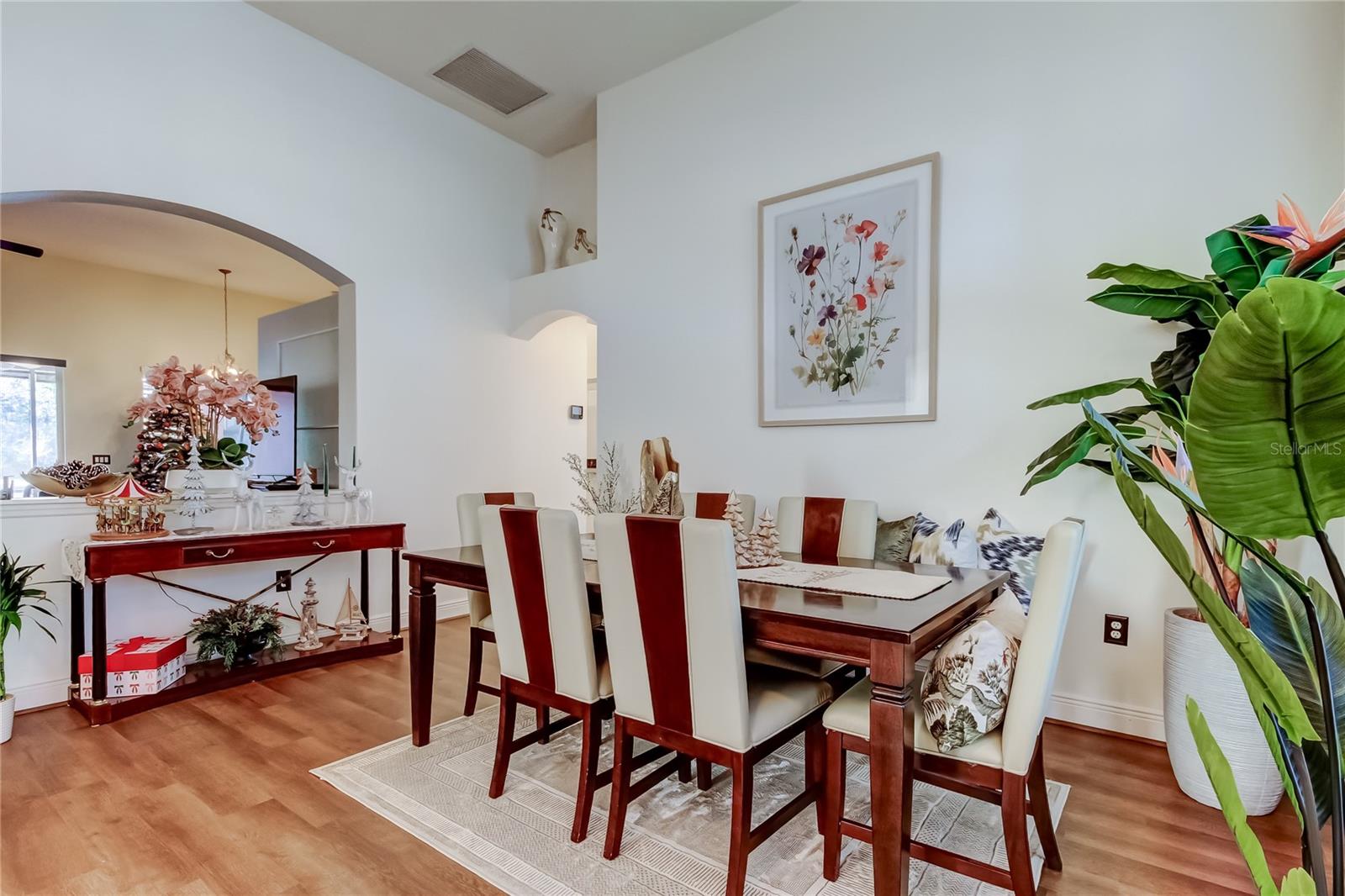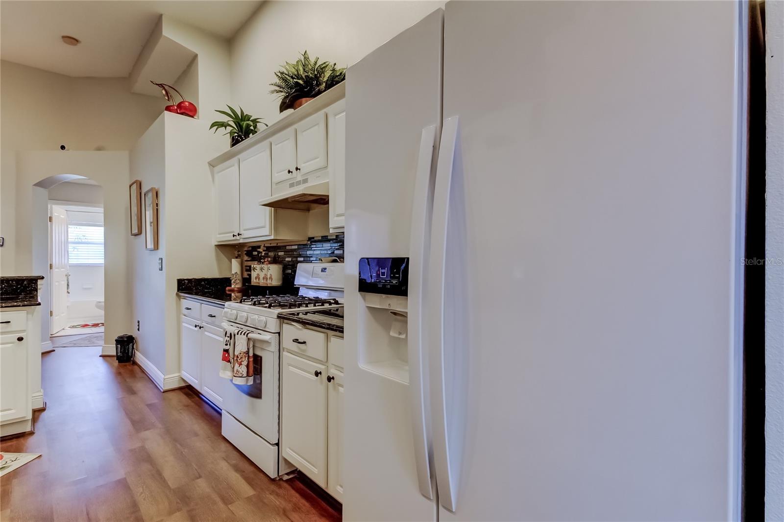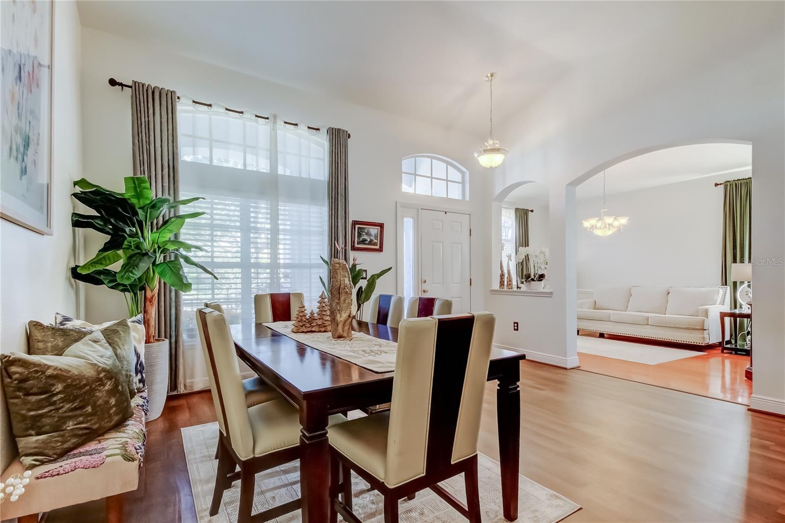 Beautifully maintained and thoughtfully designed PONDVIEW HOME... this 4-bedroom, 2-bath 2300 square foot, 2 car garage home is located in the highly desirable Oakstead Community. From the moment you enter, an expansive foyer leads into a sun-filled formal dining room, creating an elegant setting for entertaining and everyday living. The open living area flows seamlessly into the kitchen featuring shaker style cabinets, granite counters & plenty of storage space and cute breakfast nook area, offering a warm and inviting space ideal for gathering. Sliding glass doors open to a covered, screened-in porch with a ceiling fan and tranquil views of a serene pond framed by mature palm trees—perfect for relaxing mornings or evening sunsets. The kitchen and bathrooms are appointed with granite countertops, adding a touch of sophistication throughout. A conveniently located laundry room between the garage and kitchen enhances daily functionality. The split-bedroom floor plan provides privacy and flexibility. Two bedrooms are situated toward the rear of the home nicely appointed with rich engineered hardwood floors, while Bedroom 2 is located at the front with a built-in closet, chair rail, modern paint scheme engineered hardwood floors. Its proximity to a full bathroom also makes it ideal for use as a private guest or in-law suite. The owner’s suite is tucked away on the opposite side of the home and features a spacious en-suite bathroom with double vanities, a walk-in shower, a garden soaking tub, and a generous walk-in closet—your own private retreat. Additional highlights include exterior security cameras, reclaimed water irrigation, a 3-zone HVAC system, a roof replaced in 2020, and exterior paint updated in 2021, brand new luxury vinyl flooring throughout main area reflecting the exceptional care given to this home. Oakstead residents enjoy resort-style amenities including a clubhouse, lap and kiddie pools, fitness center, covered playground, tennis and pickleball courts, and a scenic 3-mile nature trail. Conveniently located near Publix, Wiregrass Mall, Tampa Premium Outlets, dining, and major highways, this natural gas community offers both comfort and convenience.