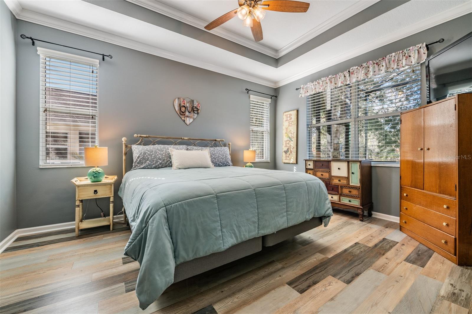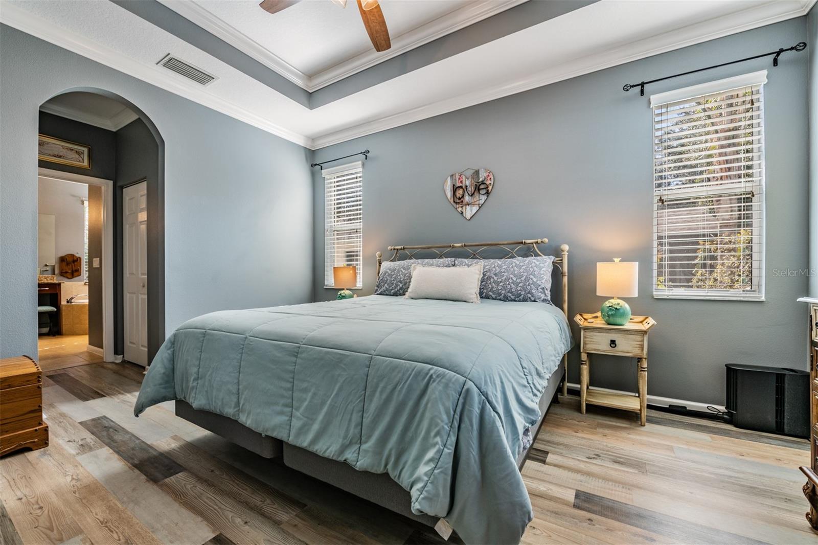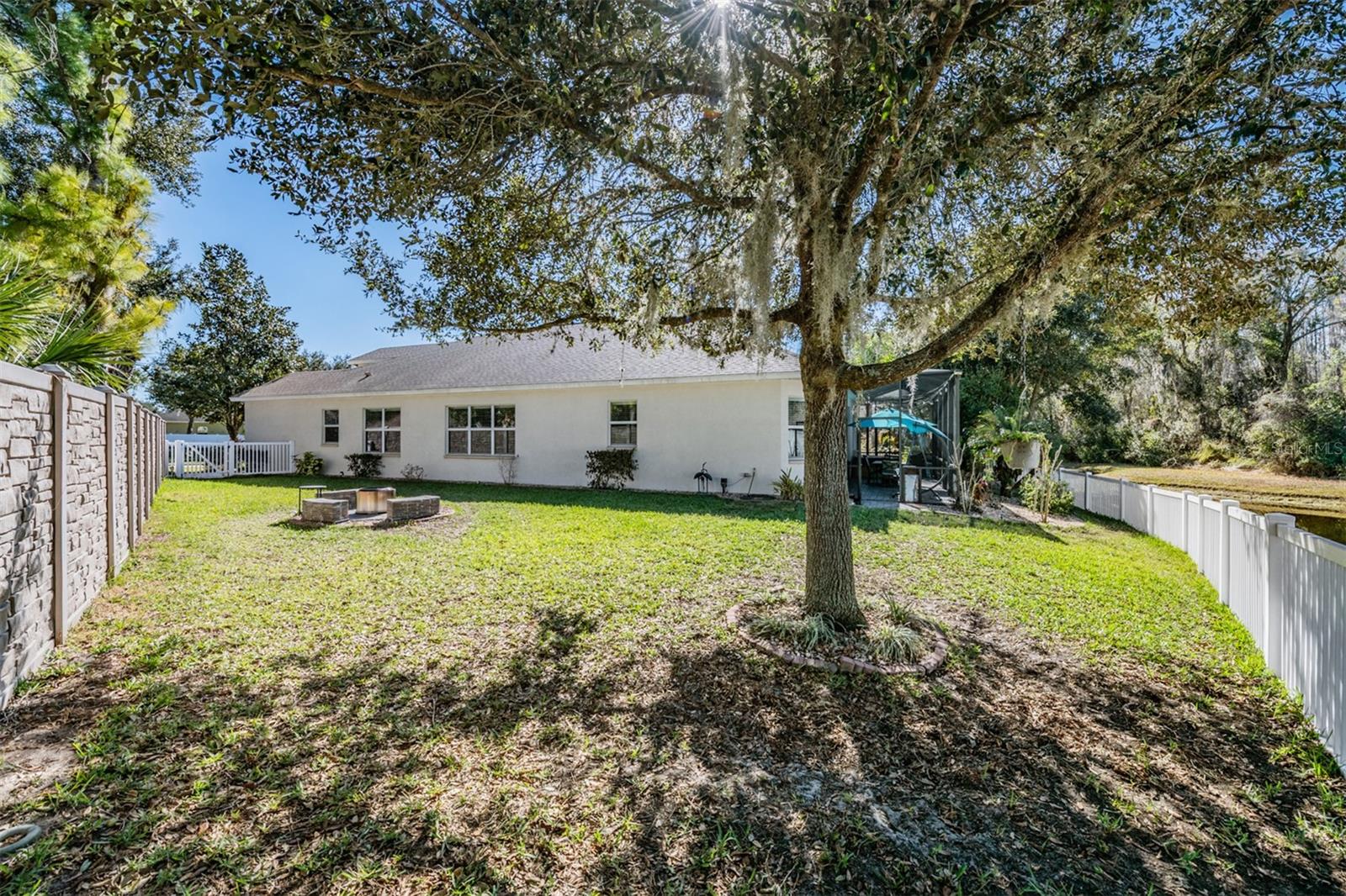 Prepare to fall in love with this beautifully maintained 3-bedroom + DEN, 2.5-bath, 3-car garage home offering a spacious, light-filled layout designed for both everyday living and effortless entertaining. Step inside through the custom etched-glass front door and immediately appreciate the attention to detail, including architectural arches, tray ceilings, crown molding, plantation shutters, and elegant tile flooring throughout the open foyer. The formal dining room easily accommodates large gatherings, while the adjacent living room provides an inviting space for entertaining and family get-togethers. The well-appointed kitchen is both functional and stylish, featuring newer stainless-steel appliances including a GAS RANGE, granite countertops, a closet pantry, 42” wood cabinetry, a large breakfast bar, and a cozy breakfast nook with tranquil water views. The adjacent family room flows seamlessly to the extended lanai, creating the perfect indoor-outdoor living experience overlooking a peaceful pond. The fully fenced backyard is a private retreat where you can enjoy calming water views, nature sounds, and stunning sunsets while relaxing in the hot tub or unwinding around the cozy custom built-in fire pit. The popular 3-way split bedroom floor plan offers privacy and comfort, with tile in the main living areas and LVP flooring in all bedrooms. The spacious owner’s suite is privately tucked away at the rear of the home and features a walk-in closets, dual sinks, wood cabinetry, granite countertops, a deep soaking tub, and a separate shower, your personal sanctuary. Two additional bedrooms offer generous closet space and ceiling fans and share an updated guest bathroom with a custom and roomy tiled shower, while the den (being used as a guest room) with double doors and large windows is ideal as a home office, fourth bedroom, or playroom. A convenient laundry room comes complete with a washer and dryer. RECENT UPDATES INCLUDE: Frameless glass shower enclosures (2022) • Exterior paint (2023) • Primary shower updates with stone sills and tile overlay (2022) • Slider and lanai doggie doors • LVP flooring in bedrooms (2021) • Hot tub (2022) • PVC fence (2022) • Lanai pavers (2023) • Gas water heater (2022) • Additional lanai electrical outlets (2023) • Garage overhead wood shelving • Rock landscaping beds • Accent wall in living area • Washer, dryer & gas range (2024) • Ceiling fans (2024) • Refrigerator (2025) • and more! Located in guard-gated Lakeshore Ranch, residents enjoy a 12,000-square-foot Florida ranch-style clubhouse with three resort-style pools, fitness center, catering kitchen, business center, full calendar of events, dog park, playground, fishing dock, tennis/pickle ball courts, and more! HOA FEES INCLUDE basic cable, internet, and trash. This meticulously cared-for home truly has it all, schedule your private showing today and experience Florida living at its finest.