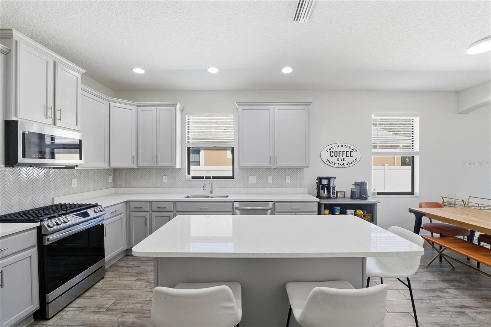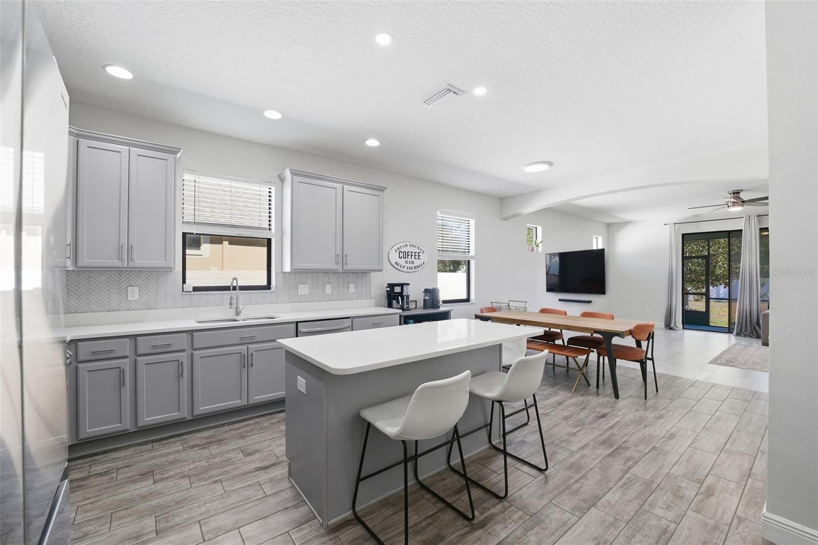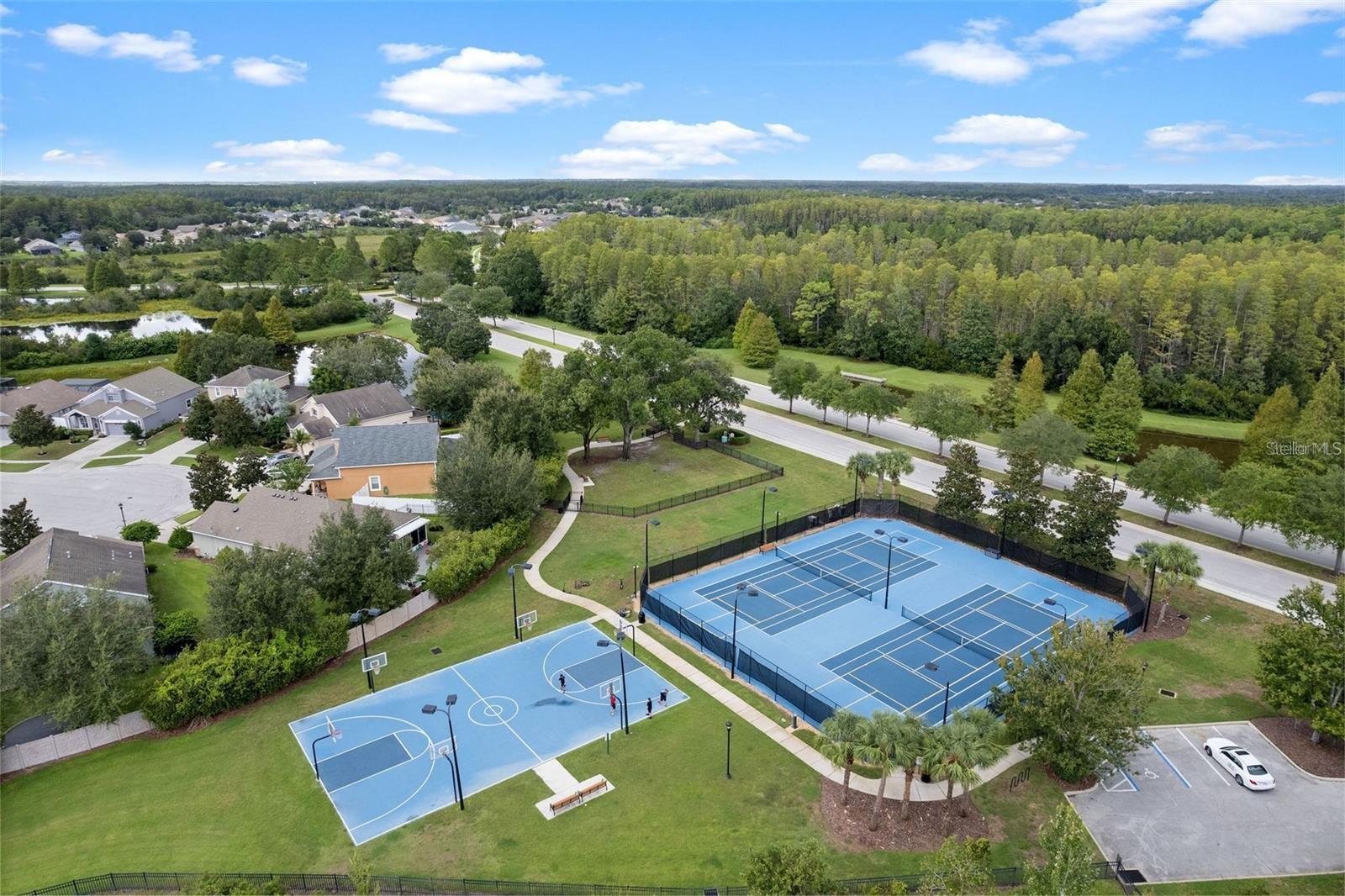 Discover exceptional Florida living in this beautifully maintained 3-bedroom, 2-bath single-family home with a versatile bonus room and a spacious family room located in the highly sought-after gated Lakeshore Ranch community in Land O’ Lakes. Built in 2018, this 2,100 sq ft residence offers a functional, open layout and is situated in a natural gas community and non-flood zone. Step inside to enjoy vaulted ceilings, 9-foot doors, upgraded appliances, and elegant 42” kitchen cabinetry with crown molding. The home features porcelain wood-plank tile flooring throughout the main living areas while previously carpeted spaces have been upgraded to 24” porcelain tile, creating a cohesive, modern look .The flexible floor plan includes a private bonus room/study with glass French doors, perfect for a home office, media room, or creative space. The home sits on a generous 0.26-acre fenced lot, offering ample room for outdoor living, pets, entertaining, or a future pool. Enjoy tranquil views from the screened-in lanai overlooking a wooded conservation area, creating a peaceful and private retreat. Additional upgrades include an updated Samsung washer and dryer with storage stands, a pull-down attic ladder with added overhead storage, an EV charging outlet, and a 50-amp outdoor generator outlet. Residents of Lakeshore Ranch enjoy resort-style amenities within a 24-hour manned, gated community, including a grand clubhouse with event space, conference rooms, and work areas; a state-of-the-art fitness center; a family pool, kid’s pool, and heated 5-lane lap pool; tennis, pickleball, and basketball courts; a dog park; playground; and a scenic lake with an expansive deck and outdoor amphitheater. Conveniently located near parks, top-rated schools, shopping, and dining, this move-in-ready home offers the perfect blend of comfort, quality upgrades, and community living—an exceptional opportunity to enjoy the best of Florida living.