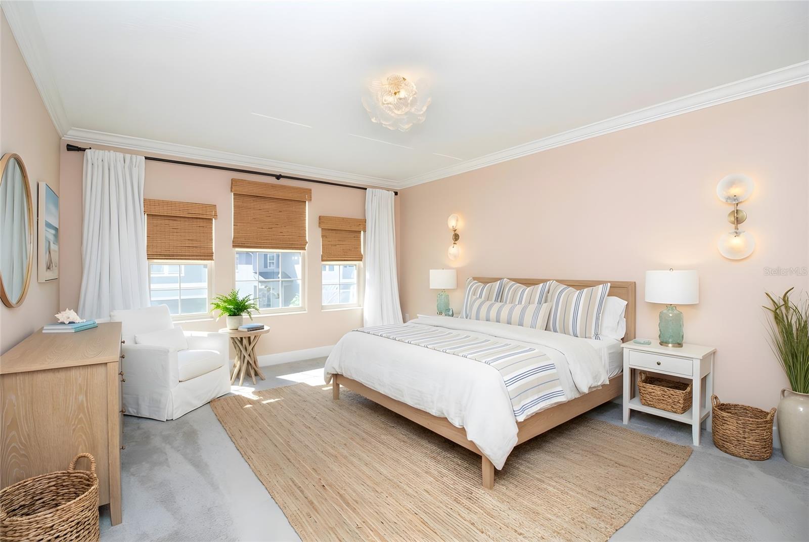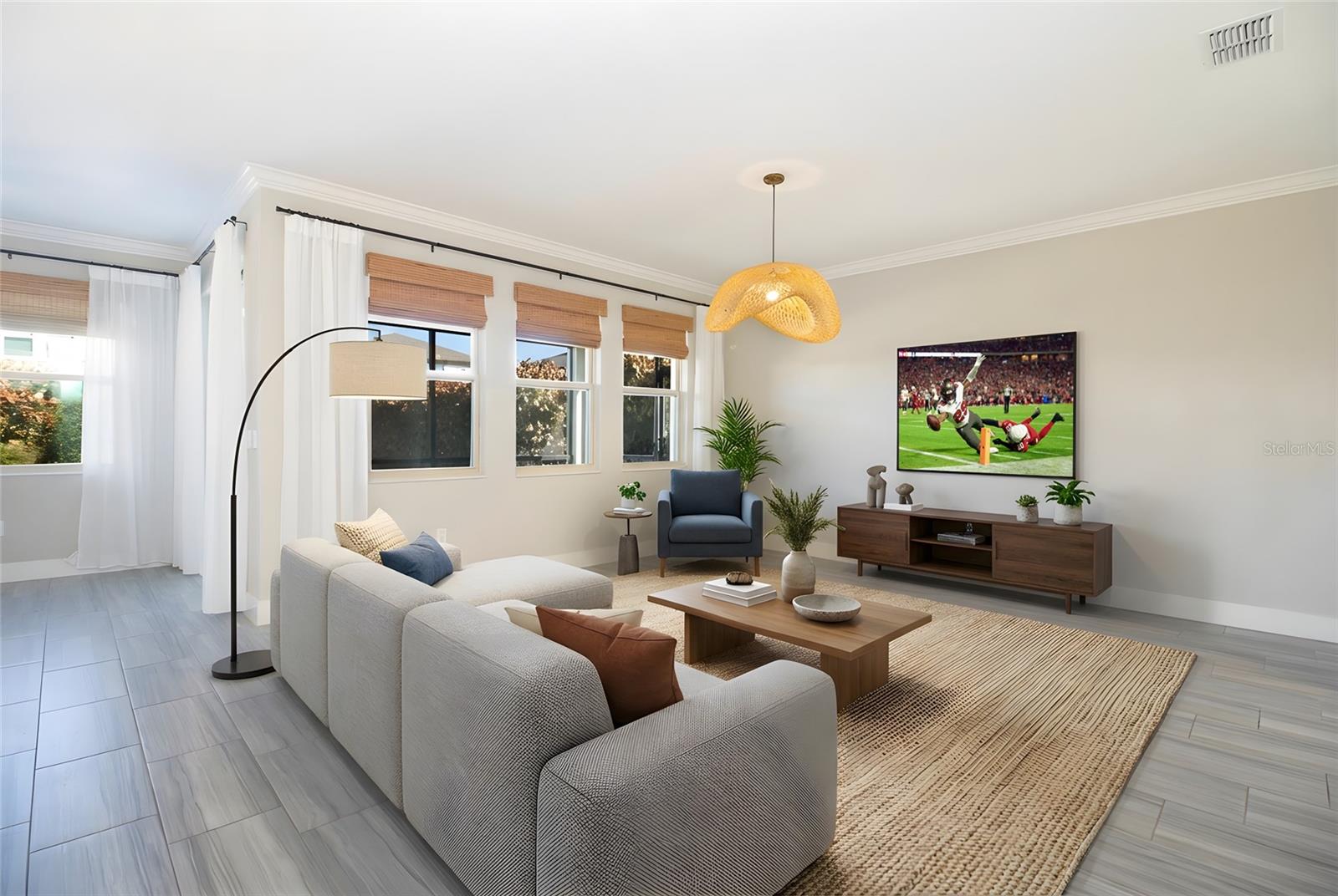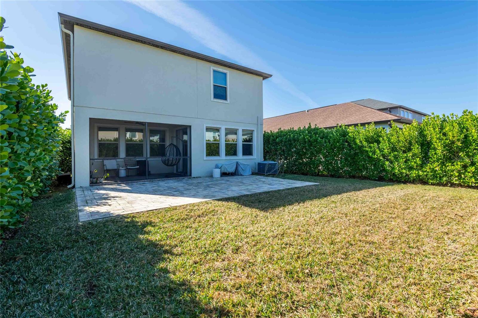 Welcome to this impeccably maintained 2021-built home located in the highly sought-after Bexley community of Land O’ Lakes. Offering 4 bedrooms, a spacious loft, and 2.5 baths, this residence features a thoughtfully designed layout ideal for modern living. The first floor showcases elegant wood-look tile, creating a seamless flow through the open living, dining, and kitchen areas—perfect for both everyday comfort and entertaining. The kitchen is a true showpiece, highlighted by a large center island, striking Calcutta marble backsplash, and abundant cabinetry. Designer lighting elevates the space, including an Arhaus rattan chandelier in the living area and premium Cync smart lighting throughout the home, easily controlled via the Cync app. Additional luxury touches include imported French wallpaper by Ananbo and motion-sensor lighting in select rooms for added convenience. Upstairs, all bedrooms are privately situated alongside a versatile loft and a convenient second-floor laundry room. The primary suite offers a spa-like retreat with Moen bath fixtures, rainfall shower head, a West Elm designer light fixture, and a custom-designed walk-in closet by The Container Store. Lulu and Georgia alabaster sconces add warmth and sophistication to the bedroom, while cordless blackout shades provide comfort and privacy throughout the home. This home is enhanced by major system upgrades, including a whole-house salt-free water filtration and softening system with reverse osmosis by One Green Filter, as well as a top-of-the-line UV air purification system—Bayonet’s X Patriot—for improved indoor air quality. Step outside to enjoy a screened lanai and paver patio overlooking a fully fenced backyard, beautifully landscaped with pink hibiscus and clusia privacy hedges, creating a serene and private outdoor setting. Residents of Bexley enjoy resort-style amenities including pools, fitness centers, parks, scenic trails, and access to top-rated schools, all with convenient proximity to major roadways, shopping, and dining. This move-in-ready home perfectly blends upscale finishes, thoughtful upgrades, and an exceptional community lifestyle. More than one pic. has been virtually staged.