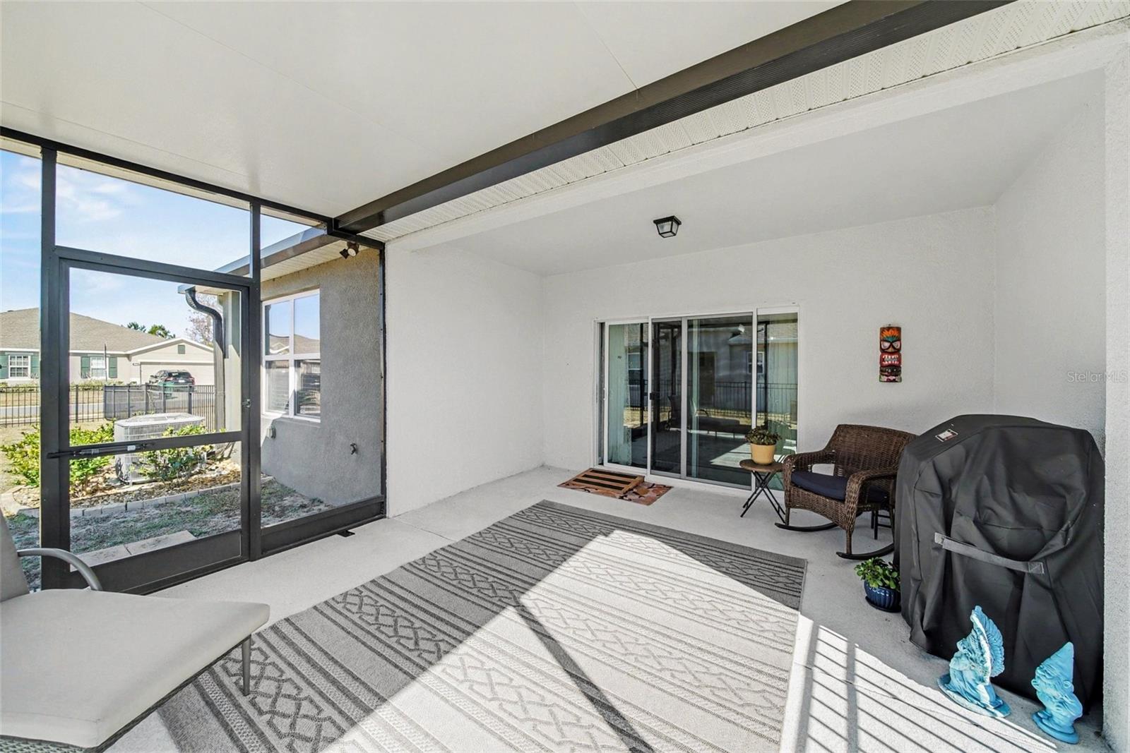 Discover this beautifully maintained single-story 3-bedroom, 2-bath villa, ideally situated on the largest lot in the community. The open floor plan features modern tile flooring, a spacious family room, and an upgraded kitchen with ample counter space and cabinets. The primary suite includes an en suite bathroom with double sinks and a walk-in shower. Enjoy Florida living from the screened, covered back porch ($16K upgrade) overlooking a fully fenced backyard. Cypress Preserve offers low HOA fees and access to community amenities, including a resort-style pool, playground, dog park, and walking trails. Lawn care, roof replacement, reserves, and exterior painting are included in the HOA. Located in a top-rated school district with convenient access to 41, SR 52, the Suncoast Expressway, Tampa International Airport, shopping, dining, and entertainment. Move-in ready.