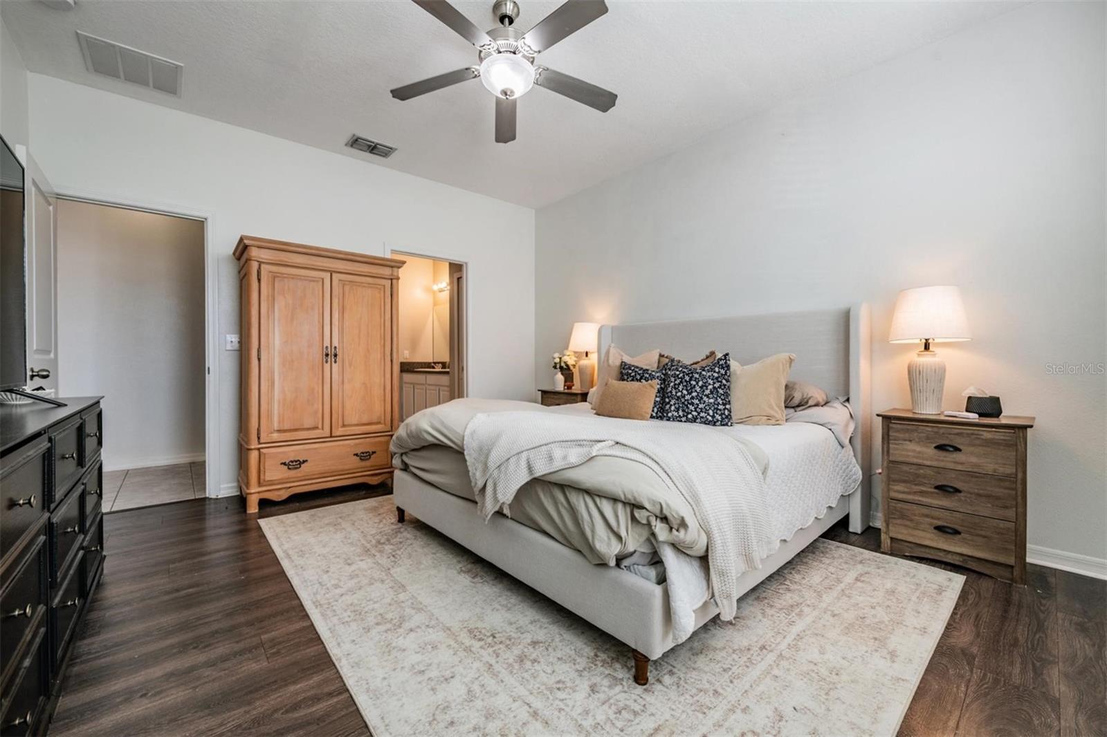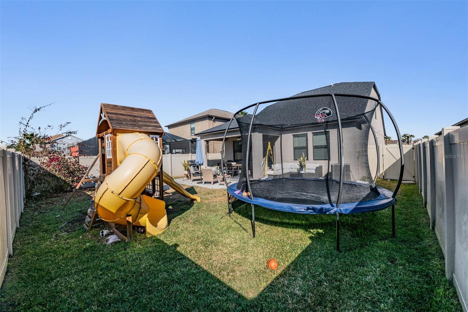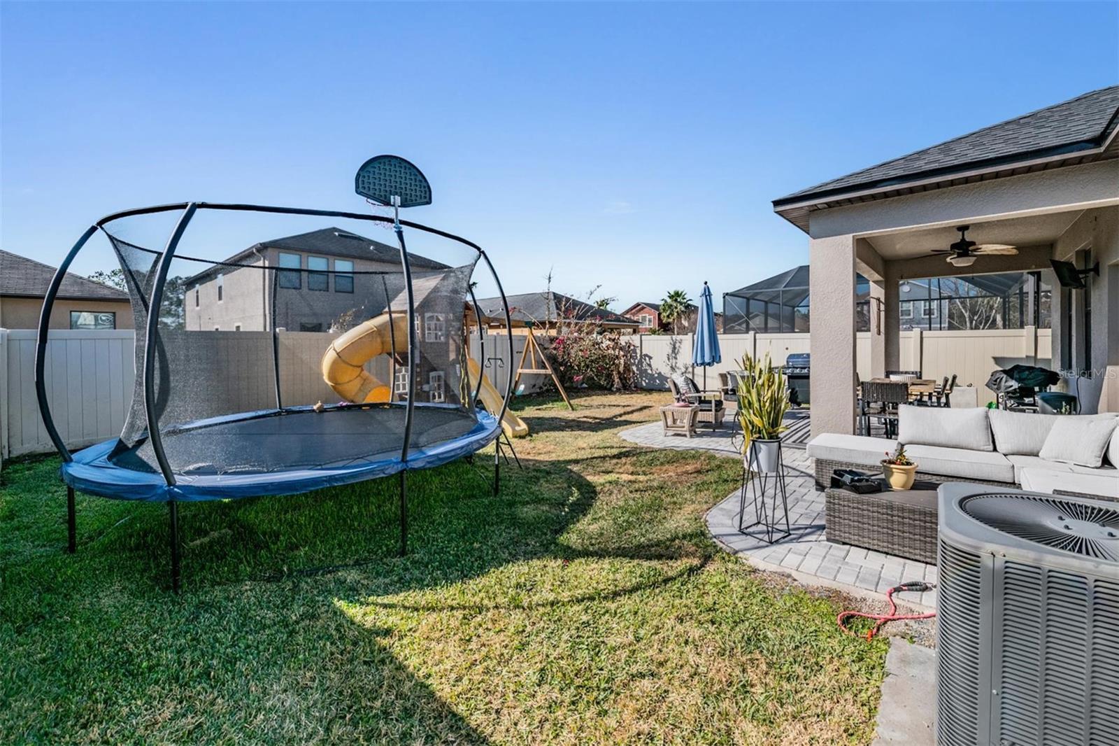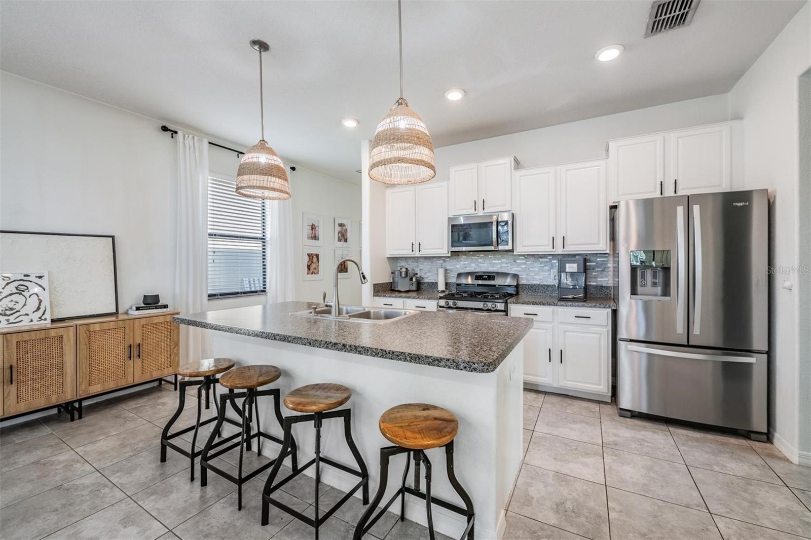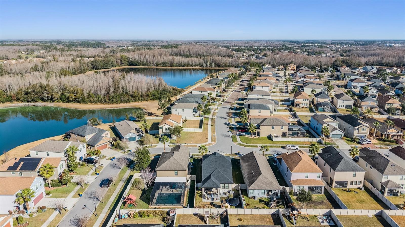 Welcome home to this light, bright, and spacious 3 bedroom, 2.5 bath home complete with a loft and a 2 car garage. Once you enter you are greeted by the generous foyer which will lead you to the open concept kitchen & living area. The kitchen features an oversized island, solid wood cabinetry, spacious pantry, and a complete stainless steel appliance package, including a natural gas range. There's a convenient and elegant half bath downstairs for guests. The kitchen is open to the casual dining area and cozy living room. The custom built in features plenty of storage and is highlighted with an electric fireplace. The primary bedroom is located on the lower level with an ensuite bath, spacious shower, dual sinks, a separate water closet, and a large walk-in closet. Upstairs there's a loft that could be used as an office, play area, or just a nice place to relax. There are two oversized bedrooms each with walk-in closets with a generously sized linen closet between them. The upstairs bathroom is shared between the bedrooms and has a shower/tub combo. In the backyard you will find an upgraded oversized paver patio to entertain and enjoy the outdoors. The yard is fully fenced which works great with children or pets alike. Conveniently located off the garage entry, you will find the laundry room with washer and dryer included. Additional upgrades include a NEW ROOF in 2026 & a tankless GAS water heater. The Community of Connerton is a master-planned community with a balance of Nature preserve and community lifestyle. The nature preserve features bike trails, lakes, and wetlands while the lifestyle community features a splash park, a resort-style pool, fitness center, Connertown Cafe, Kidz Zone, beach volleyball, basketball, pickleball, and a lifestyle coordinator that fills the monthly calendar with fun for all ages. Plus this is a golf cart friendly community! With low HOA and CDD fees this home is ready for you to call it home.