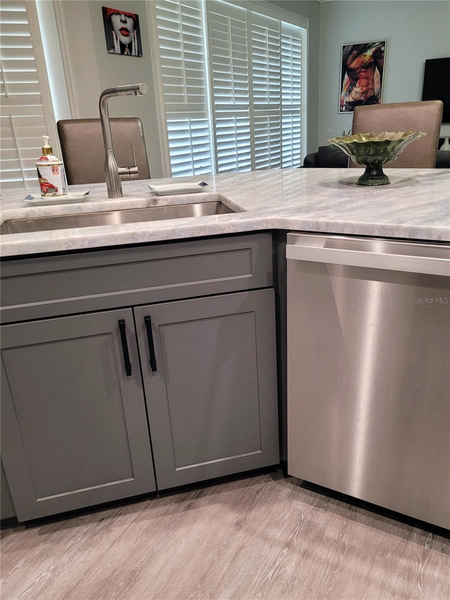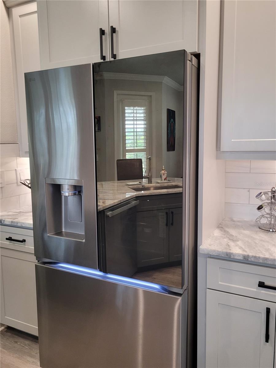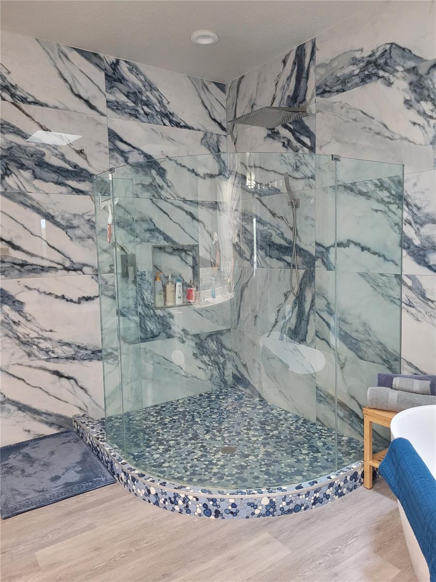 Truly turn-key ready. Experience resort-style, waterfront living in this beautifully updated two-story villa located in the exclusive Caliente Resort and Spa. Caliente Resort and Spa is a gated, clothing-optional resort community in Land O’ Lakes. Completely remodeled with striking designer finishes, this home offers a unique blend of luxury, style, and tranquil lakefront views. Step through the front door and you’re welcomed by dramatic design elements including custom marble tile accent walls and a modern industrial-style staircase highlighted with cascading motion-sensing LED lighting. The main level features a bright, open-concept layout that seamlessly connects the living room, dining area, and kitchen—perfect for both everyday living and entertaining. A custom-built bar anchors the living space, complete with marble accents, built-in storage, wine cabinetry, and a wine refrigerator, creating an ideal setting for hosting guests. The kitchen showcases sleek modern design with custom deep drawers, soft-close cabinetry, and premium appliances, including a Miele dishwasher and Samsung smart refrigerator and convection oven. Throughout the home, fresh Sherwin Williams paint, waterproof luxury vinyl plank flooring, and modern LED lighting add a clean, contemporary feel. Upstairs, the bedrooms and bathrooms have been fully transformed with marble walls, custom cabinetry, and upscale fixtures. The primary suite offers a spa-inspired retreat featuring an oversized rain shower and a freestanding soaking tub positioned beneath a skylight. Outdoor living is equally impressive. Take in peaceful lake views from the large screened lanai just off the living area, perfect for relaxing or entertaining while enjoying the water and fountain views. A private screened balcony off the primary bedroom provides another quiet space to unwind and enjoy the serene waterfront setting. Residents of Caliente Resort and Spa enjoy access to resort-style amenities including pools, tennis courts, a fitness center, spa services, restaurants, bars, live entertainment, and an active social calendar. Conveniently located near Tampa International Airport, shopping, golf courses, and Gulf Coast beaches, this exceptional villa offers a rare opportunity to enjoy luxury living in a vibrant resort setting. Furnishings may be available for purchase, making this a potential turnkey opportunity.