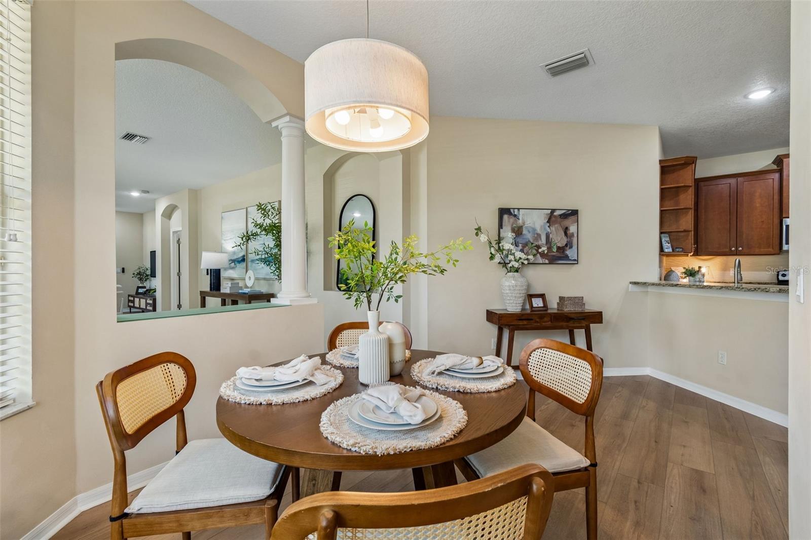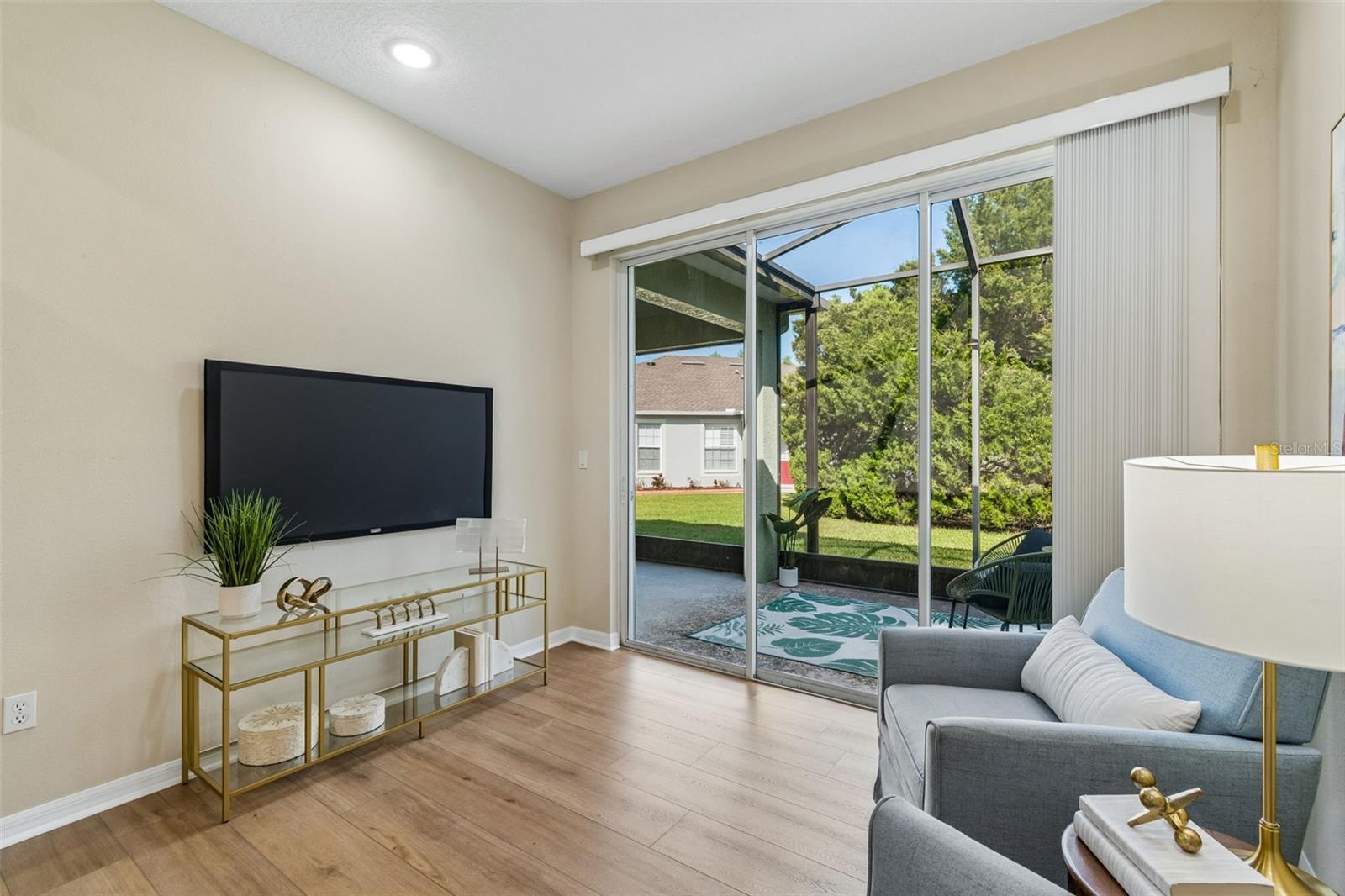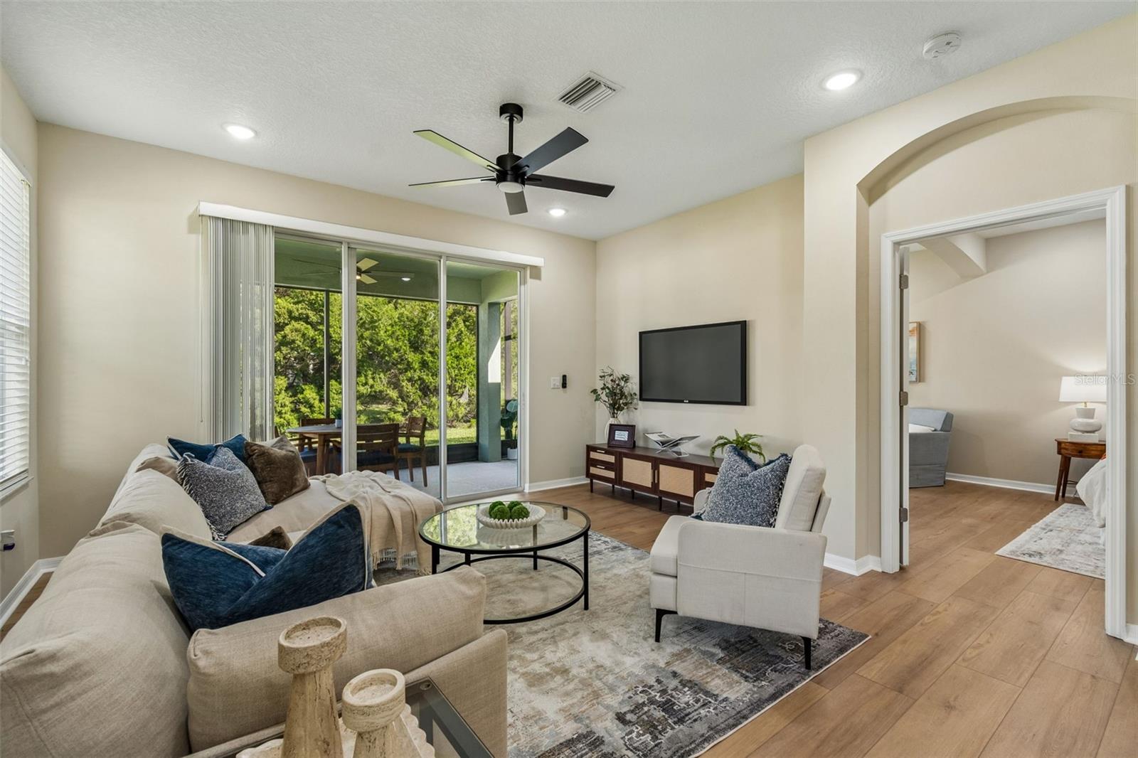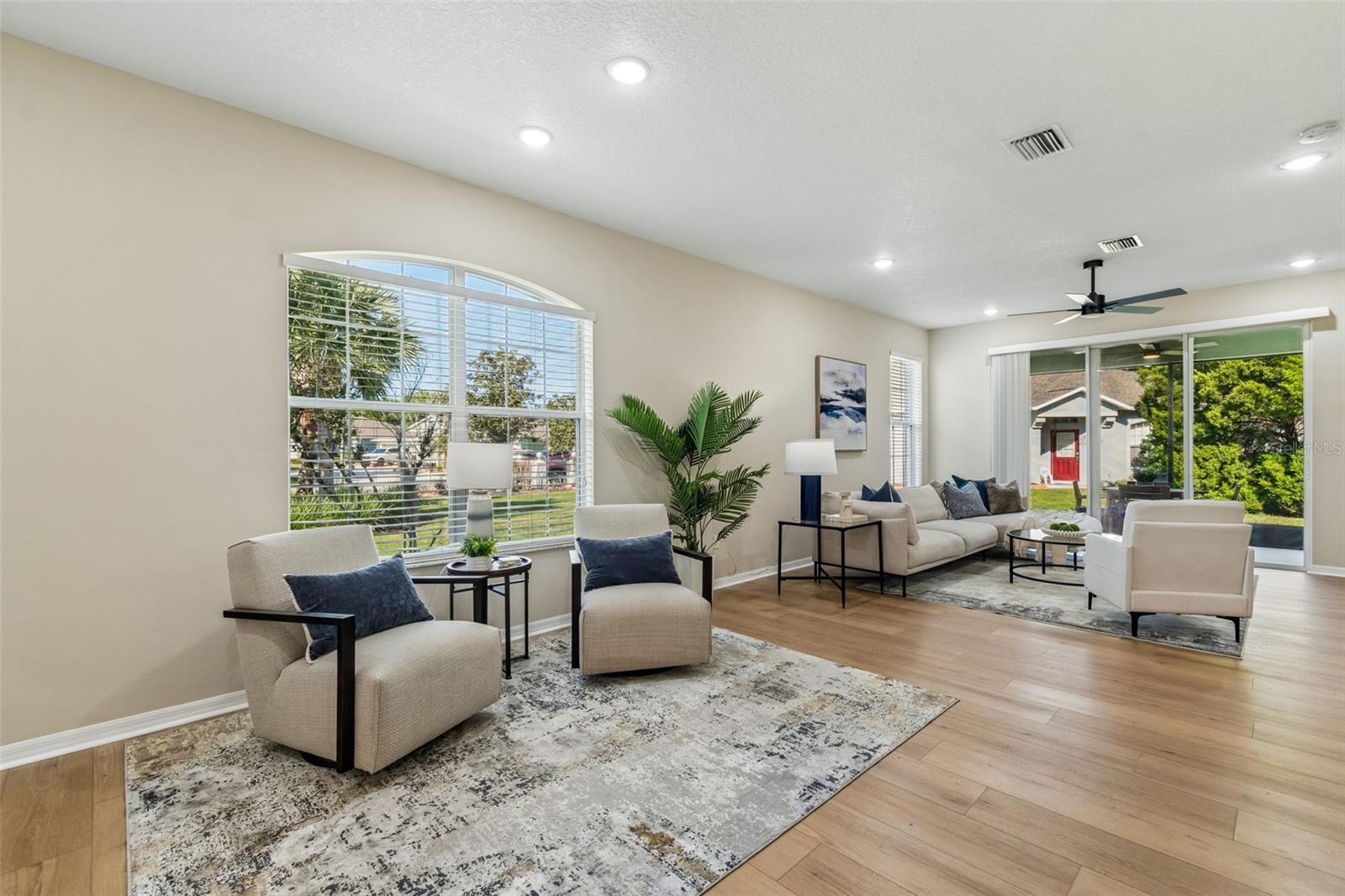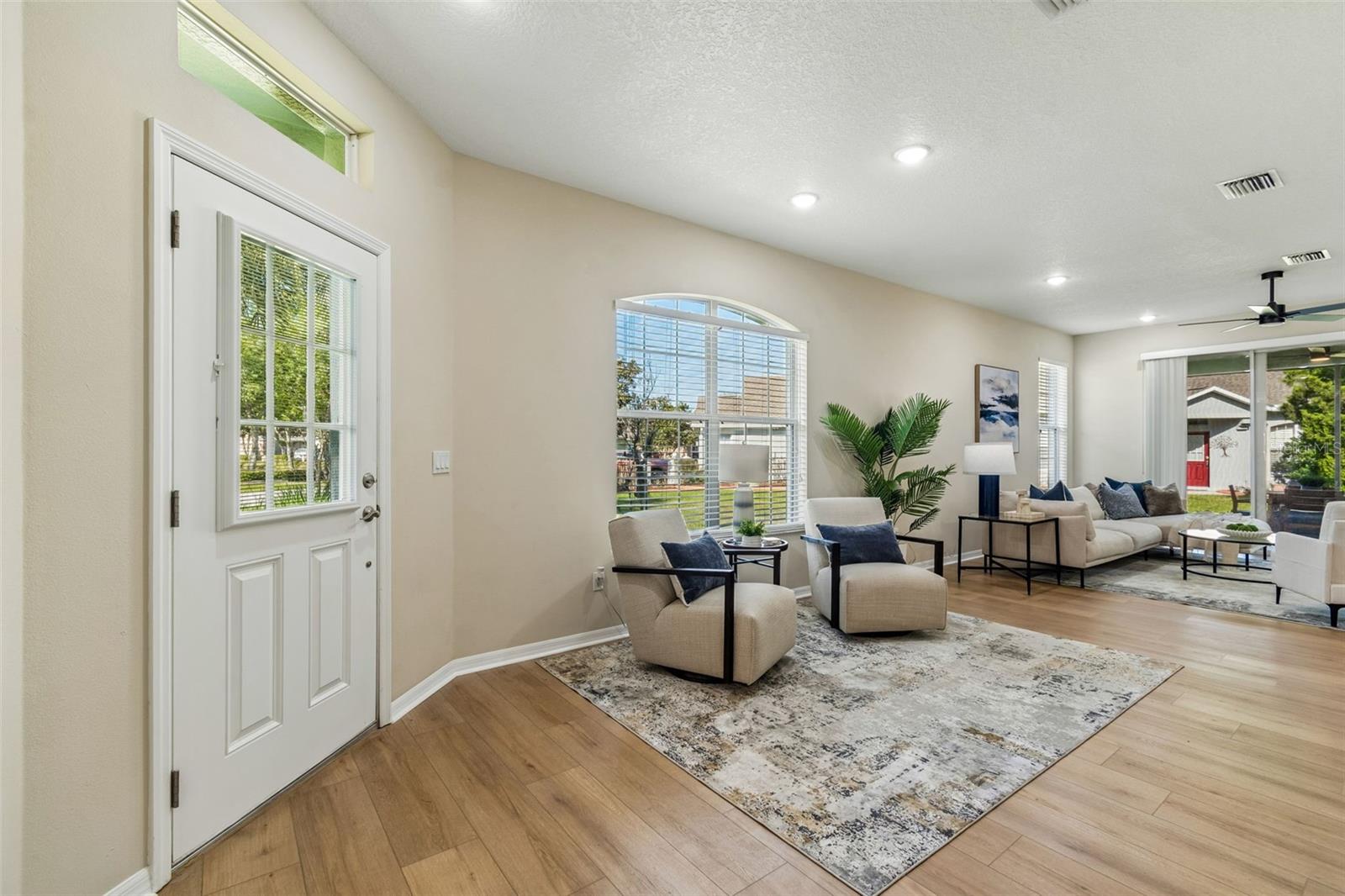 Welcome to this beautifully updated, move-in ready villa located in the highly desirable community of Wilderness Lake Preserve, nestled within a GATED village known for its natural beauty and peaceful surroundings. Located on a premium corner lot, this home offers the perfect combination of privacy, functionality, and low-maintenance living in one of the area’s most SCENIC NEIGHBORHOODS. This thoughtfully designed home features 2 BEDROOMS PLUS A DEDICATED OFFICE or FLEX SPACE, 2 FULL BATHROOMS, and a 2-CAR GARAGE, all within a bright and open CONCEPT FLOOR PLAN that feels both spacious and welcoming. From the moment you step inside, NATURAL LIGHT floods this home and showcases the PRISTINE CONDITION, reflecting true pride of ownership. The interior has been FULLY UPDATED, including BRAND NEW LUXURY VINYL PLANK FLOORING (2026 – $18,000) throughout, creating a seamless and modern look. The PRIMARY BATHROOM has been RENOVATED (2026 - $6,000) with updated finishes including upgraded lighting, CUSTOM MIRRORS, designer tile, and a LUXURY WALK-IN SHOWER featuring HEXAGON TILE FLOORING. The PRIMARY SUITE is oversized and is a true retreat, offering enough space for a sitting area or reading lounge. The OPEN KITCHEN is both functional and inviting, featuring a separate dinette area and easy flow into the main living space, making it ideal for everyday living and entertaining. Enjoy Florida living year-round from the COZY SCREENED-IN LANAI, the perfect spot to enjoy your morning coffee or unwind in the evening while taking in the peaceful surroundings. As part of a MAINTENANCE-FREE COMMUNITY, the HOA dues include EXTERIOR PAINT, ROOF REPLACEMENT, AND LAWN MAINTENANCE, allowing for a truly low-stress lifestyle. Wilderness Lake Preserve is known for its resort-style amenities and natural setting, offering walking trails, scenic lakes, playgrounds, and a strong sense of community. The location is highly convenient with easy access to SR 54, US-41, and the Suncoast Parkway, making commuting simple. Just minutes from shopping, dining, grocery stores, medical facilities, you'll appreciate everything Land O’ Lakes and nearby Wesley Chapel have to offer. This is a rare opportunity to own a fully updated, meticulously maintained villa on a premium lot in a gated, maintenance-free community. Homes in this condition and location, are hard to come by. Make this beautiful property your home today.