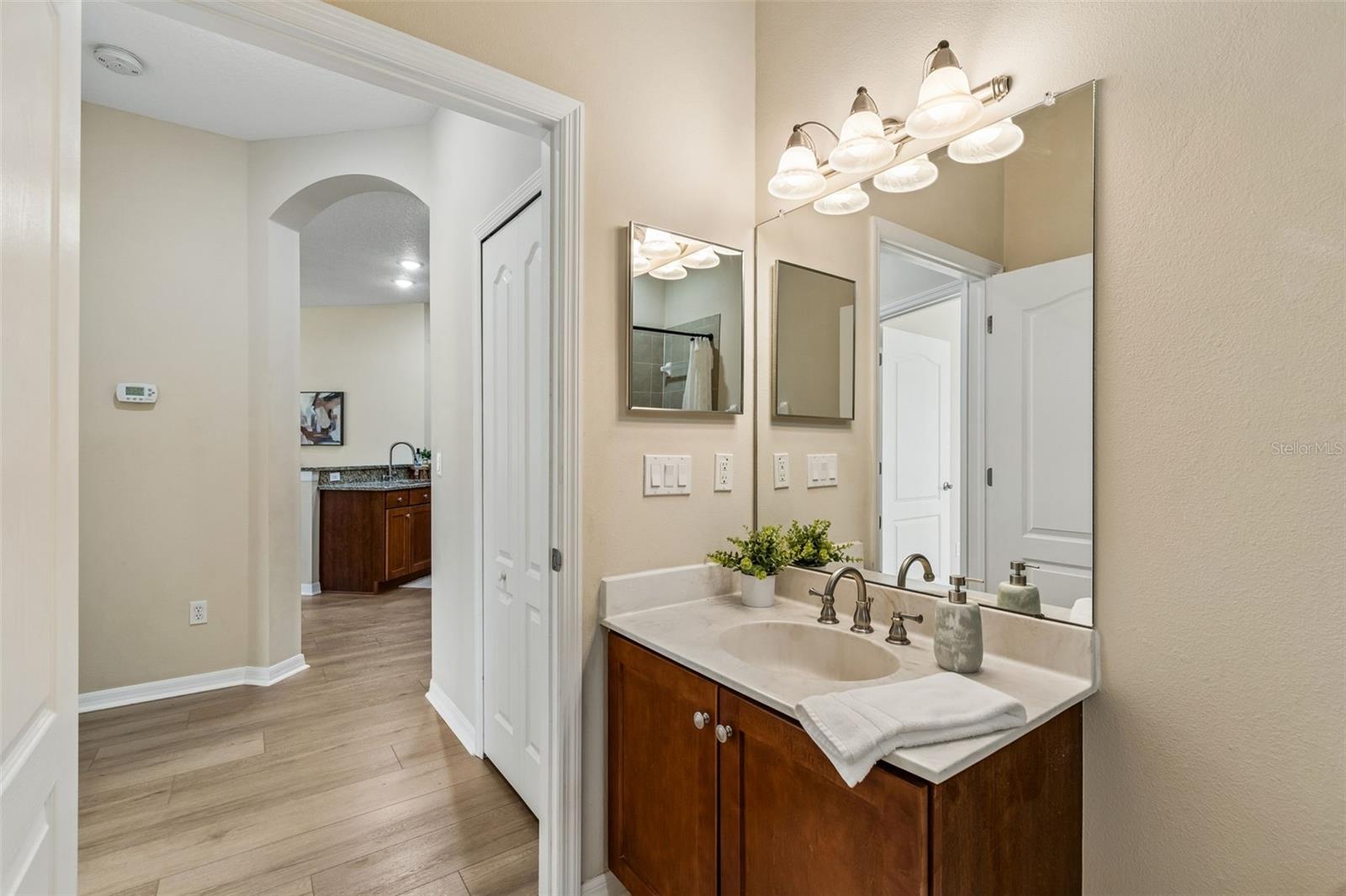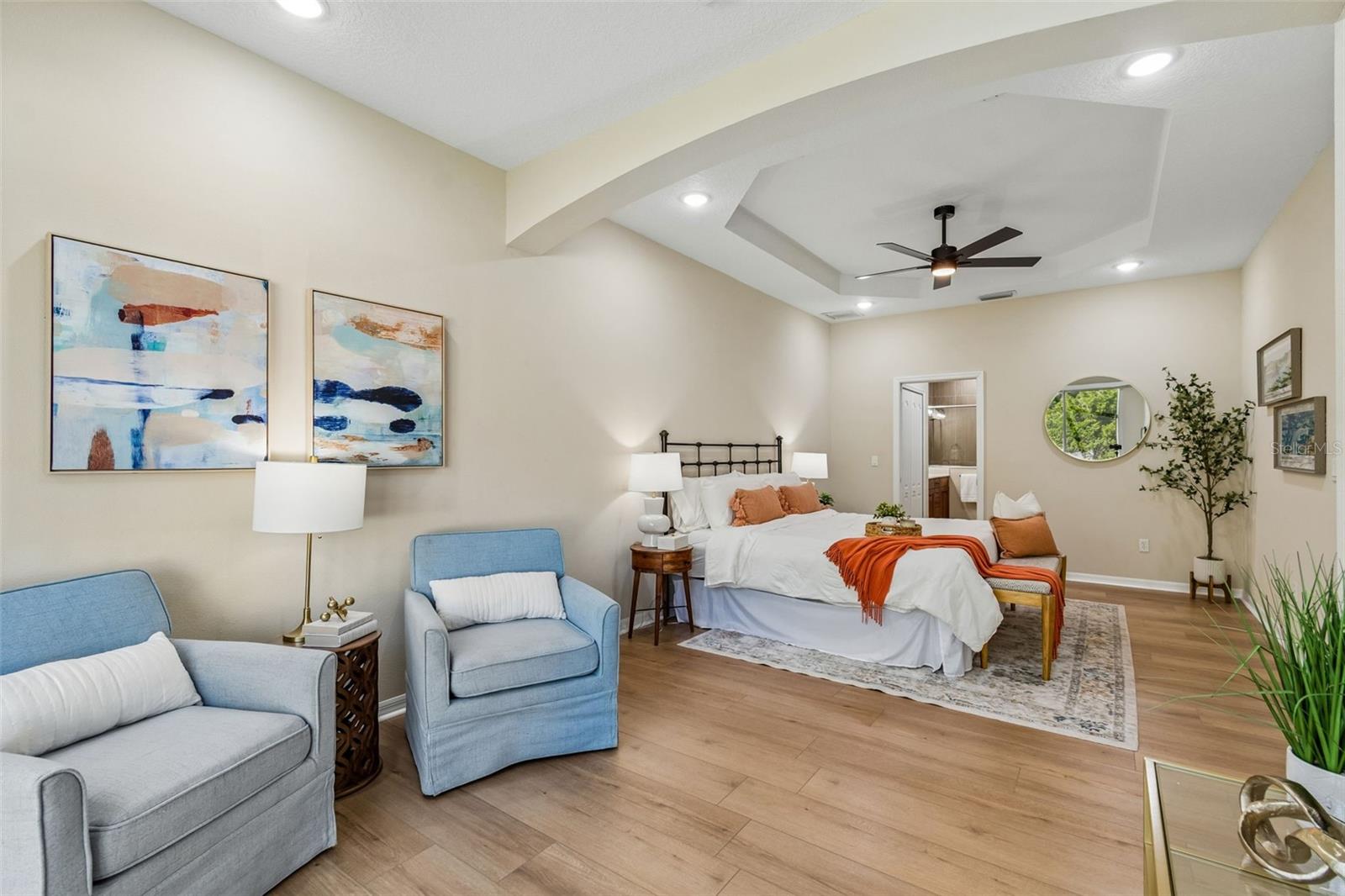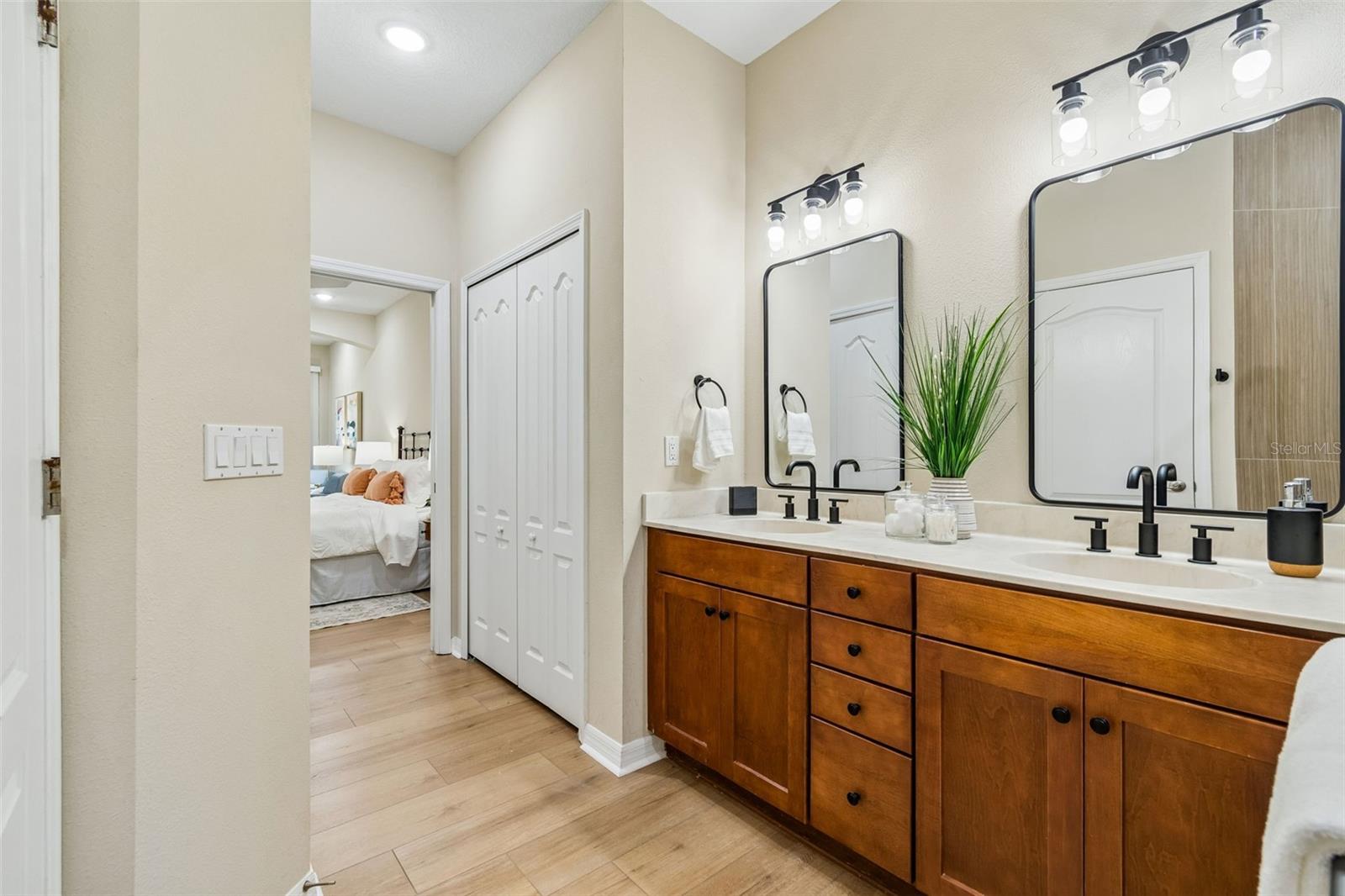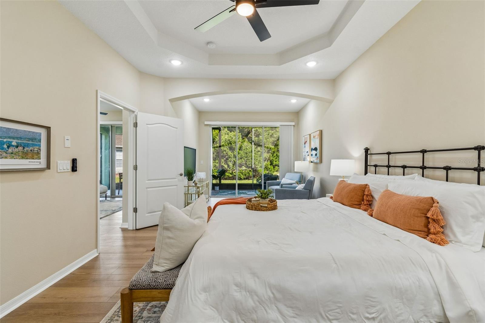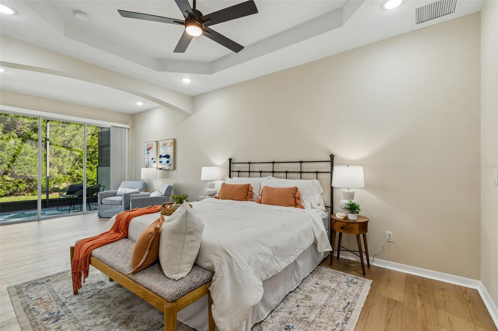 Welcome to this beautifully updated, move-in ready villa located in the highly desirable community of Wilderness Lake Preserve, nestled within a GATED village known for its natural beauty and peaceful surroundings. Located on a premium corner lot, this home offers the perfect combination of privacy, functionality, and low-maintenance living in one of the area’s most SCENIC NEIGHBORHOODS. This thoughtfully designed home features 2 BEDROOMS PLUS A DEDICATED OFFICE or FLEX SPACE, 2 FULL BATHROOMS, and a 2-CAR GARAGE, all within a bright and open CONCEPT FLOOR PLAN that feels both spacious and welcoming. From the moment you step inside, NATURAL LIGHT floods this home and showcases the PRISTINE CONDITION, reflecting true pride of ownership. The interior has been FULLY UPDATED, including BRAND NEW LUXURY VINYL PLANK FLOORING (2026 – $18,000) throughout, creating a seamless and modern look. The PRIMARY BATHROOM has been RENOVATED (2026 - $6,000) with updated finishes including upgraded lighting, CUSTOM MIRRORS, designer tile, and a LUXURY WALK-IN SHOWER featuring HEXAGON TILE FLOORING. The PRIMARY SUITE is oversized and is a true retreat, offering enough space for a sitting area or reading lounge. The OPEN KITCHEN is both functional and inviting, featuring a separate dinette area and easy flow into the main living space, making it ideal for everyday living and entertaining. Enjoy Florida living year-round from the COZY SCREENED-IN LANAI, the perfect spot to enjoy your morning coffee or unwind in the evening while taking in the peaceful surroundings. As part of a MAINTENANCE-FREE COMMUNITY, the HOA dues include EXTERIOR PAINT, ROOF REPLACEMENT, AND LAWN MAINTENANCE, allowing for a truly low-stress lifestyle. Wilderness Lake Preserve is known for its resort-style amenities and natural setting, offering walking trails, scenic lakes, playgrounds, and a strong sense of community. The location is highly convenient with easy access to SR 54, US-41, and the Suncoast Parkway, making commuting simple. Just minutes from shopping, dining, grocery stores, medical facilities, you'll appreciate everything Land O’ Lakes and nearby Wesley Chapel have to offer. This is a rare opportunity to own a fully updated, meticulously maintained villa on a premium lot in a gated, maintenance-free community. Homes in this condition and location, are hard to come by. Make this beautiful property your home today.