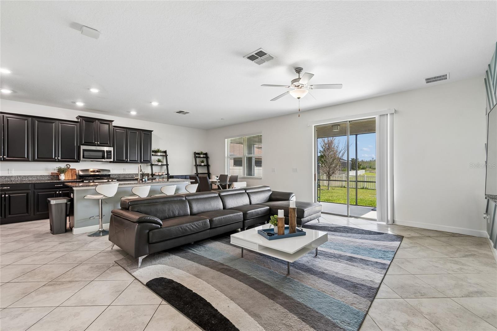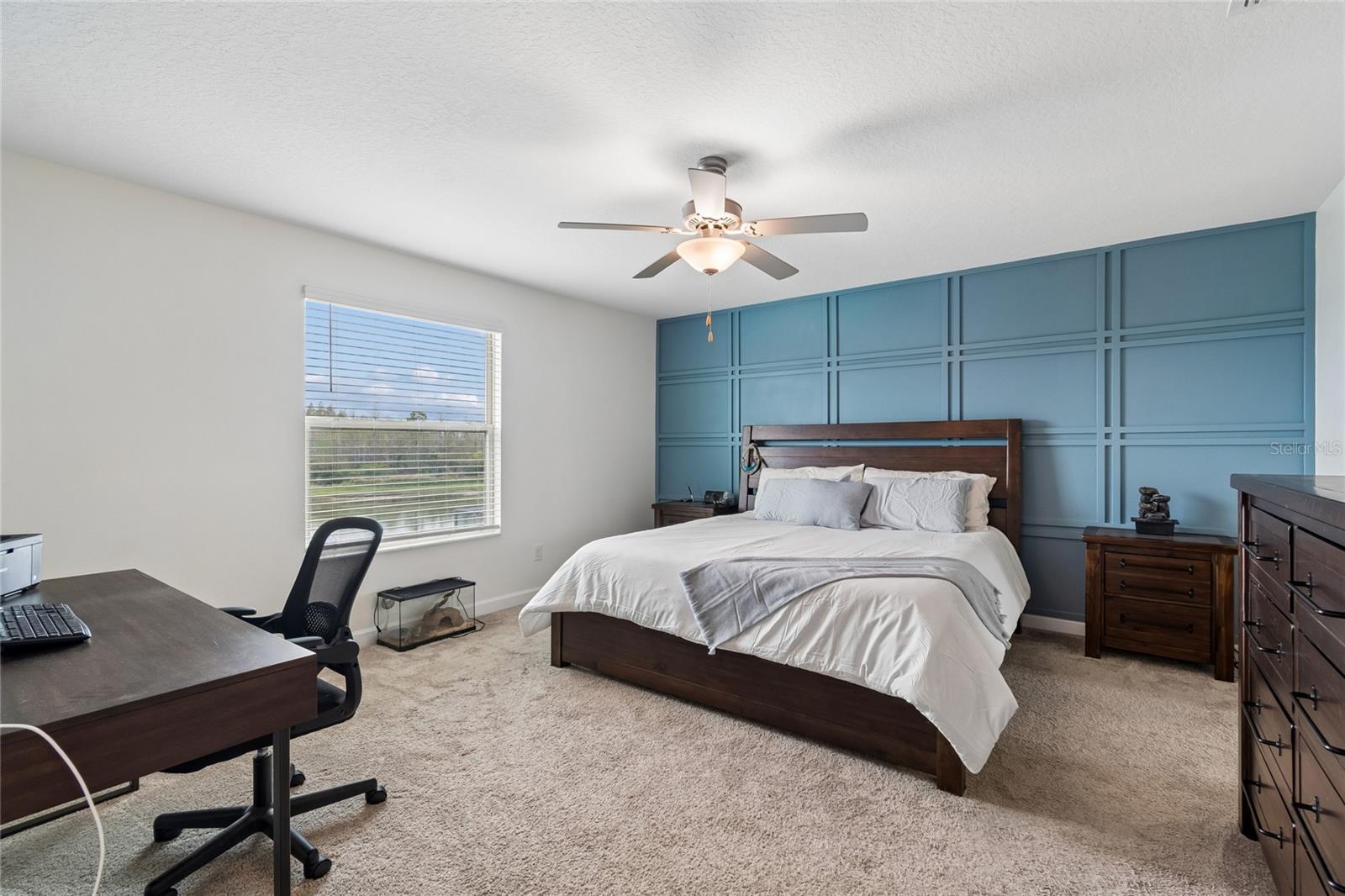 Welcome to 8960 Shadyside Lane, nestled in the highly sought-after community of Connerton. This beautifully refreshed 4-bedroom, 3-bathroom residence offers 2,529 square feet of thoughtfully designed living space and is truly move-in ready. From the moment you arrive, the freshly painted exterior sets the tone, while inside, an expansive foyer welcomes you with fresh interior paint, soaring ceilings, and an inviting sense of openness. A versatile flex space at the front of the home provides the perfect setting for a formal dining room, home office, or additional lounge area. At the heart of the home, the spacious kitchen seamlessly overlooks the grand living area, an ideal layout for both everyday living and entertaining. The kitchen features an abundance of cabinetry, all appliances, an expansive island with granite countertops, and a charming eat-in dining space perfect for gathering with family and friends. The living room is warm and inviting, highlighted by a stylish accent wall and sliding glass doors that lead to a covered, screened lanai, perfect for enjoying peaceful mornings or unwinding while taking in tranquil pond views. The first floor also includes a private bedroom with brand-new carpet and a full bath nearby, offering a comfortable retreat for guests or multigenerational living. A conveniently located laundry room with washer and dryer adds to the home’s thoughtful functionality. Upstairs, the landing showcases a decorative wood-trim accent wall that leads to a generous bonus room, offering endless possibilities as a media room, playroom, or cozy retreat. The owner’s suite is a true sanctuary, complete with a designer accent wall, ceiling fan, and spacious walk-in closet. The spa-inspired ensuite bath features new custom mirrors, a relaxing garden tub, walk-in shower, and a private water closet. The secondary bedrooms are equally impressive. One is enhanced with a feature accent wall, ceiling fan, and an expansive walk-in closet, while the other includes a ceiling fan and a large walk-in closet. They share a well-appointed bathroom with granite countertops and a private shower and water closet, perfect for added convenience and multi-person use. Step outside to your fully fenced backyard, where peaceful water views create a serene backdrop and ample space awaits your personal touch. The home is also equipped with a reclaimed water irrigation system for added efficiency. Living in Connerton means enjoying exceptional resort-style amenities, including scenic parks, trails, clubhouse with a state-of-the-art fitness center, a water park, and multiple swimming pools, delivering the ultimate Florida lifestyle. Even more exciting, a brand-new clubhouse is coming soon, featuring a pump track, six pickleball courts, a lap and splash pool, and a playground. This home perfectly blends comfort, style, and community.