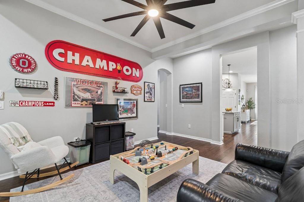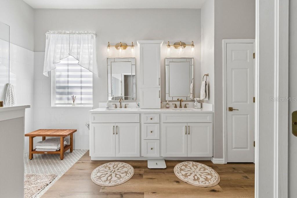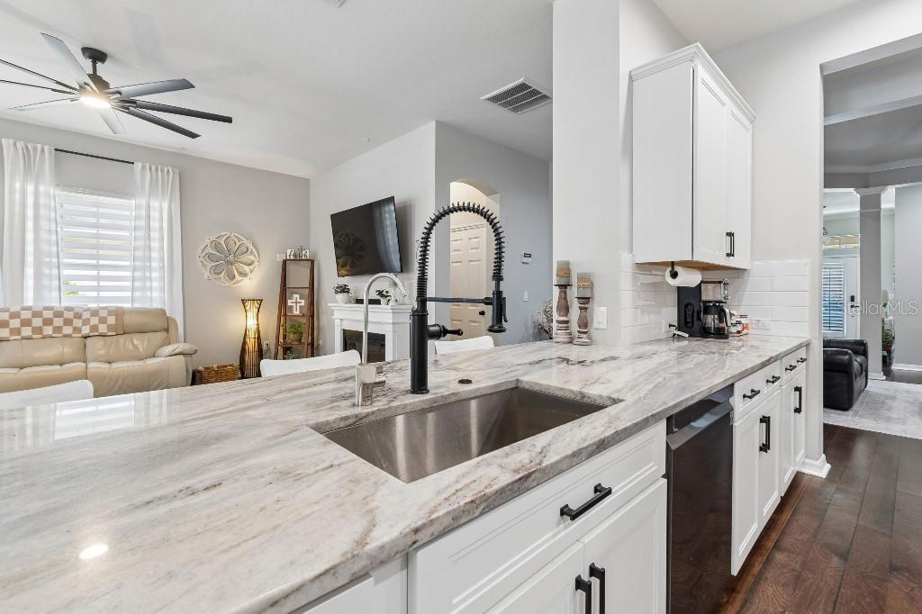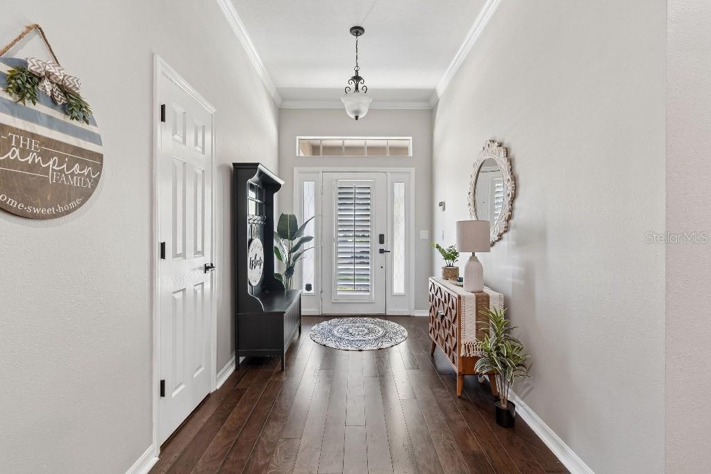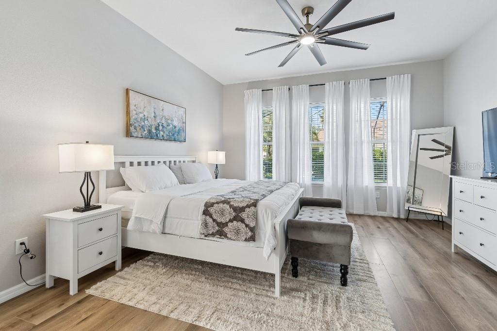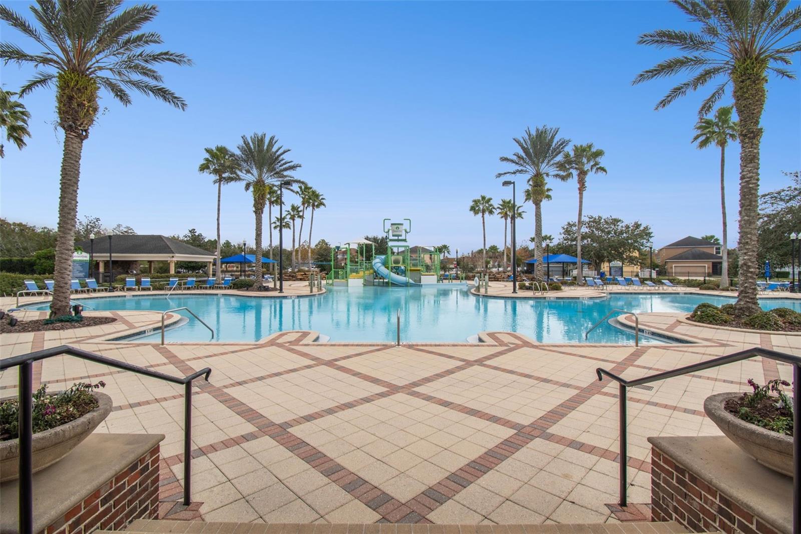 Beautiful home in The Arbors, the prettiest part of this amazing family community of Connerton. Welcome to this beautiful David Weekly built Approximately 2,600SF home, 4 bedroom + flex room, 2.5 baths, additional game-living or formal dining room. Newly updated kitchen, both guest baths and completely remodeled master bath. Amazing state of the art heated salt water pool with fountains and spill over hot tub with gorgeous travertine tile surrounding lanai installed and finished 2023. Enjoy beautiful views of the park like settings from the large covered front porch. Upon entry you are welcomed by gorgeous Hickory Wood floors and soaring high ceilings. New White Shaker cabinets and quartz countertops in both the kitchen and all baths. Over $200,000 in upgrades and remodeling. New roof (2025), New water softener and water heater (2022), master closet built-ins. The beautiful Connerton neighborhood offers resort-style pool, fitness center, clubhouse, tennis, basketball and volleyball, walking trails, golf cart friendly and so much more! Location - Luxury - Lifestyle this home has it all! Don’t miss your chance to enjoy this pristine, move-in-ready dream home in an extremely sought after community. NOT IN A FLOOD ZONE. Bus stop right outside your front door for nearby A rated school's.
