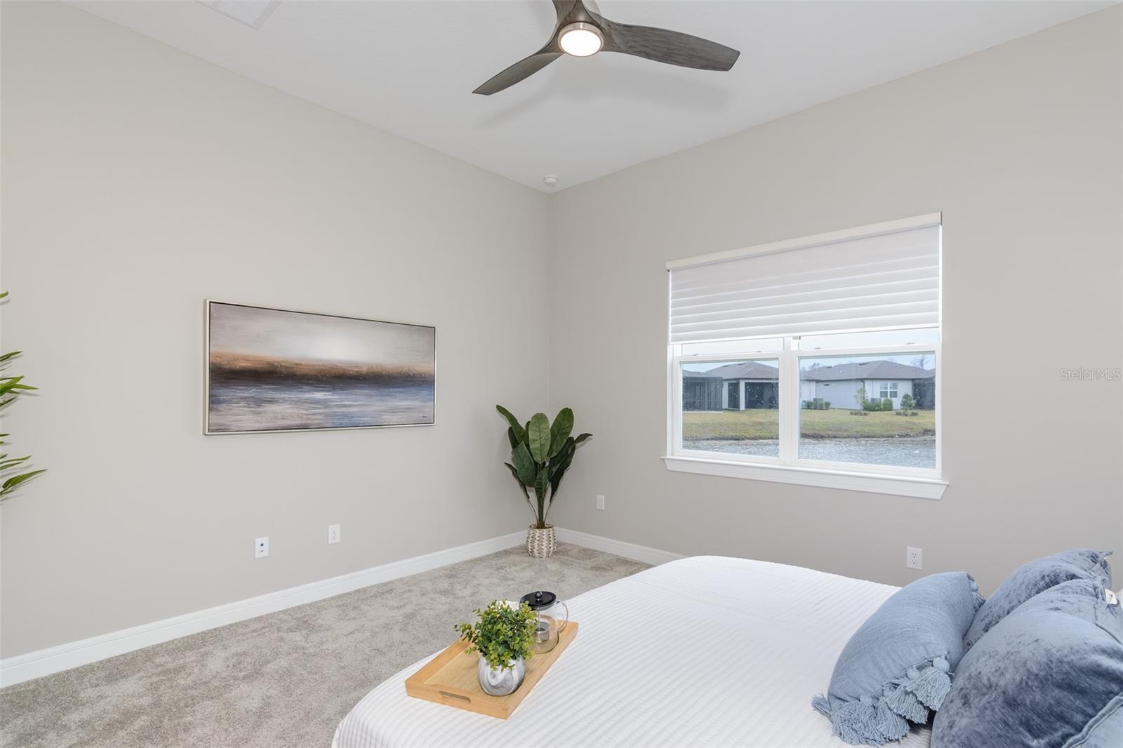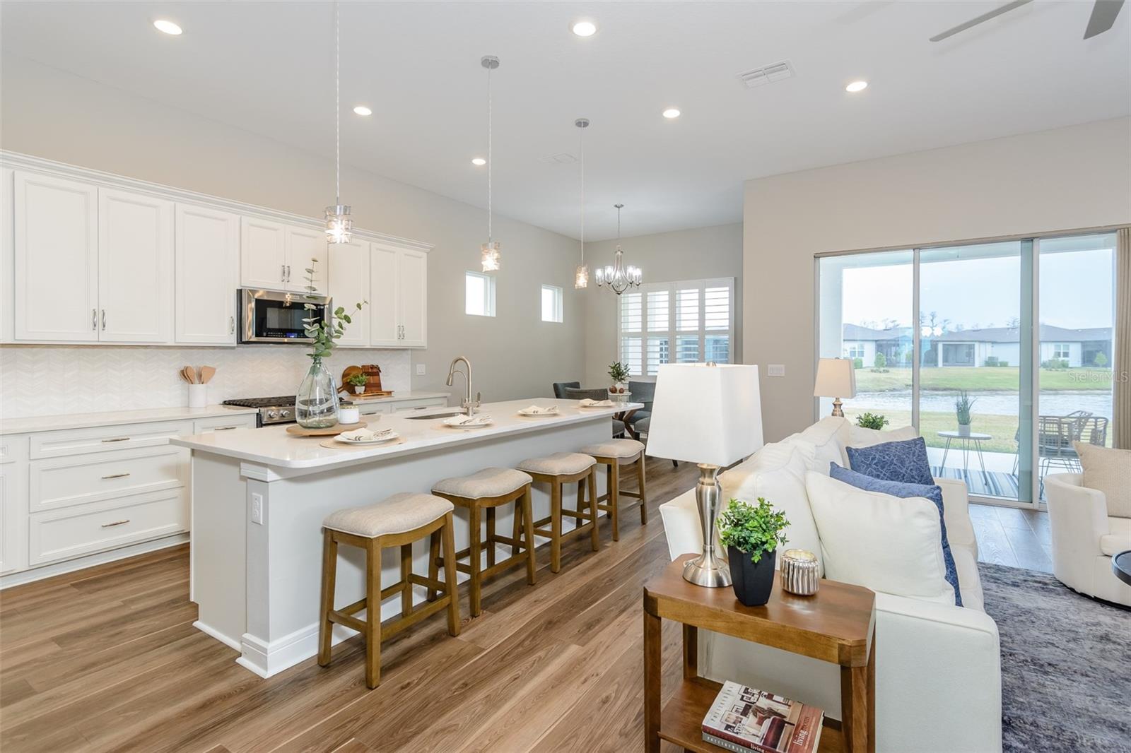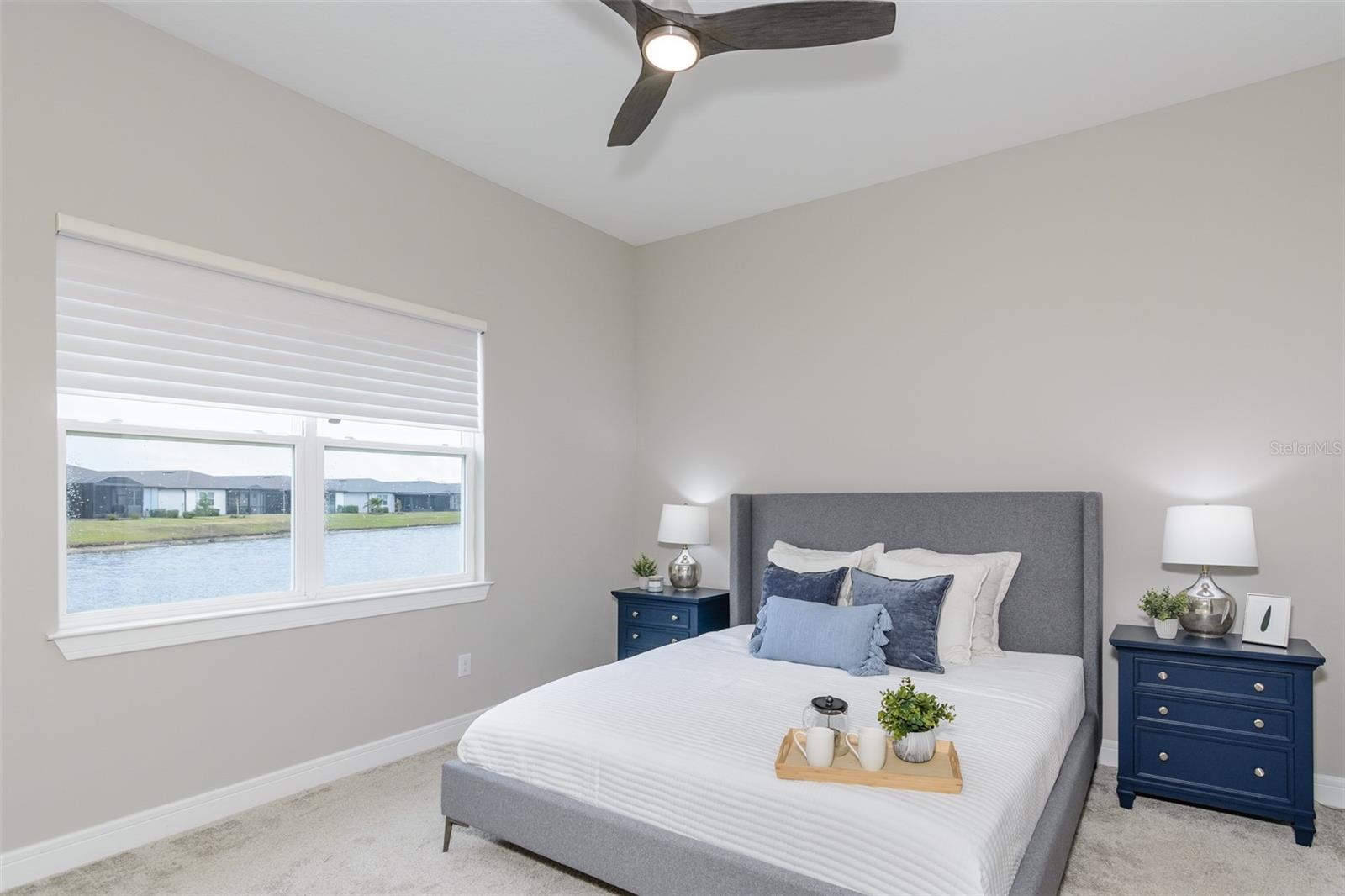 Welcome home to Del Webb Bexley living, where luxury & activity meet tranquility & relaxation. Fill your days with the exceptional amenities and social activities that this active 55+ community offers. Or just turn into your pavered drive & step inside to your very own waterfront oasis. The dramatic open concept of the Great Room will fill your senses with both light & delight, while the modern Kitchen Island will be engaging for all to gather around. Stainless appliances among the towering solid wood cabinets and designer herringbone backsplash accentuates the generous amounts of quartz counter space. Also, the chef in you will love the walk-in pantry! When it is time to enjoy your culinary creations, dine by a window with a water view or eat-out nightly, on the extended private patio for a taste of the sunset. The pre-plumbed patio is ready for your gas, water & electrical additions. As evening falls, your Master Retreat awaits. This luxurious lakeside En-suites includes a double vanity, an enormous walk-in shower plus, walk-in closets for both him & her. The second bedroom will charm any guest with its lovely bay-styled windows, huge walk-in closet and its own private En-suite. Did we mention that all the closets are California Closet & Plantation Shutters treat the windows throughout the home plus hurricane shutters to protect them? There is more, a bonus third bedroom or office, ideal for remote work or creative endeavors. This 3 bedroom 2 ½ bath home, with a pristine 2 car garage with overhead storage reinforced garage door. There are so many features for this home and community, too many to list here! So, be sure to ask for the list! In the meantime, make an appointment to see this captivating home with a prime waterfront location, meticulous landscaping all surrounded by a welcoming community. Don’t miss this opportunity to call 5858 Shorebird Branch, Home!
