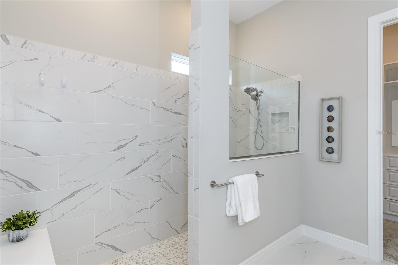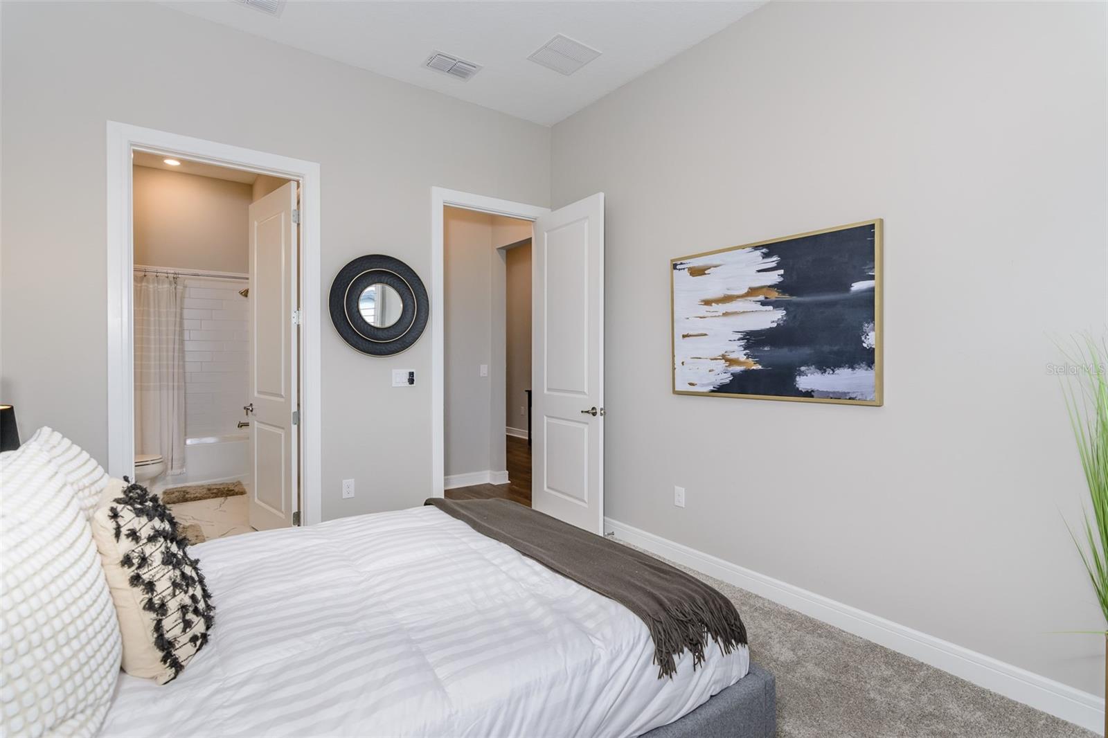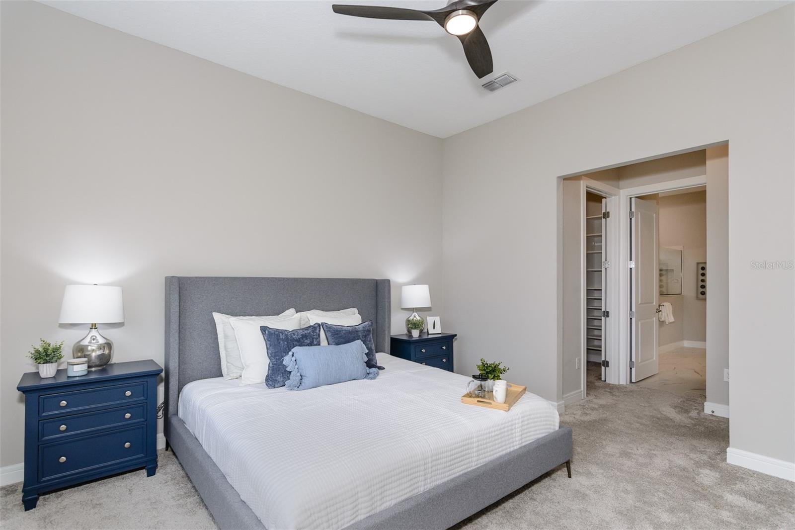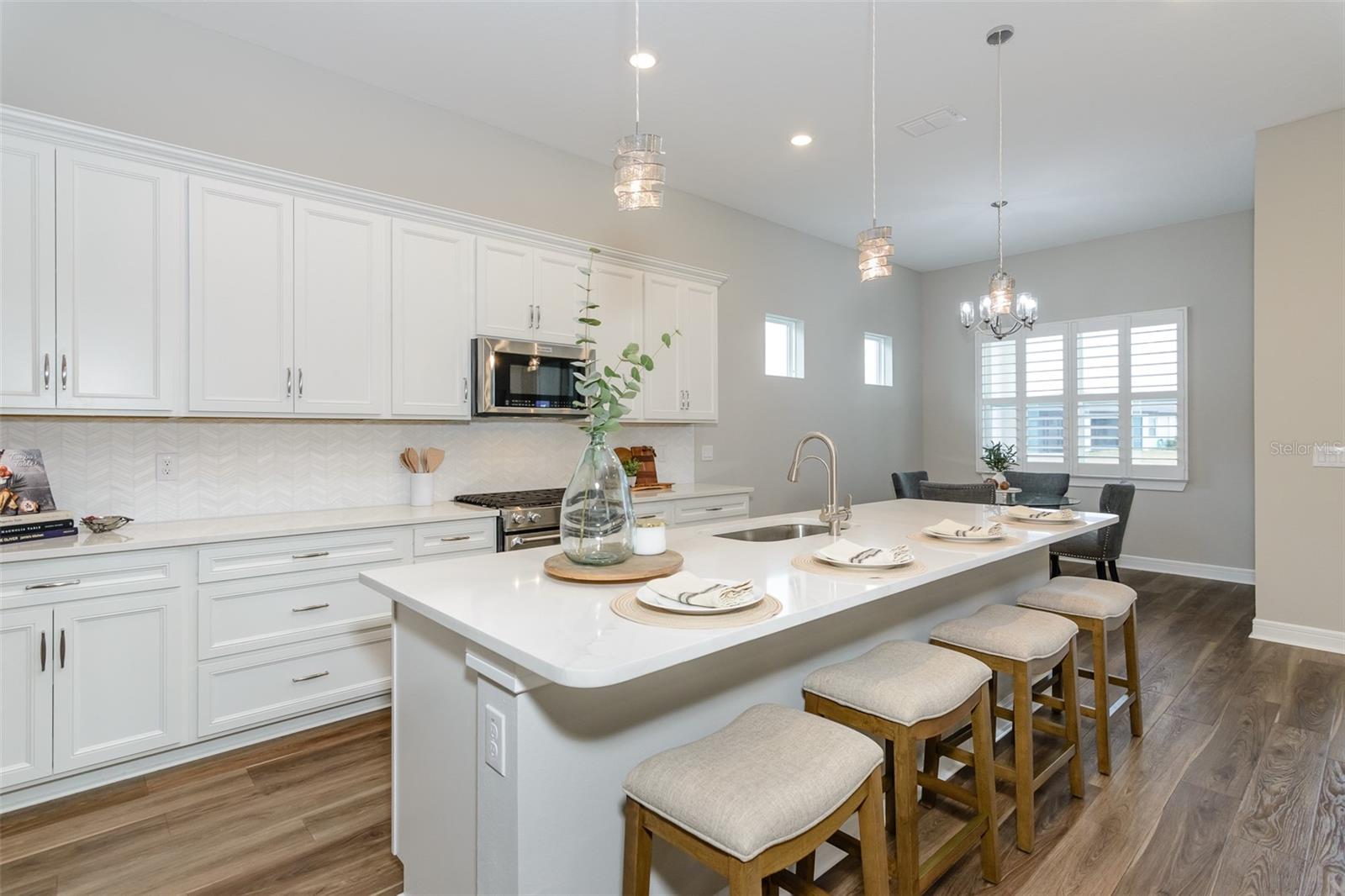 Welcome home to Del Webb Bexley living, where luxury & activity meet tranquility & relaxation. Fill your days with the exceptional amenities and social activities that this active 55+ community offers. Or just turn into your pavered drive & step inside to your very own waterfront oasis. The dramatic open concept of the Great Room will fill your senses with both light & delight, while the modern Kitchen Island will be engaging for all to gather around. Stainless appliances among the towering solid wood cabinets and designer herringbone backsplash accentuates the generous amounts of quartz counter space. Also, the chef in you will love the walk-in pantry! When it is time to enjoy your culinary creations, dine by a window with a water view or eat-out nightly, on the extended private patio for a taste of the sunset. The pre-plumbed patio is ready for your gas, water & electrical additions. As evening falls, your Master Retreat awaits. This luxurious lakeside En-suites includes a double vanity, an enormous walk-in shower plus, walk-in closets for both him & her. The second bedroom will charm any guest with its lovely bay-styled windows, huge walk-in closet and its own private En-suite. Did we mention that all the closets are California Closet & Plantation Shutters treat the windows throughout the home plus hurricane shutters to protect them? There is more, a bonus third bedroom or office, ideal for remote work or creative endeavors. This 3 bedroom 2 ½ bath home, with a pristine 2 car garage with overhead storage reinforced garage door. There are so many features for this home and community, too many to list here! So, be sure to ask for the list! In the meantime, make an appointment to see this captivating home with a prime waterfront location, meticulous landscaping all surrounded by a welcoming community. Don’t miss this opportunity to call 5858 Shorebird Branch, Home!