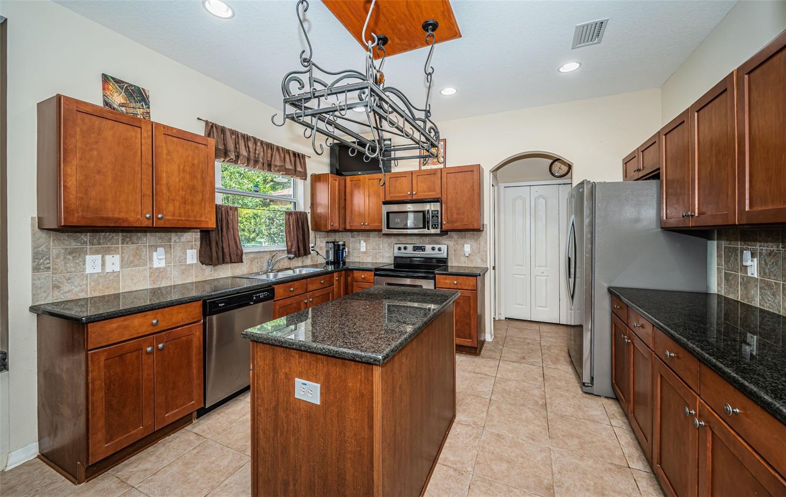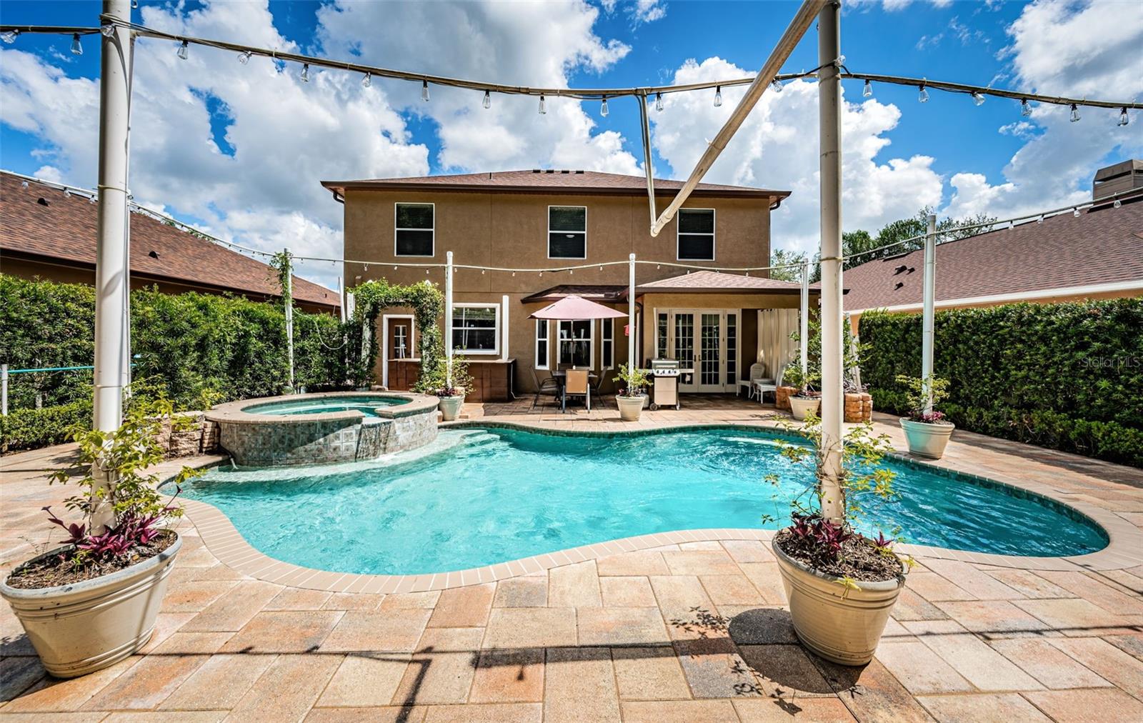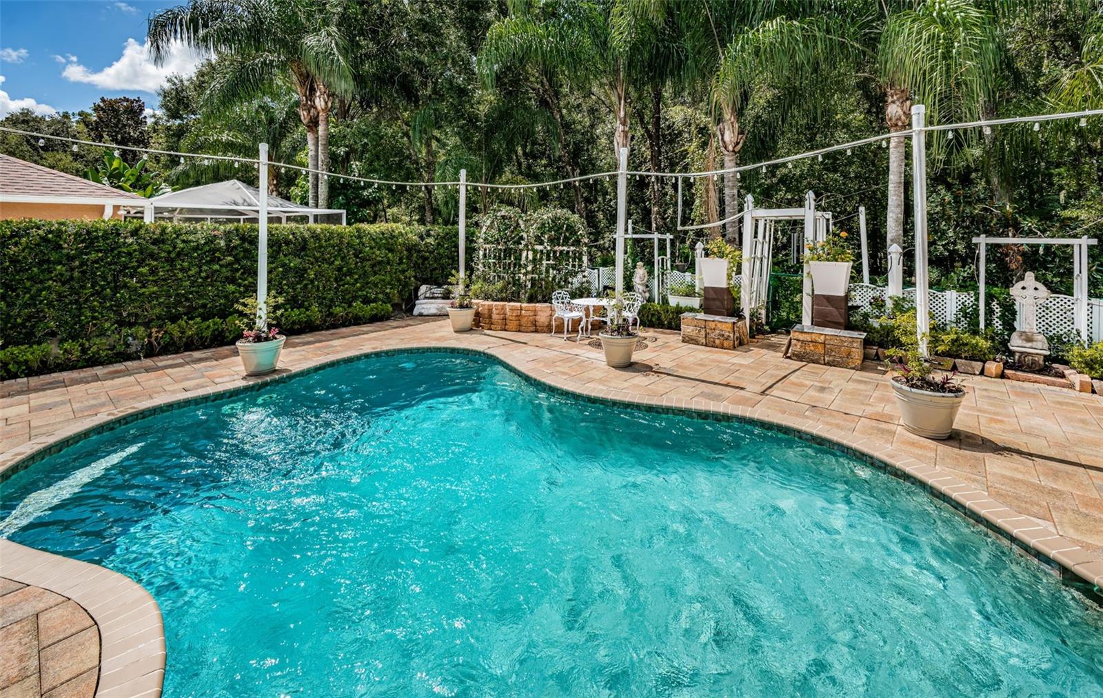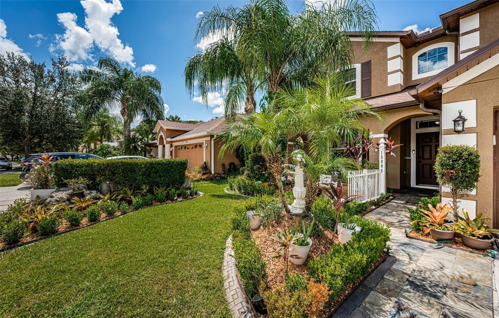 BEAUTIFUL POOL HOME! No Damage from Hurricanes Debby, Helene & Milton! NOT IN A FLOOD ZONE! Step into a spectacular oasis tucked away in the serene Suncoast Lakes neighborhood, near SR52 and the Suncoast Parkway. This lovely gem offers unparalleled privacy and a lush landscape with a picturesque conservation area backdrop. SELLER IS OFFERING A $10,000 INCENTIVE to the Buyer, PLUS a ONE-YEAR HOME WARRANTY IS INCLUDED for your peace of mind. IN ADDITION, SELLER WILL INCLUDE THE FURNISHINGS IF BUYER DESIRES. From the moment you arrive, you'll be captivated by the home's fantastic curb appeal and inviting ambiance. The property features high ceilings, recessed lighting, and stunning architectural details throughout. The Roof and A/C system were installed in 2022. New Exterior paint, gutters, and shutters in 2022. In addition the thermal, double pane windows throughout the home contribute to the energy efficiency of this home! Inside, you'll find 4 spacious bedrooms and a versatile loft area (easily converted into a 5th bedroom if needed). With 2 full bathrooms and a convenient pool bath, this home accommodates both family and guests with ease. The entry boasts a charming covered front porch with brick pavers, leading into an expansive foyer with rounded walls and a soaring ceiling. The foyer opens to the fourth bedroom, currently a music room (piano does not convey), the dining room, and a large family room perfect for gatherings. French doors from the family room lead to the covered lanai and the stunning backyard. The adjacent kitchen is a chef's delight, featuring a center island with a pot rack, wood cabinets, granite countertops, stainless steel appliances, and a charming bay window overlooking the pool area. The kitchen also includes a walk-in pantry and convenient access to the half bathroom, laundry closet, and dining area. Upstairs, the luxurious master suite awaits with a tray ceiling, recessed lighting, and serene views of the backyard oasis. The en suite garden bathroom includes a separate garden tub and shower, dual sinks with a marble top, two walk-in closets, and a separate water closet. The loft area is centrally located on the second floor, while bedrooms two and three are on the opposite side, sharing a full bathroom with a tub/shower combination. The backyard is a true retreat, featuring a fenced-in, resort-style swimming pool with a spill-over jacuzzi spa, all beautifully illuminated for evening enjoyment. Tall hedges along the sides and no rear neighbors ensure your privacy in this tranquil haven. Suncoast Lakes is a well-established community with NO CDD and a low HOA fee of $75 a month, covering amenities such as a community pool, tennis courts, basketball courts, a playground, and an open sports field. Trash pick-up and recycling are included, making this a great value. Additionally, enjoy access from Pond Rush Ct. to the Suncoast Trail, a 50-mile stretch perfect for walking, running, and biking. Conveniently located with easy access to Suncoast Parkway/589, I-75, and US19, Publix, gas stations, restaurants, and more. This home truly has it all – schedule your visit today and experience this exceptional property for yourself!