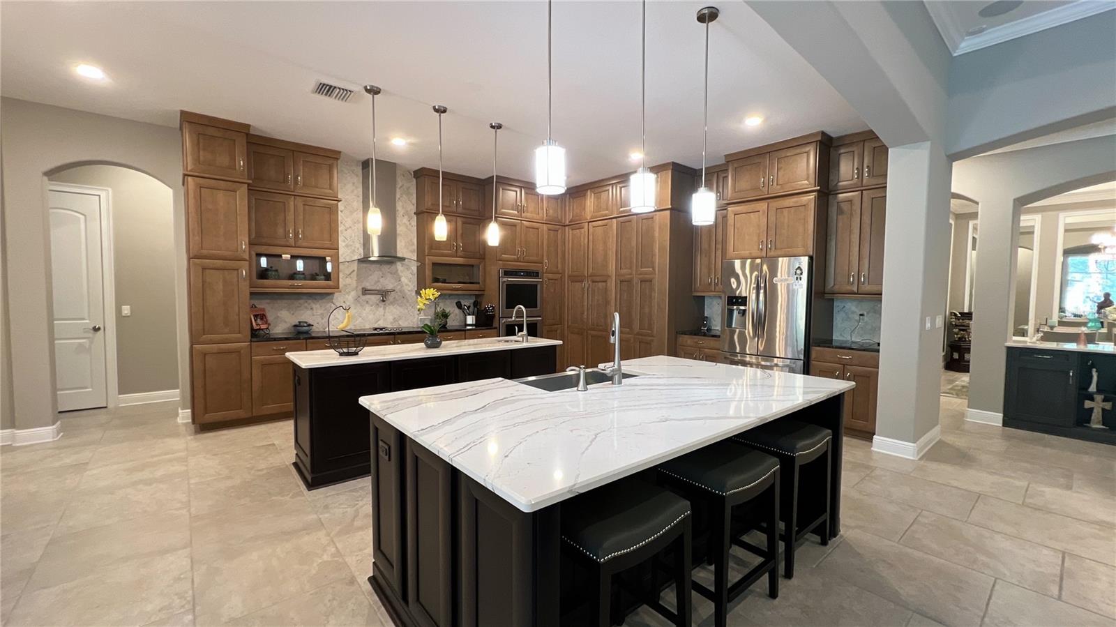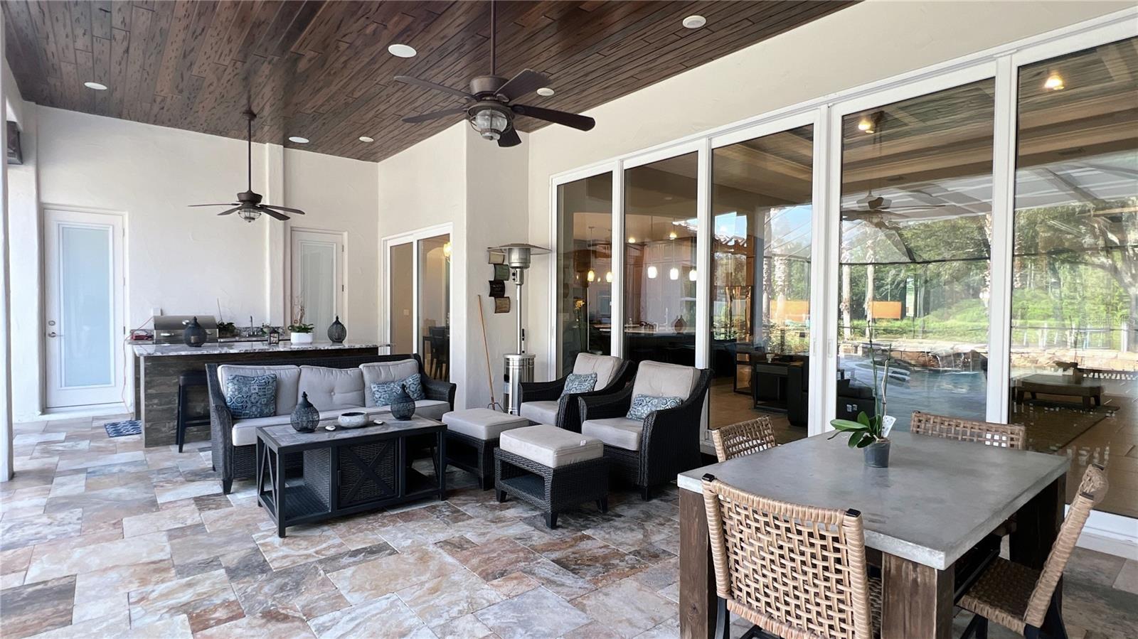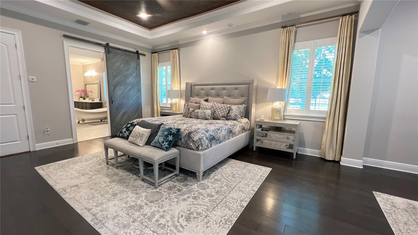 Its all about location and this home checks all those boxes. This beautiful 4 bedroom home located on a cove on Lake Padgett has everything you could imagine. as you walk into the large foyer, your eye is immediately drawn to the open floor plan and modern design. With high tray ceilings with wood inlays and recessed lighting, the home invites you in. the attention to detail and upgrades in the home are beyond compare. To the left of the foyer is a nice guest suite bedroom with ensuite bathroom and built in closets. To the right is the gorgeous dining room with a built in buffet island and wine rack as well as mirrored panels making the room look very grand. The office is located across from the dining room and has built-in bookshelves, wood floors and plenty of light.The family room is oversized and behind it is the kitchen. The ceilings are 15 feet tall, frayed with recessed light and wood inlays. there is a built-in entertainment center that fits a 70" TV. The kitchen is AMAZING! A true chefs delight featuring two islands. The main island features a farmhouse kitchen sink, under counter garbage collection, and the dishwasher as well as seating at the bar. the prep island features a sink with disposal, plenty of storage and a under the counter microwave/convection oven. The back wall has a cooktop island with pot filler and a double oven. There is cabinet storage galore and the best part is a hidden pantry behind the cabinet walls where there is another sink, beverage center fridge and again massive amounts of cabinets for storage. All cabinets are solid wood with soft close doors and drawers with beautiful marble countertops. There is also a dinette area in the kitchen.Off the kitchen are two large bedrooms with crown molding, plantation shutters, carpet and built-in closets. The third bathroom of the house is located between these two rooms and has a single vanity with granite countertops. The shower/tub combo feautures beautiful tile work mosaics.Also off the kitchen at the back off the house isa media/bonus room. It has carpet, crown molding, tray ceilings, recessed lighting, in wall speakers and built-in storage and bench seats. It is large enough to also hold a pool table. There are light blocking cellular shades on the windows and also has a door out to the pool area. The pool bath is also located between the bonus room and kitchen area.The master bedroom is very large fitting a king size bed with tons of room to walk around and a large sitting area over looking the pool. there are plantation shutters on the windows. High tray ceilings with wood inlays and recessed lighting, wood floors and a nice barn door entrance into the stunning bathroom. The master bath features two large vanities for him and her with granite countertops. There is large claw footed bathtub and not one but two showers for Mr & Mrs to enjoy. There is also a sit down makeup vanity area and tons of gorgeous tile work. the wall behind the vanities is all teeny tile mosaic and is quite great taking. There is a separate water closet/toilet for privacy. The master closet is at the end of the bathroom as you wall through and is also large with built-in shelving. hamper and plenty of shoe storage.The pool and patio area is stunning with a beach type walk-in, waterfall features and built-in hot tub. There are floor pool cleaners, water auto fill, and features a saltwater treatment system and there's an outdoor kitchen and dock.