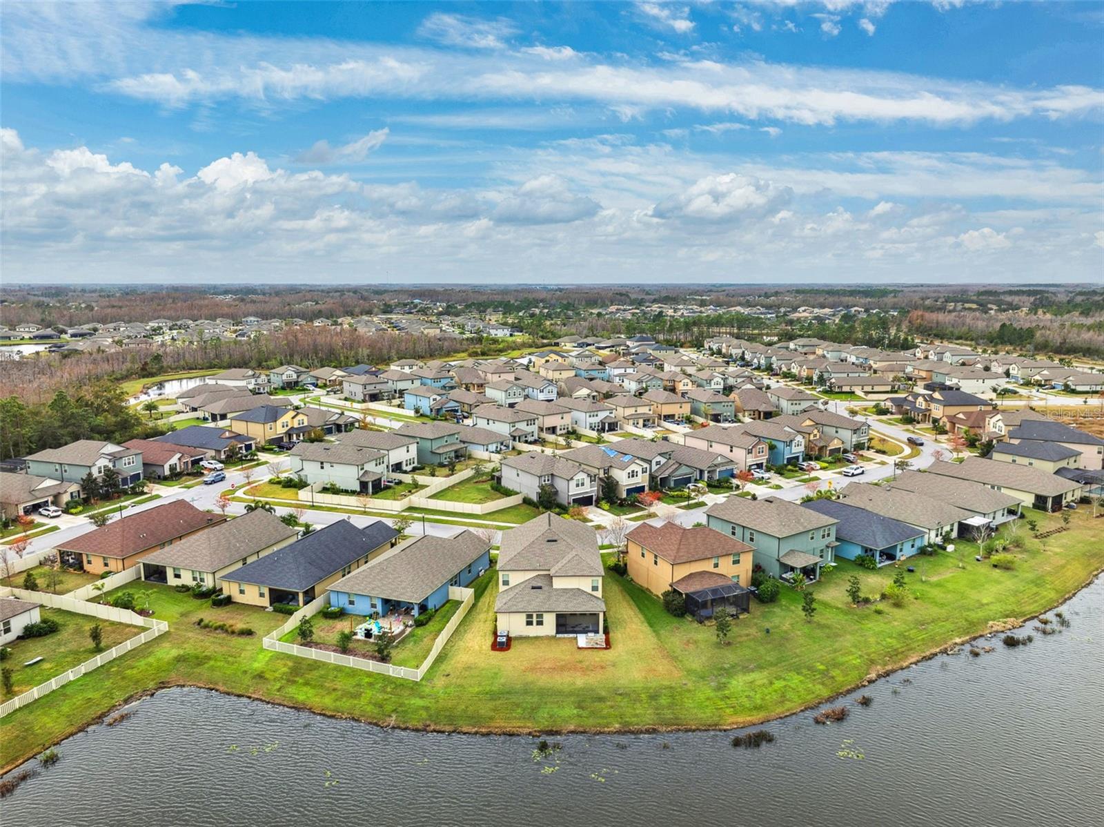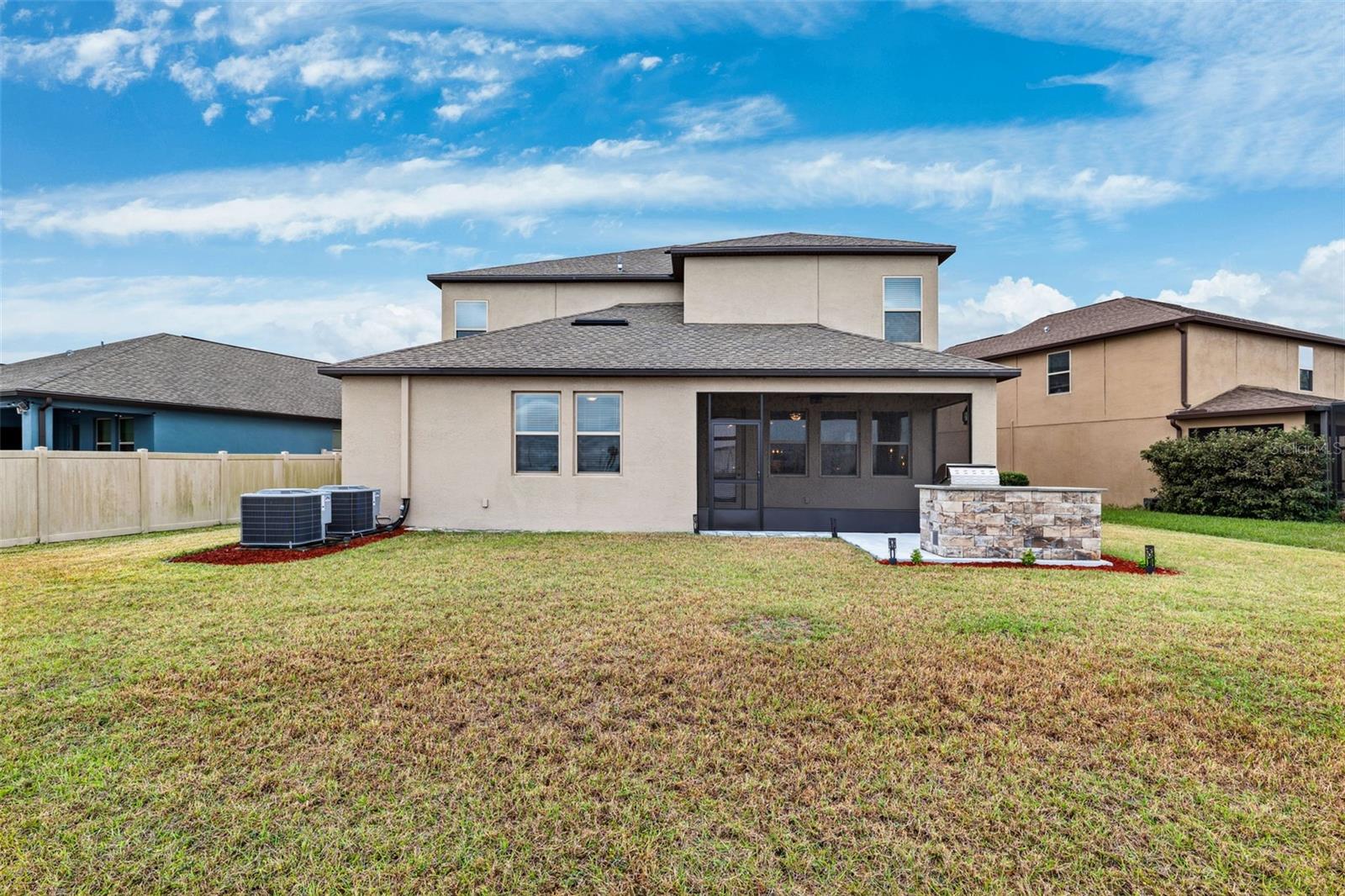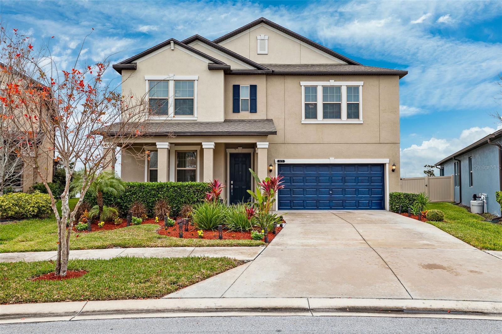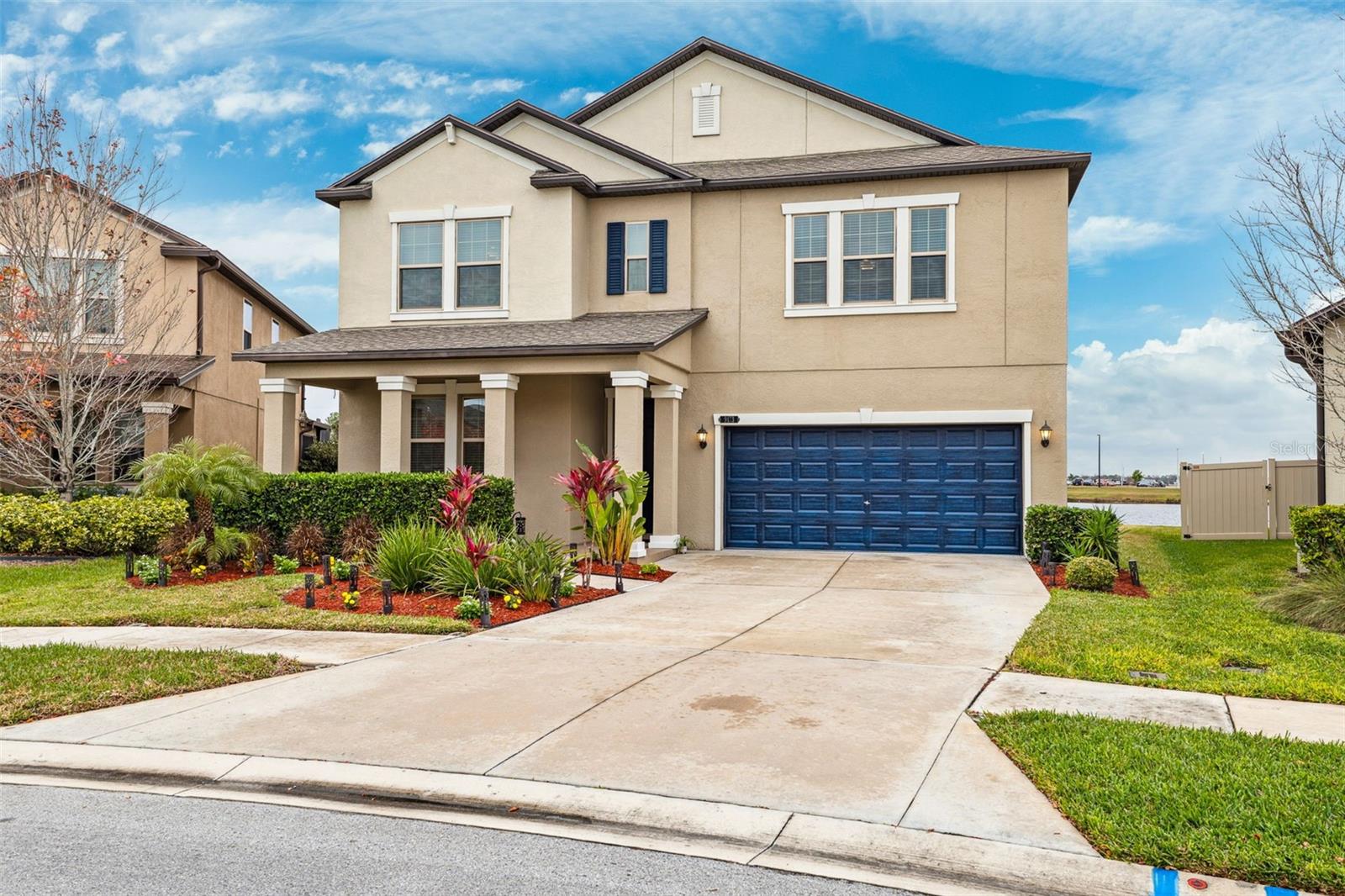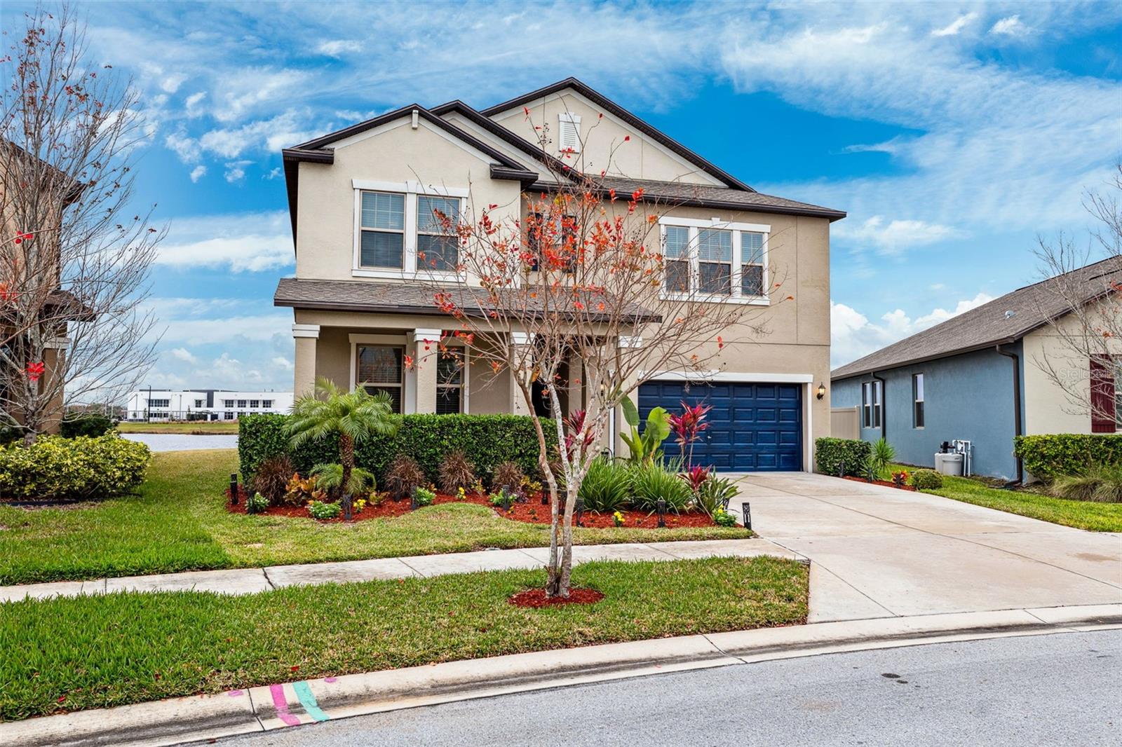 One or more photo(s) has been virtually staged. Why wait to build when you can fall in love with this dream home today? This spacious 5-bedroom residence (plus flex room and loft!) in Land O' Lakes' highly desirable Connerton community offers instant gratification and unparalleled living. Boasting 4 bathrooms and a 3-car tandem garage, this home radiates pride of ownership from its impressive curb appeal and inviting covered front porch. The versatile floorplan is perfect for any lifestyle. The first floor features a formal dining/flex space and an open-concept kitchen, a chef's delight with 42" staggered cabinets, crown molding, granite countertops, an island with bar seating, stainless steel appliances, a gas cooktop, butler's pantry, walk-in pantry, recessed lighting, and a casual dining area. The owner's retreat is a true sanctuary with a massive walk-in closet, dual sinks, a soaking tub, and a separate walk-in shower. Relax and enjoy stunning pond views from the screened lanai, complete with a built-in BBQ – ideal for Florida living! A half bath and drop-off zone provide added convenience. First-floor laundry hookups offer flexibility for a second laundry area or extra storage. Upstairs, a spacious loft is perfect for a theater room, game room, homeschool area, or library. Four generously sized bedrooms and two full baths, each with dual vanities, complete the second floor. A fully equipped laundry room with washer, dryer, and cabinets is also located upstairs. Extras include a tankless water heater, irrigation system (reclaimed water), ceiling fans, a Wi-Fi garage opener, a video doorbell, window blinds, and crown molding. Residents enjoy an unparalleled lifestyle with access to a 10,000 Sq Ft Clubhouse, complete with a café, state-of-the-art fitness center, lap-pool, and a resort-style pool featuring a thrilling waterslide. Additional amenities include nature trails, sports courts (Volleyball, Tennis, and Basketball), & more. A second Clubhouse, currently under construction, will further enhance the community with another resort pool, fitness center, and six pickleball courts. Plus, Connerton is a Golf-Cart-Friendly Community. Don't miss out – schedule your appointment today!