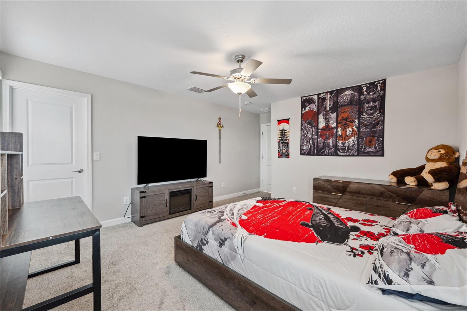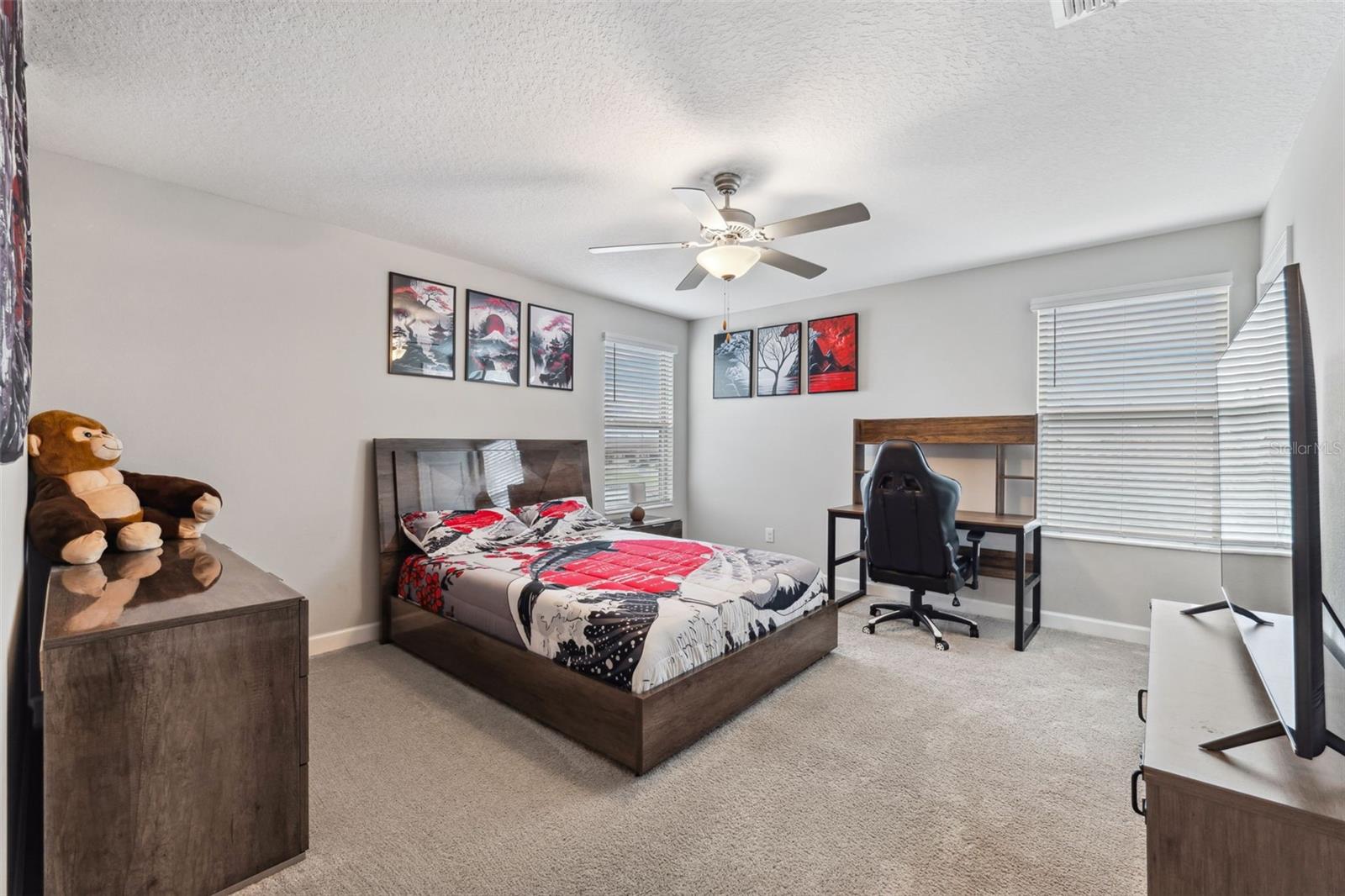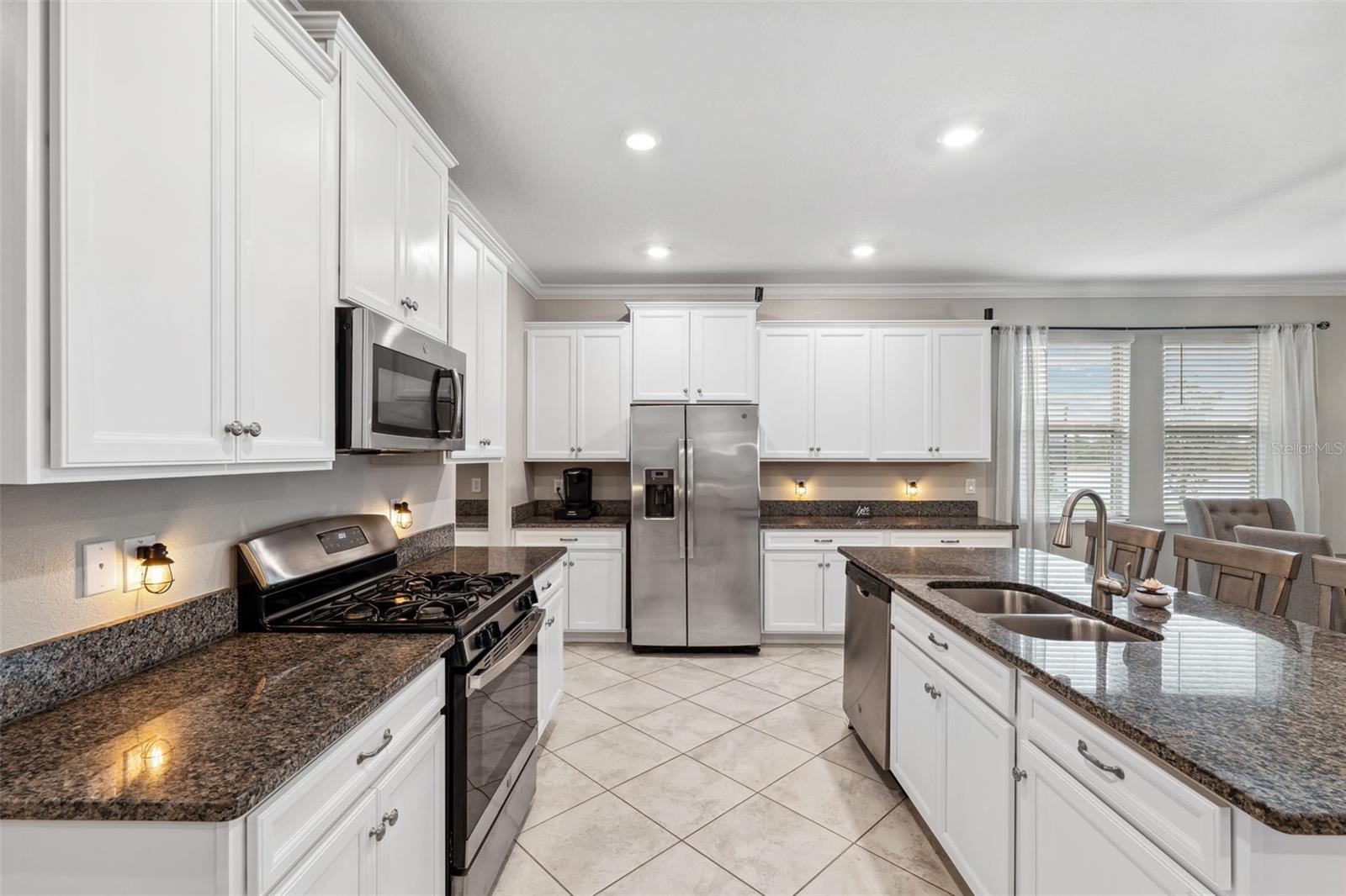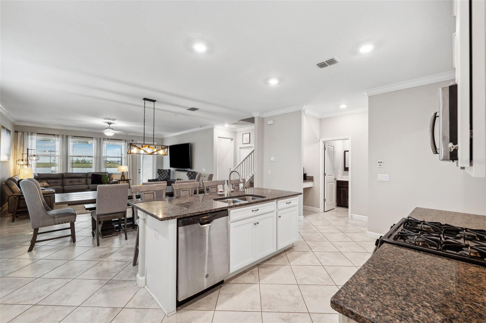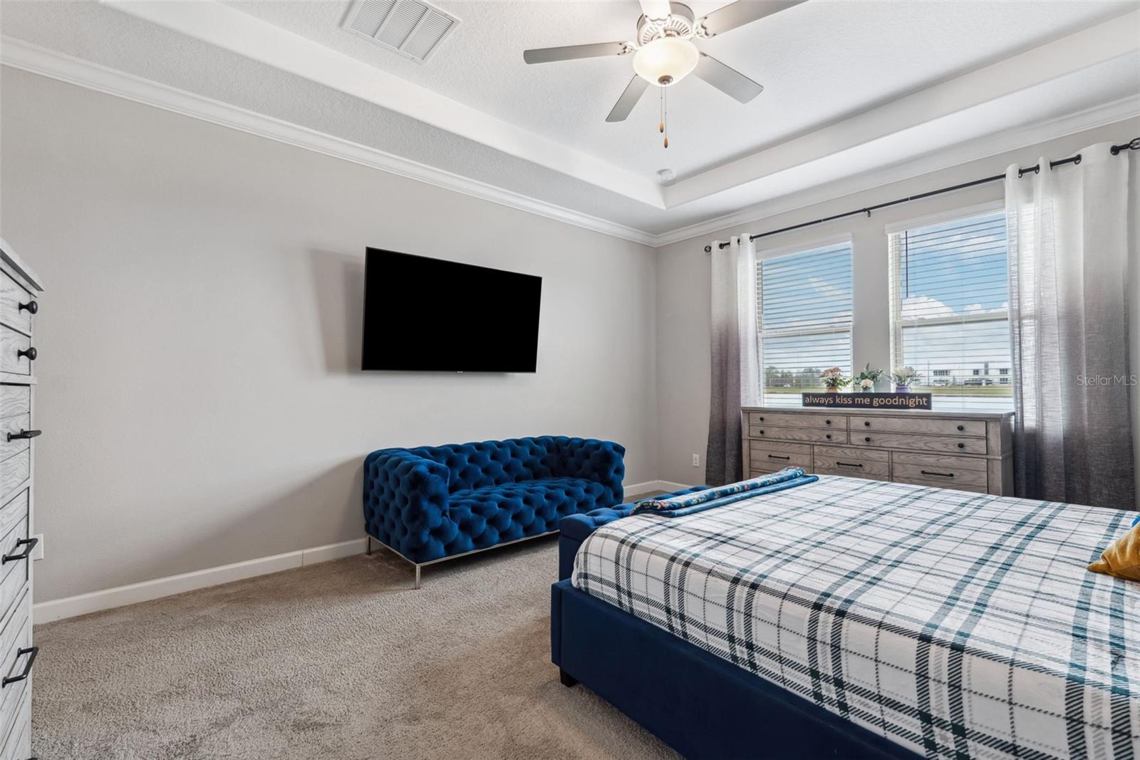 One or more photo(s) has been virtually staged. Why wait to build when you can fall in love with this dream home today? This spacious 5-bedroom residence (plus flex room and loft!) in Land O' Lakes' highly desirable Connerton community offers instant gratification and unparalleled living. Boasting 4 bathrooms and a 3-car tandem garage, this home radiates pride of ownership from its impressive curb appeal and inviting covered front porch. The versatile floorplan is perfect for any lifestyle. The first floor features a formal dining/flex space and an open-concept kitchen, a chef's delight with 42" staggered cabinets, crown molding, granite countertops, an island with bar seating, stainless steel appliances, a gas cooktop, butler's pantry, walk-in pantry, recessed lighting, and a casual dining area. The owner's retreat is a true sanctuary with a massive walk-in closet, dual sinks, a soaking tub, and a separate walk-in shower. Relax and enjoy stunning pond views from the screened lanai, complete with a built-in BBQ – ideal for Florida living! A half bath and drop-off zone provide added convenience. First-floor laundry hookups offer flexibility for a second laundry area or extra storage. Upstairs, a spacious loft is perfect for a theater room, game room, homeschool area, or library. Four generously sized bedrooms and two full baths, each with dual vanities, complete the second floor. A fully equipped laundry room with washer, dryer, and cabinets is also located upstairs. Extras include a tankless water heater, irrigation system (reclaimed water), ceiling fans, a Wi-Fi garage opener, a video doorbell, window blinds, and crown molding. Residents enjoy an unparalleled lifestyle with access to a 10,000 Sq Ft Clubhouse, complete with a café, state-of-the-art fitness center, lap-pool, and a resort-style pool featuring a thrilling waterslide. Additional amenities include nature trails, sports courts (Volleyball, Tennis, and Basketball), & more. A second Clubhouse, currently under construction, will further enhance the community with another resort pool, fitness center, and six pickleball courts. Plus, Connerton is a Golf-Cart-Friendly Community. Don't miss out – schedule your appointment today!