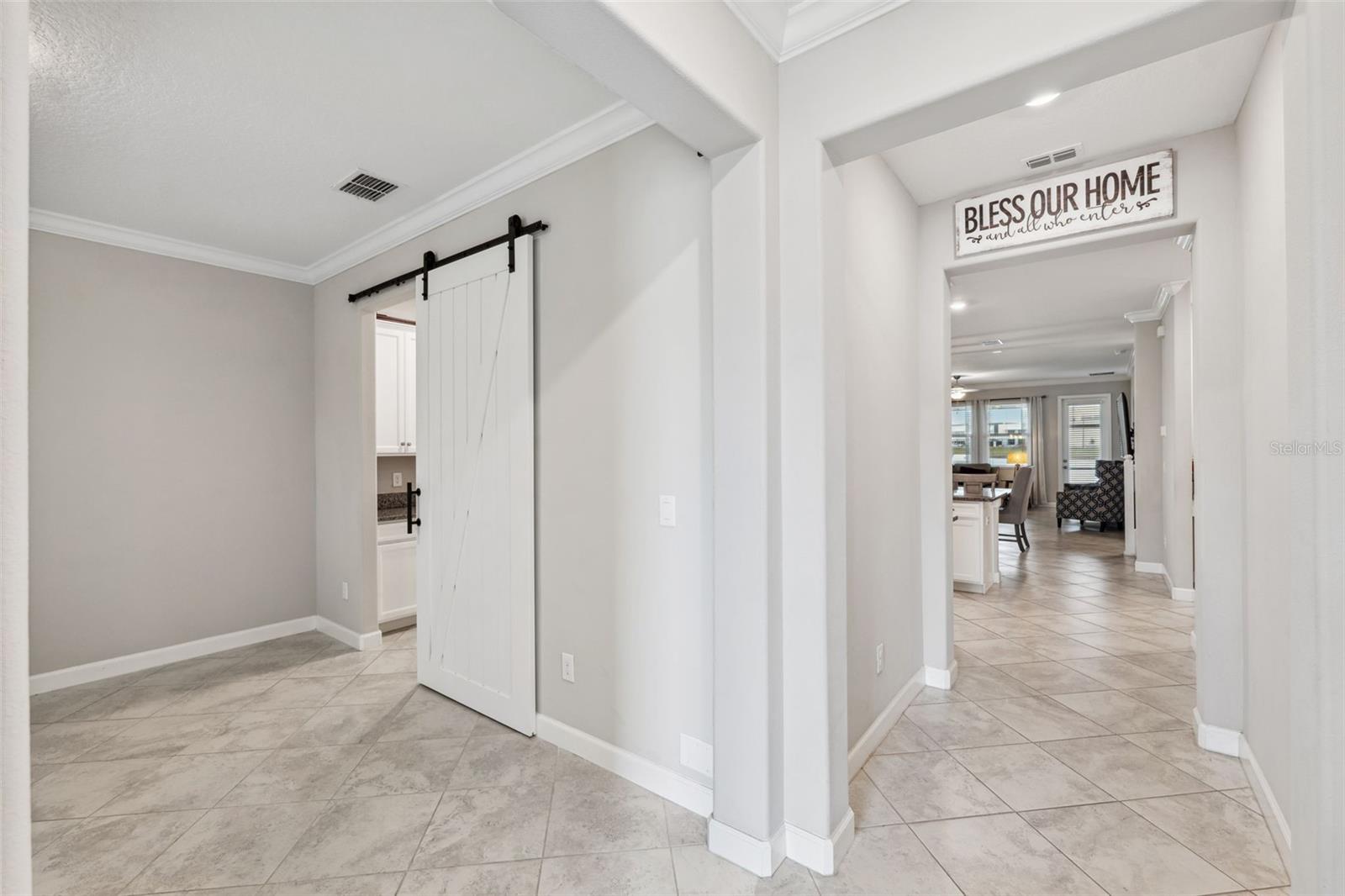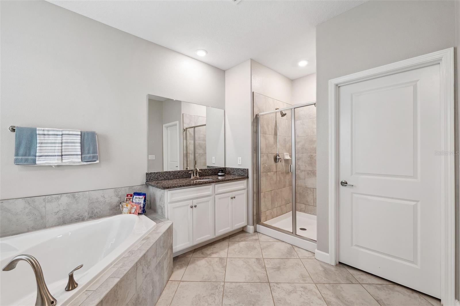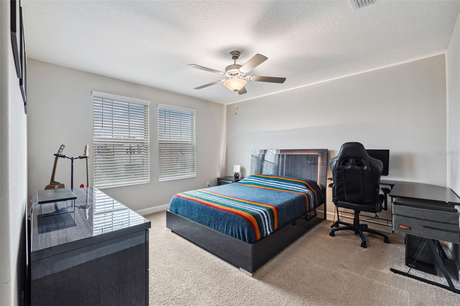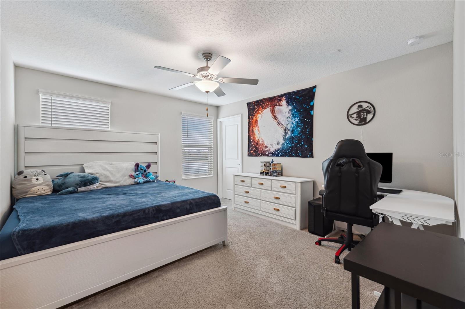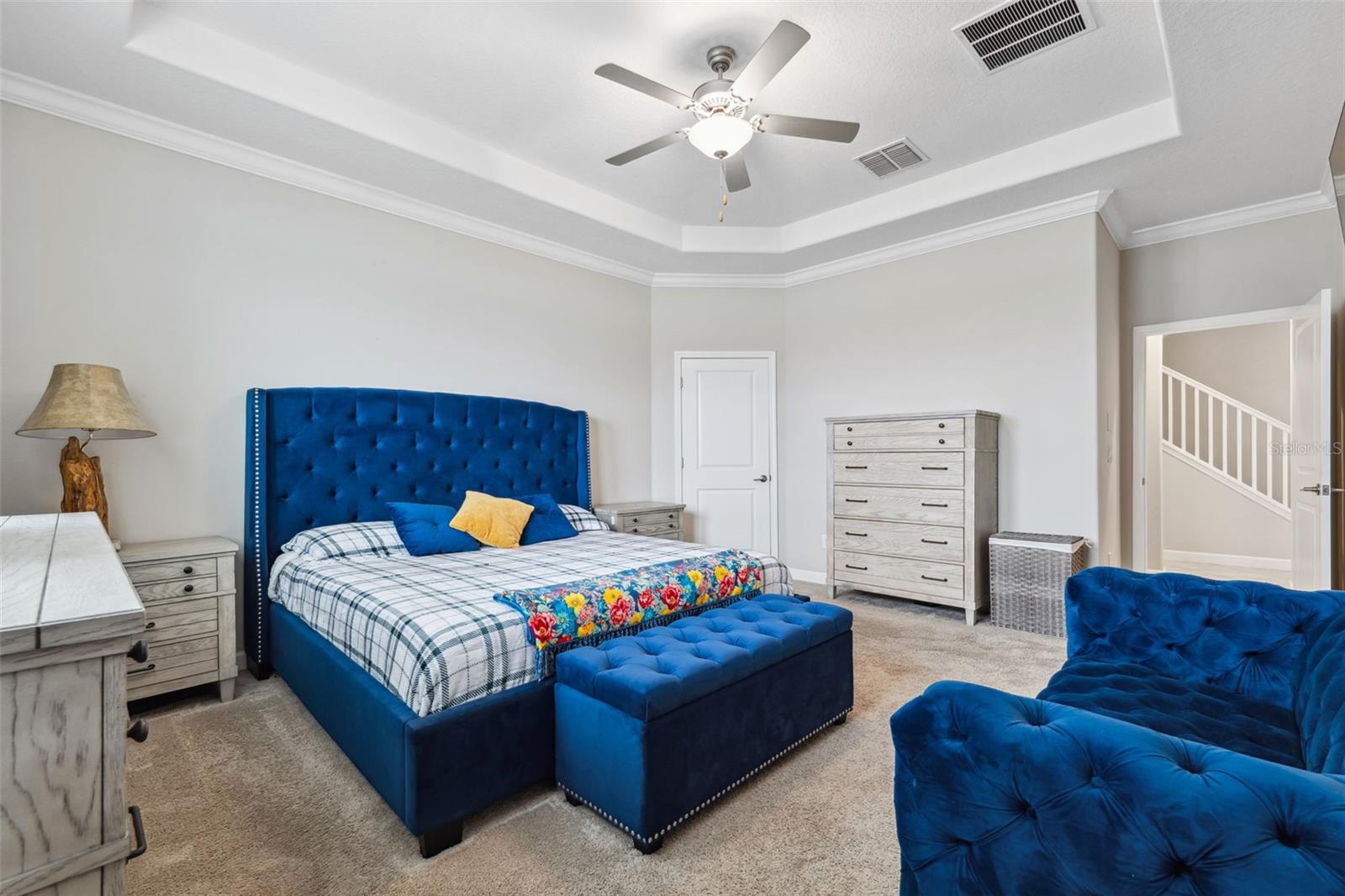 One or more photo(s) has been virtually staged. Why wait to build when you can fall in love with this dream home today? This spacious 5-bedroom residence (plus flex room and loft!) in Land O' Lakes' highly desirable Connerton community offers instant gratification and unparalleled living. Boasting 4 bathrooms and a 3-car tandem garage, this home radiates pride of ownership from its impressive curb appeal and inviting covered front porch. The versatile floorplan is perfect for any lifestyle. The first floor features a formal dining/flex space and an open-concept kitchen, a chef's delight with 42" staggered cabinets, crown molding, granite countertops, an island with bar seating, stainless steel appliances, a gas cooktop, butler's pantry, walk-in pantry, recessed lighting, and a casual dining area. The owner's retreat is a true sanctuary with a massive walk-in closet, dual sinks, a soaking tub, and a separate walk-in shower. Relax and enjoy stunning pond views from the screened lanai, complete with a built-in BBQ – ideal for Florida living! A half bath and drop-off zone provide added convenience. First-floor laundry hookups offer flexibility for a second laundry area or extra storage. Upstairs, a spacious loft is perfect for a theater room, game room, homeschool area, or library. Four generously sized bedrooms and two full baths, each with dual vanities, complete the second floor. A fully equipped laundry room with washer, dryer, and cabinets is also located upstairs. Extras include a tankless water heater, irrigation system (reclaimed water), ceiling fans, a Wi-Fi garage opener, a video doorbell, window blinds, and crown molding. Residents enjoy an unparalleled lifestyle with access to a 10,000 Sq Ft Clubhouse, complete with a café, state-of-the-art fitness center, lap-pool, and a resort-style pool featuring a thrilling waterslide. Additional amenities include nature trails, sports courts (Volleyball, Tennis, and Basketball), & more. A second Clubhouse, currently under construction, will further enhance the community with another resort pool, fitness center, and six pickleball courts. Plus, Connerton is a Golf-Cart-Friendly Community. Don't miss out – schedule your appointment today!