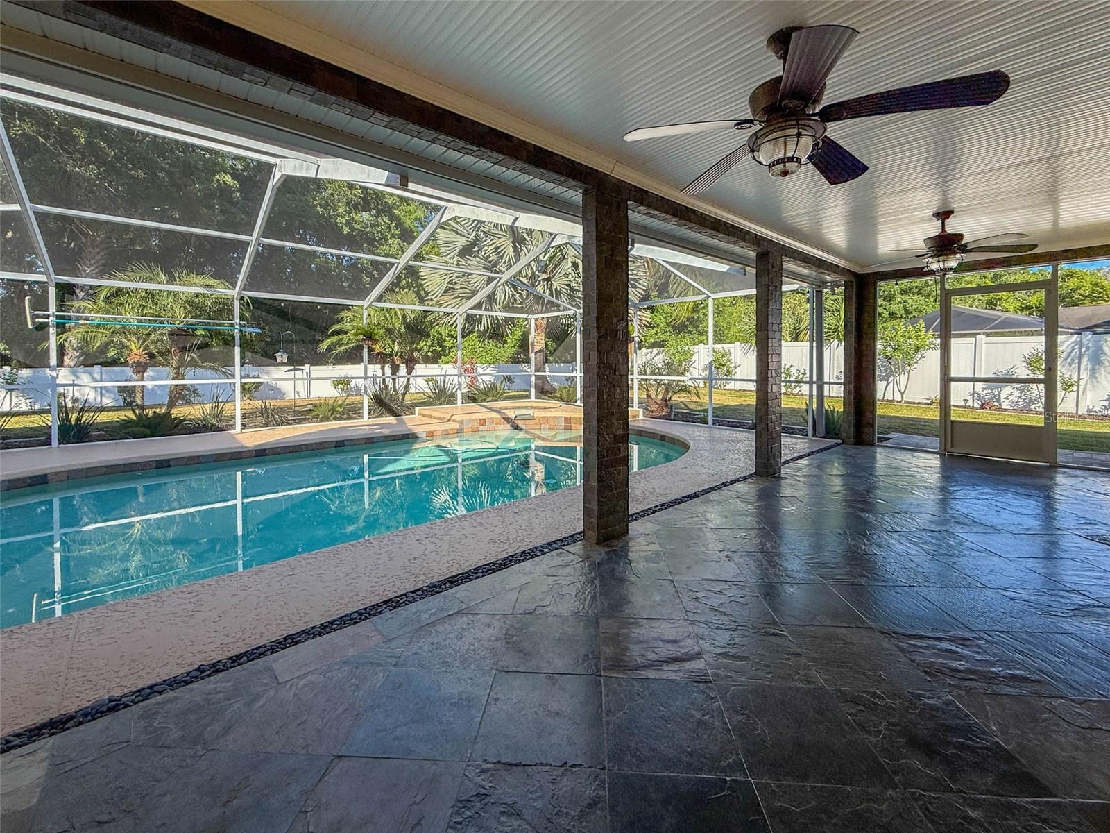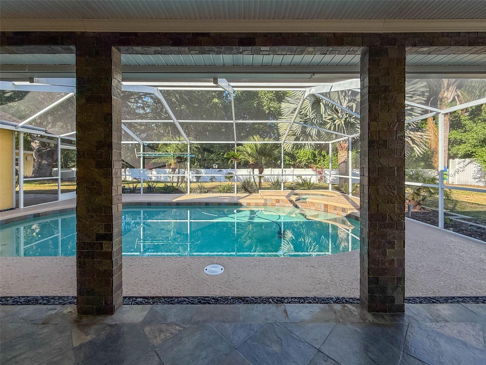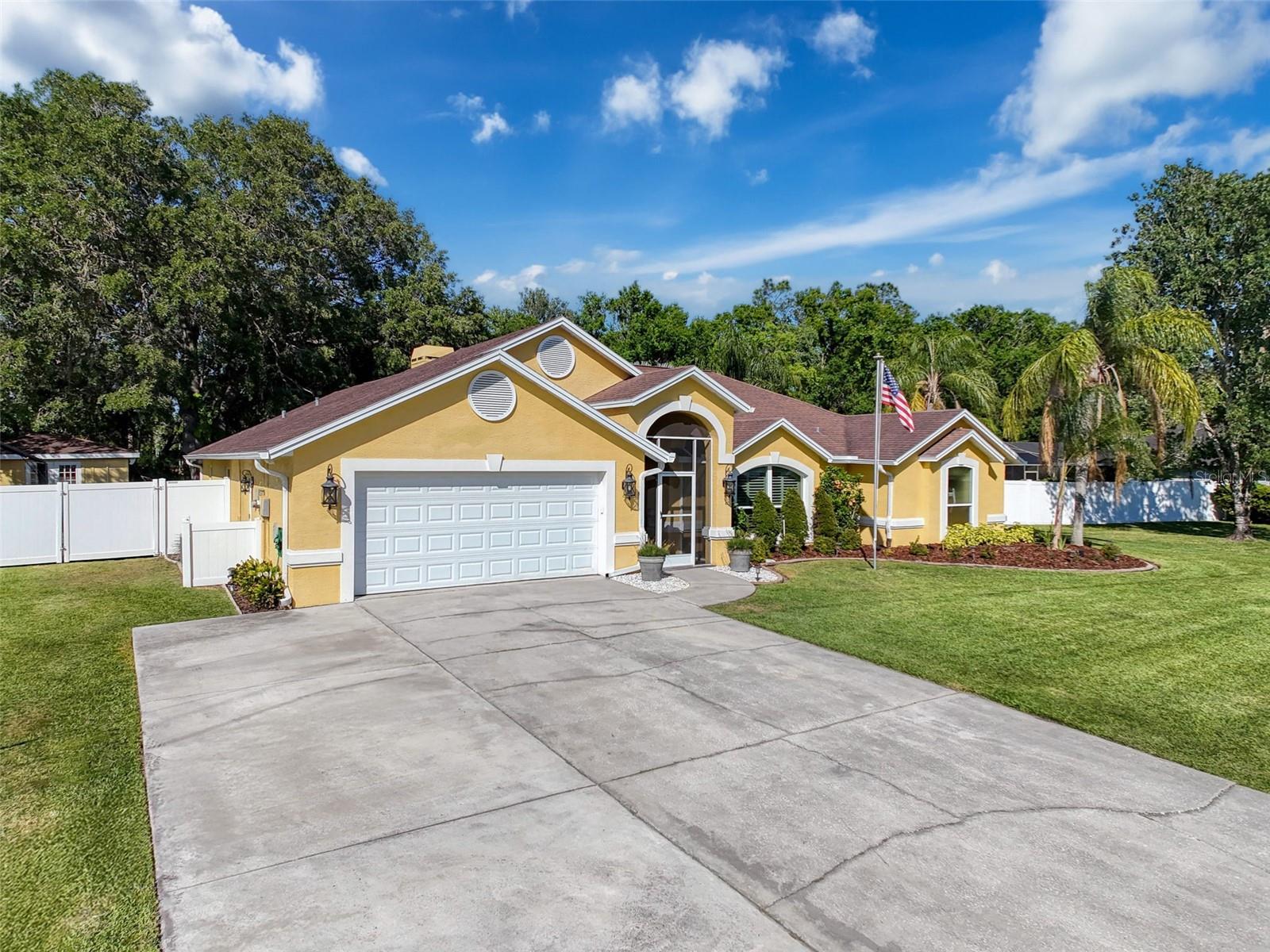 Welcome to 3920 Meadowlark Court in the heart of Land O’ Lakes! This stunning 4-bedroom, 2-bath home boasts 2210 sq. ft. of beautifully maintained living space and is packed with upgrades and custom features throughout. Ideally located near Tampa Premium Outlets and The Shops at Wiregrass, this fully fenced property offers both convenience and tranquility. Step inside to find vaulted ceilings, plantation shutters, and fresh paint that create a light and airy atmosphere. The wood-burning fireplace and custom shelving in the family room add warmth and character. The kitchen is a show stopper with elegant marble tiled counters and backsplash, beautiful lighting, pantry, and newer appliances.The spacious primary suite includes double walk-in closets with shelving, double vanities and sinks, and a jetted tub, offering a spa-like retreat. Guest bath has double sinks so no more arguing over the mirror. Enjoy Florida living with a heated pool and Jacuzzi spa, outdoor shower, new screening, and a fire pit and swing—perfect for entertaining. The 26x12 carport easily accommodates your RV or boat. Upgrades include: extra concrete for more parking, new windows, new water softener, new front-loading washer & dryer, central vacuum, new gutters with soffit and fascia, new motion lights, and a new garage door opener. A 12x16 shed with electric and A/C and outdoor sound system adds versatile storage or workshop space. The sprinkler system keeps this gorgeous landscape looking its best year-round. HVAC (2014), Water Heater (2019), and Roof (2008)—all well-maintained for peace of mind. TVs in all rooms stay, and select furniture is available for sale.This home truly has it all—don’t miss your chance to own a move-in-ready gem in one of Pasco County's most desirable areas!