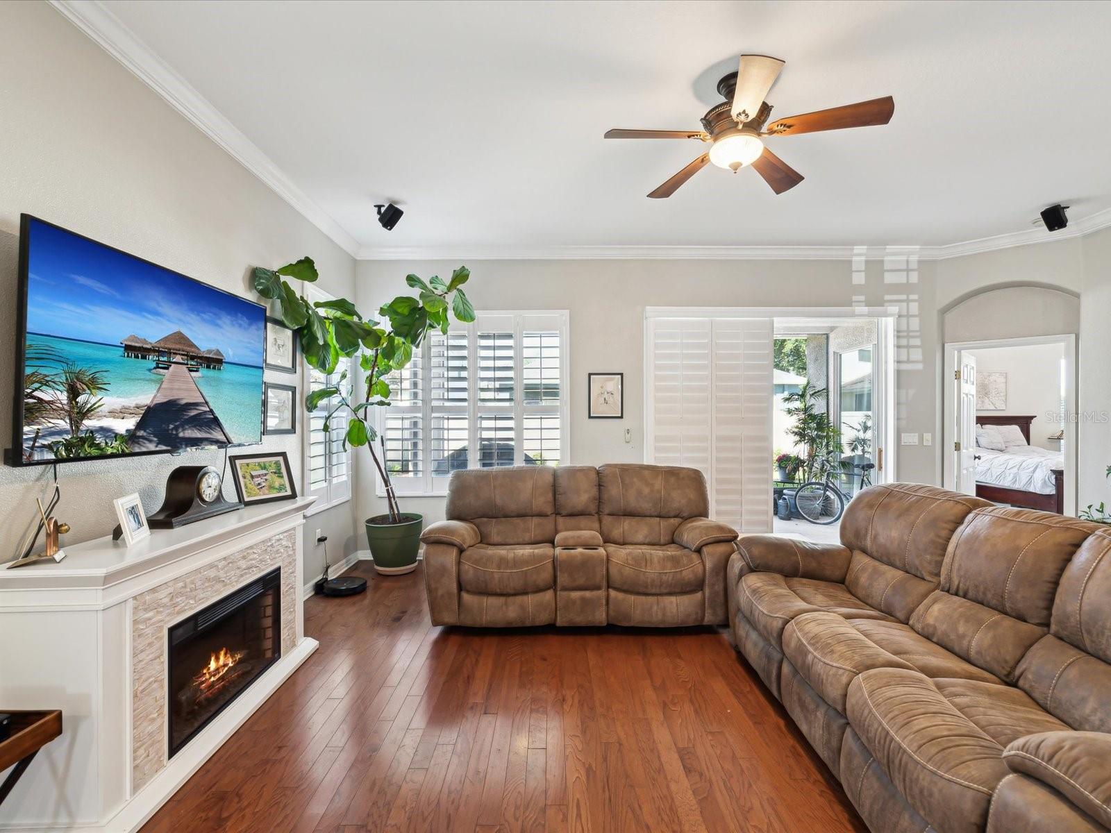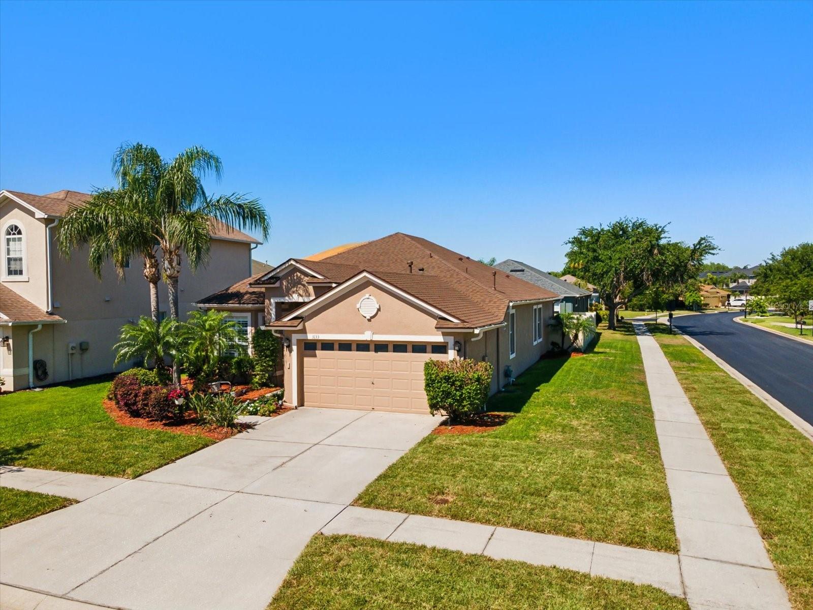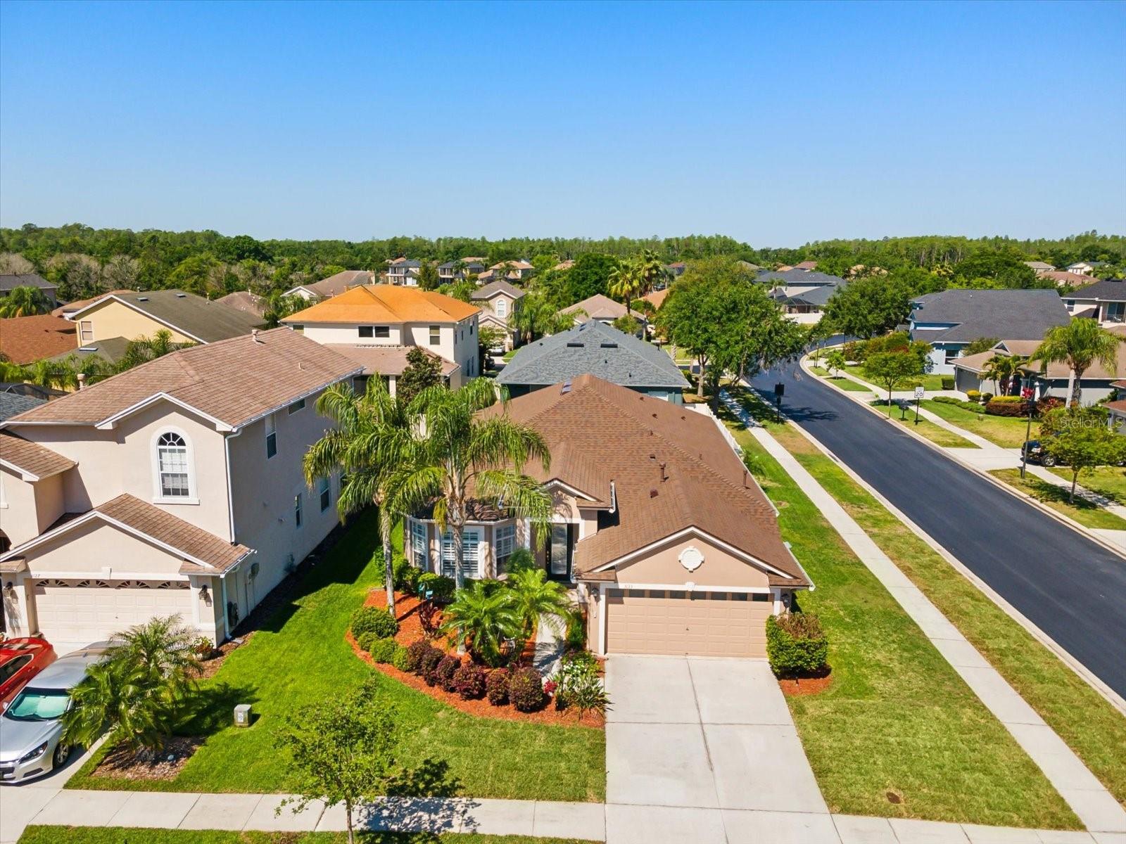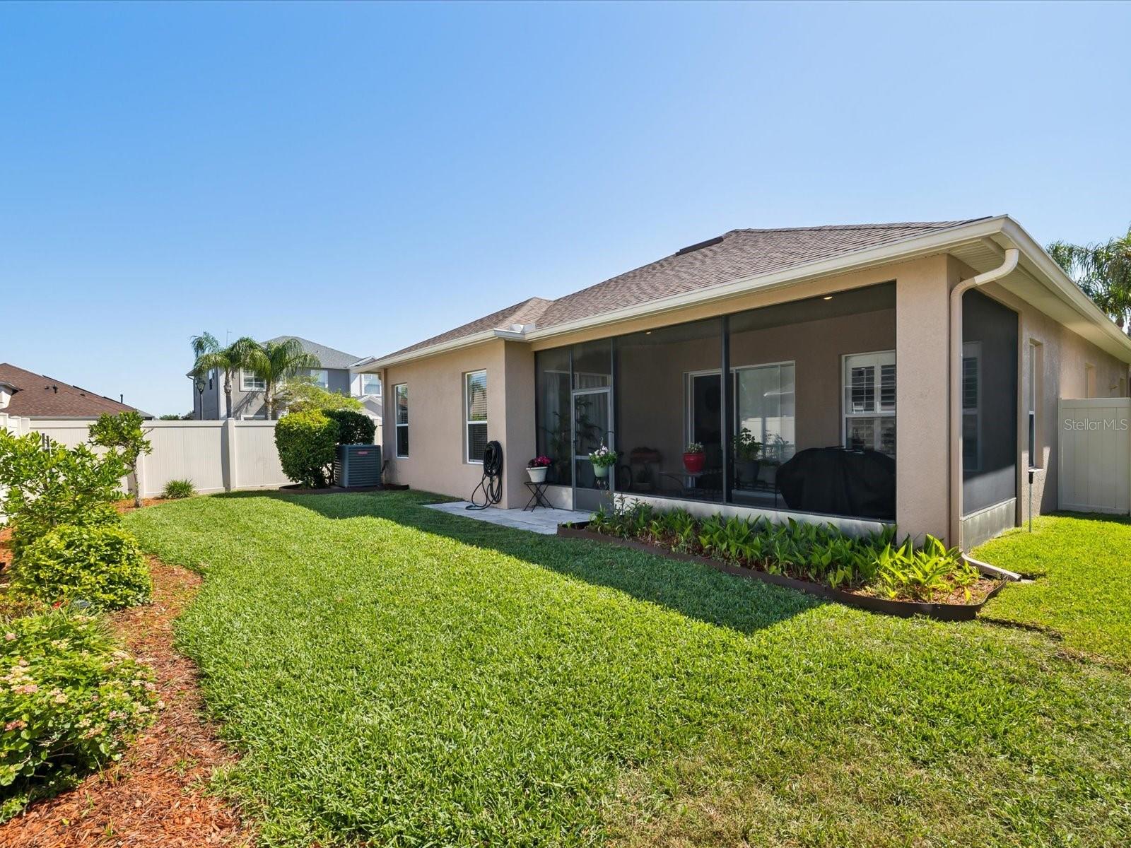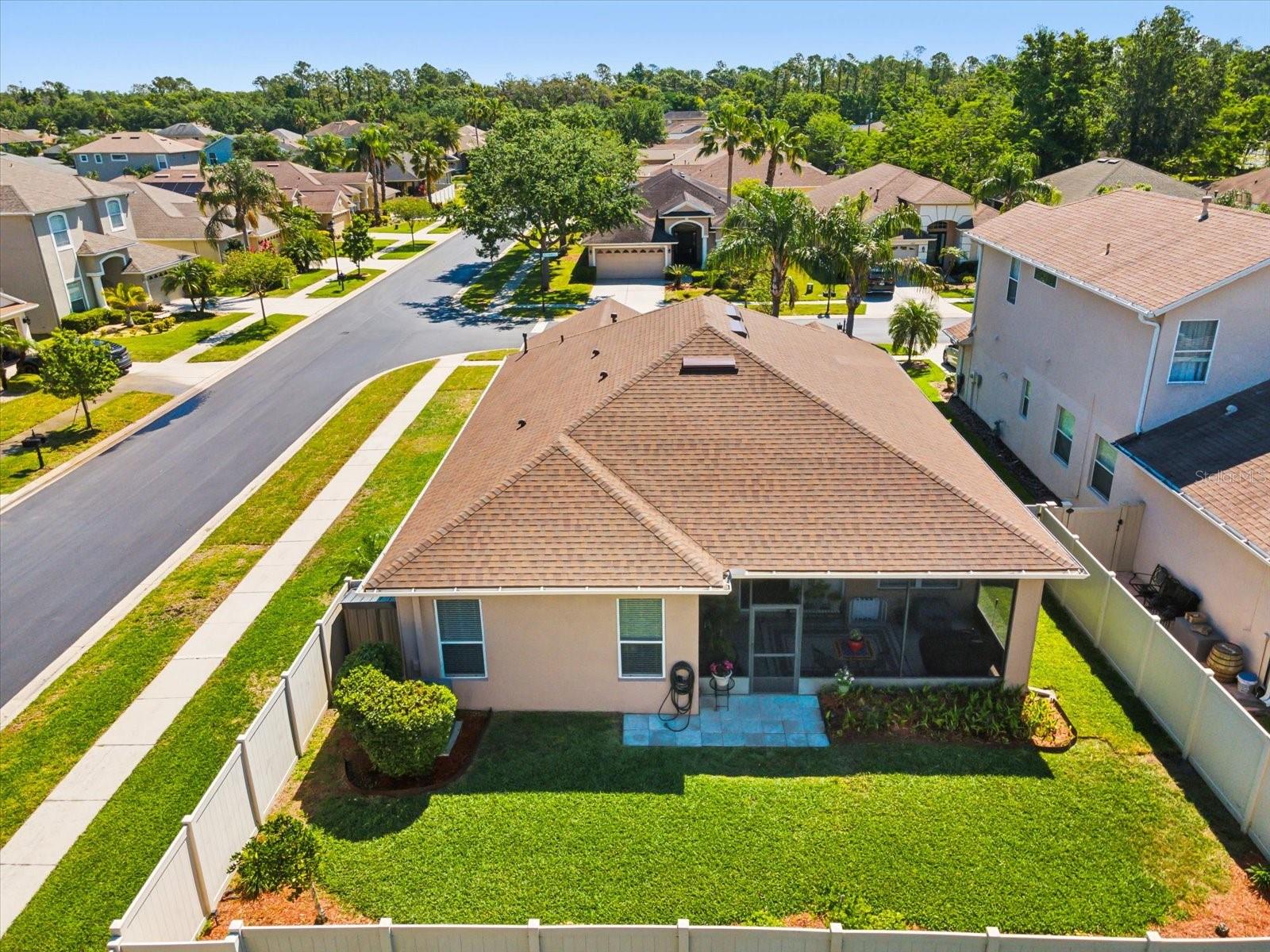 NEW ROOF completed September 2024! Nestled in the highly sought-after gated community of Stonegate, this beautifully maintained home exudes pride of ownership and timeless charm. From the moment you step inside, you'll notice the elegant crown molding, tray ceilings, and thoughtful architectural details that add warmth and character throughout. Custom plantation shutters provide both style and function—letting in soft, natural light or creating a cozy, private retreat. The home features three spacious bedrooms, including a luxurious Primary Suite designed for relaxation, complete with a soaking tub, separate shower, dual sinks, and a huge walk-in closet. The open-concept living area flows seamlessly from the spacious Family Room into the bright, modern kitchen—perfect for entertaining or quiet nights at home. Step outside to the oversized, screened lanai and enjoy peaceful backyard views surrounded by lush landscaping and mature fruit trees, including Myer lemon and orange. The fenced yard offers privacy and plenty of space to play or unwind. Residents of Stonegate enjoy resort-style amenities including 24/7 virtual-guard gates, a clubhouse with fitness center, fishing dock, beach-entry pool with lap lanes, and a playground. The community also hosts regular events, making it easy to connect and create lasting friendships. Ideally located along the SR-54 corridor, you're just 4.5 miles from the Suncoast Parkway/Veterans Expressway and 7 miles from I-75/SR-56, with shopping, dining, and entertainment just minutes away via US-41 and Dale Mabry. This home offers the perfect blend of comfort, style, and convenience in one of the area’s most desirable communities—don't miss your chance to make it yours!