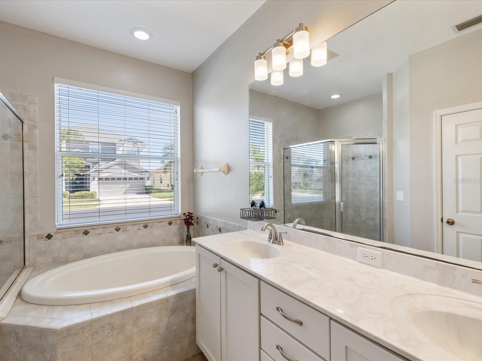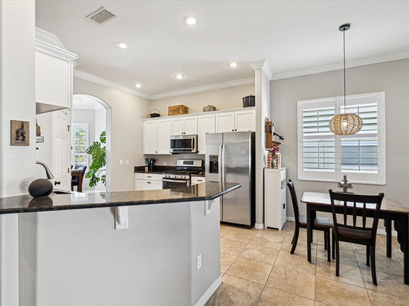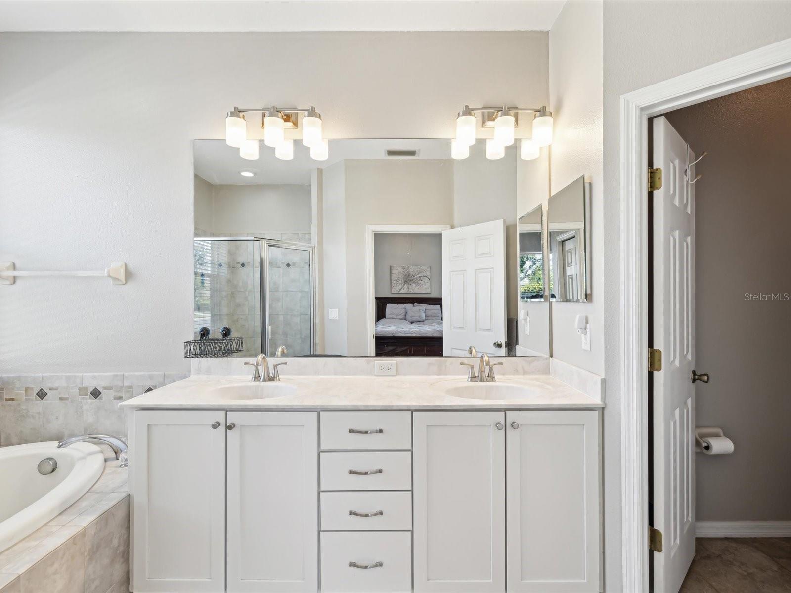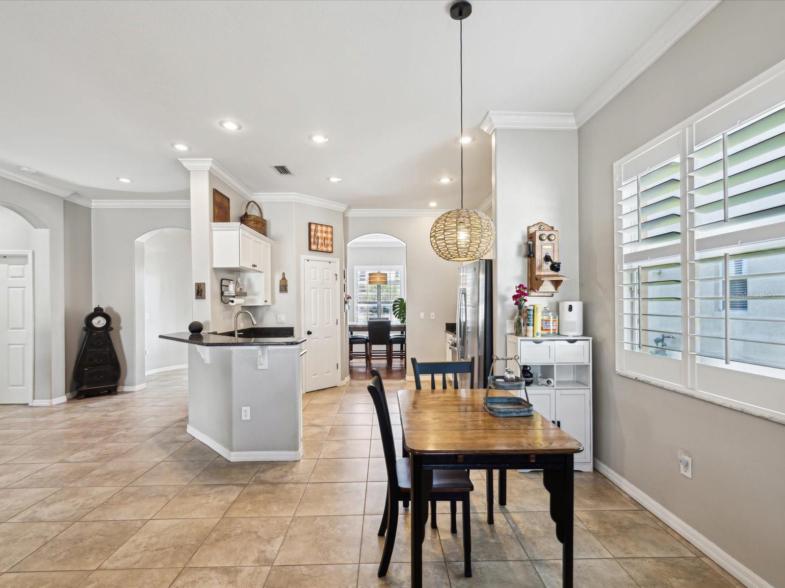NEW ROOF completed September 2024! Nestled in the highly sought-after gated community of Stonegate, this beautifully maintained home exudes pride of ownership and timeless charm. From the moment you step inside, you'll notice the elegant crown molding, tray ceilings, and thoughtful architectural details that add warmth and character throughout. Custom plantation shutters provide both style and function—letting in soft, natural light or creating a cozy, private retreat. The home features three spacious bedrooms, including a luxurious Primary Suite designed for relaxation, complete with a soaking tub, separate shower, dual sinks, and a huge walk-in closet. The open-concept living area flows seamlessly from the spacious Family Room into the bright, modern kitchen—perfect for entertaining or quiet nights at home. Step outside to the oversized, screened lanai and enjoy peaceful backyard views surrounded by lush landscaping and mature fruit trees, including Myer lemon and orange. The fenced yard offers privacy and plenty of space to play or unwind. Residents of Stonegate enjoy resort-style amenities including 24/7 virtual-guard gates, a clubhouse with fitness center, fishing dock, beach-entry pool with lap lanes, and a playground. The community also hosts regular events, making it easy to connect and create lasting friendships. Ideally located along the SR-54 corridor, you're just 4.5 miles from the Suncoast Parkway/Veterans Expressway and 7 miles from I-75/SR-56, with shopping, dining, and entertainment just minutes away via US-41 and Dale Mabry. This home offers the perfect blend of comfort, style, and convenience in one of the area’s most desirable communities—don't miss your chance to make it yours!